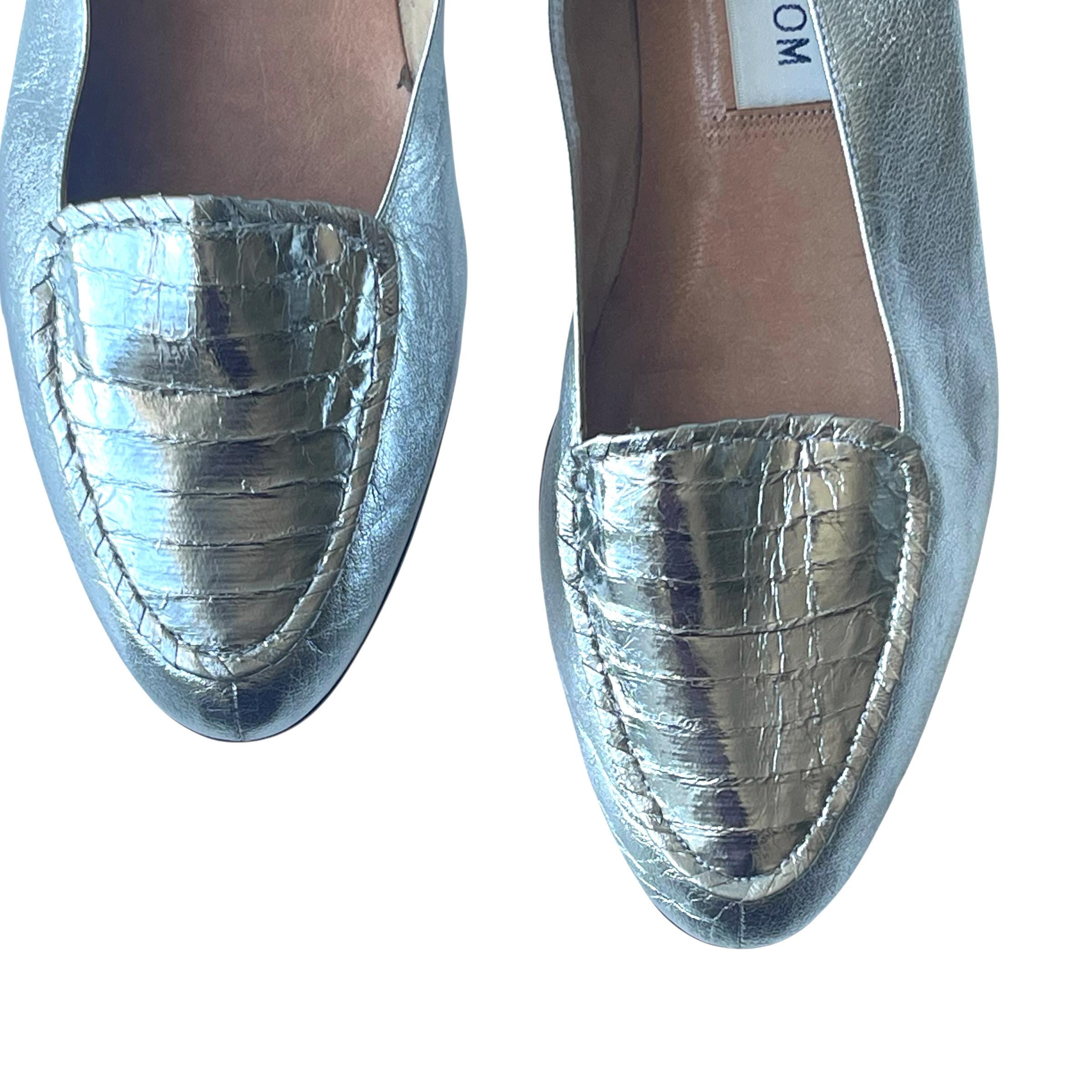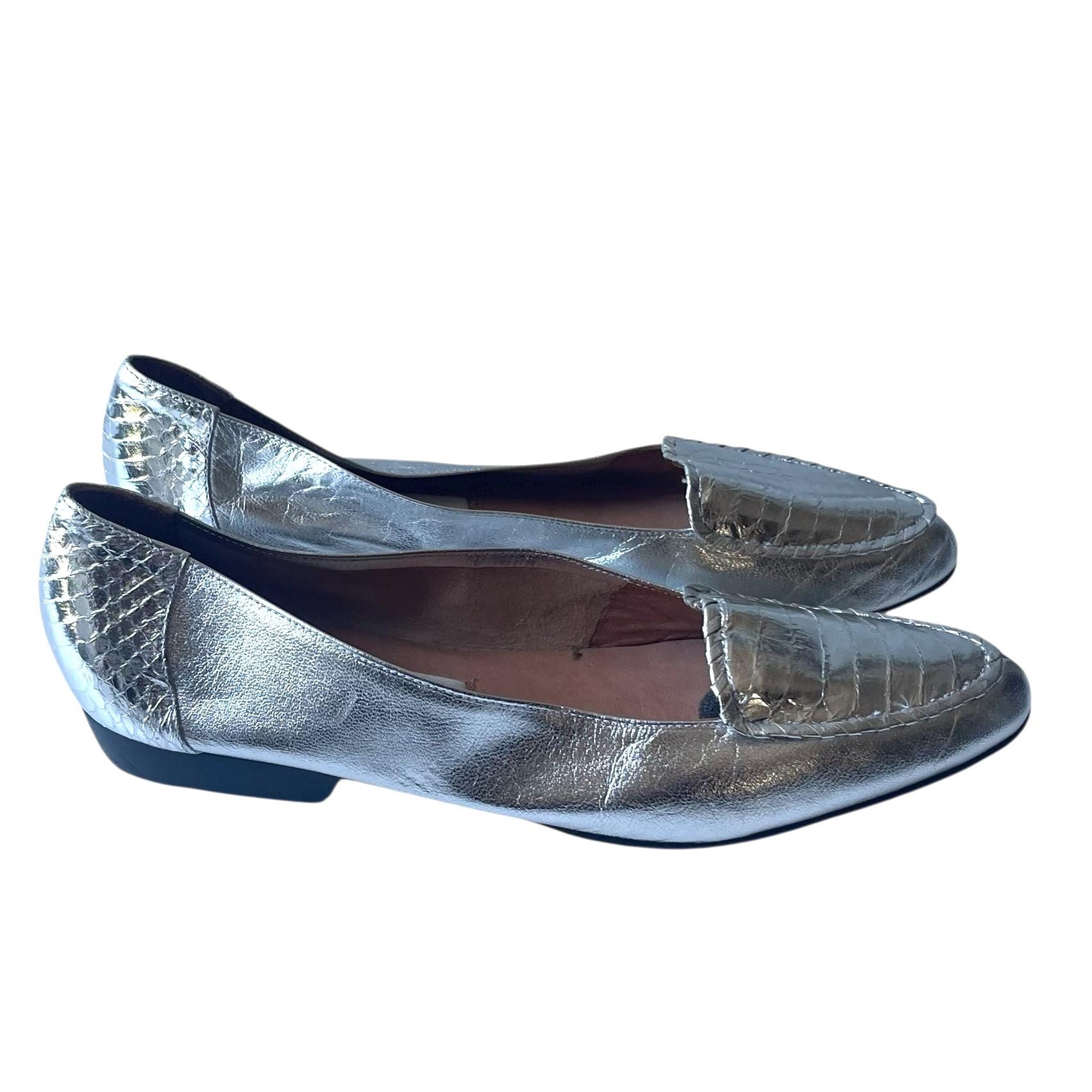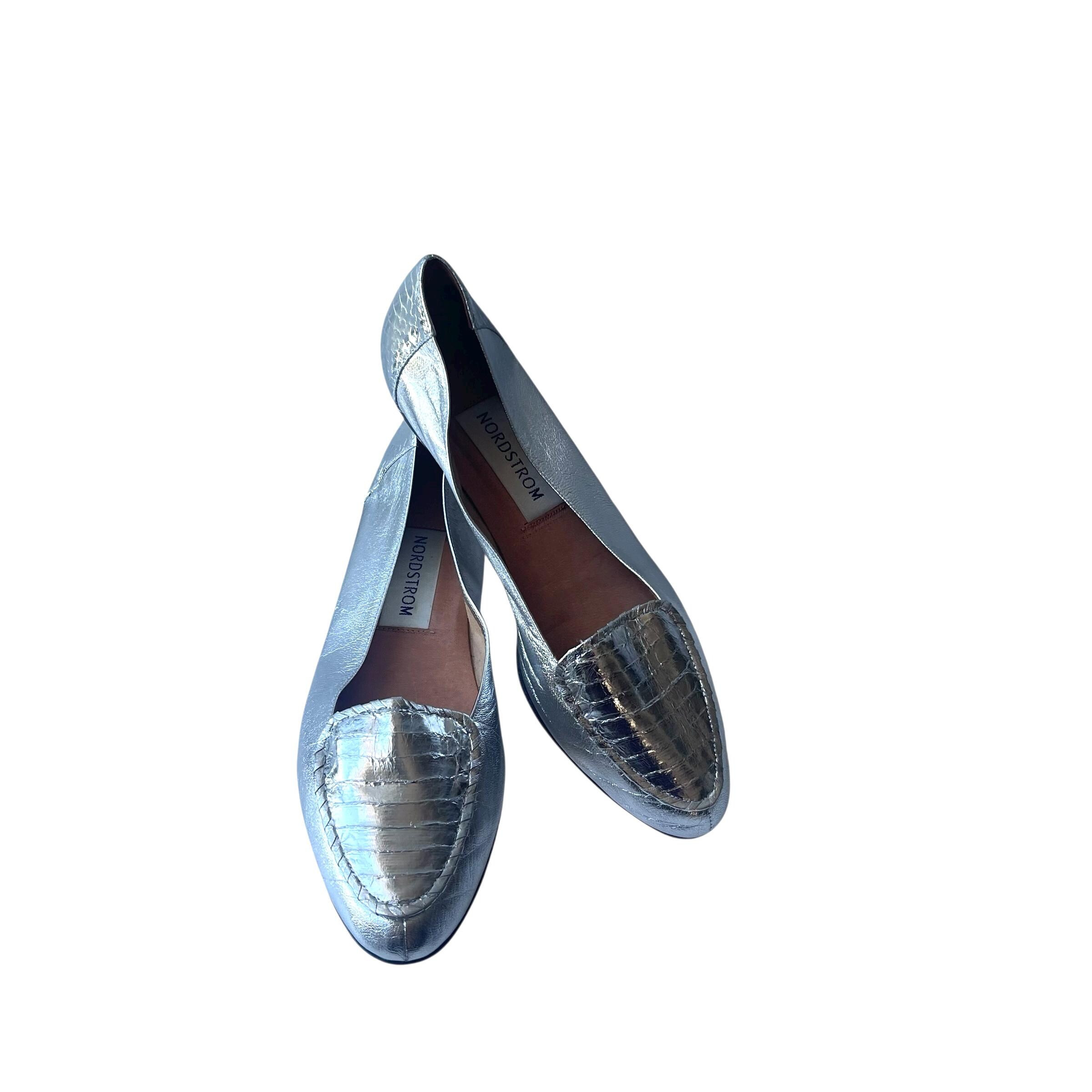 Vintage Metallic Silver Leather Flats: Mod Silver Shoes, Nordstroms Leather Shoes 10N