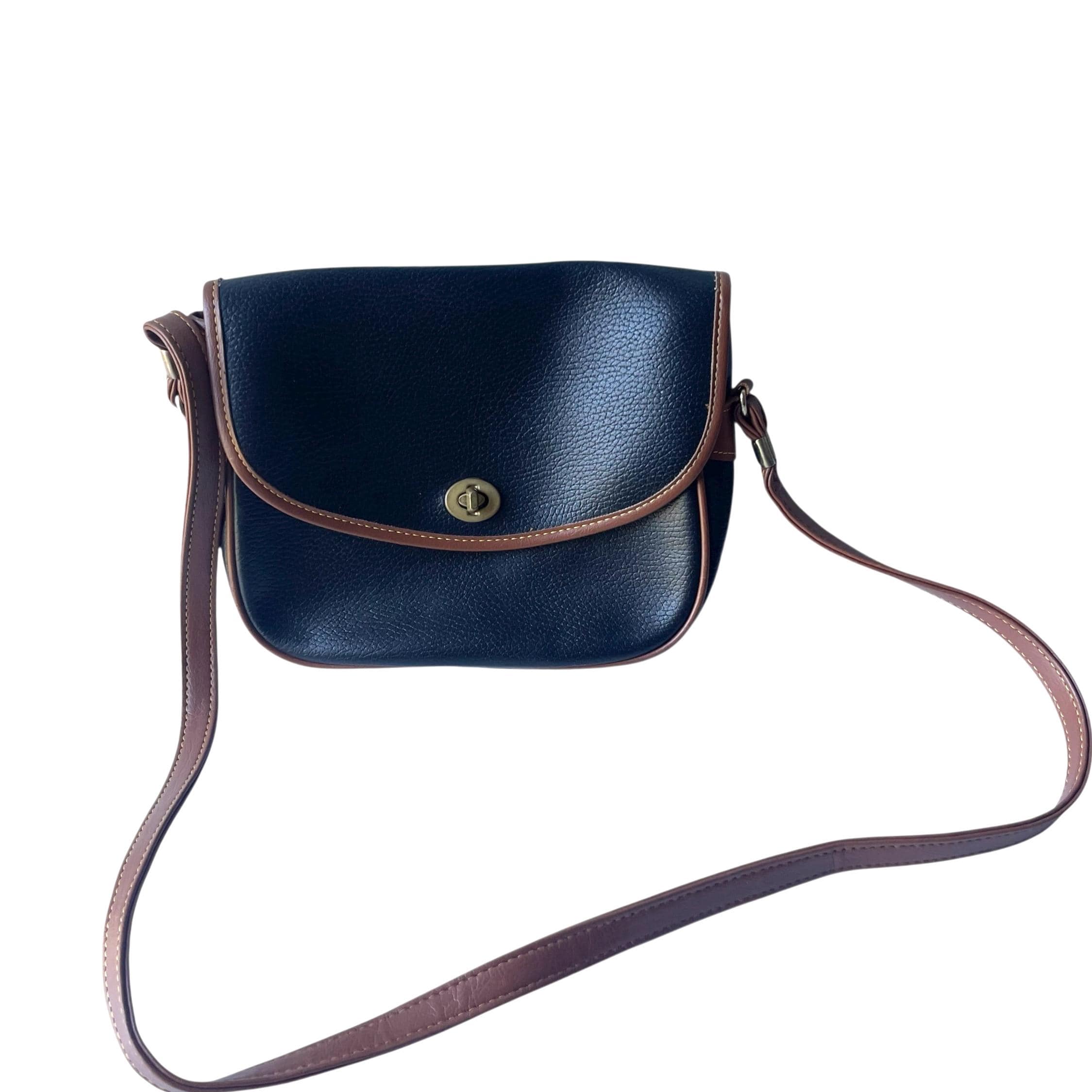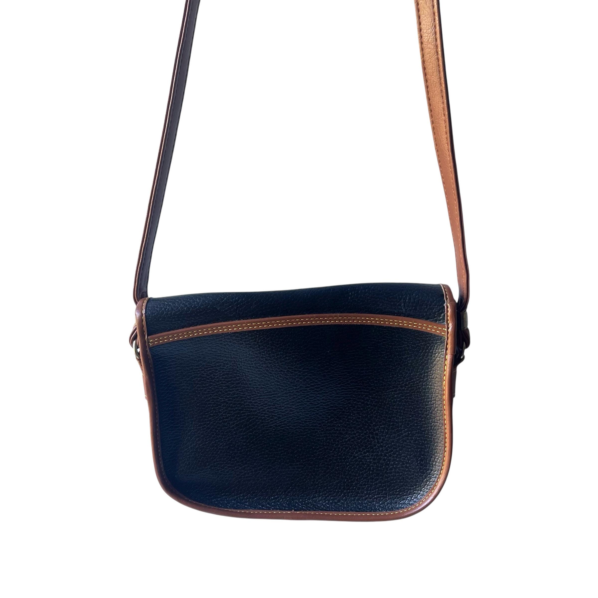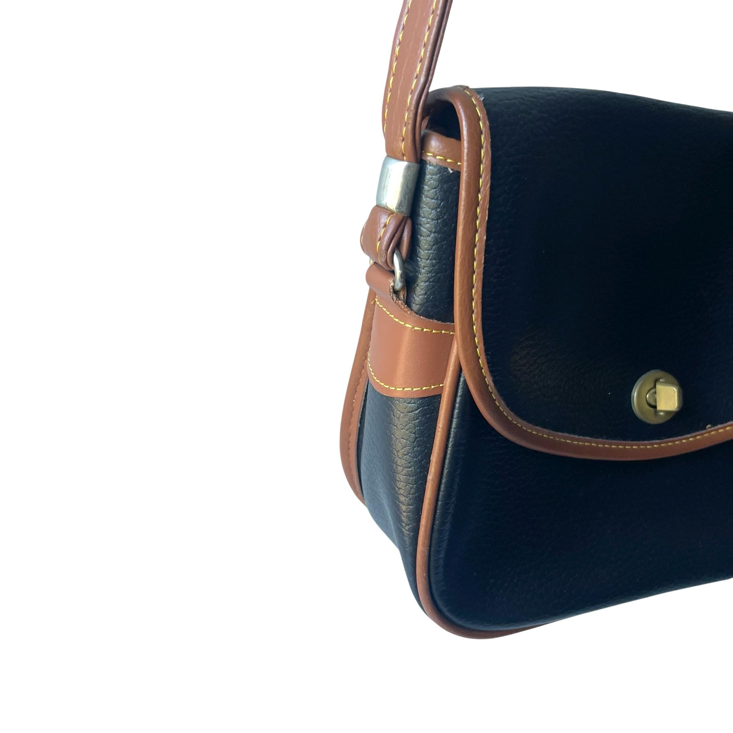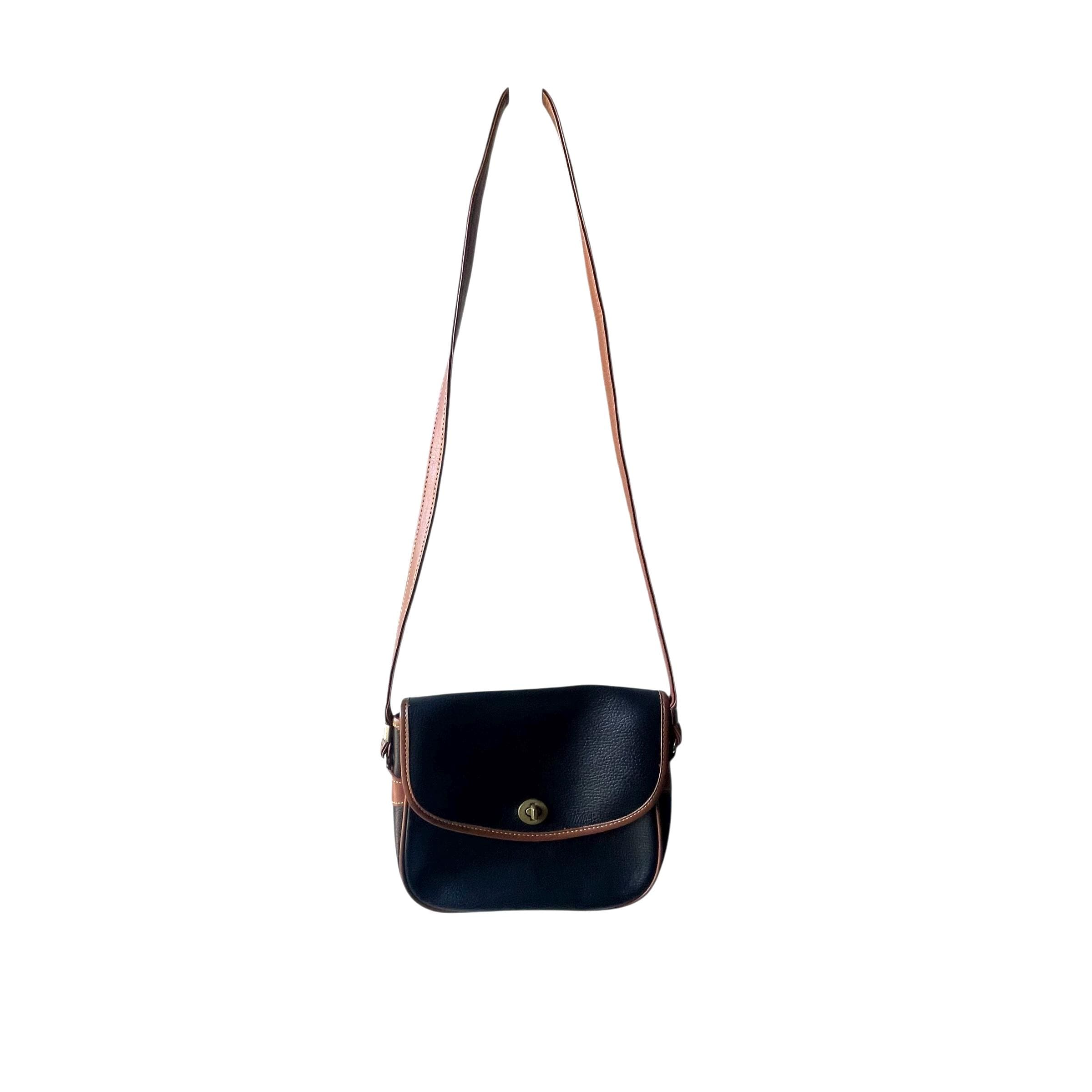 Vintage Black Leather Handbag Purse: Messenger Purse, Preppy Mod, Academia Purse. Dooney Bourke, Coach.