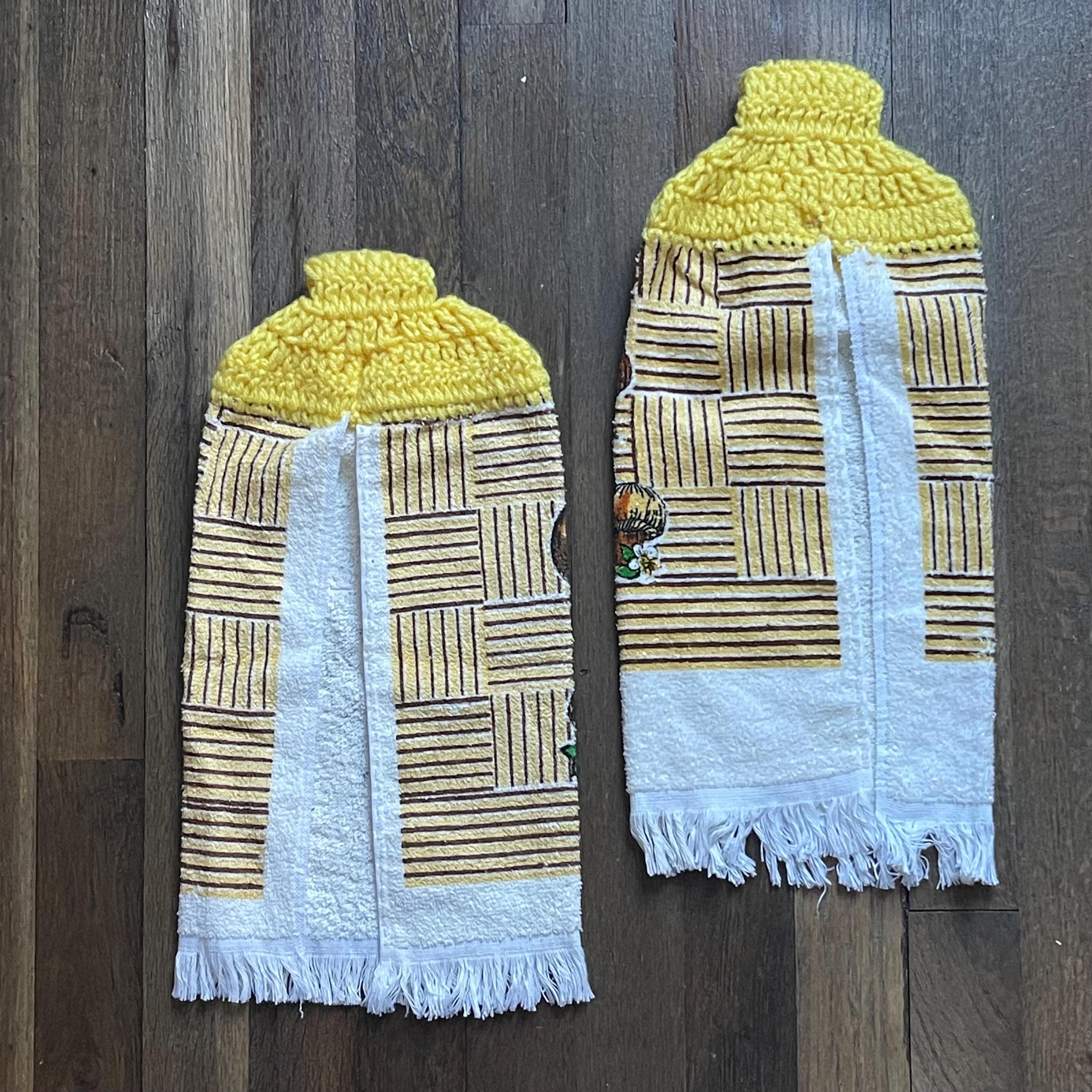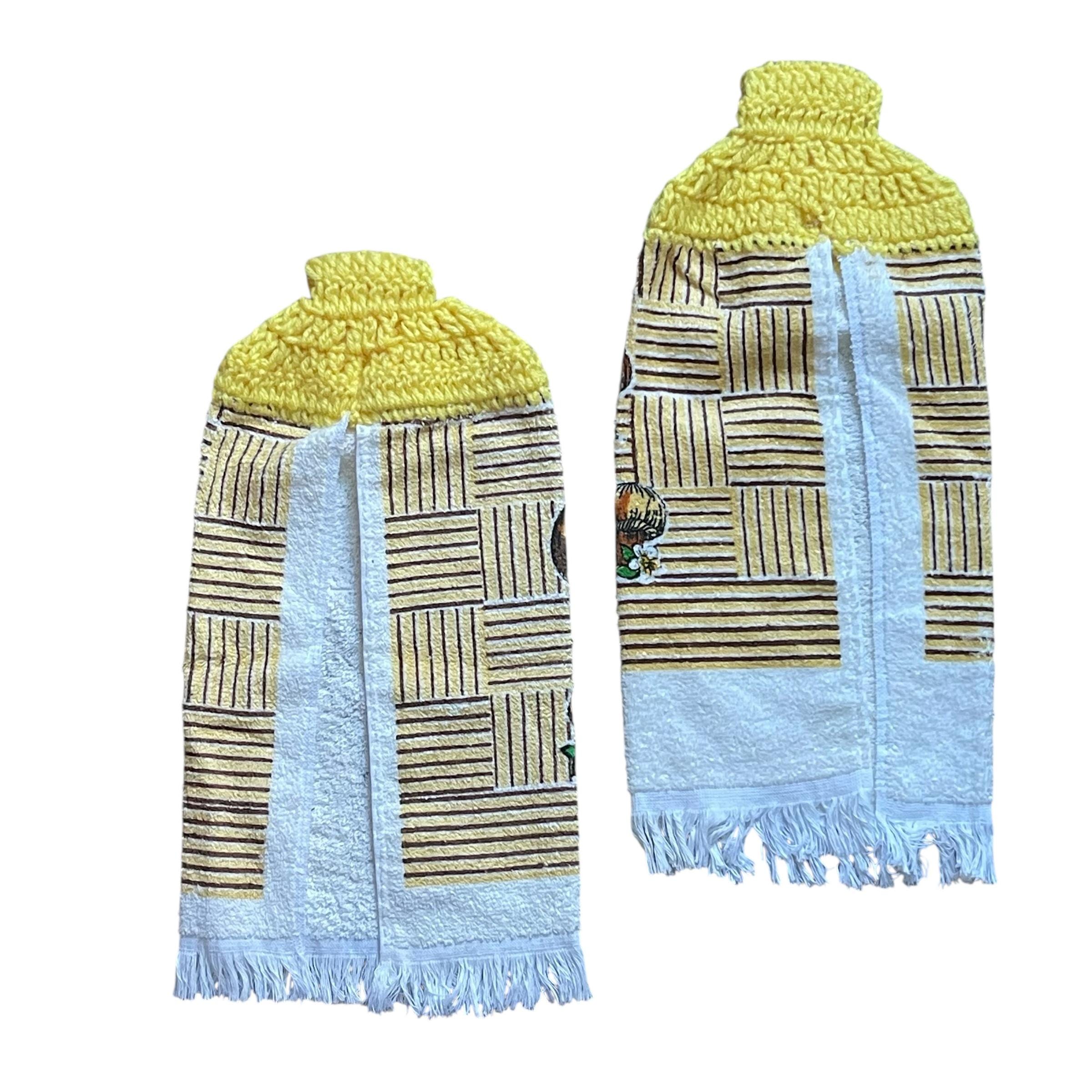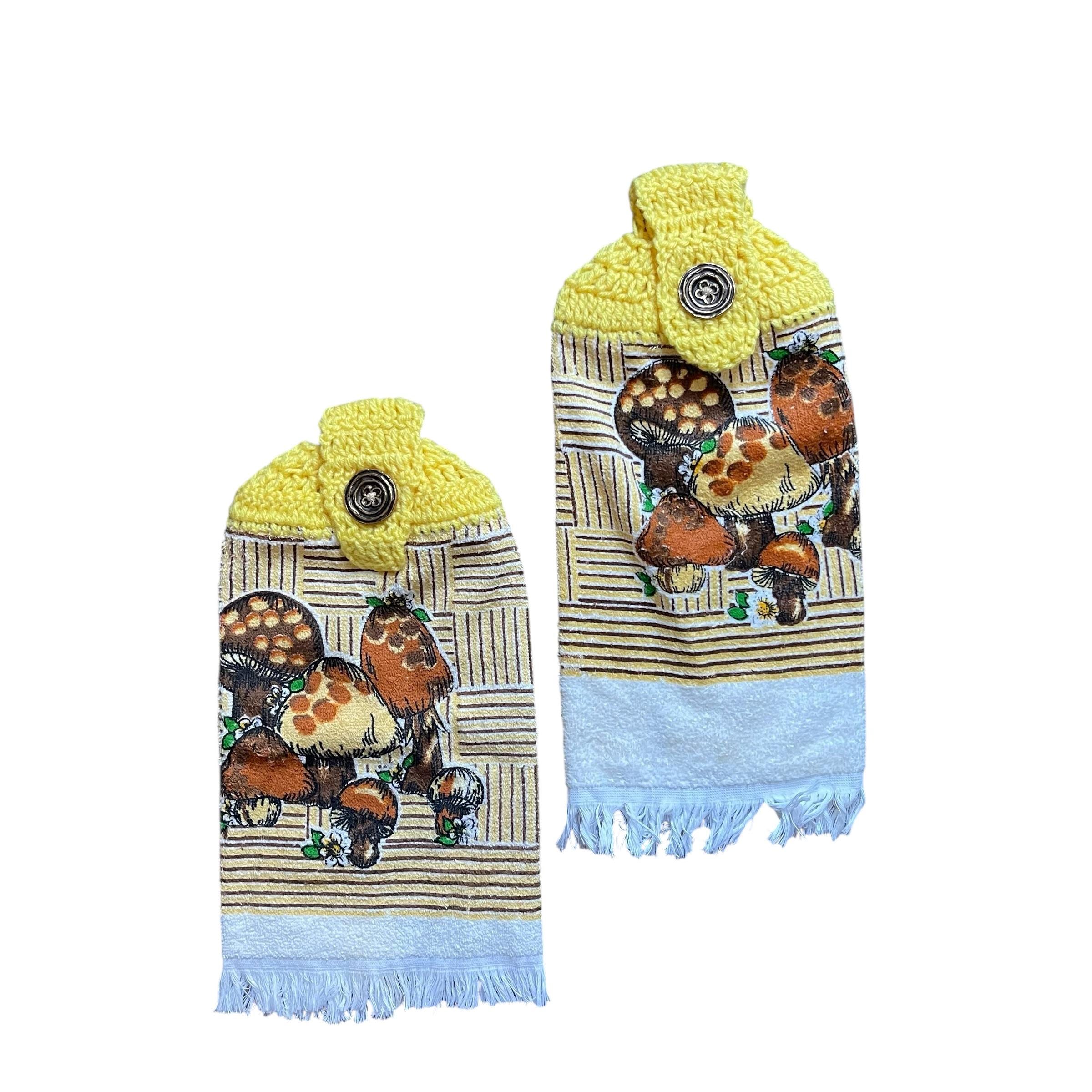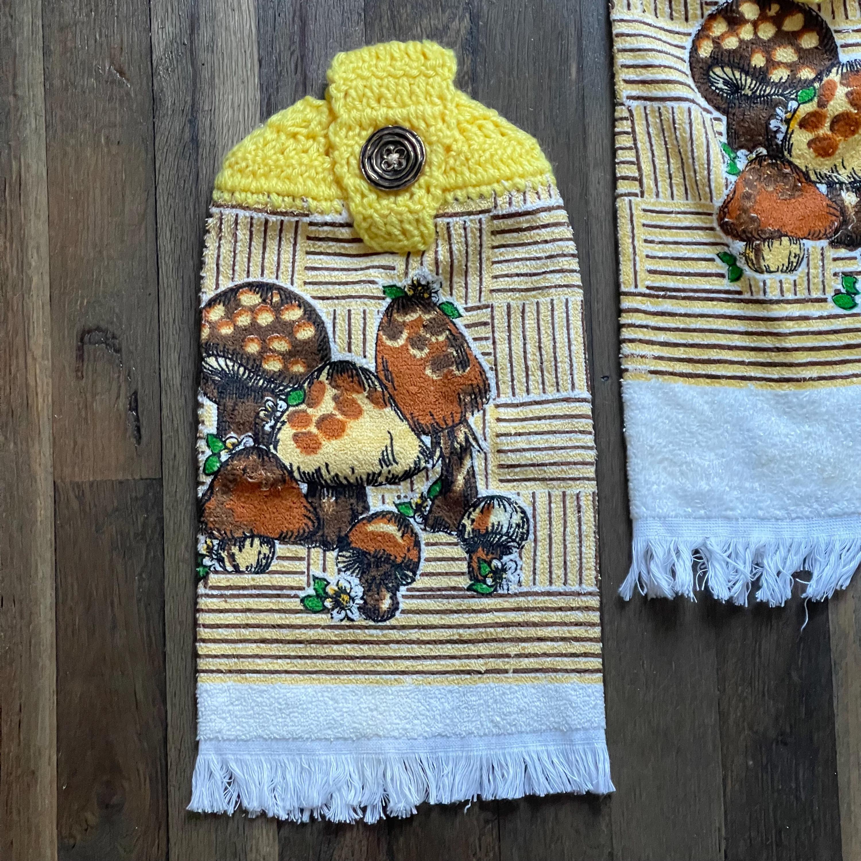 Vintage Kitchen Mushroom Dish Hand Towel: 70s 80s, Crochet w/Metal Button, Deadstock New.