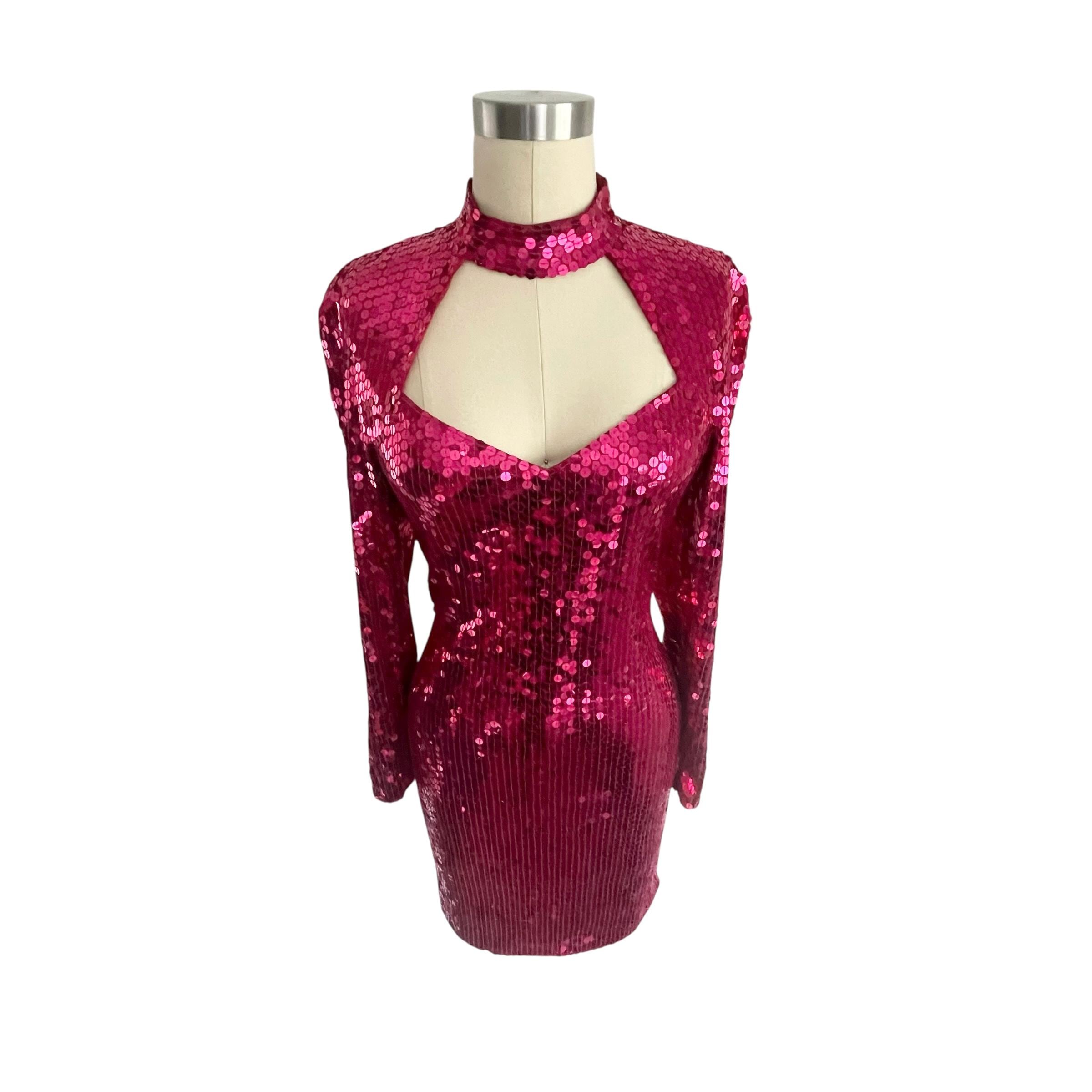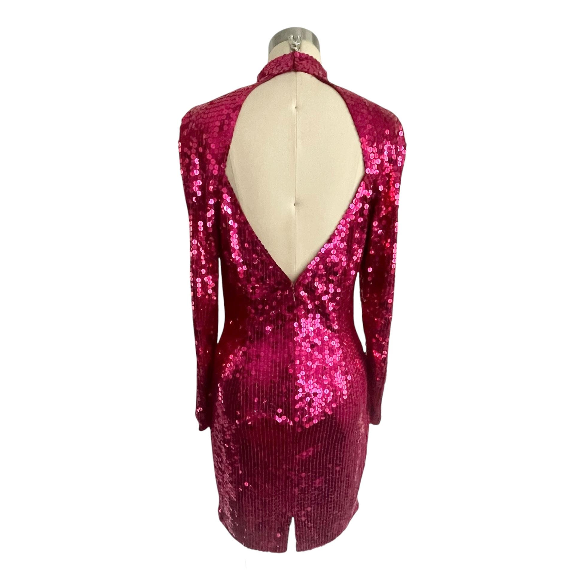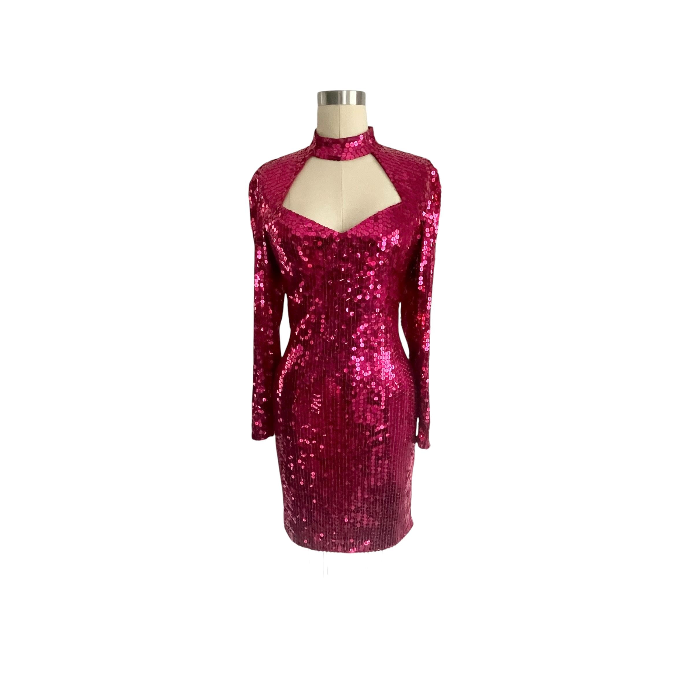 Vintage Niteline Sequin Bodycon Dress: Magenta Pink Stretch Mini Dress