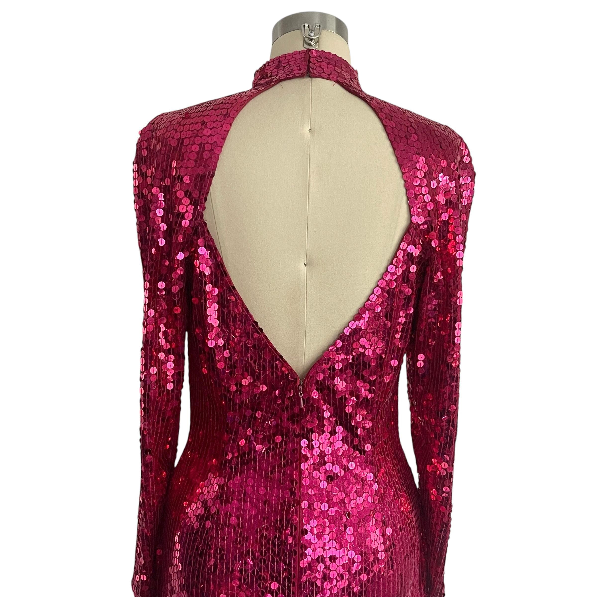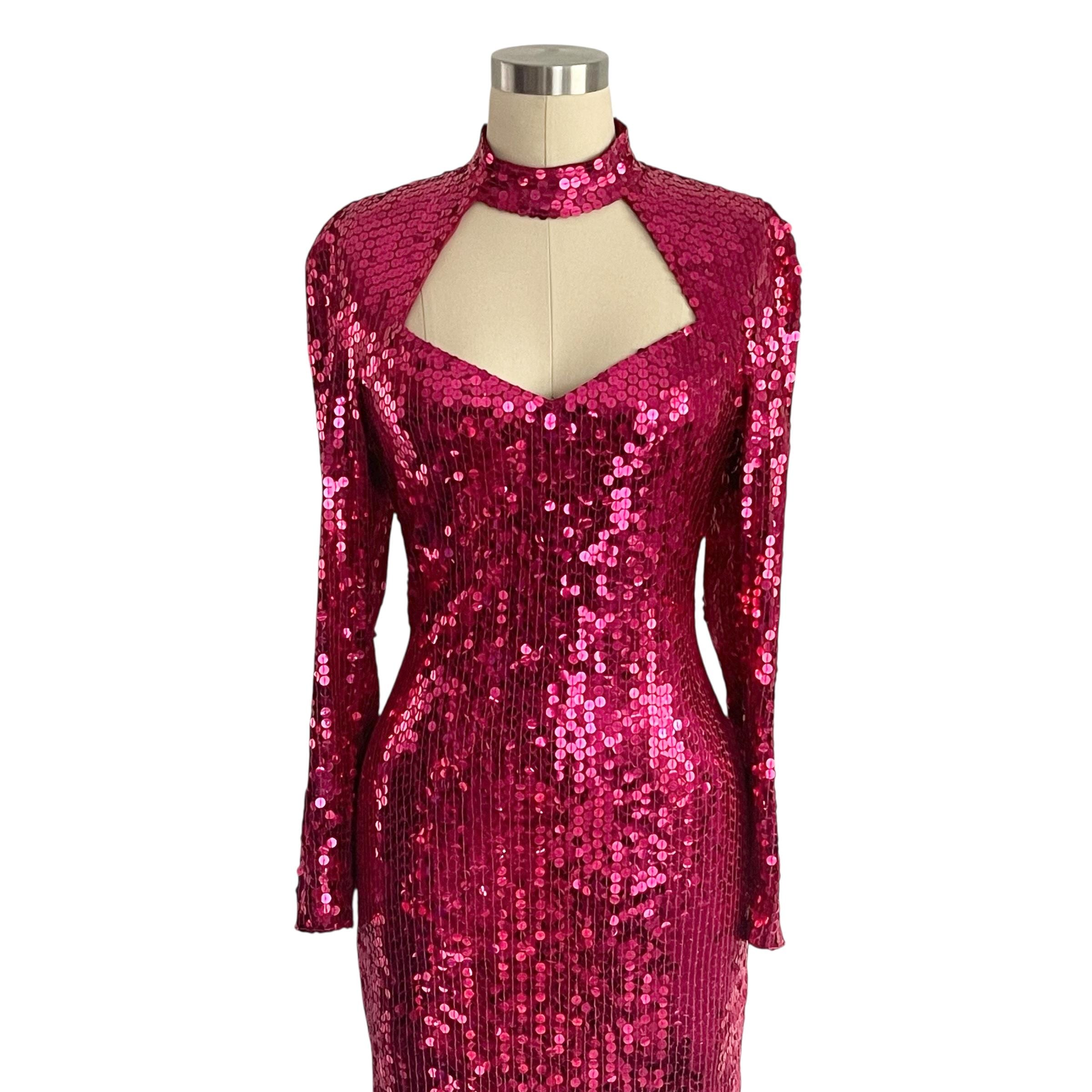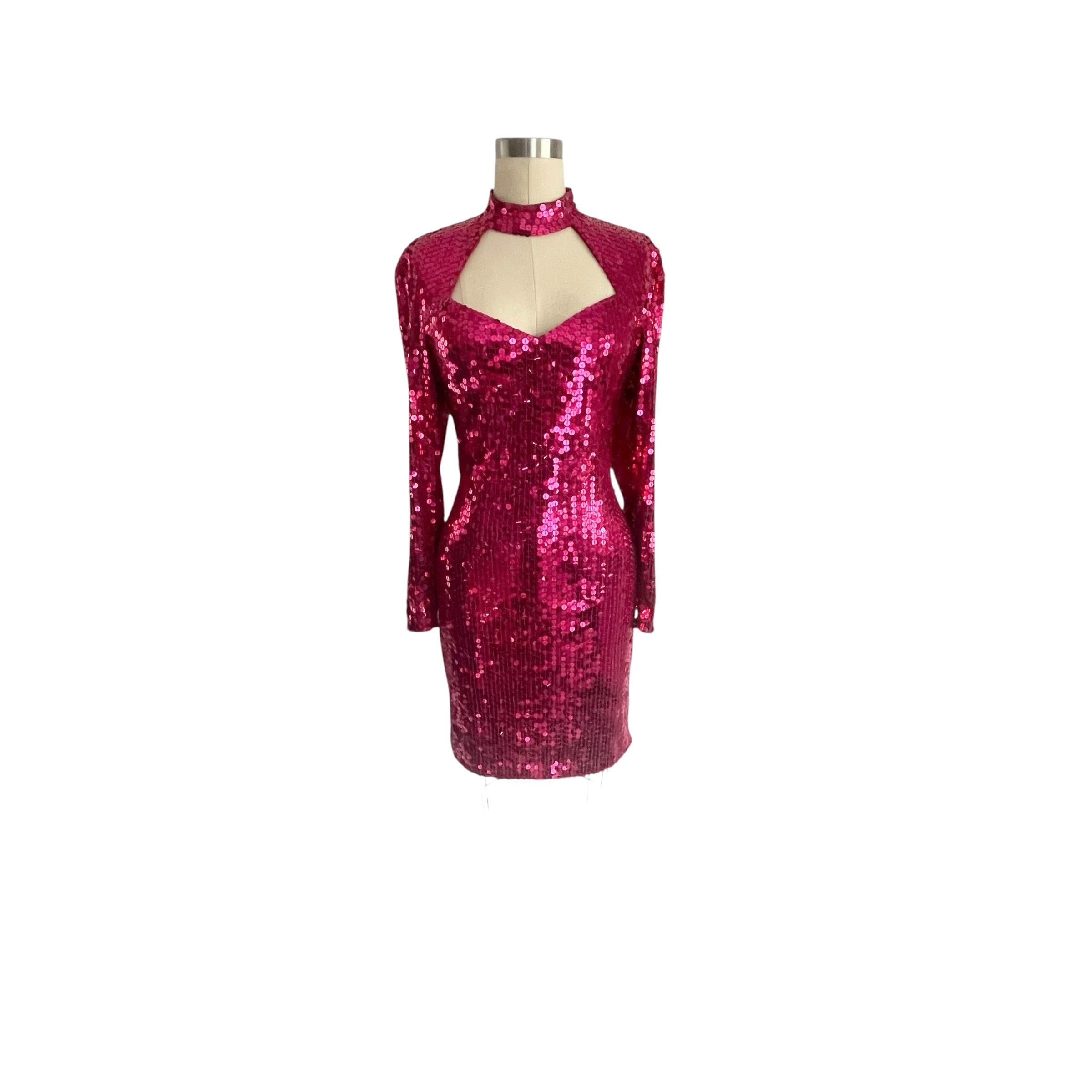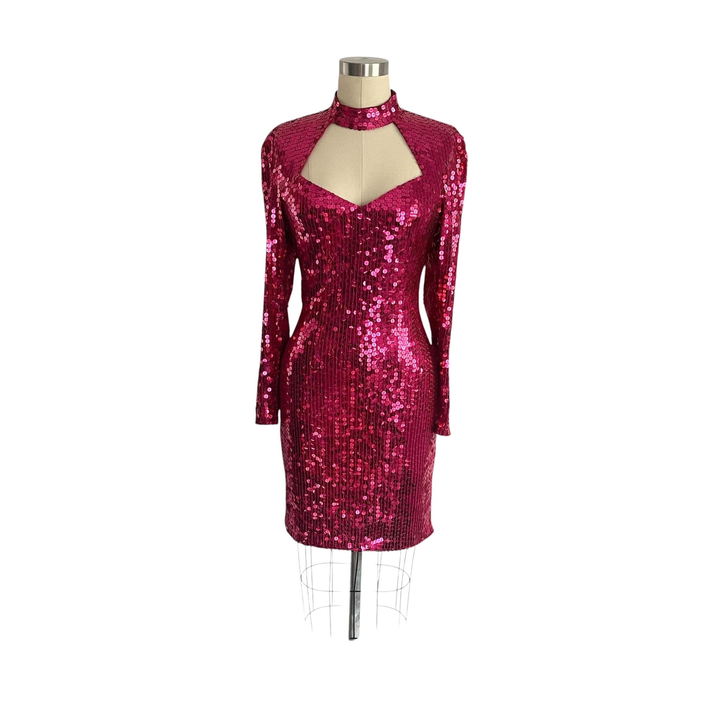 Vintage Niteline Sequin Bodycon Dress: Magenta Pink Stretch Mini Dress