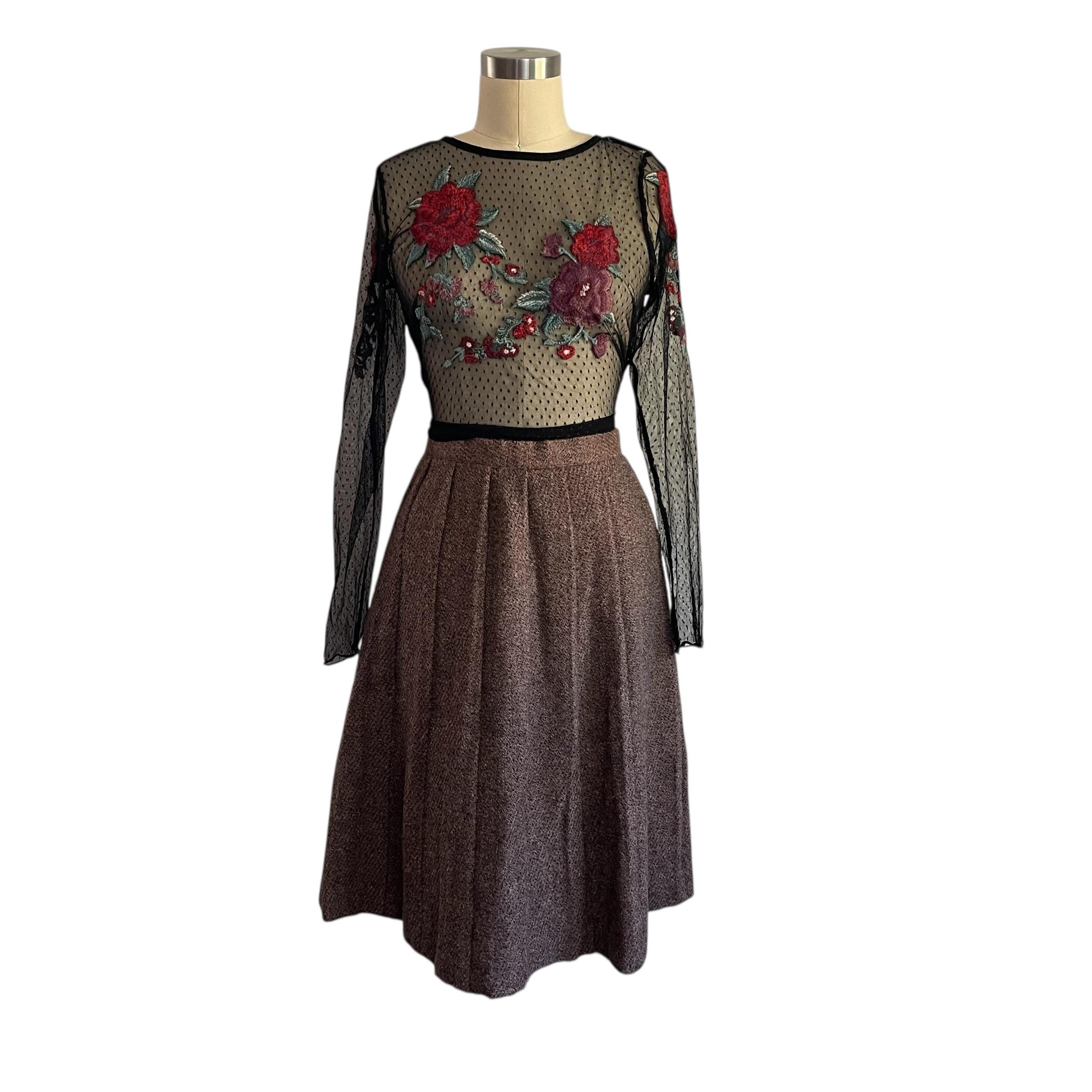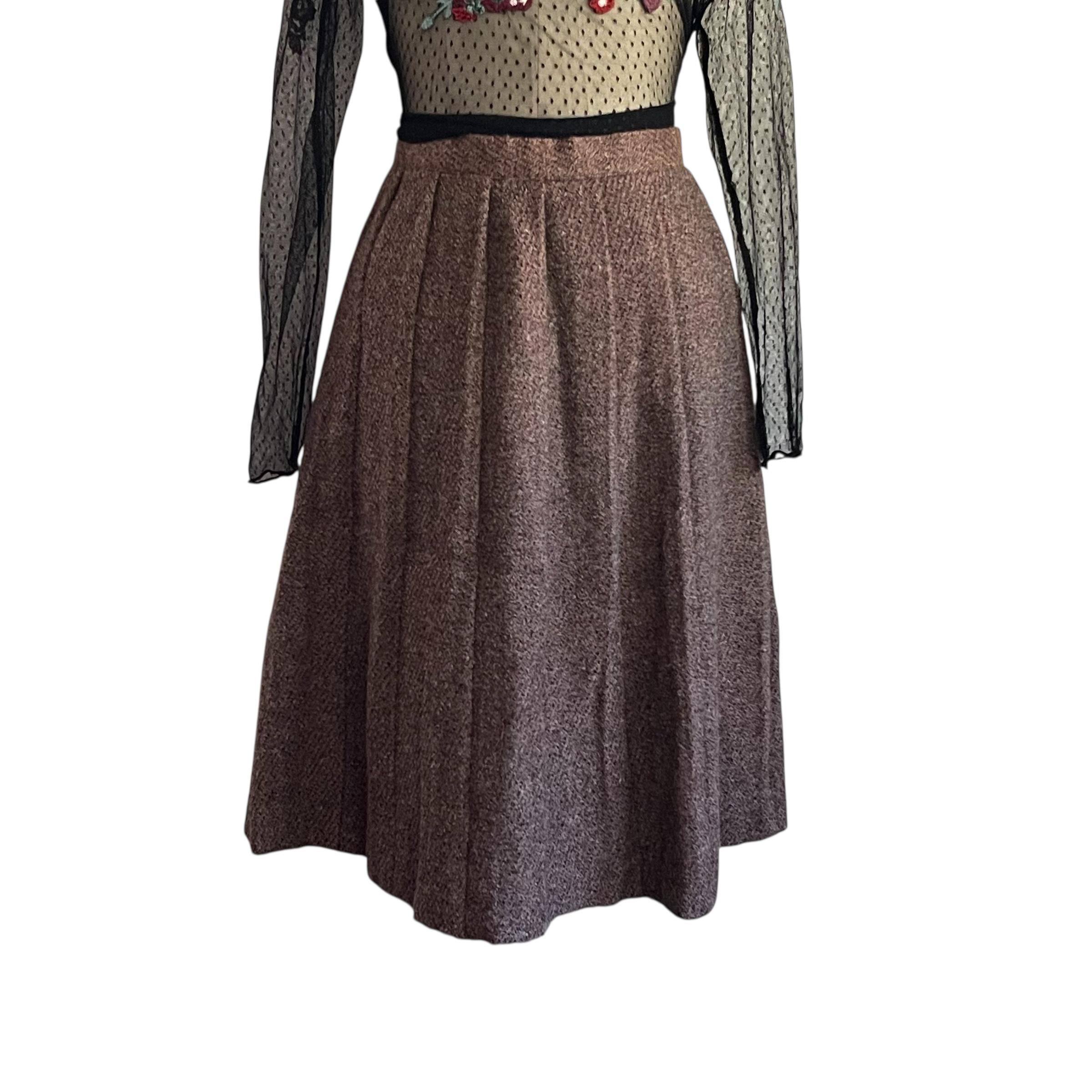 Vintage Dark Academia Brown Pleated A-Line Skirt: Brown Secretary Skirt, Coffee Shop, Teacher Skirt, 70s 80s 90s Skirt