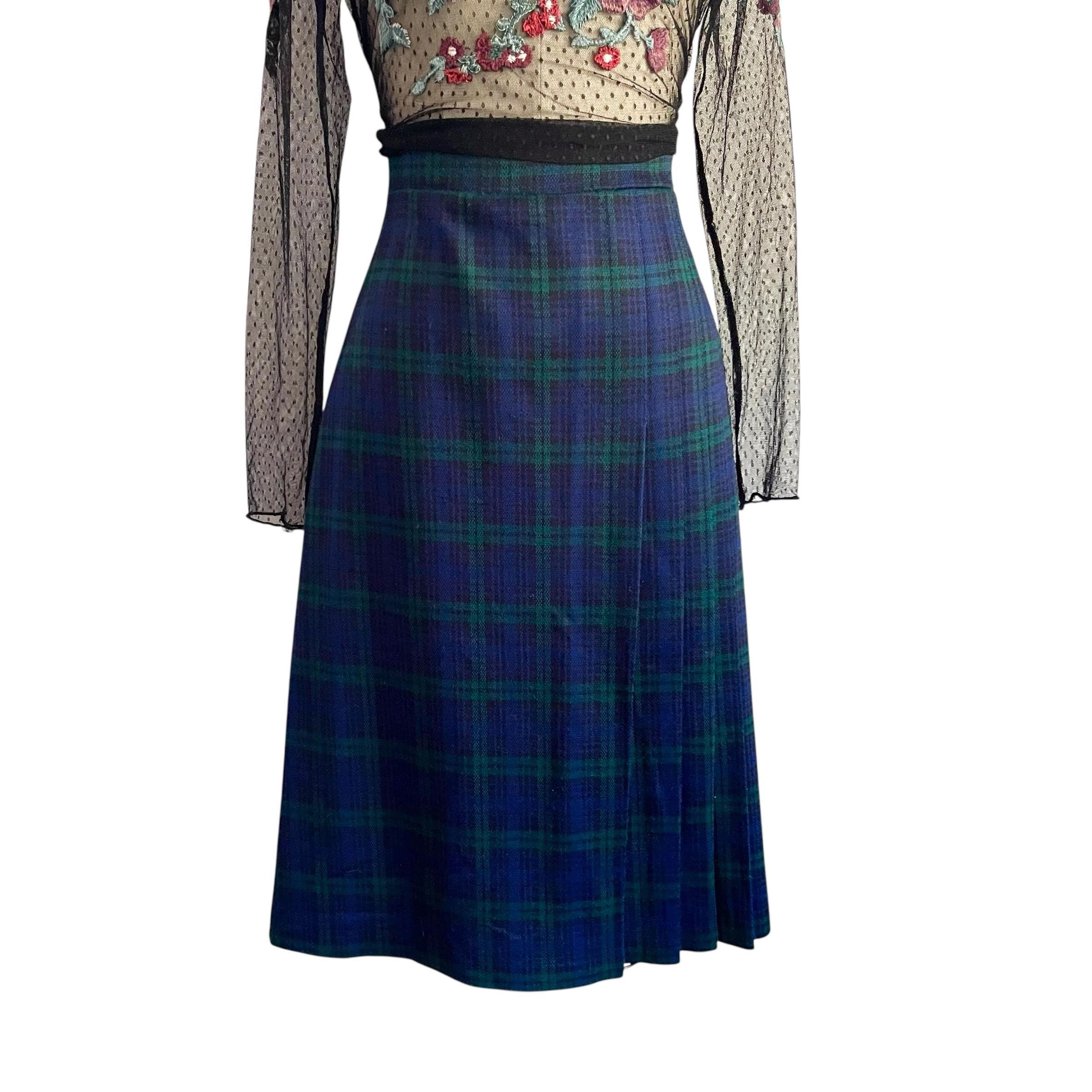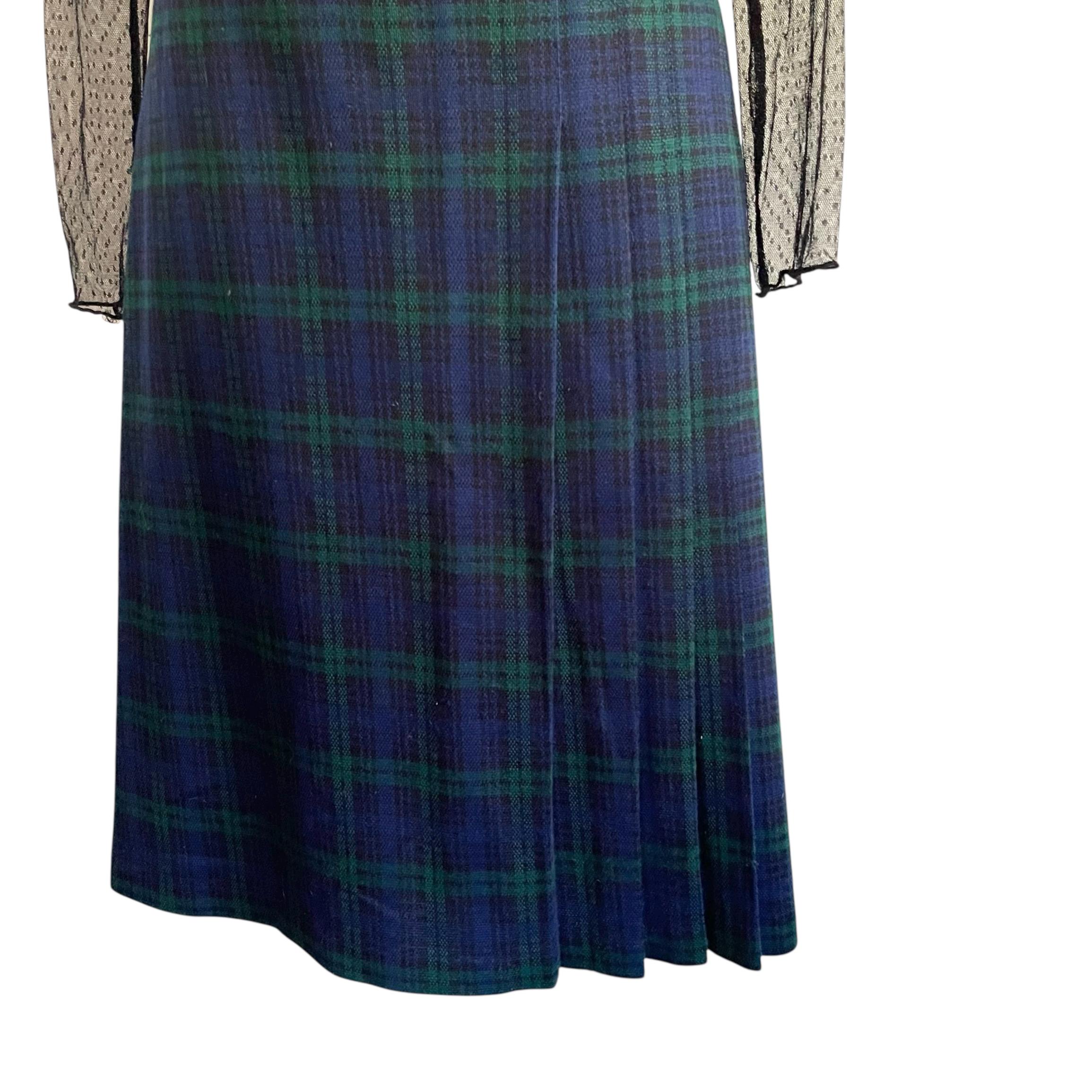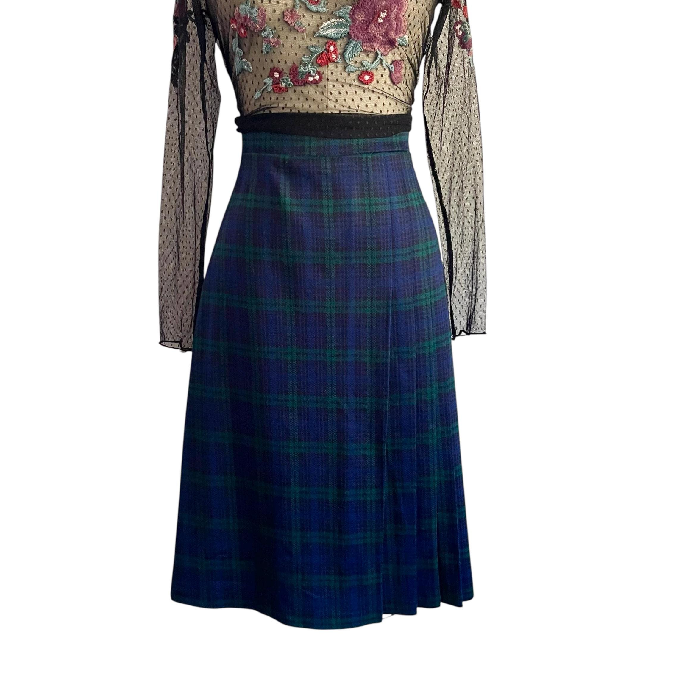 Vintage Cricket Lane Dark Tartan Half-Pleated Skirt: Dark Academia Skirt, Grunge, Alt A-Line Skirt, 70s 80s 90s Skirt