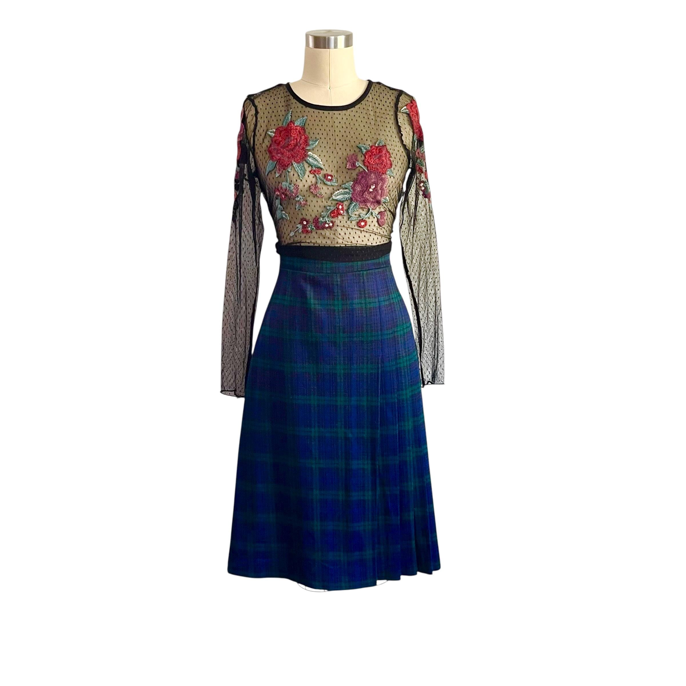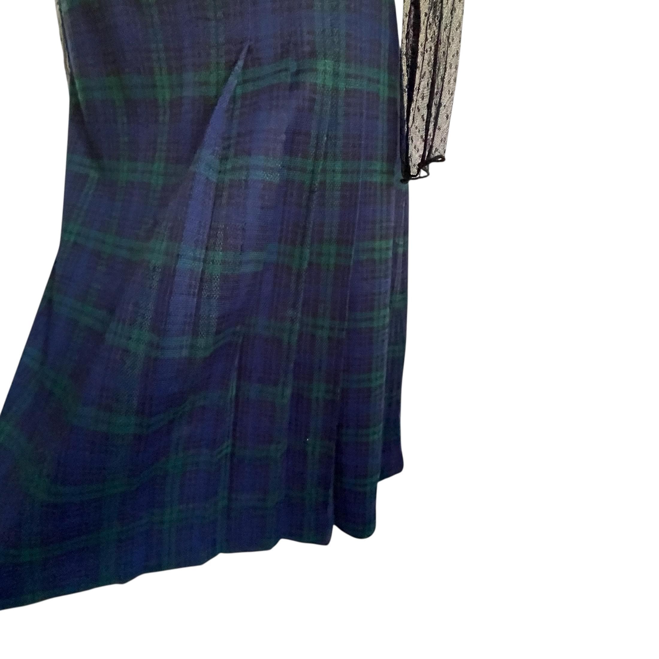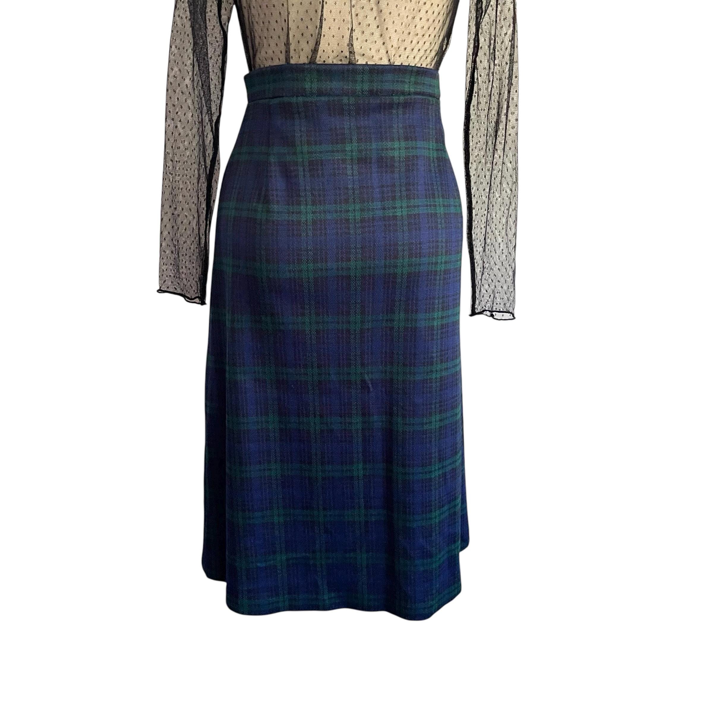 Vintage Cricket Lane Dark Tartan Half-Pleated Skirt: Dark Academia Skirt, Grunge, Alt A-Line Skirt, 70s 80s 90s Skirt