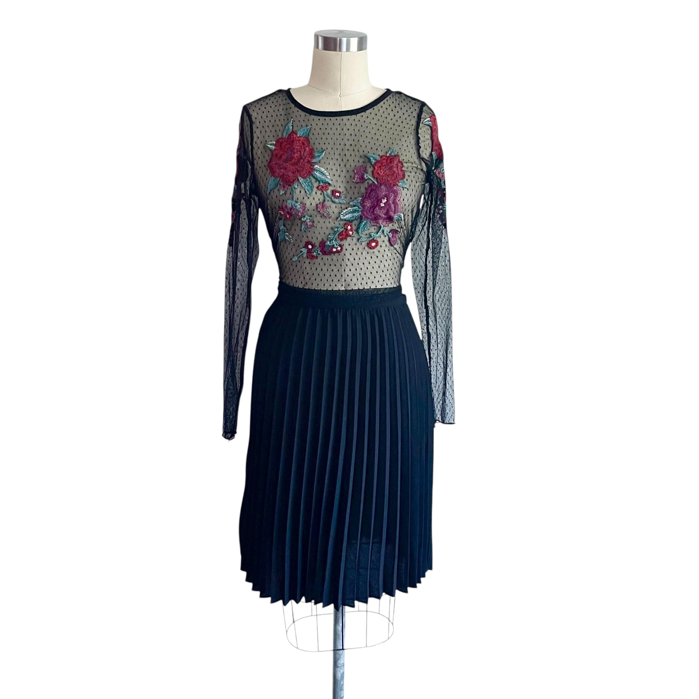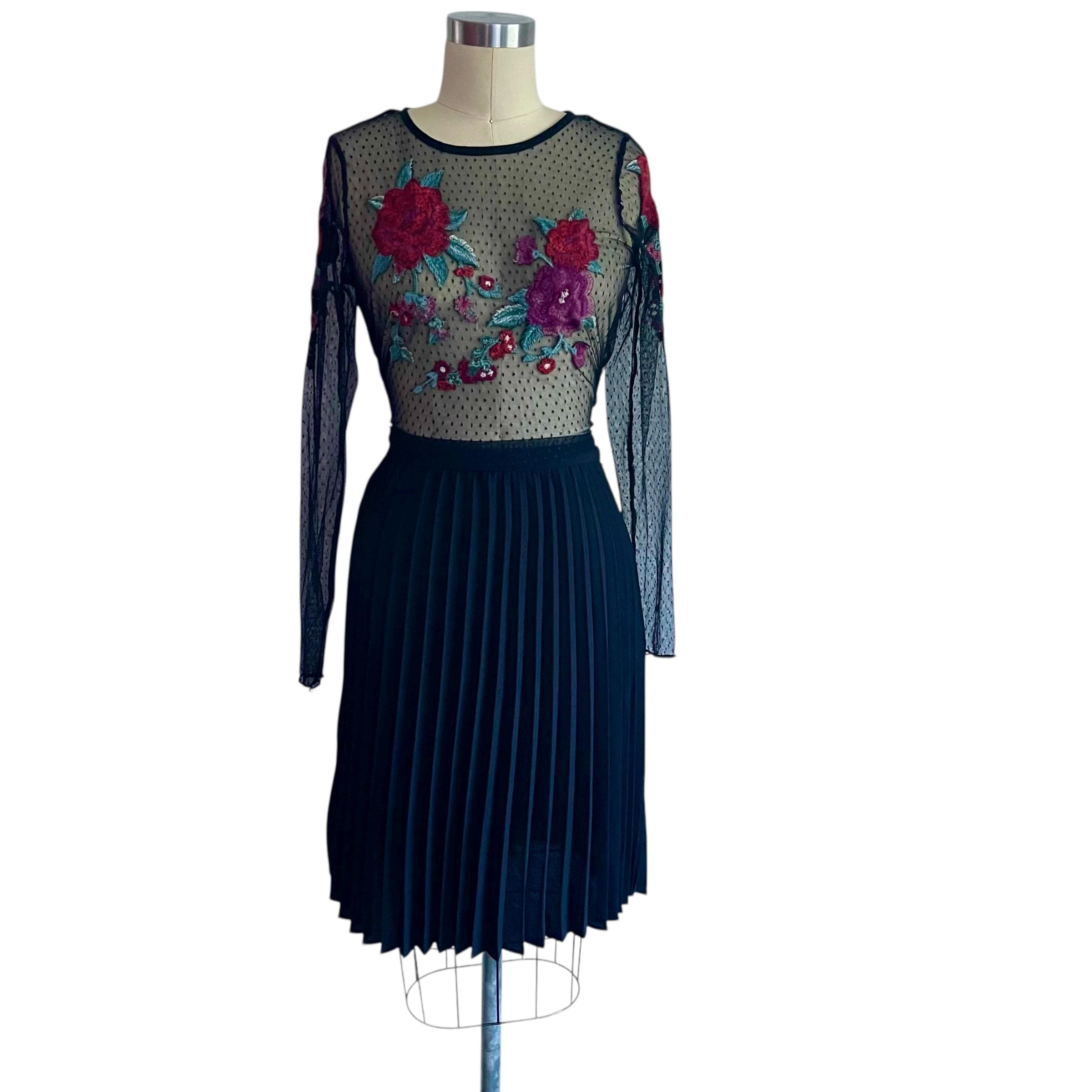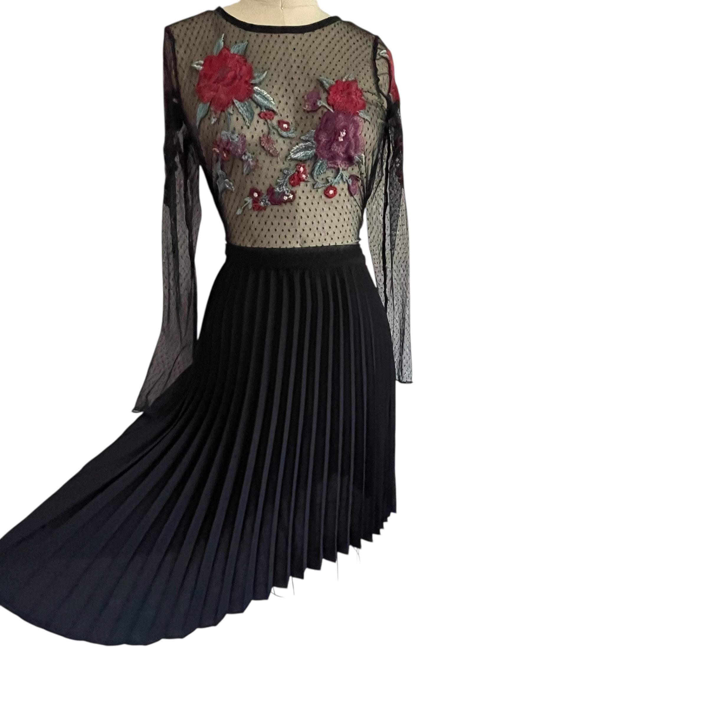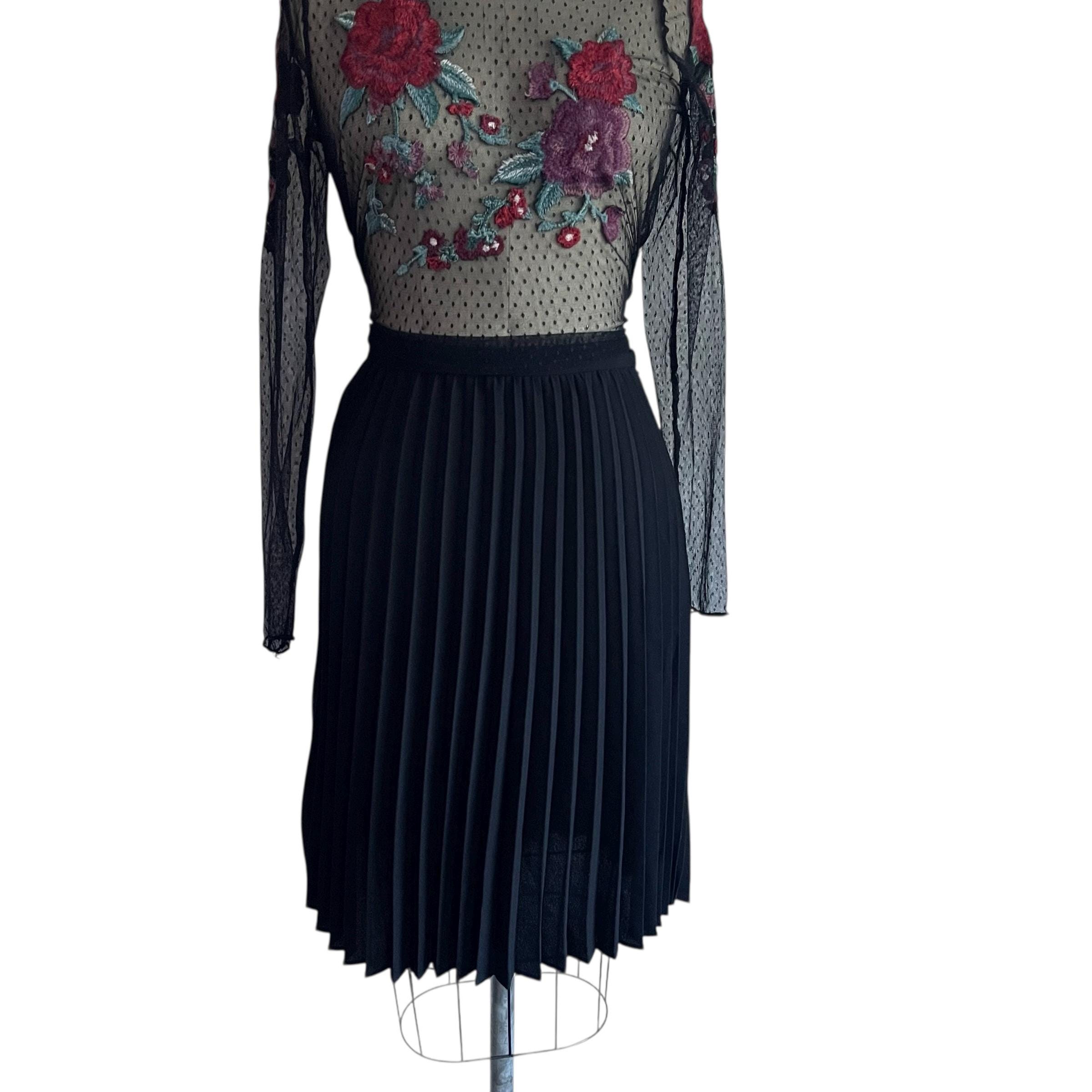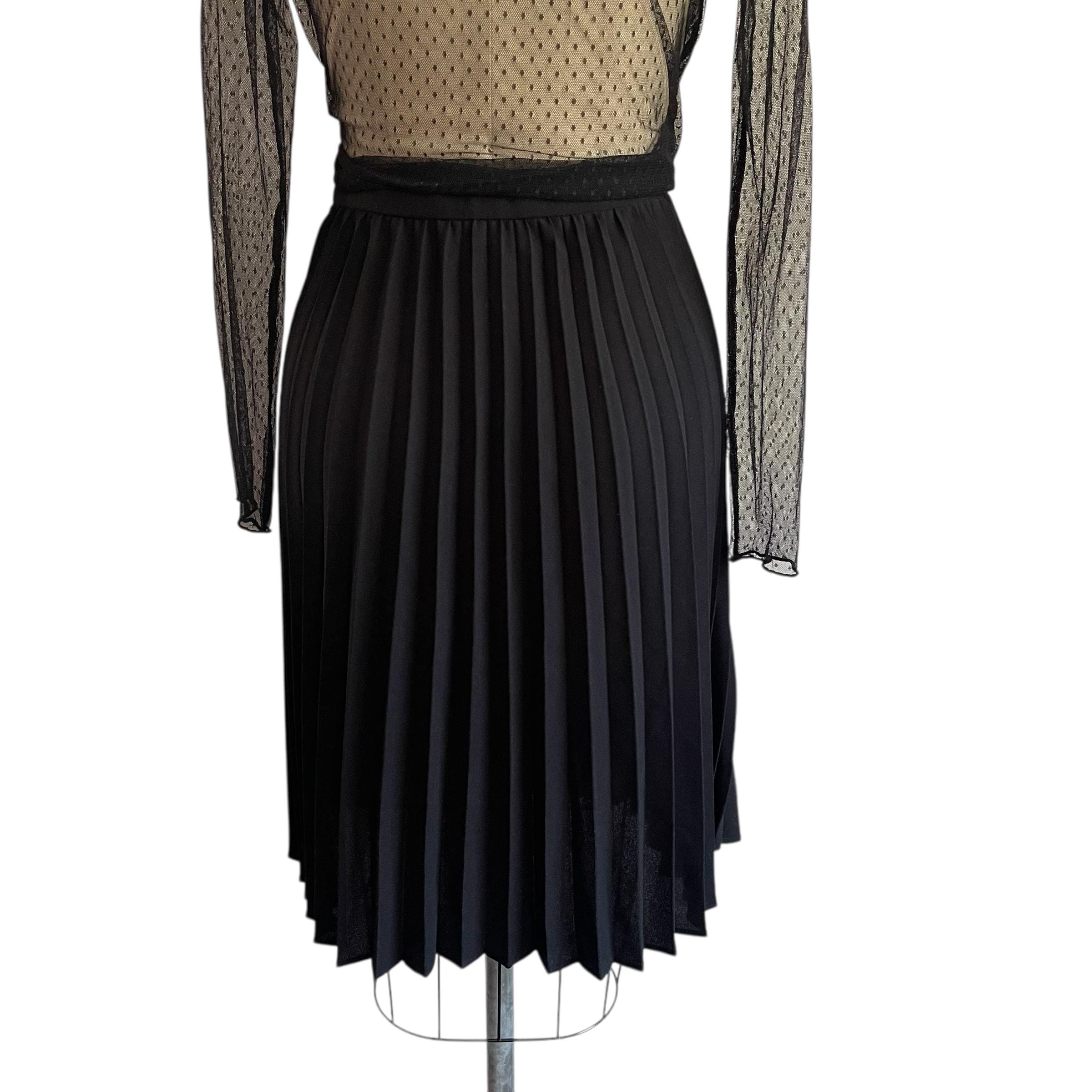 Vintage Goth Black Pleated Midi Skirt: Dark Mid-Length Skirt, Party Skirt, Night Out Skirt, Gothic, Alt Skirt, 90s Y2K Skirt