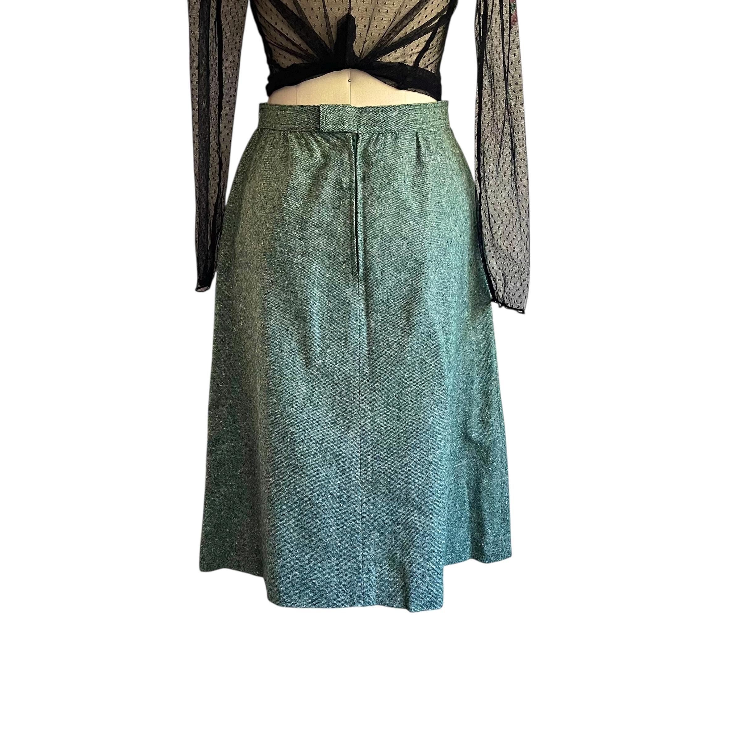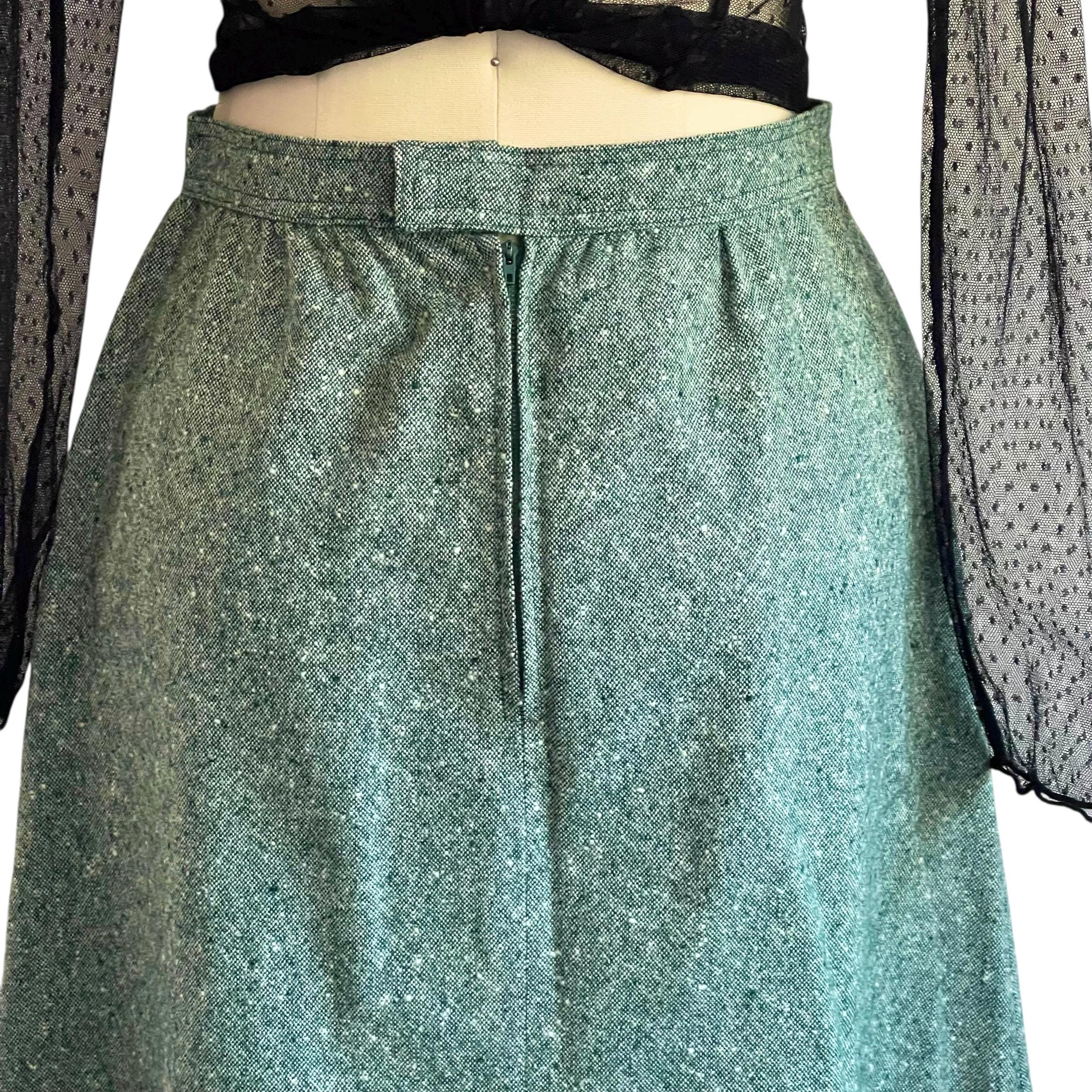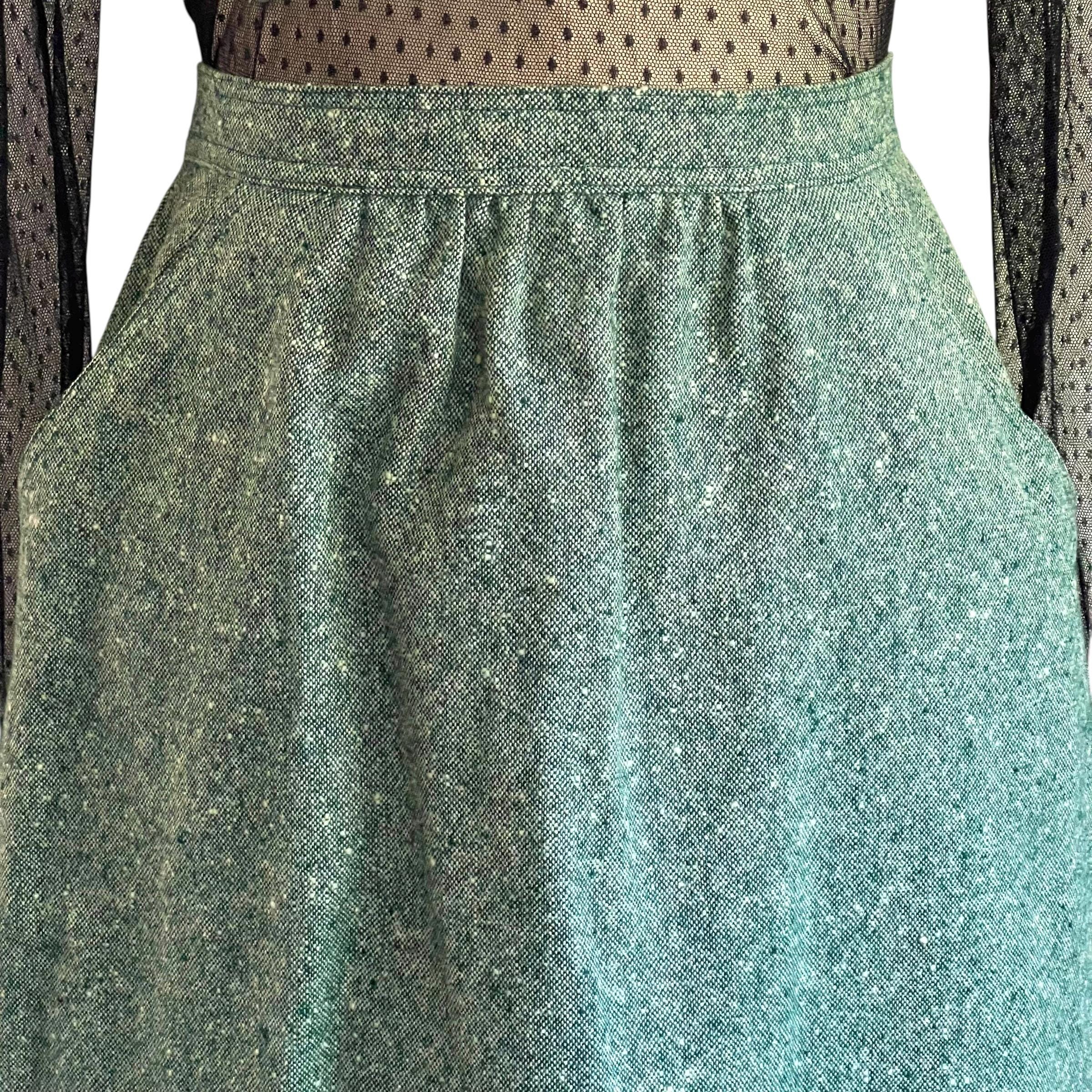 Vintage Sea Green Casual A-Line Skirt: Everyday Green Skirt, Pockets, Back Zipper, Retro Green Skirt, Autumn, Fall, 60s 70s 80s Skirt