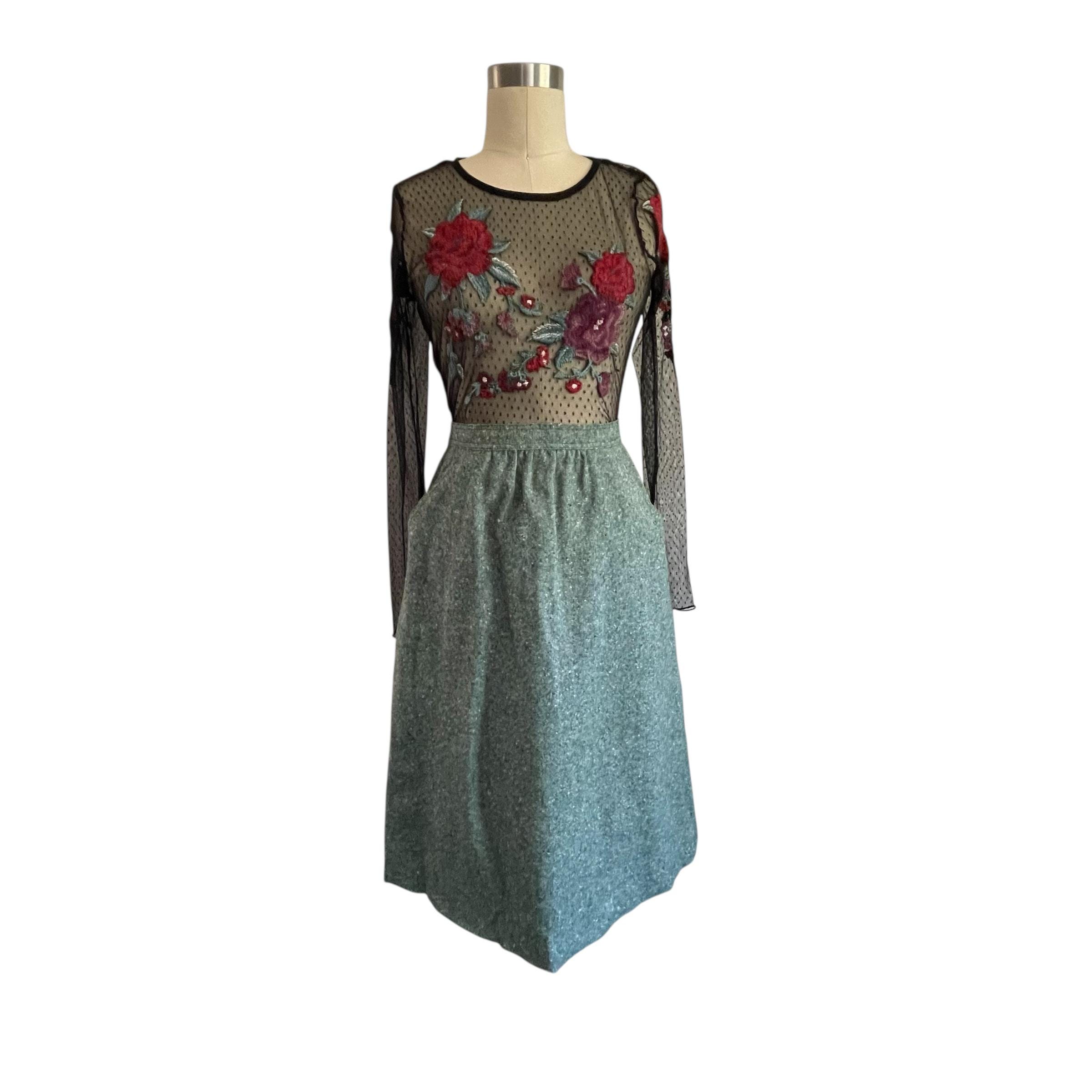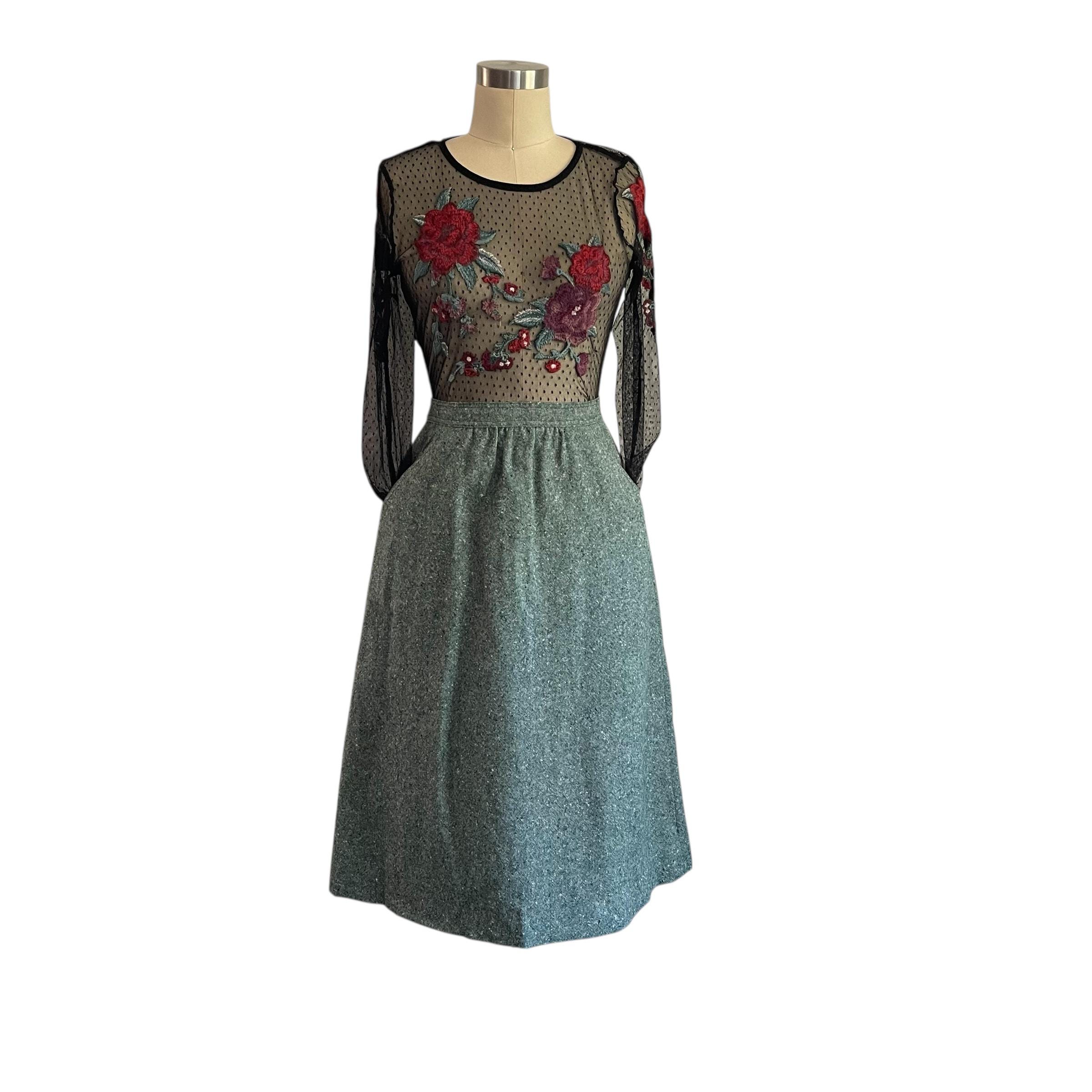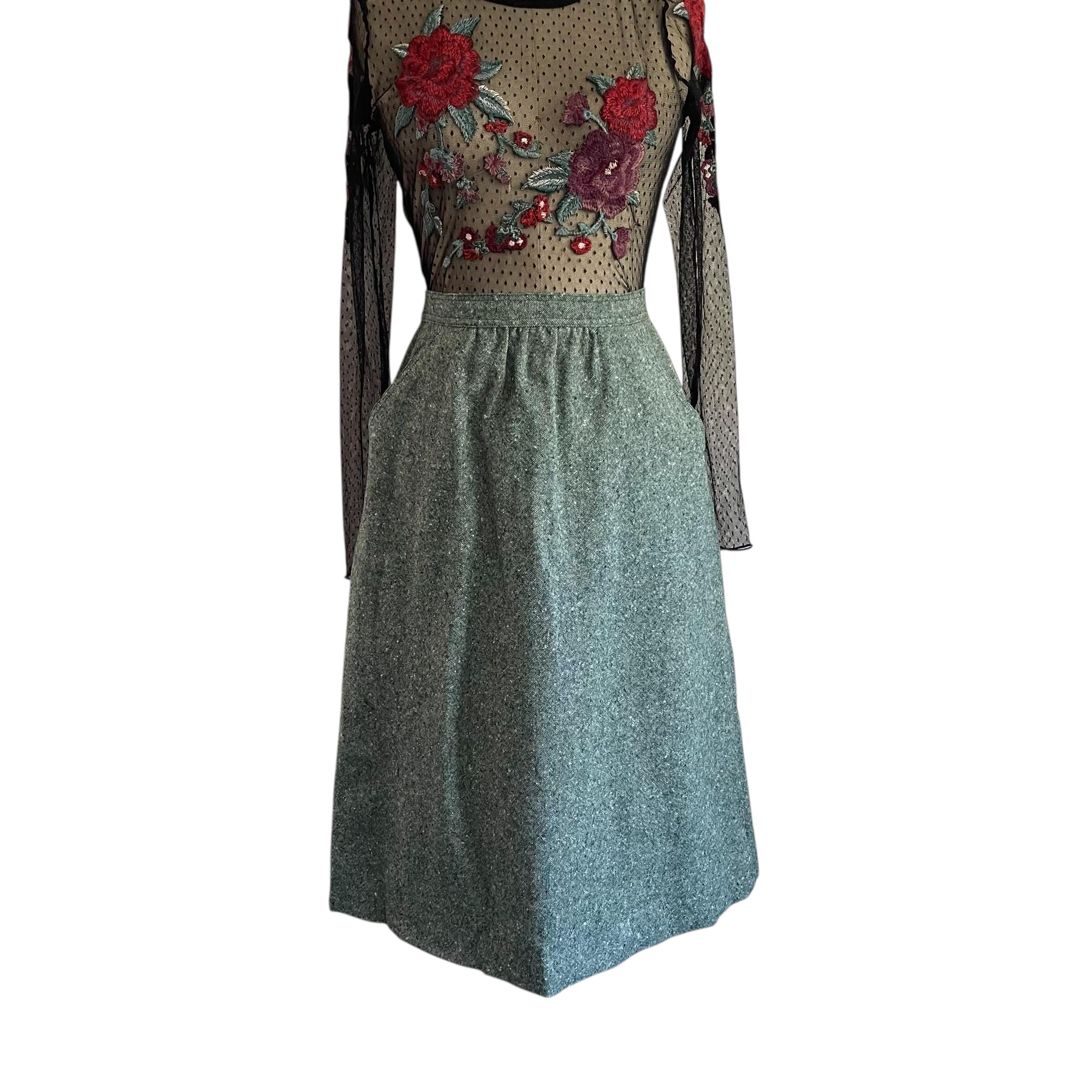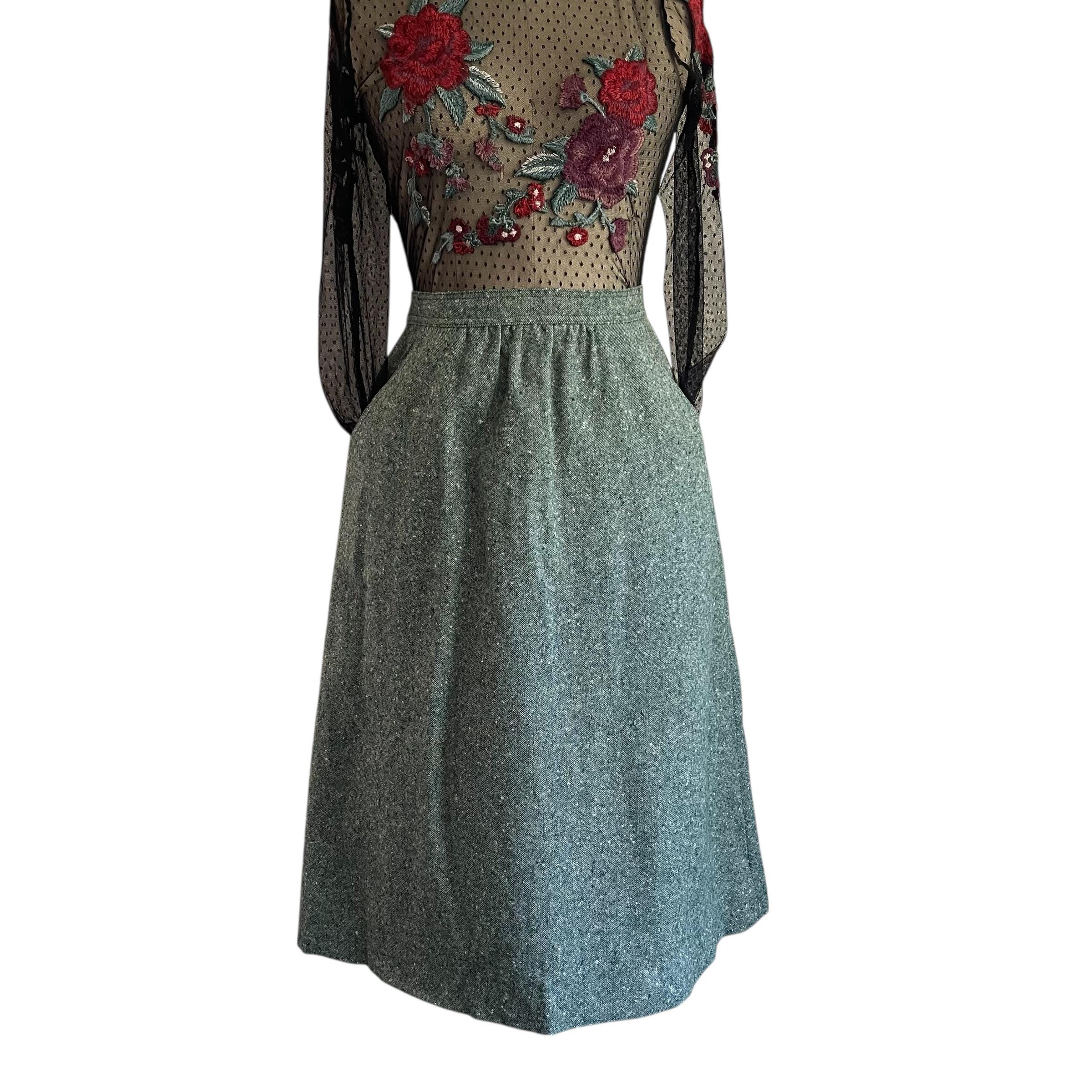 Vintage Sea Green Casual A-Line Skirt: Everyday Green Skirt, Pockets, Back Zipper, Retro Green Skirt, Autumn, Fall, 60s 70s 80s Skirt