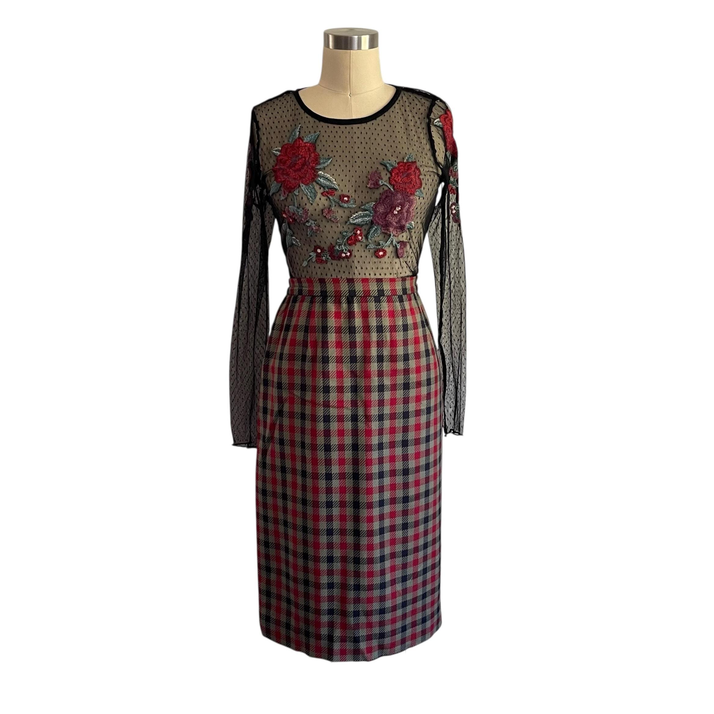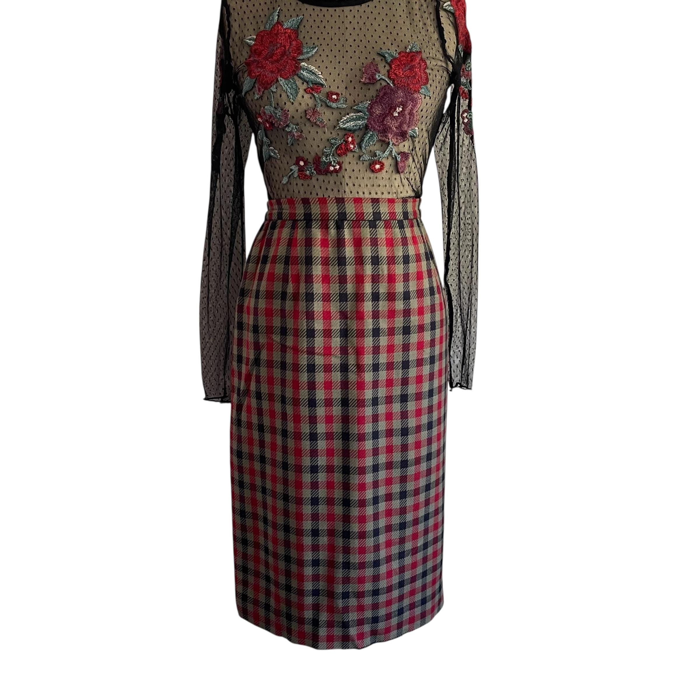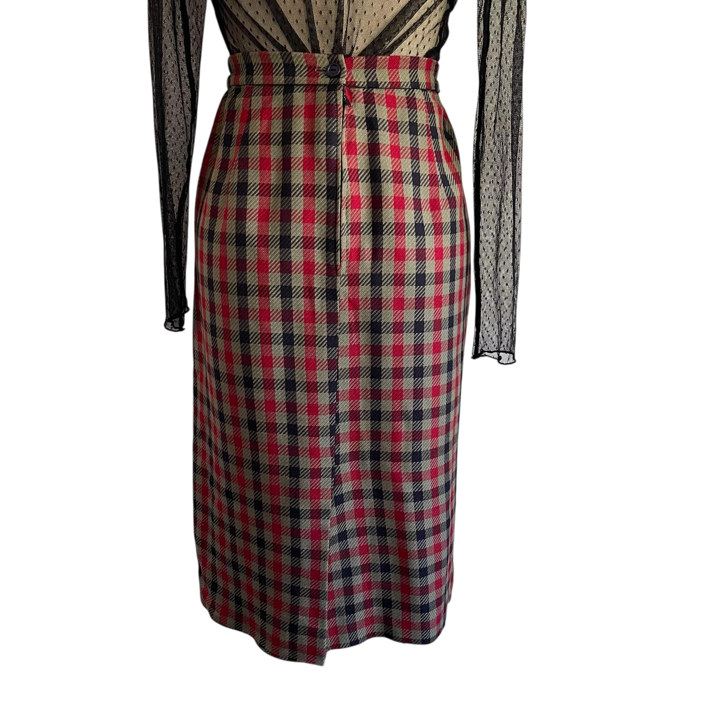 Vintage Multicolor Checked Grunge Pencil Skirt: Checkered Alt Skirt, Button and Zipper, Casual, 70s 80s 90s Skirt