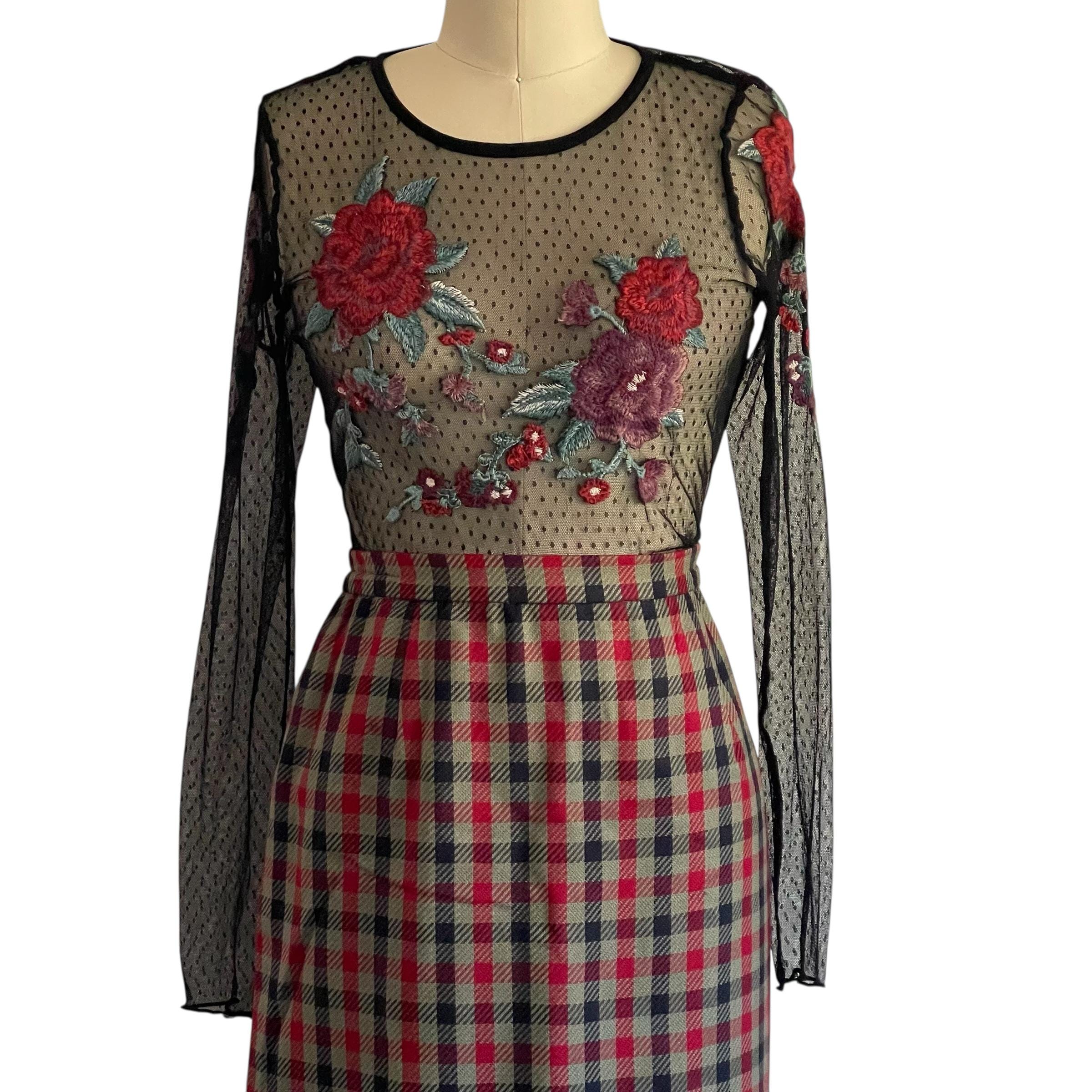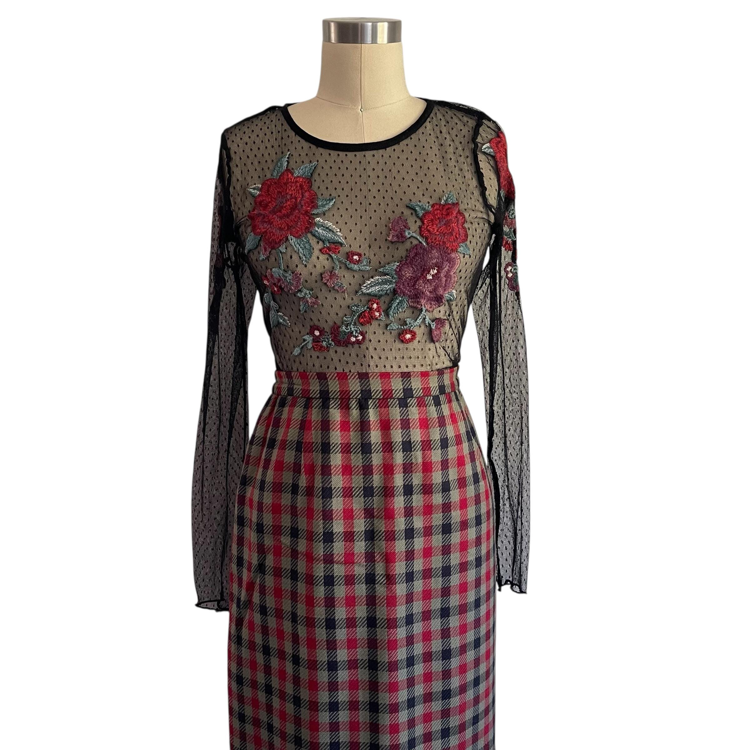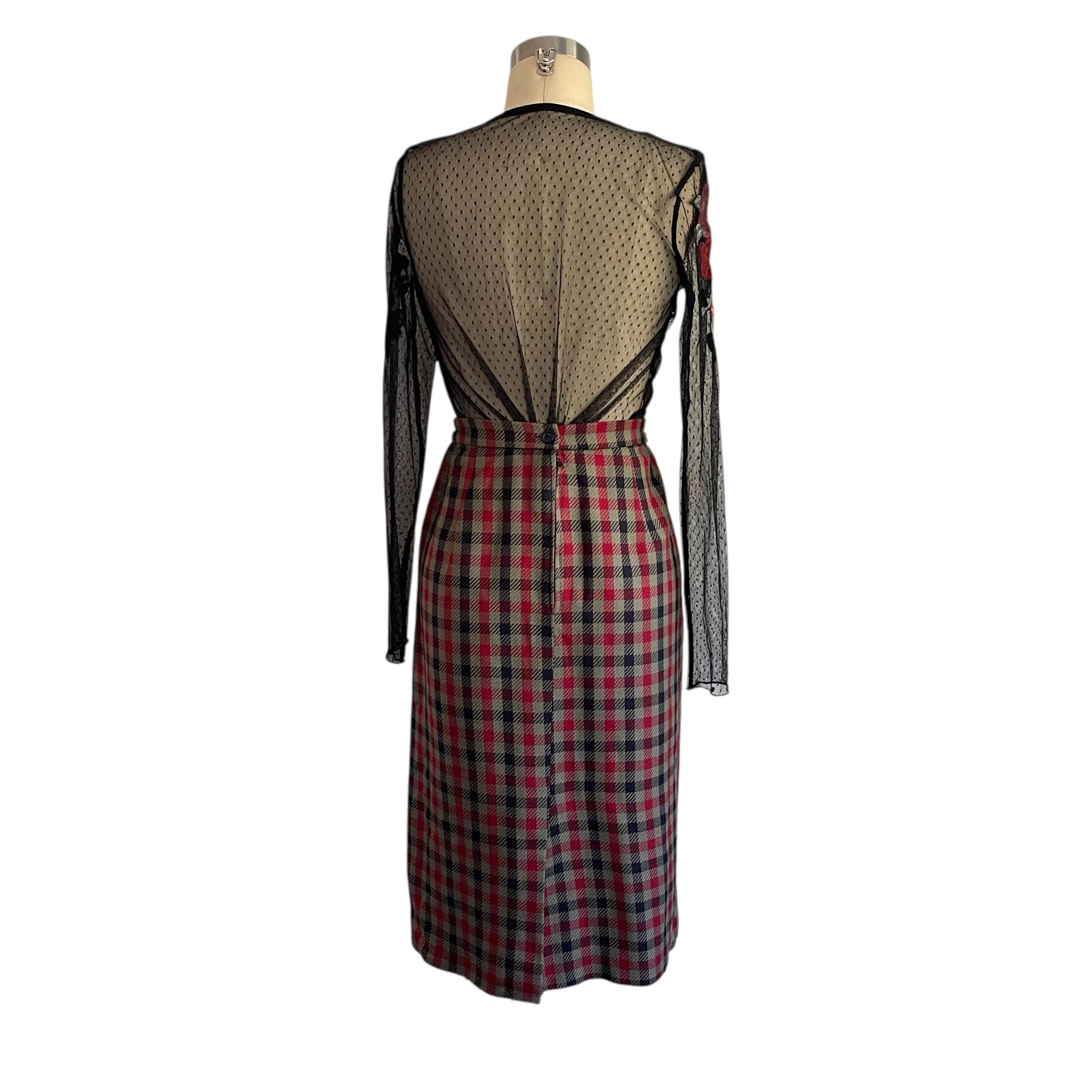 Vintage Multicolor Checked Grunge Pencil Skirt: Checkered Alt Skirt, Button and Zipper, Casual, 70s 80s 90s Skirt