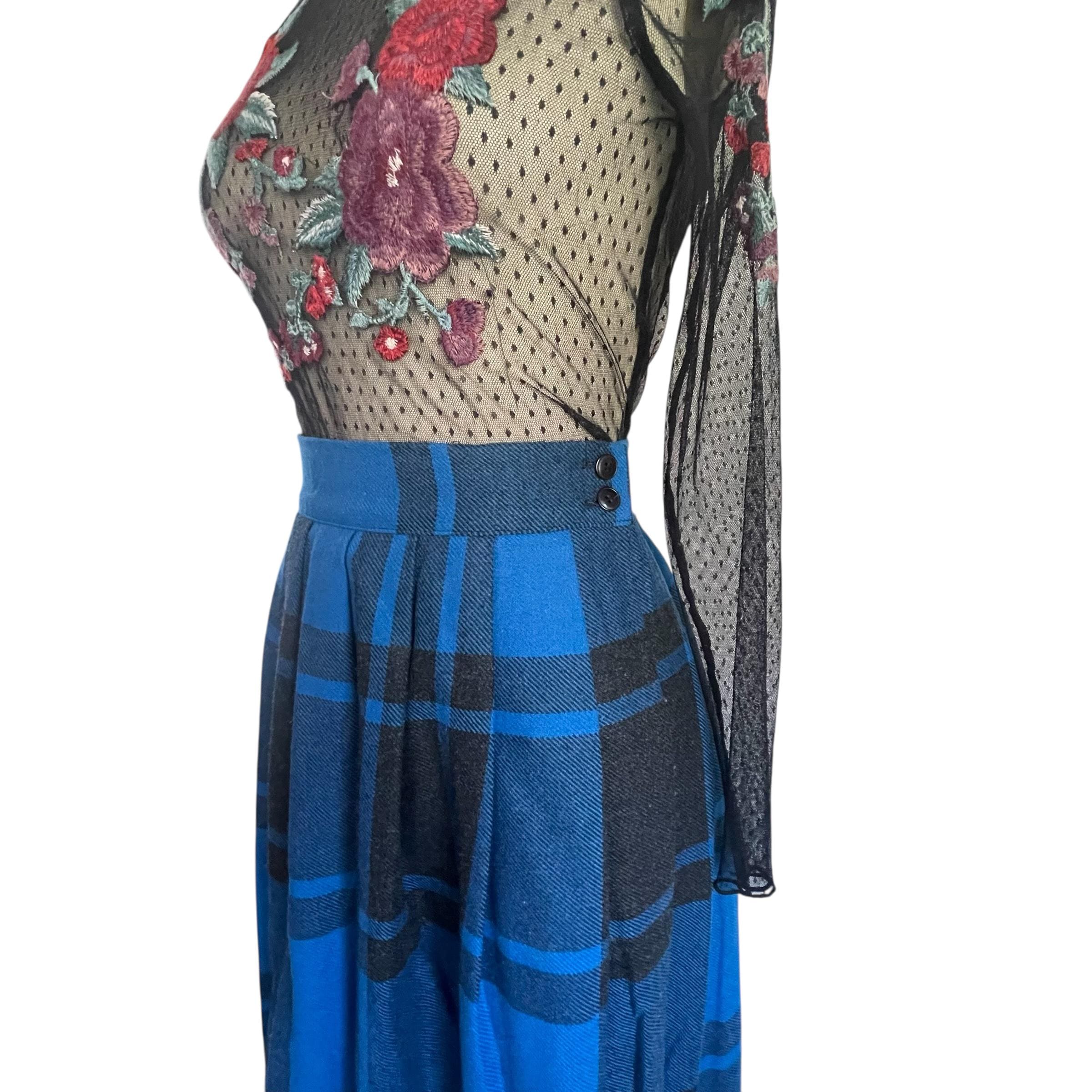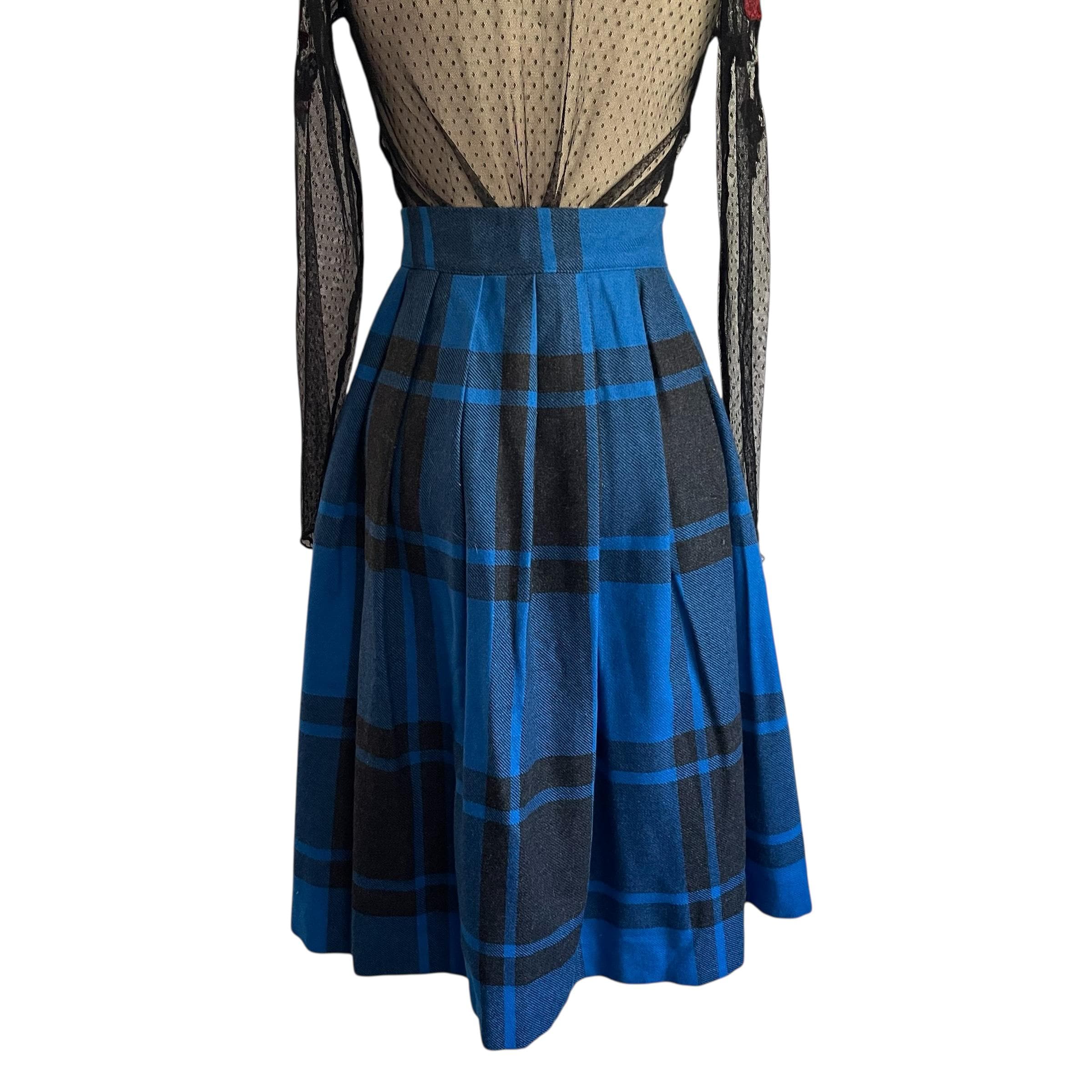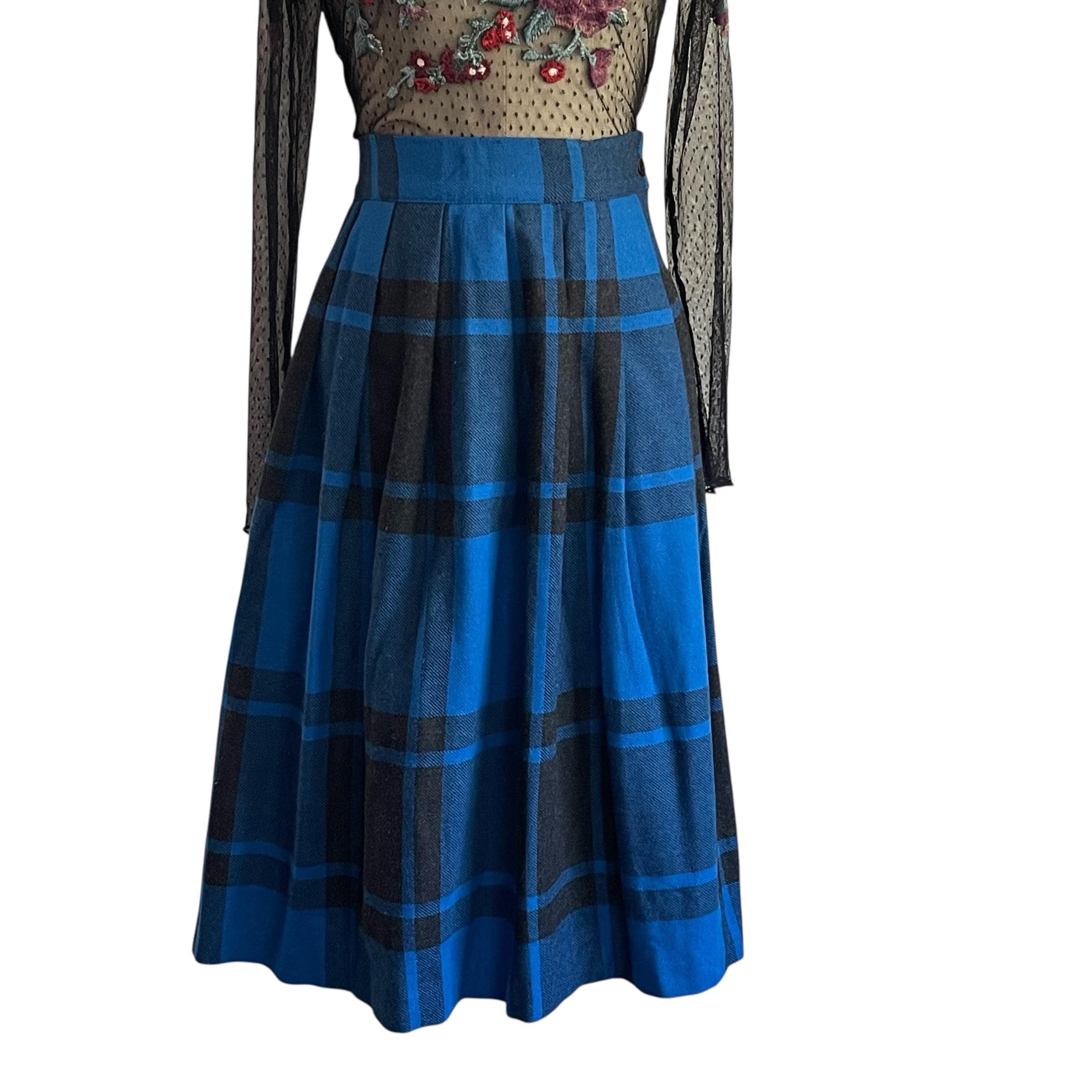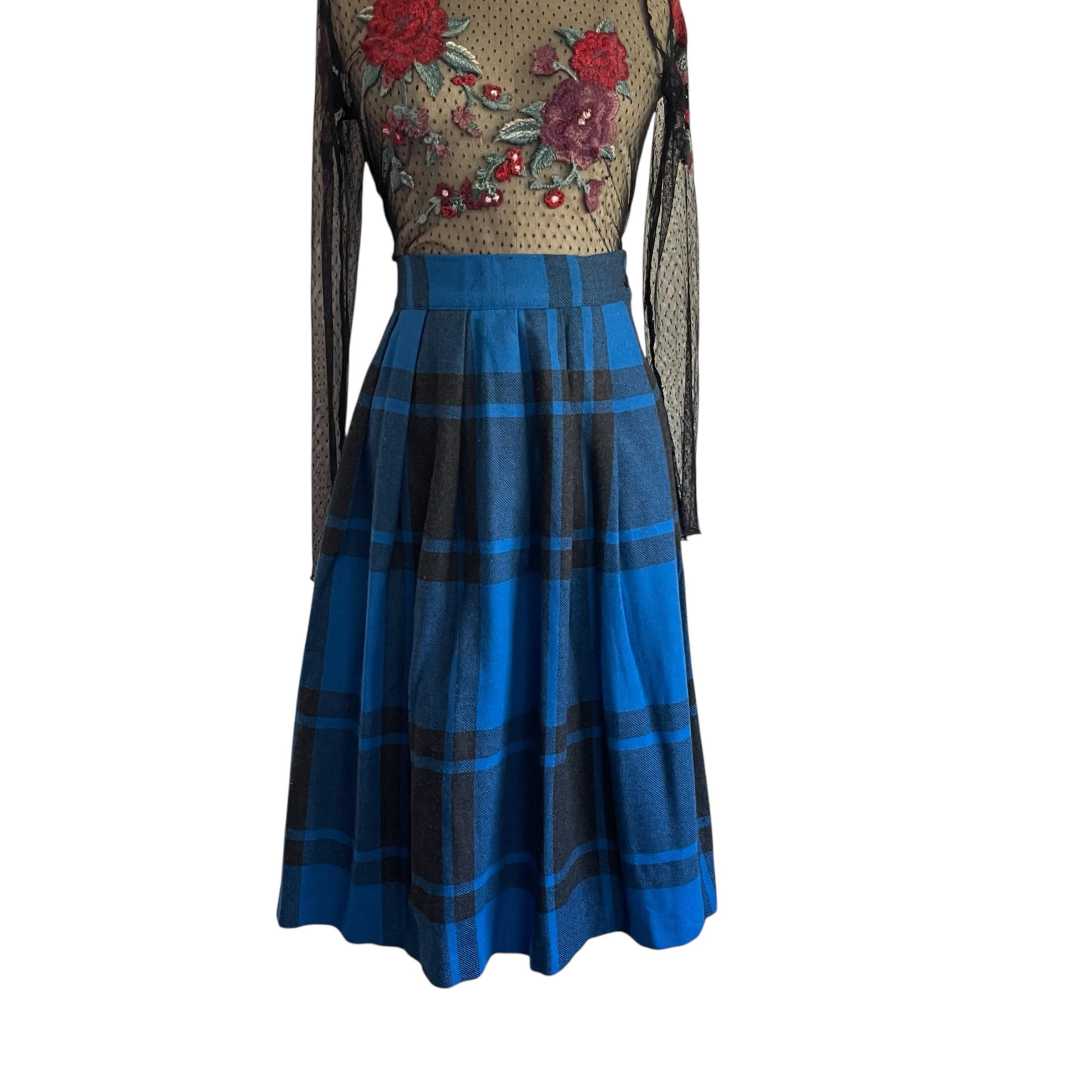 Vintage rrrrruss Black and Blue Plaid Semi-Pleated Skirt: Bright A-Line Plaid Skirt, Indie, Alt Rocker Skirt, 90s Y2K Plaid Skirt