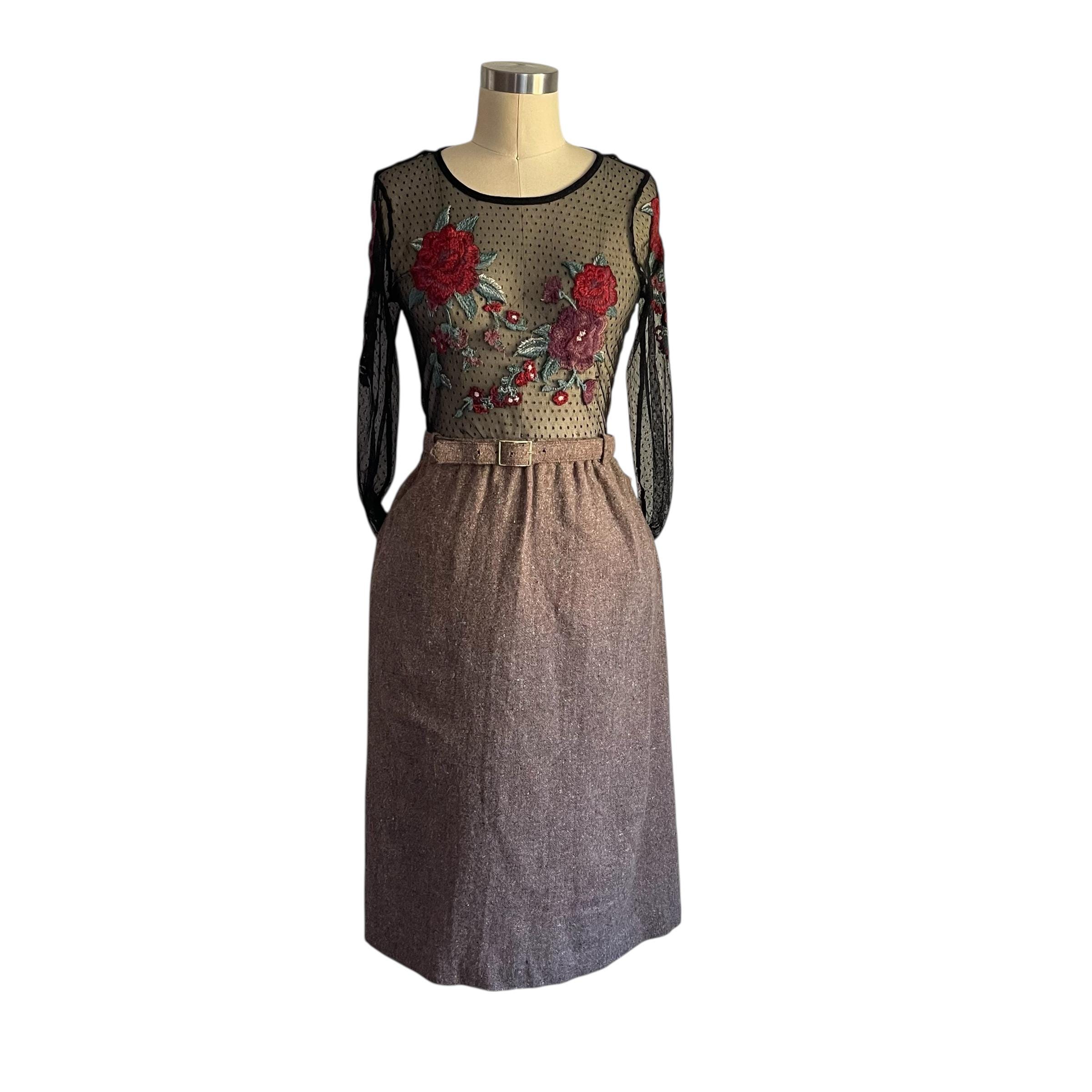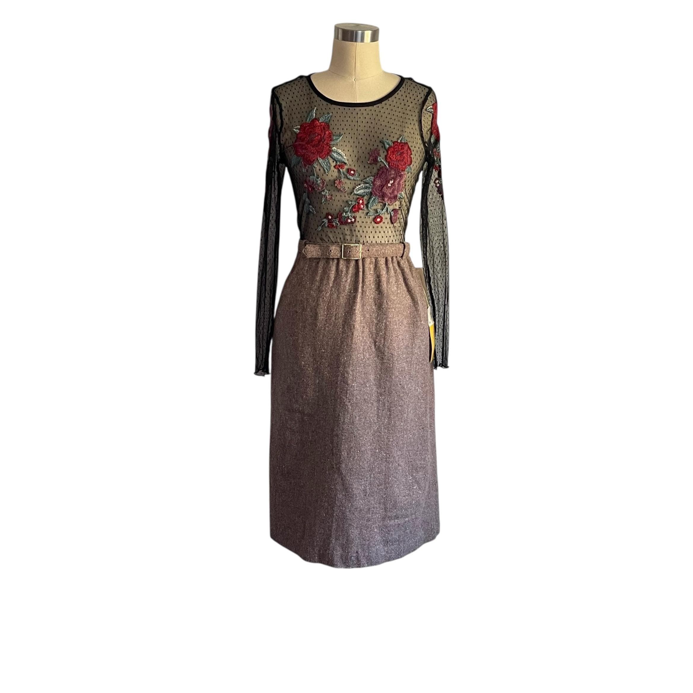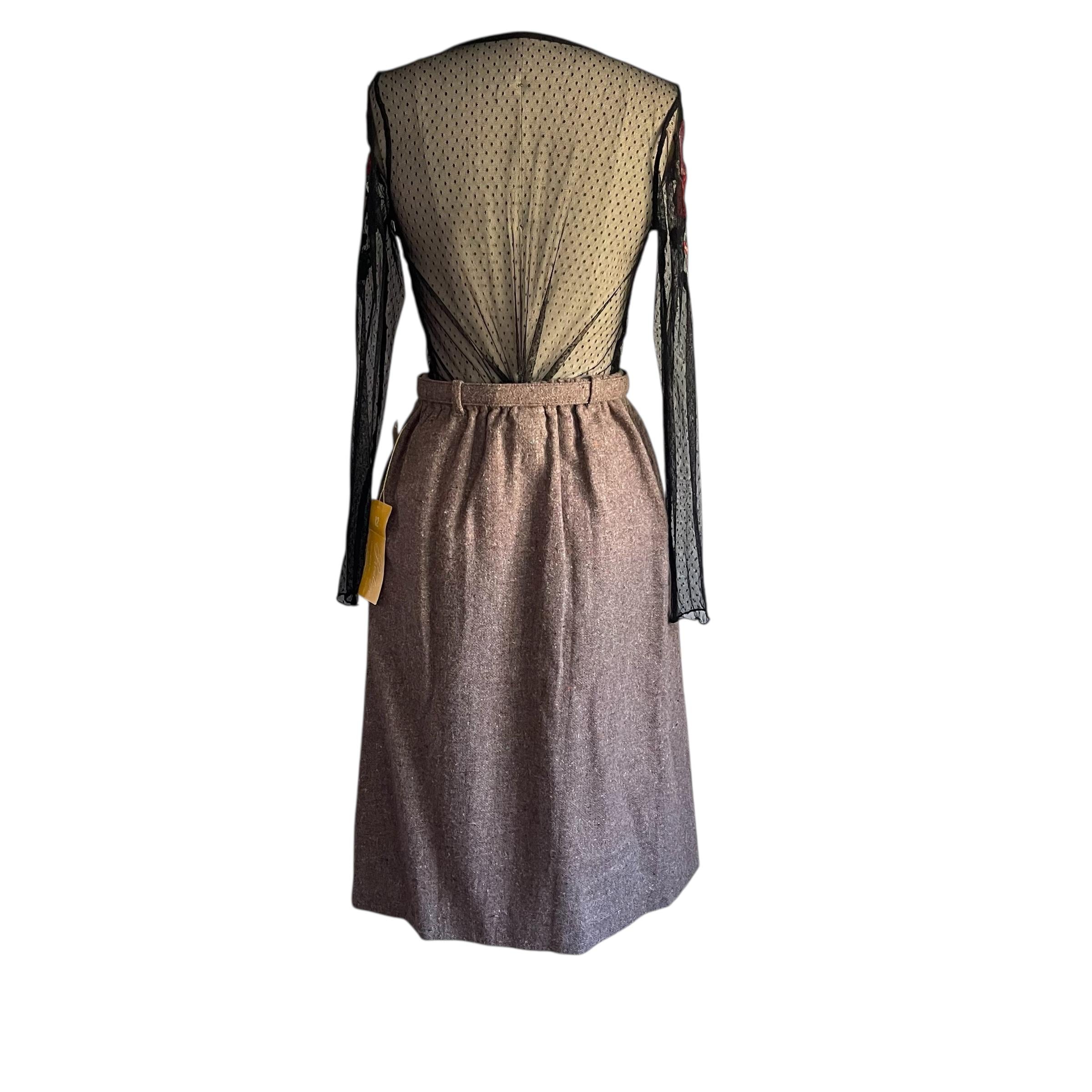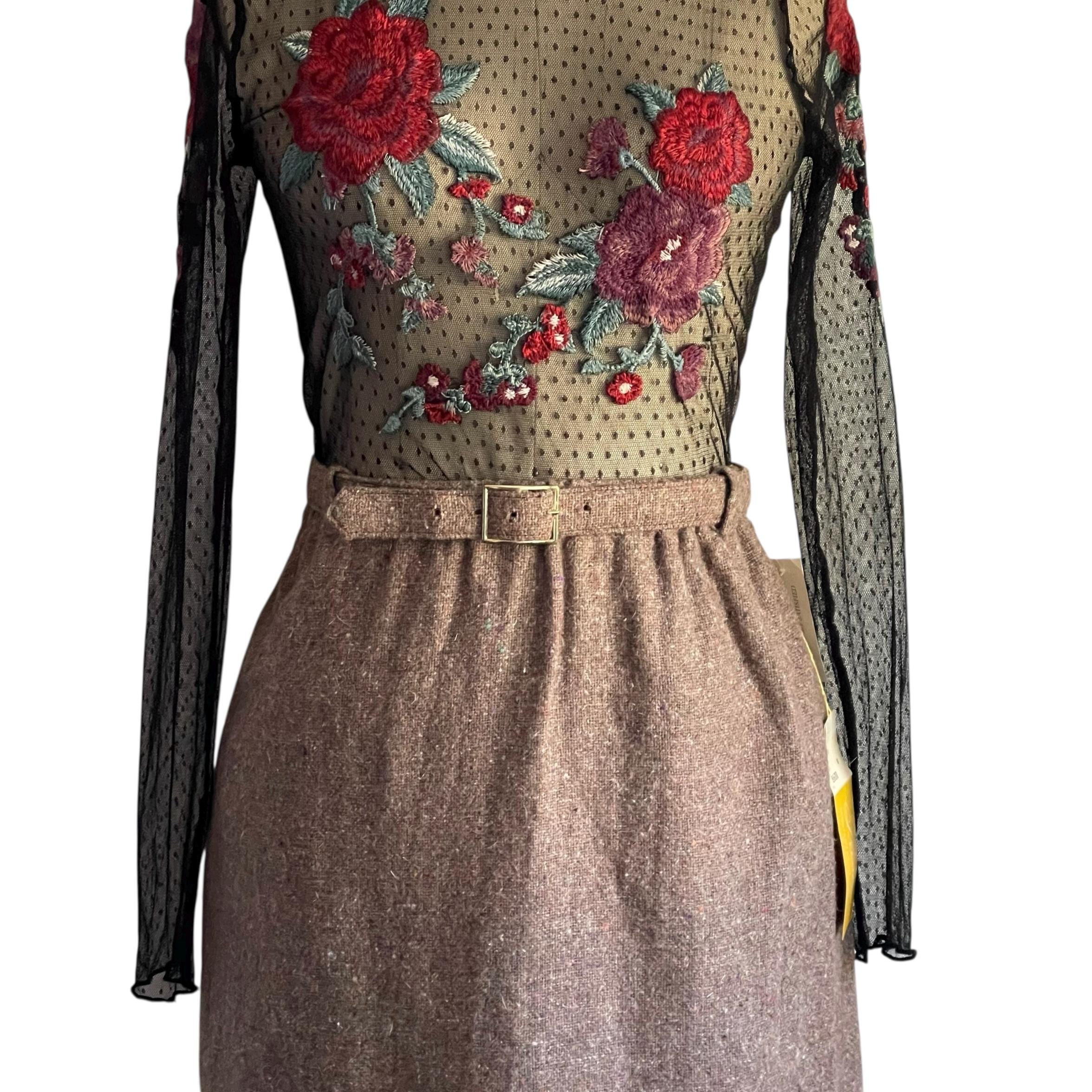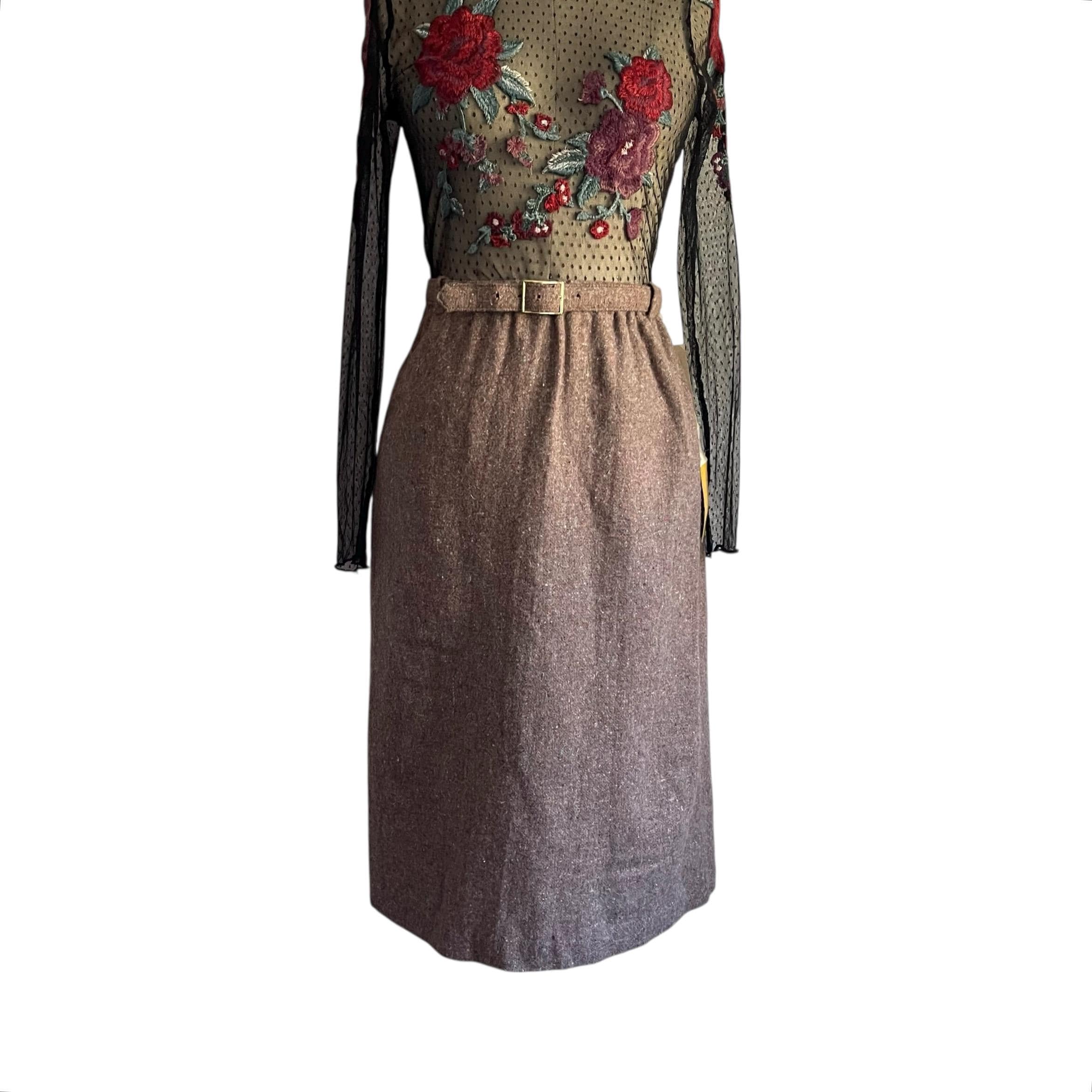 Vintage Prestige NWT Light Warm Brown Pencil Skirt w/Belt: Retro Business Casual Skirt, Skirt + Belt Combo, 70s 80s 90s Skirt