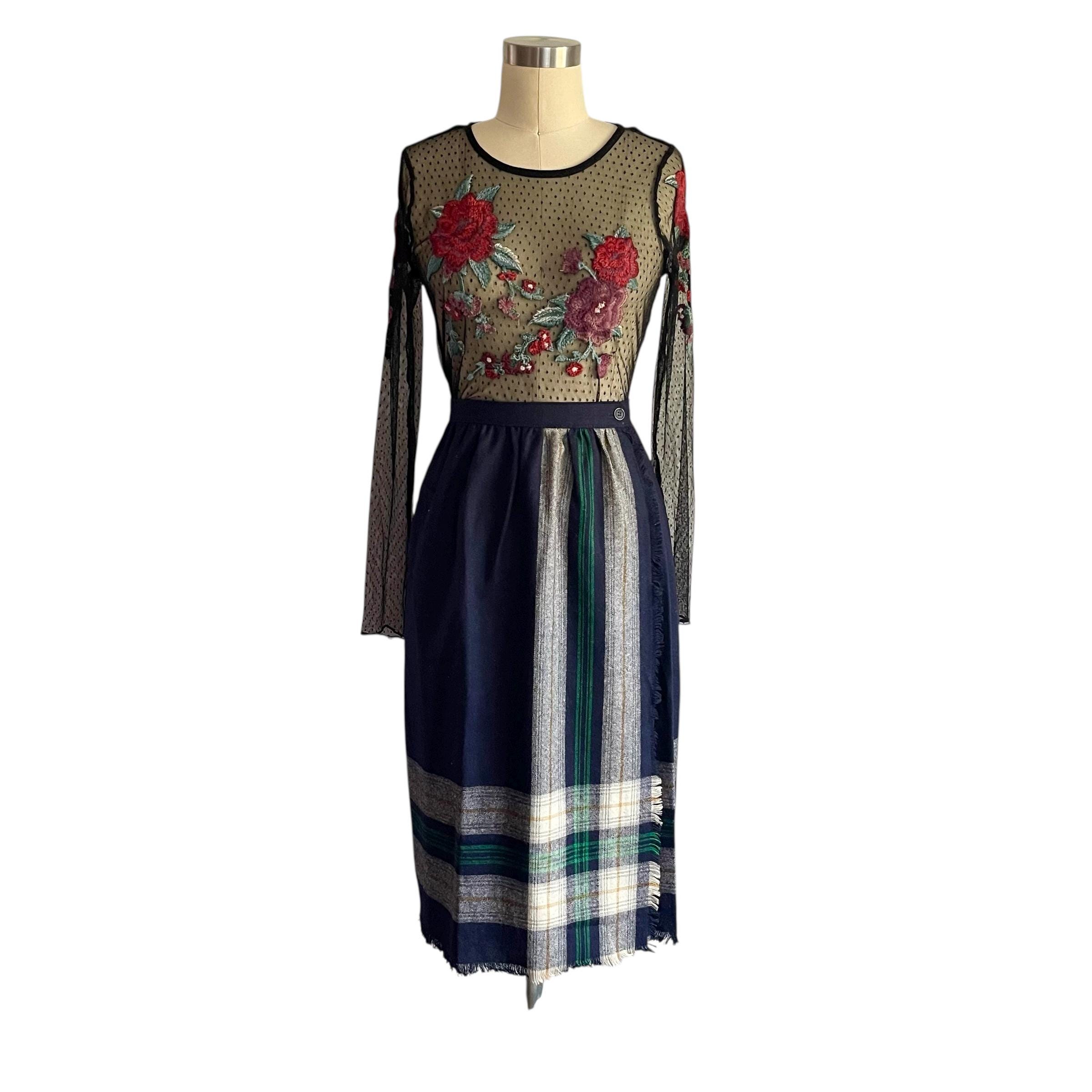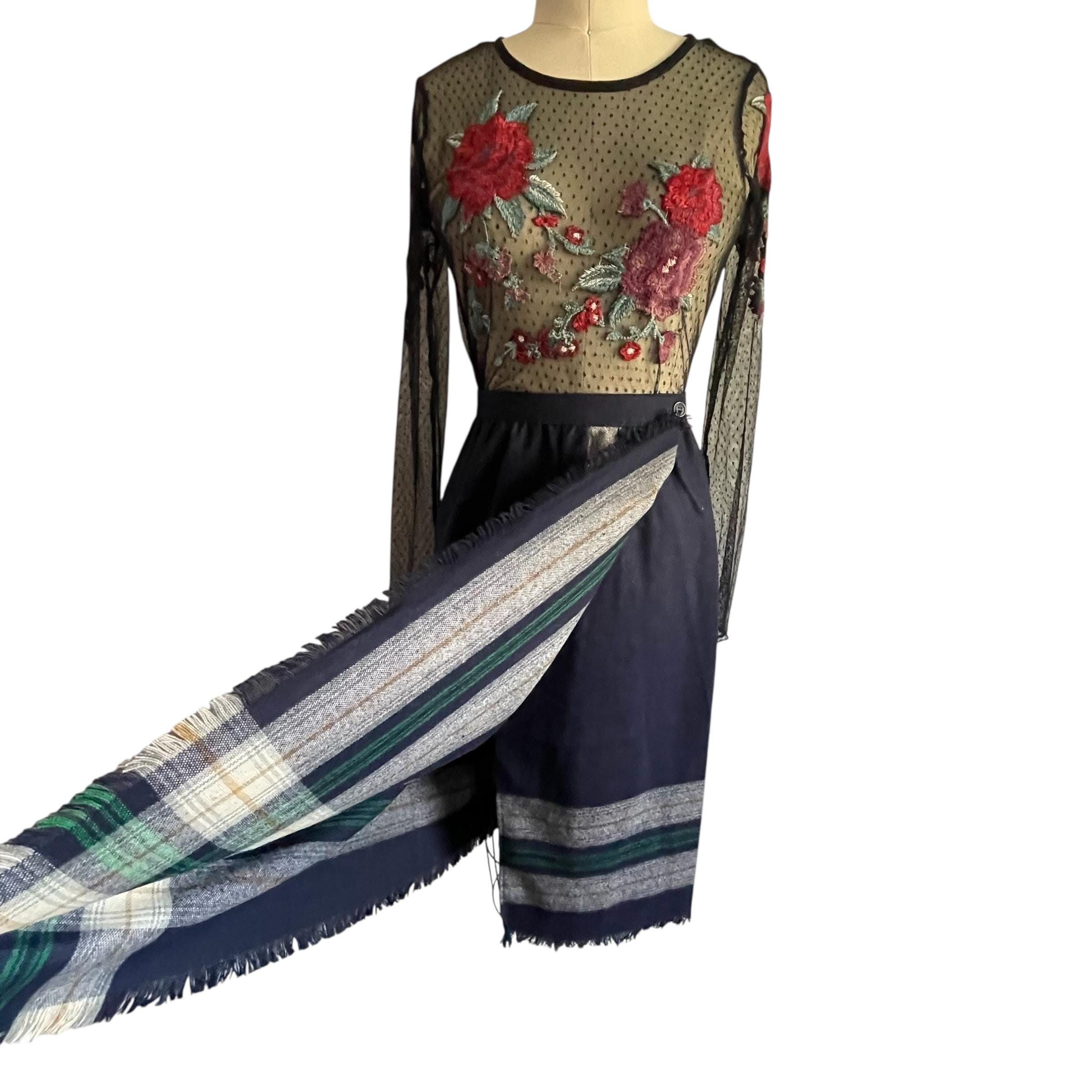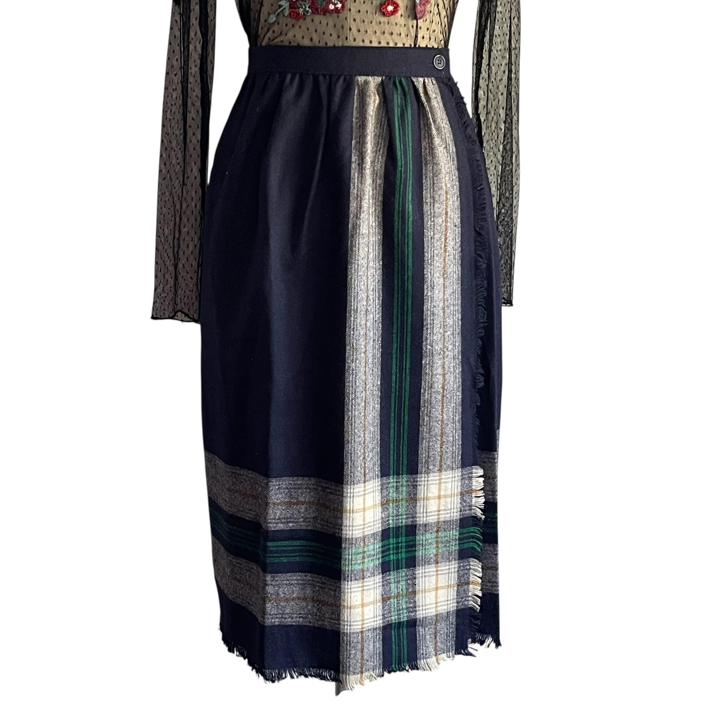 Vintage Dark Hippie Striped Plaid Wrap Skirt: A-Line Multicolor Skirt, Coastal, Grunge, 80s 90s Y2K Wrap Skirt.