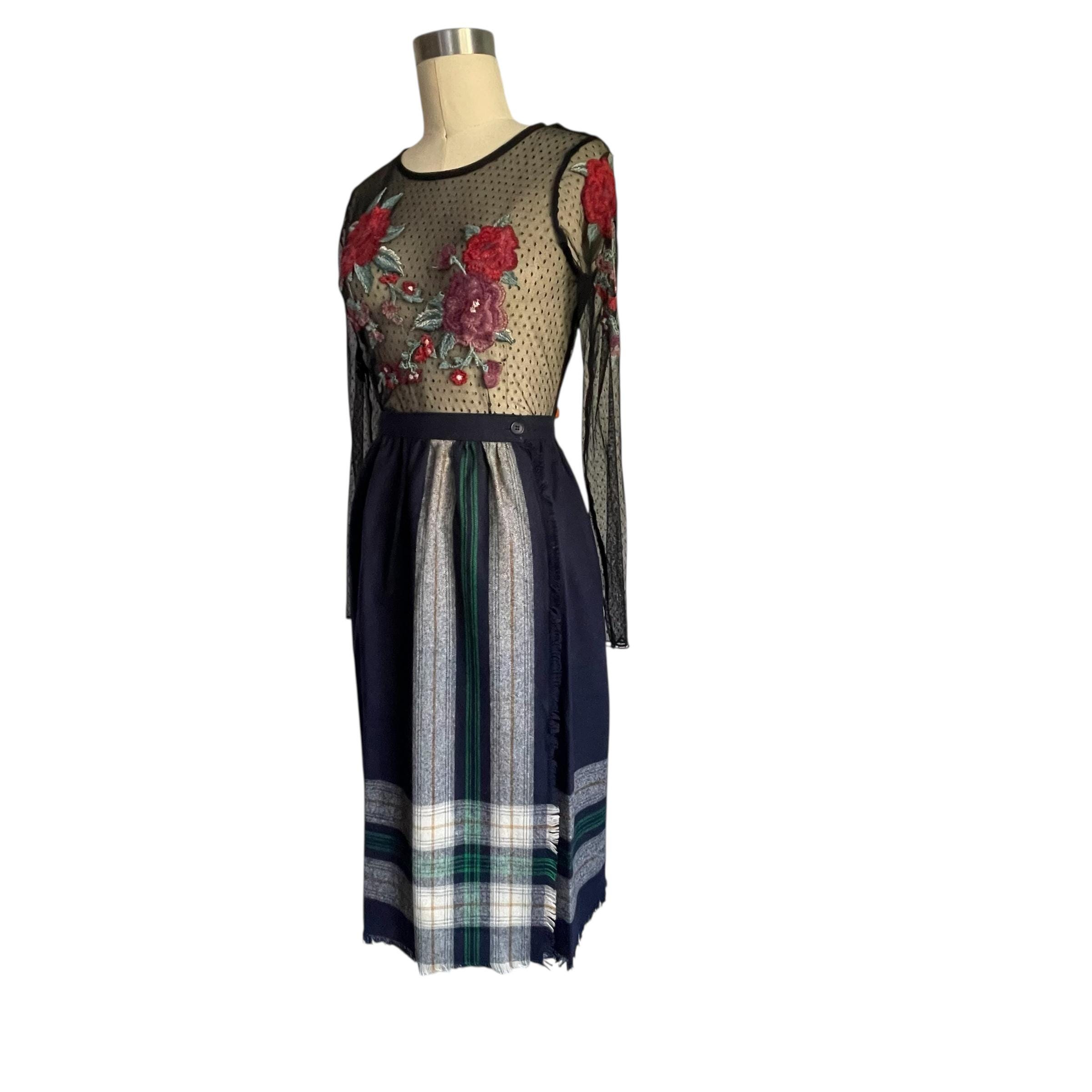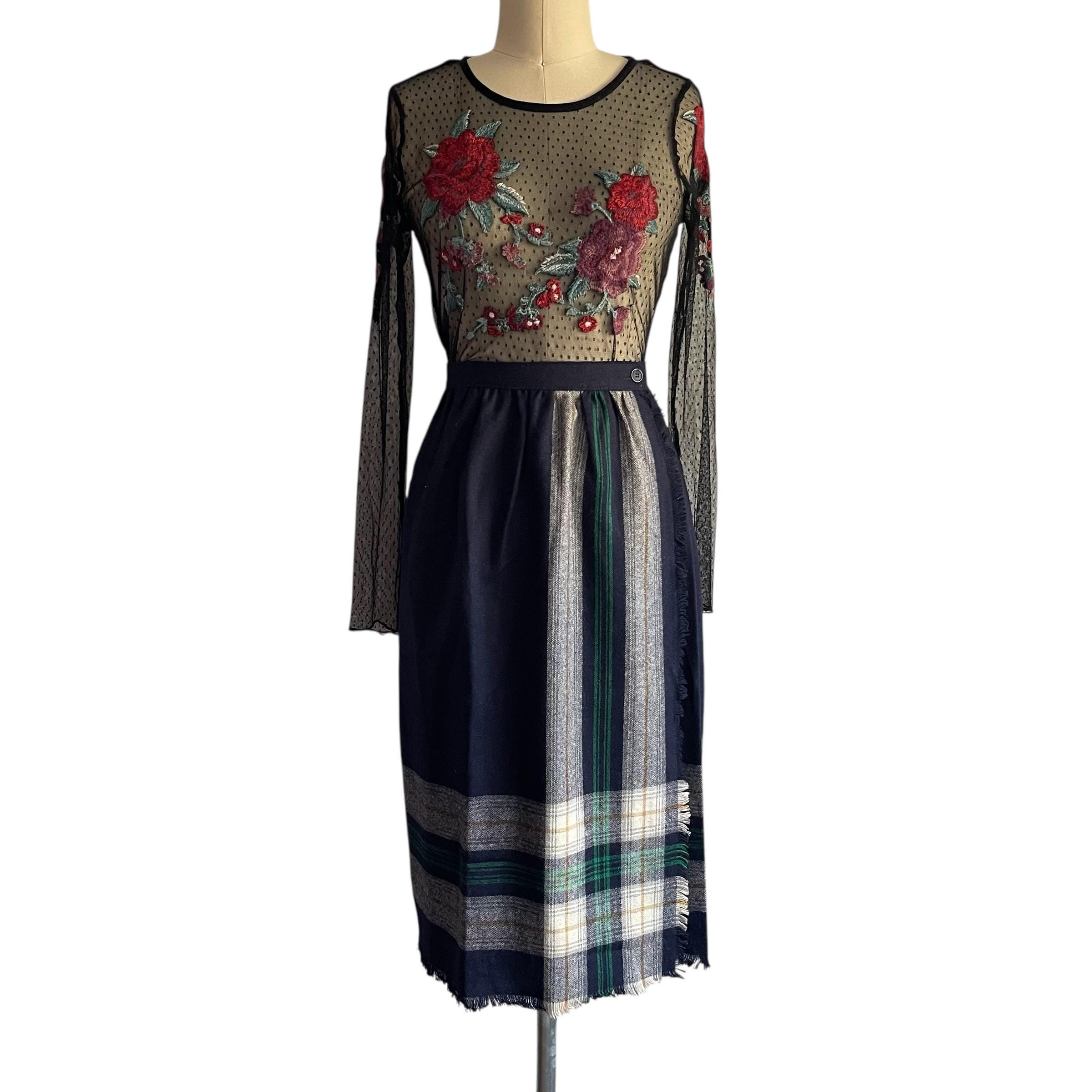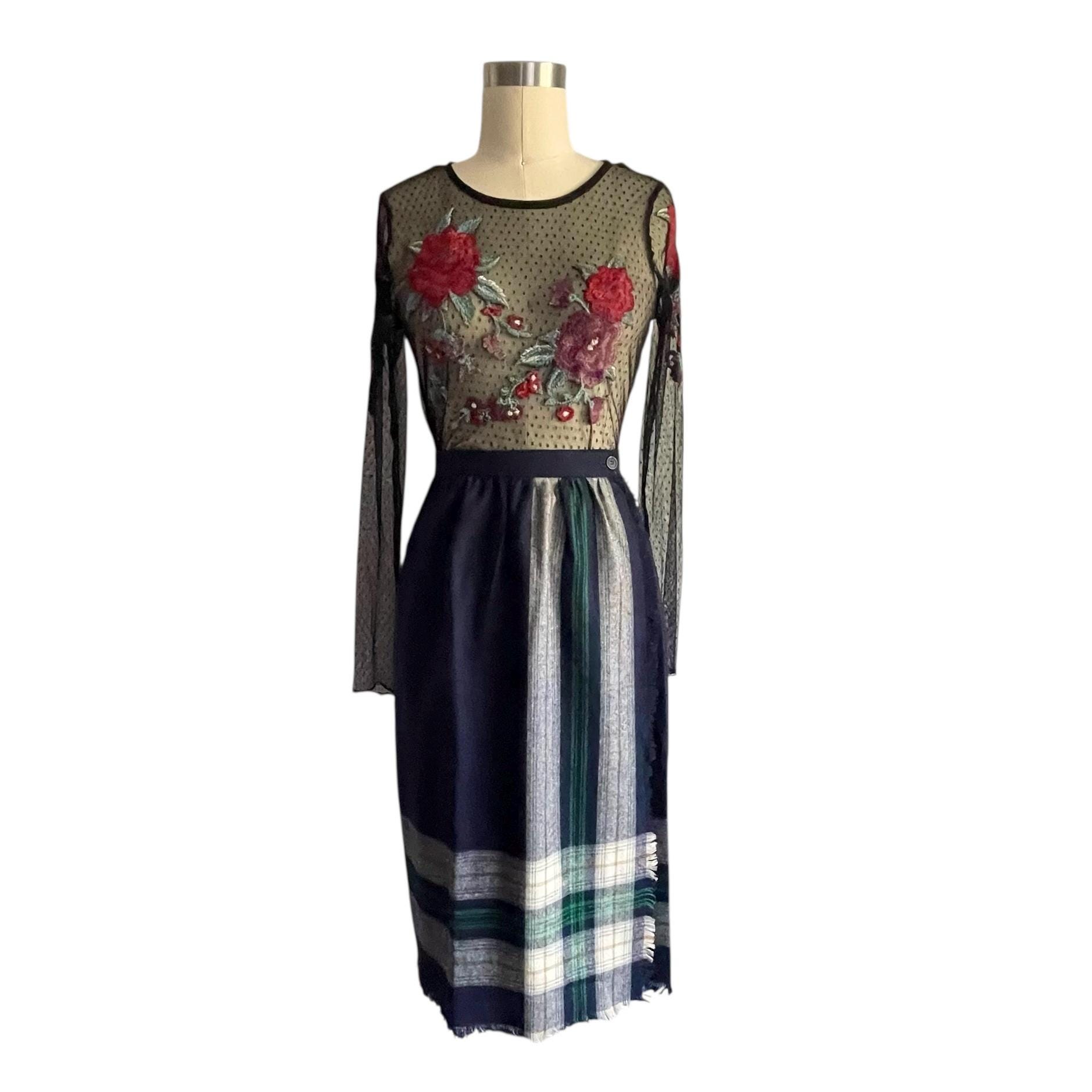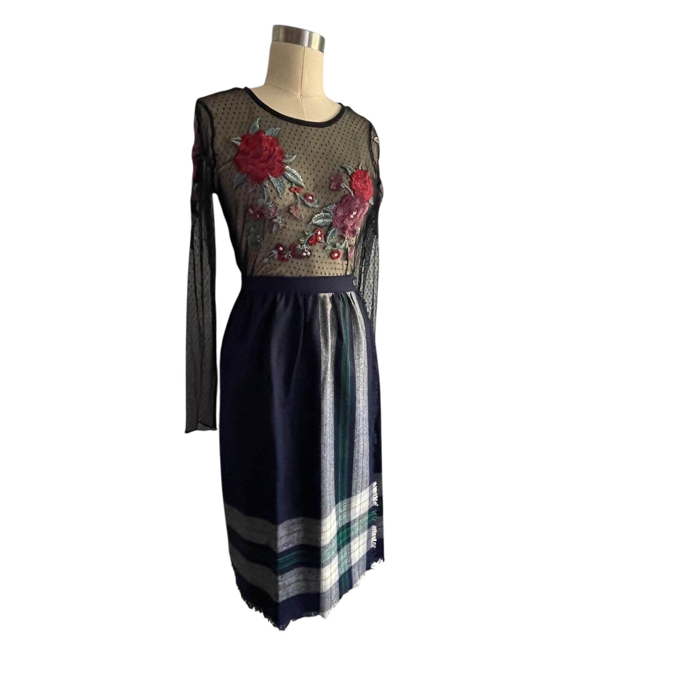 Vintage Dark Hippie Striped Plaid Wrap Skirt: A-Line Multicolor Skirt, Coastal, Grunge, 80s 90s Y2K Wrap Skirt.