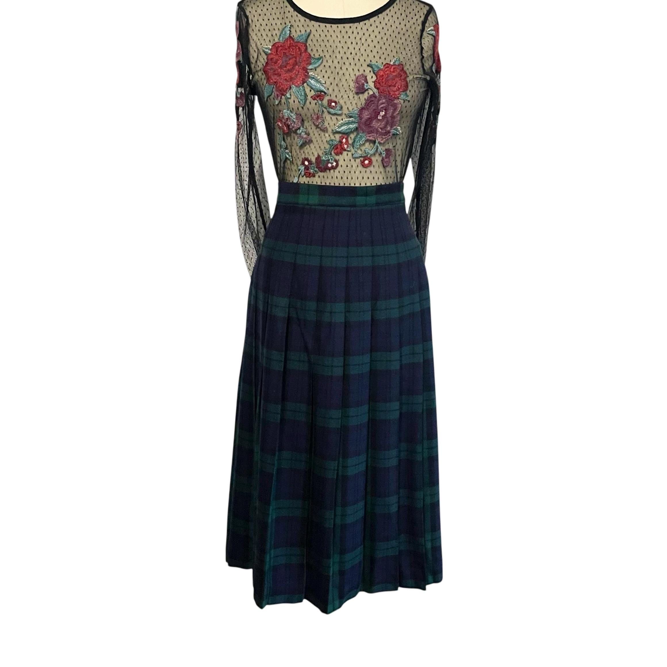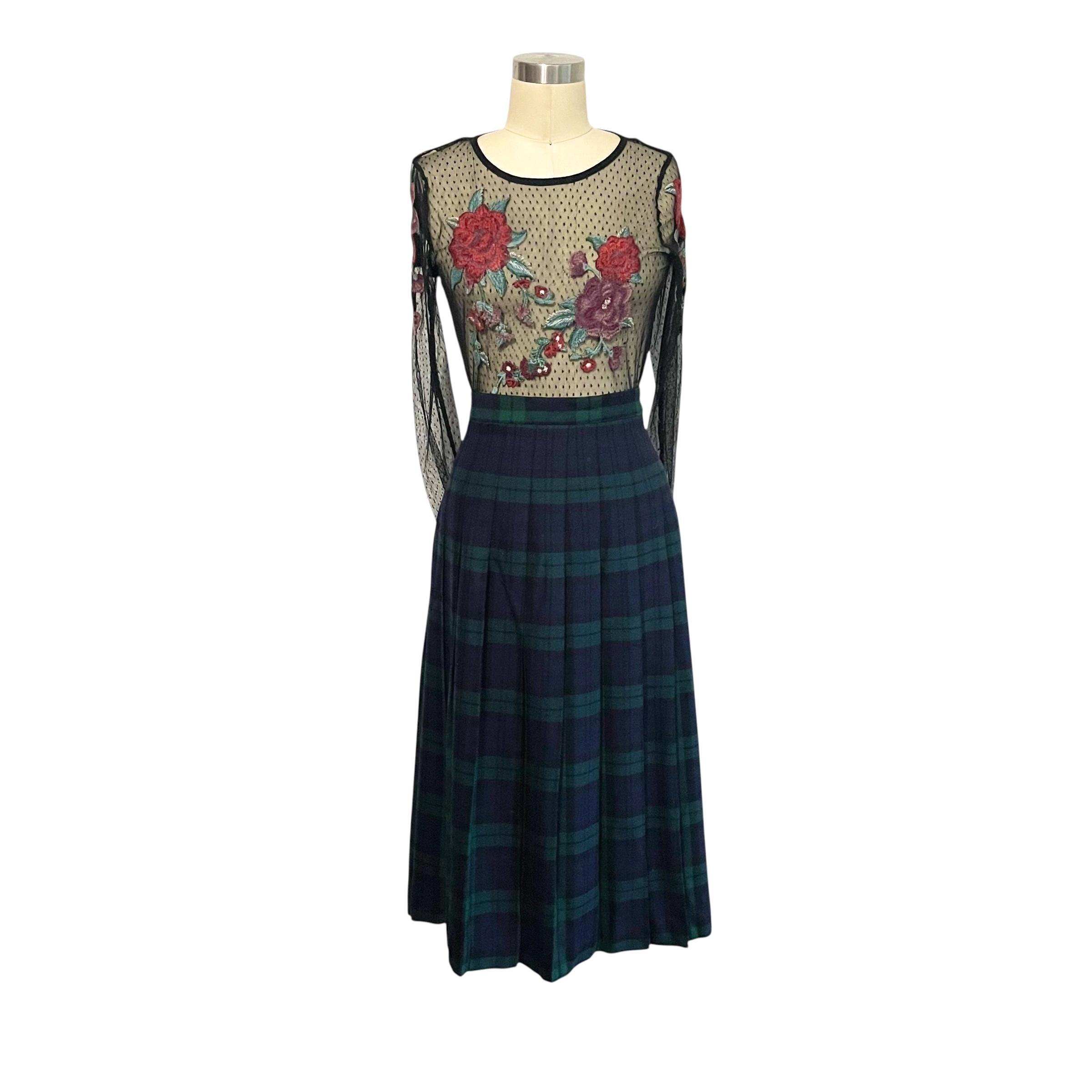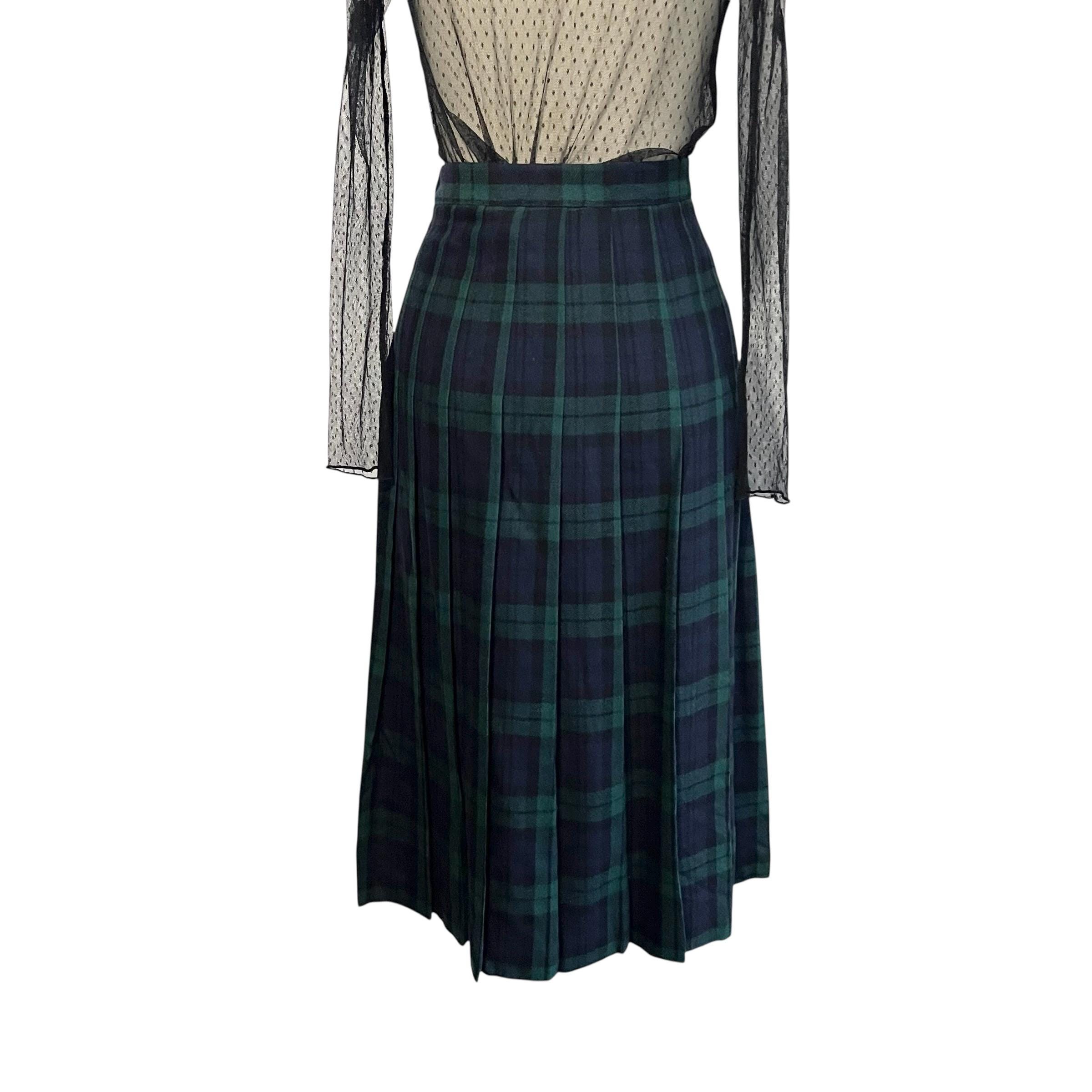 Vintage L.L. Bean Dark Blue and Green Plaid Skirt: A-Line Skirt, Cool Colors, Dark Academia, Grunge, Indie, 70s 80s 90s Skirt