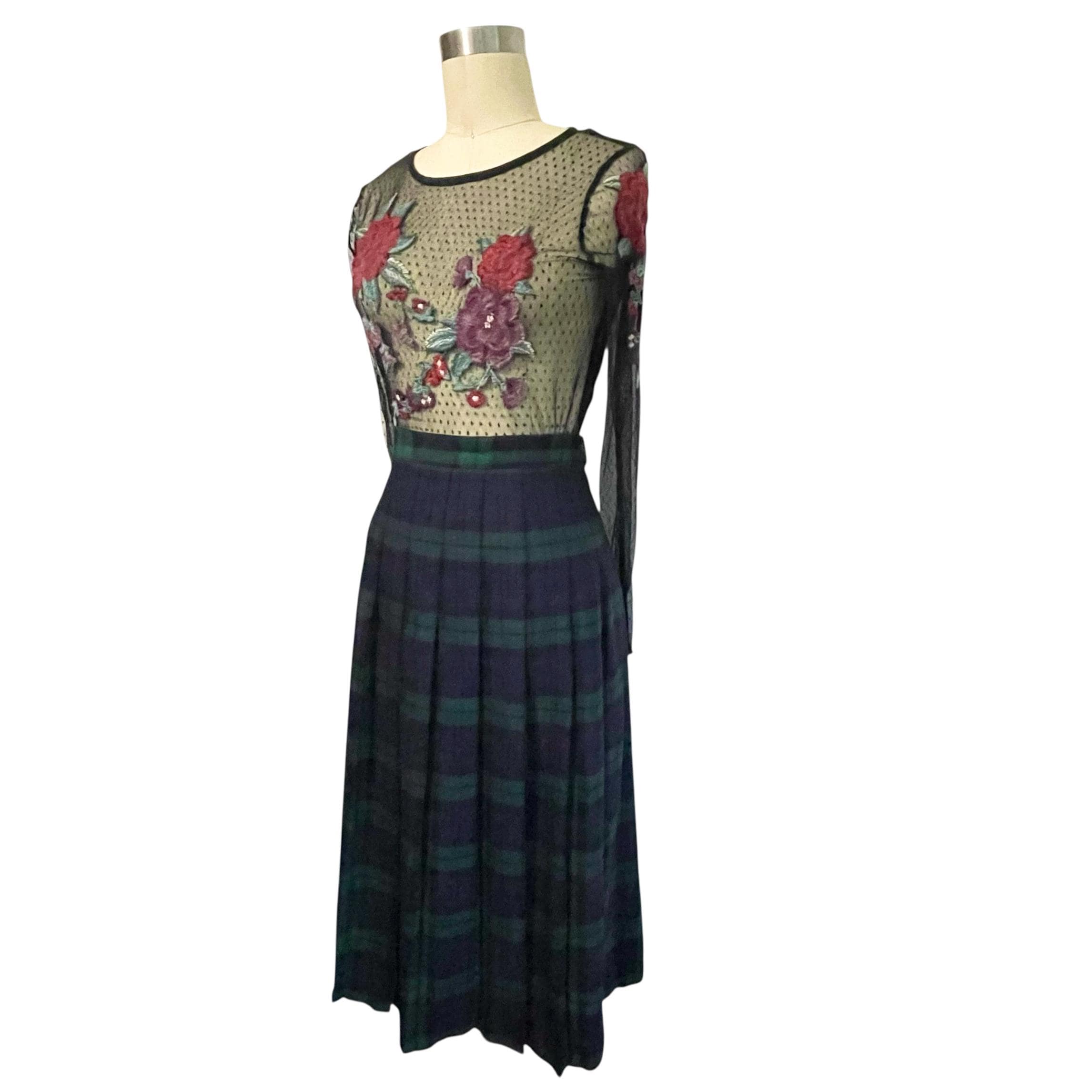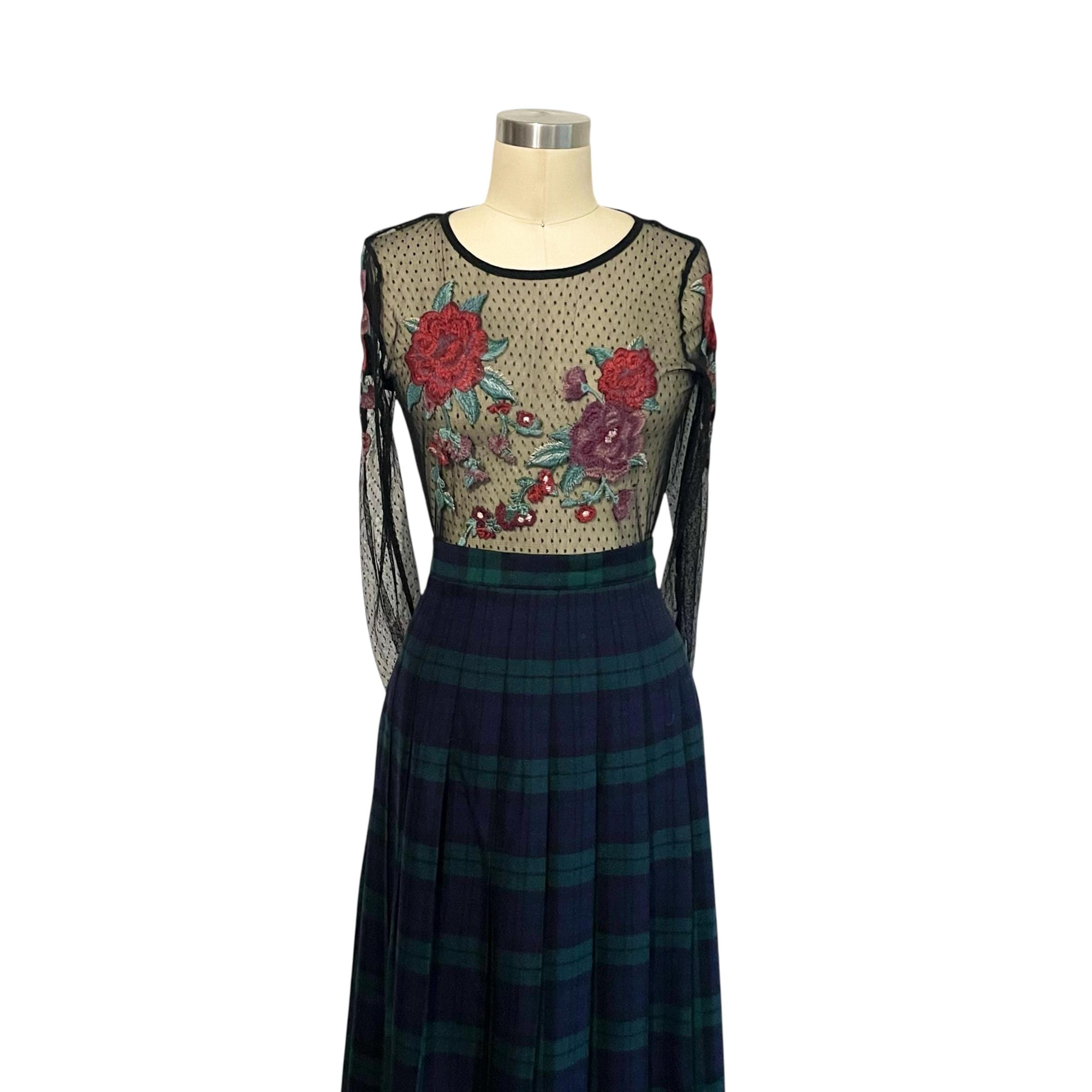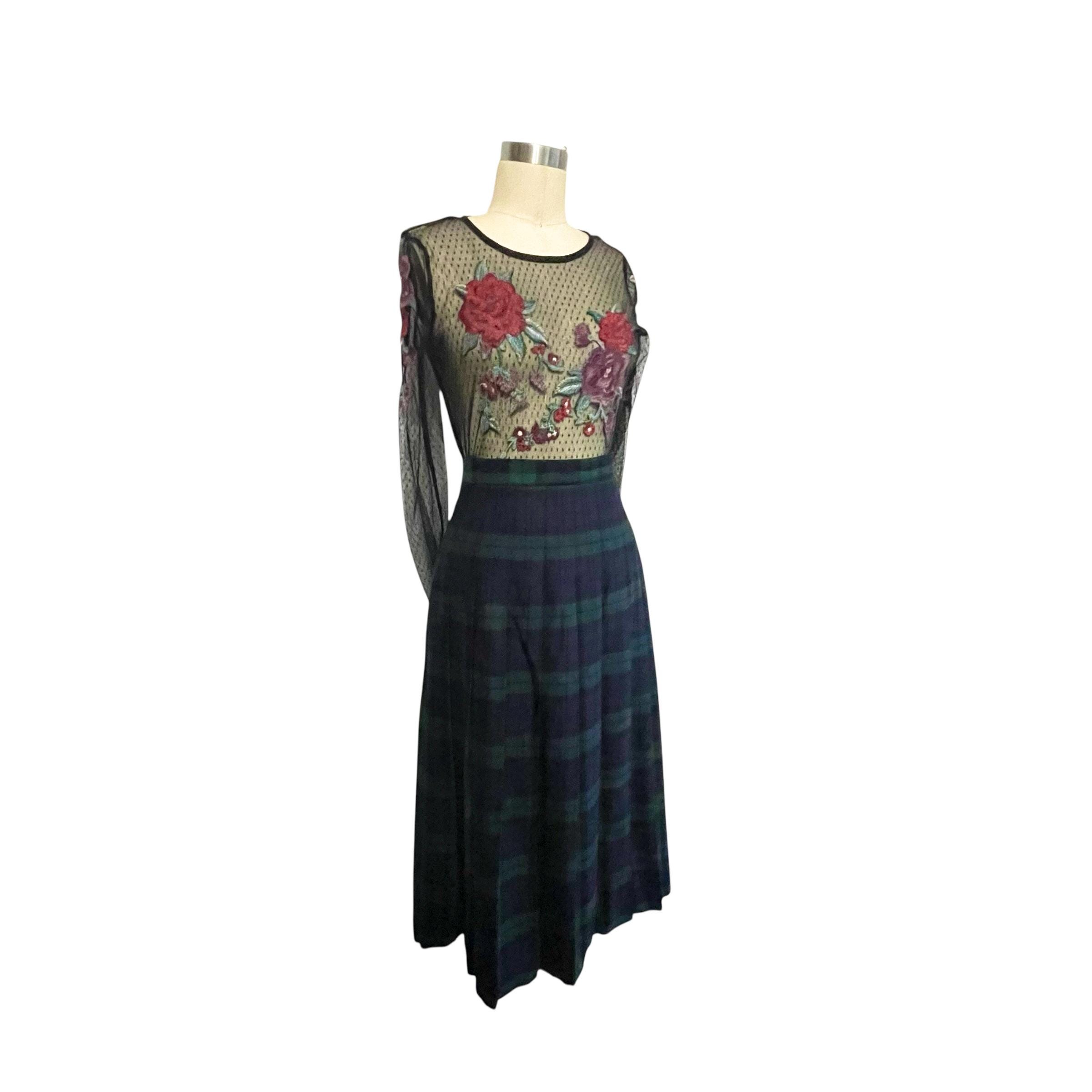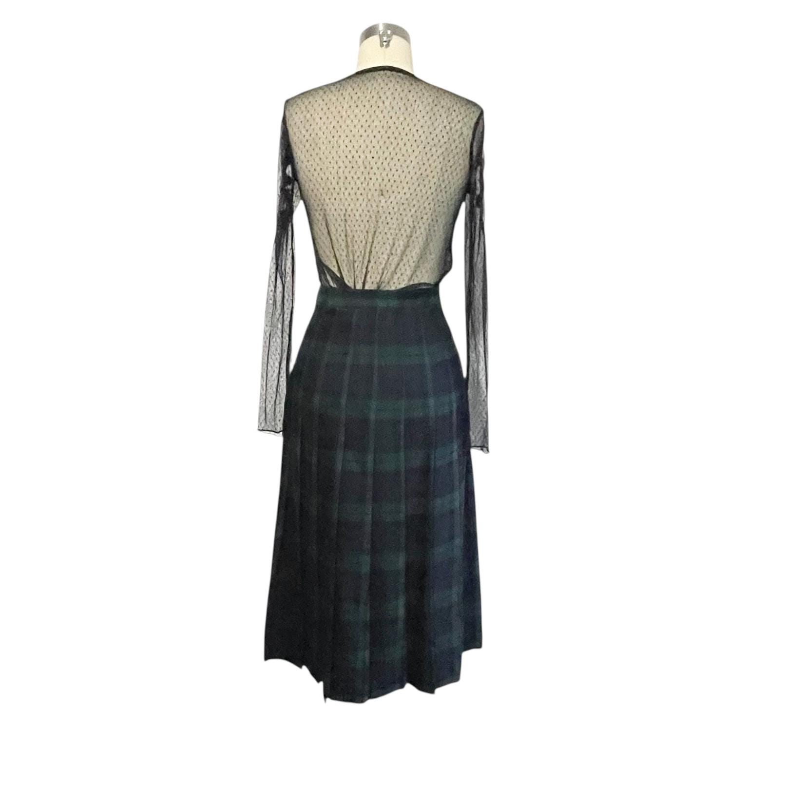Vintage L.L. Bean Dark Blue and Green Plaid Skirt: A-Line Skirt, Cool Colors, Dark Academia, Grunge, Indie, 70s 80s 90s Skirt