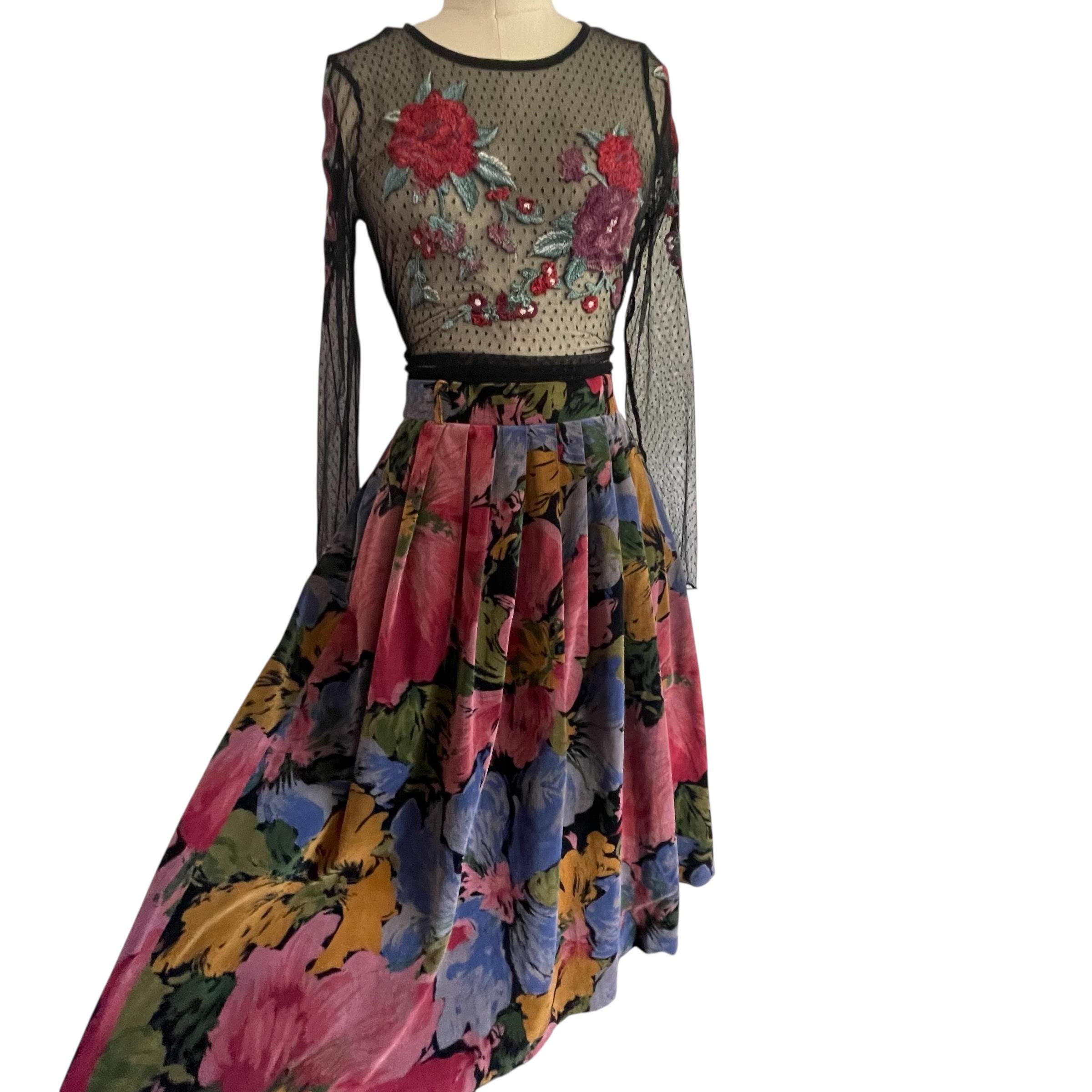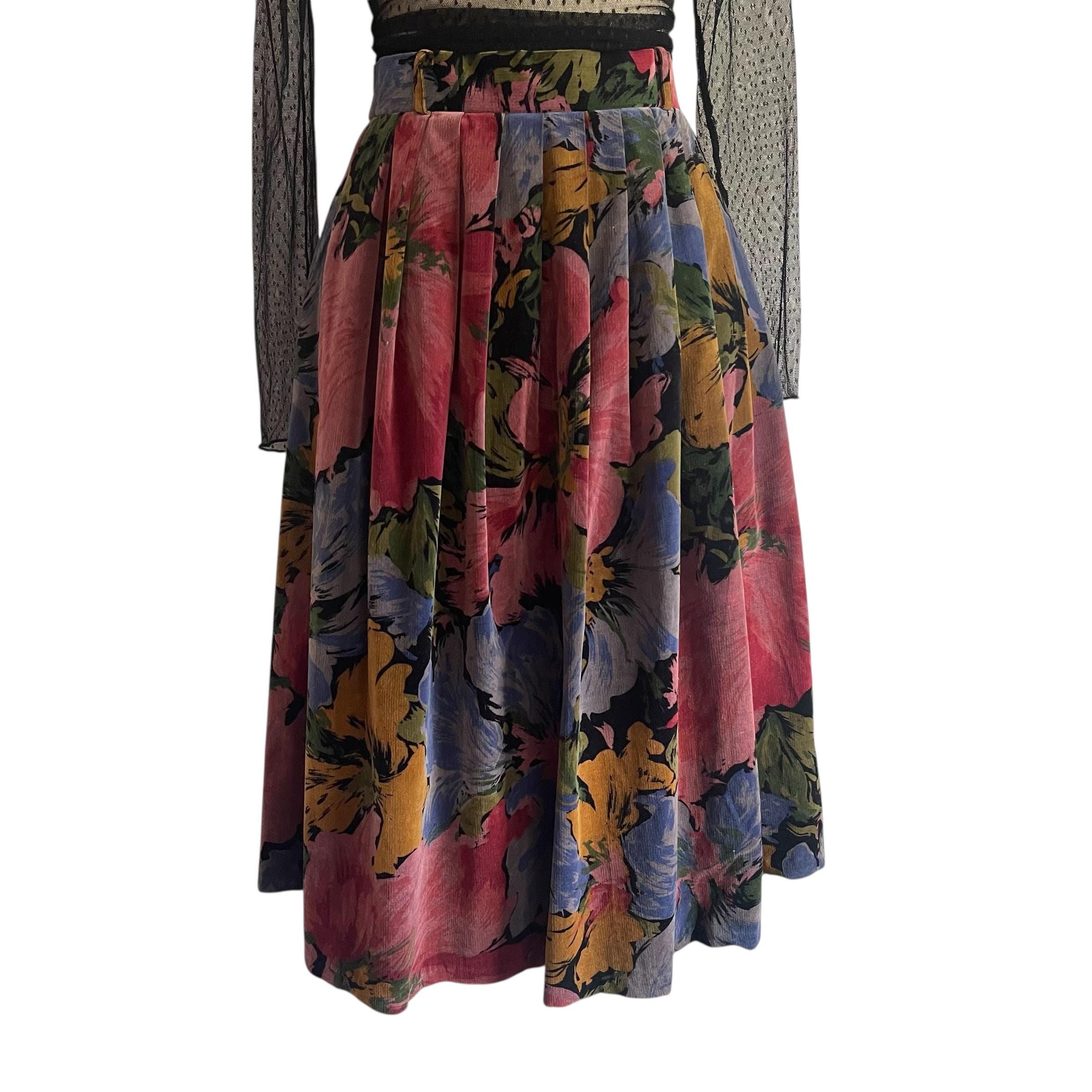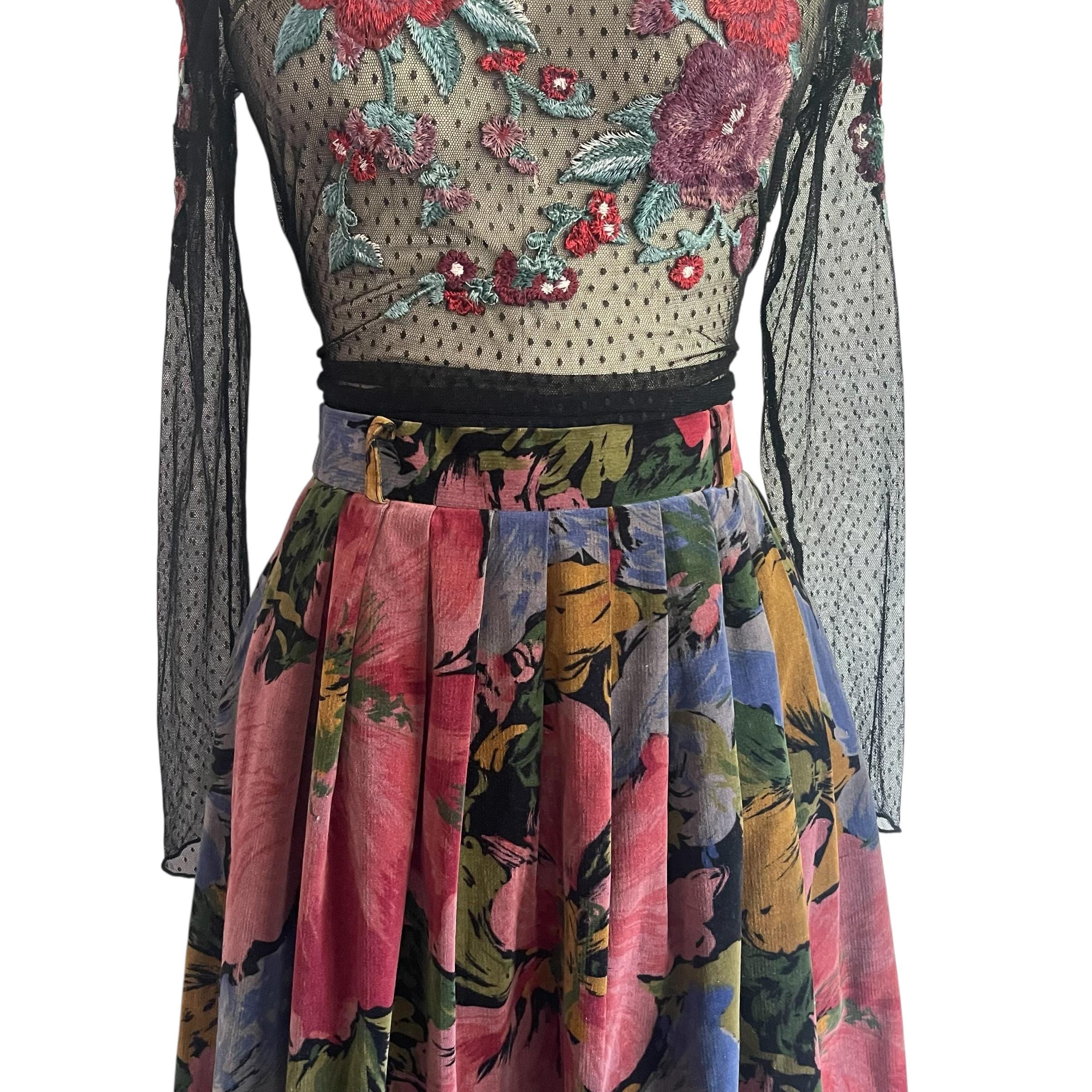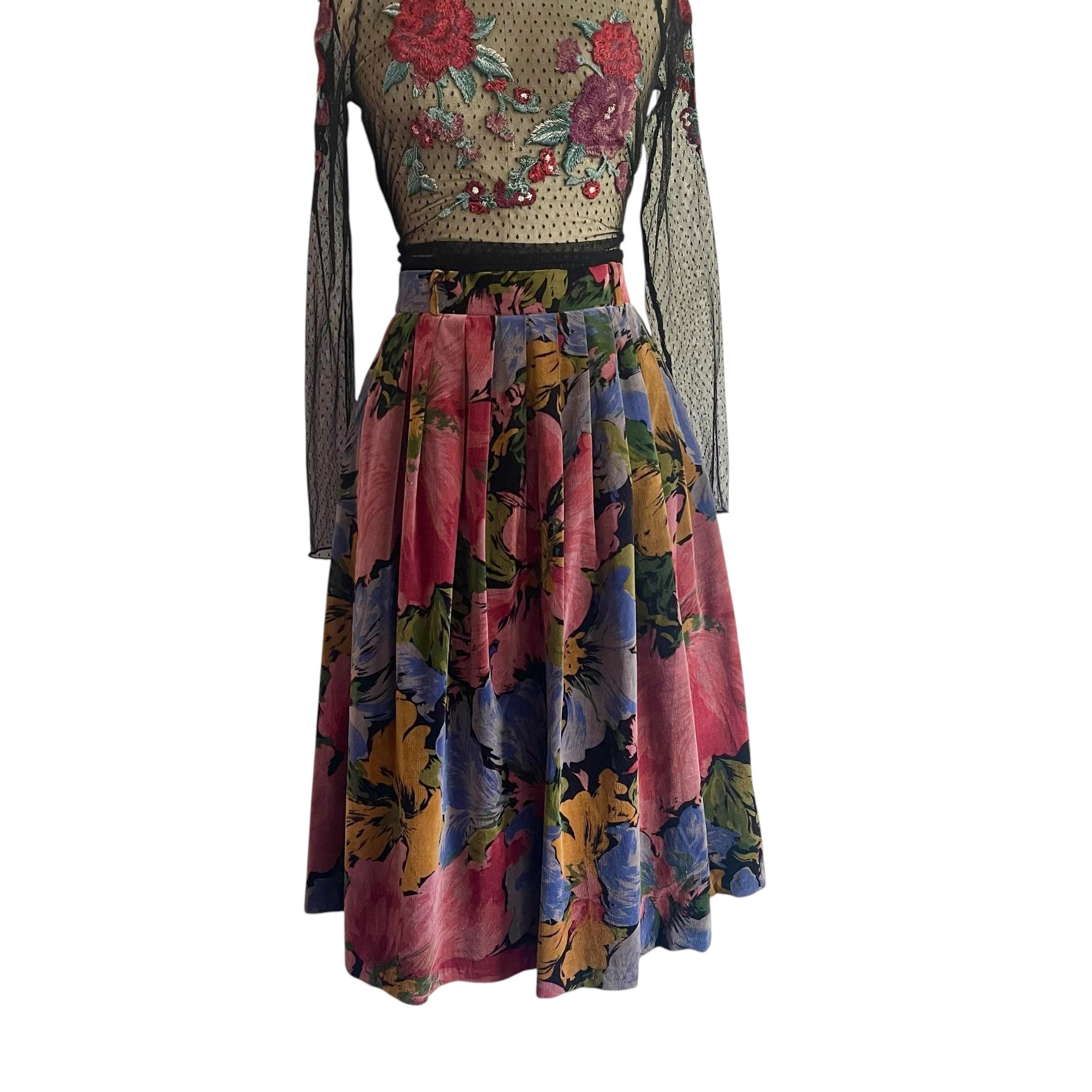 Vintage Multicolor Floral Pleated Whimsigoth Skirt: A-Line Flower Skirt, Pleated Whimsy Skirt, Fairycore, Indie, Whimsigothic Skirt