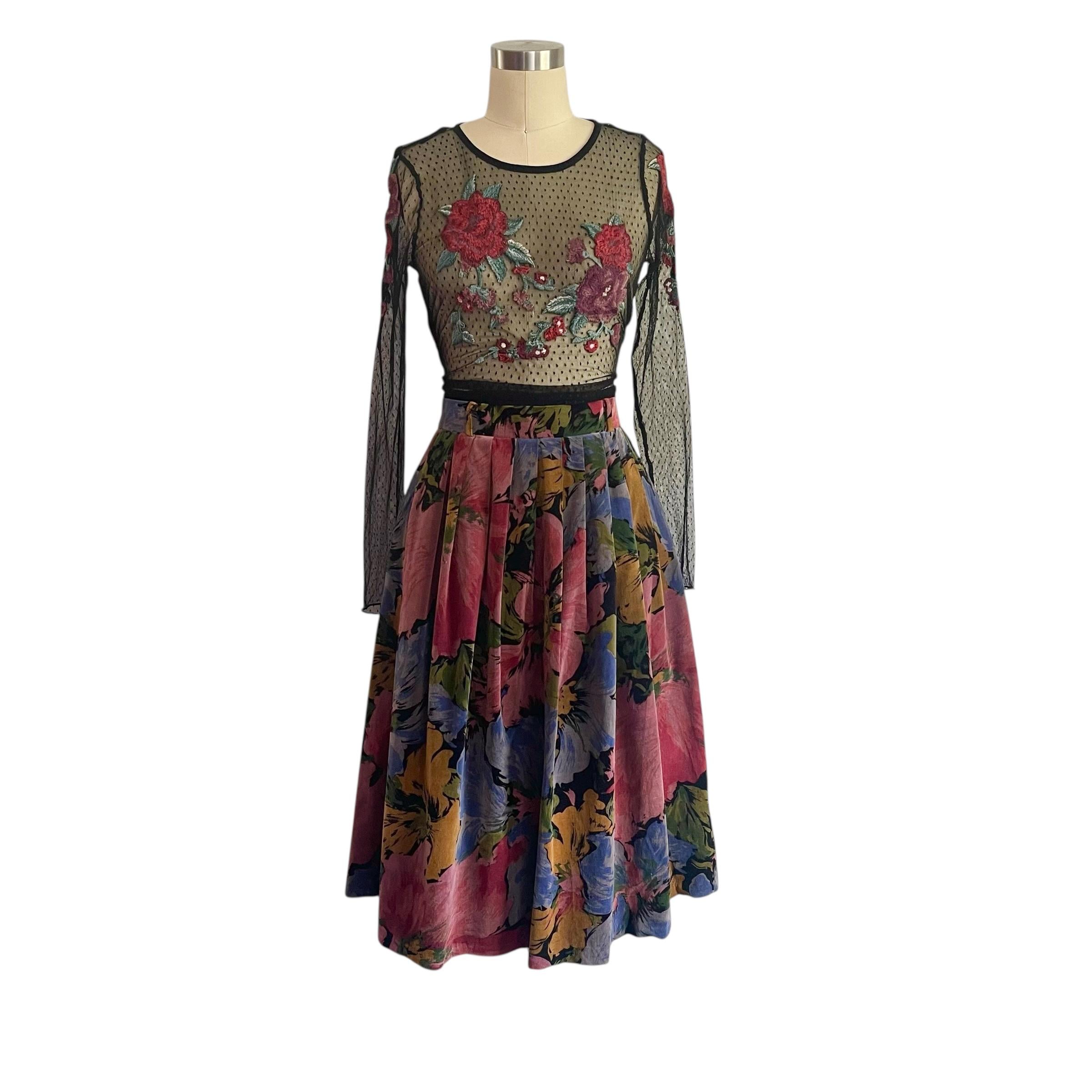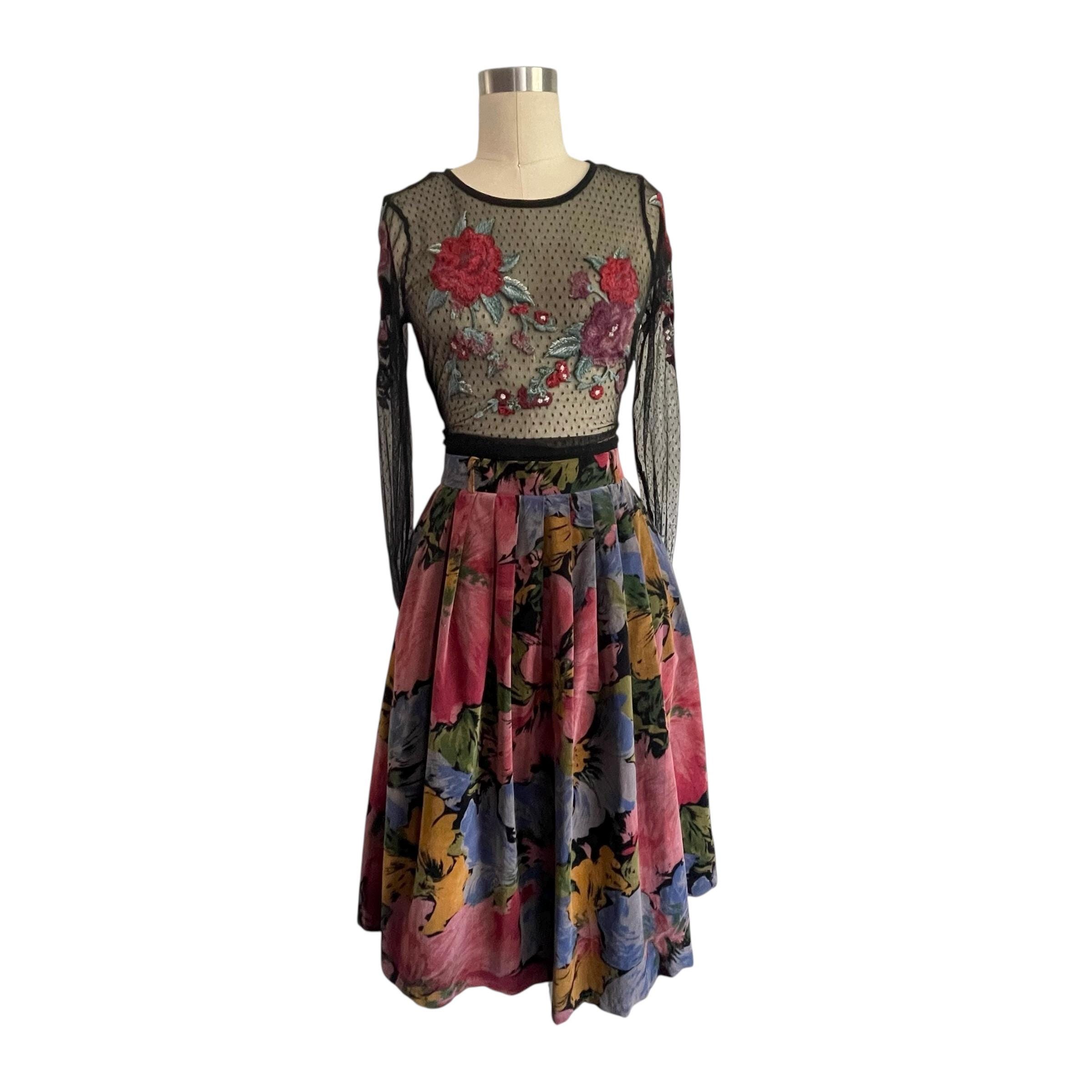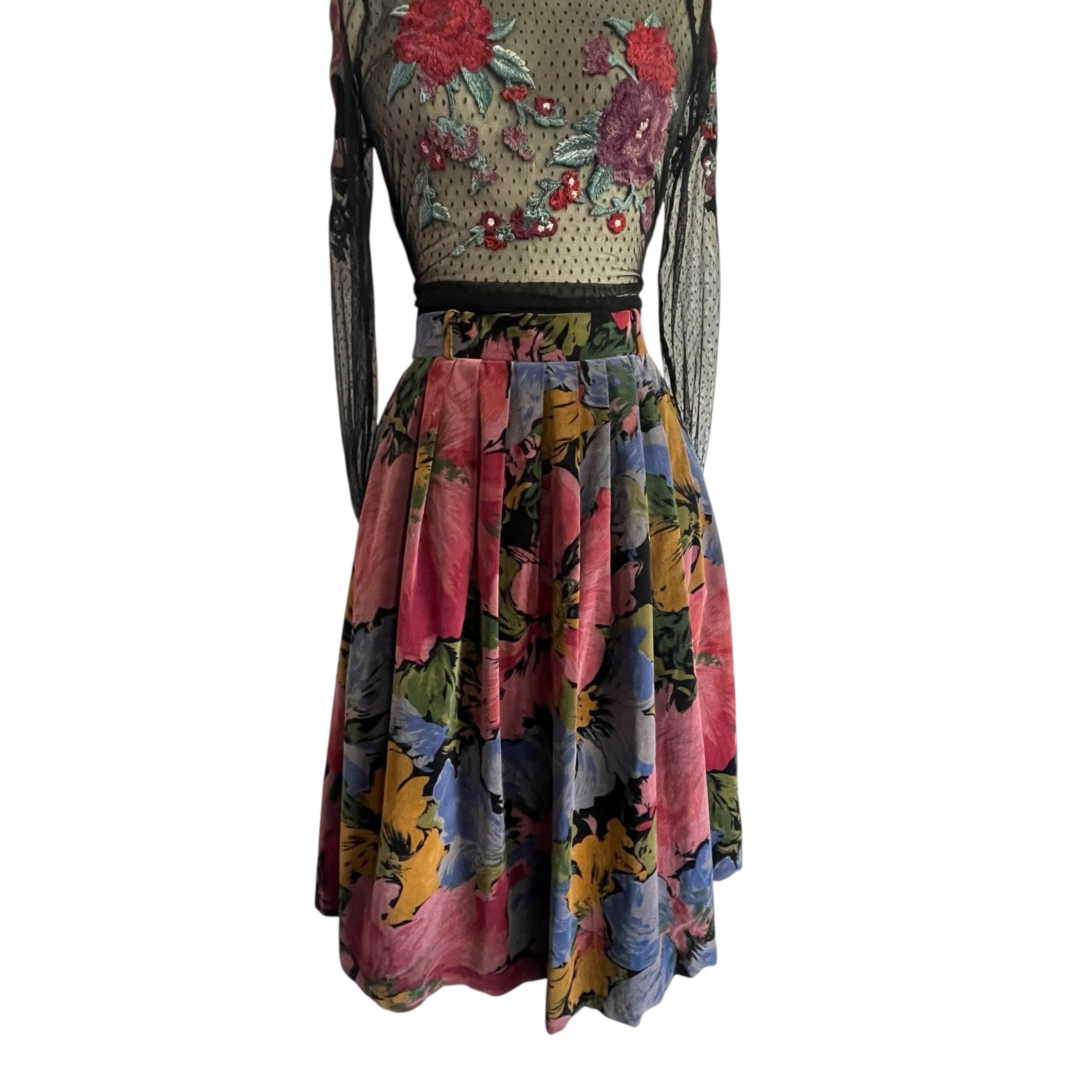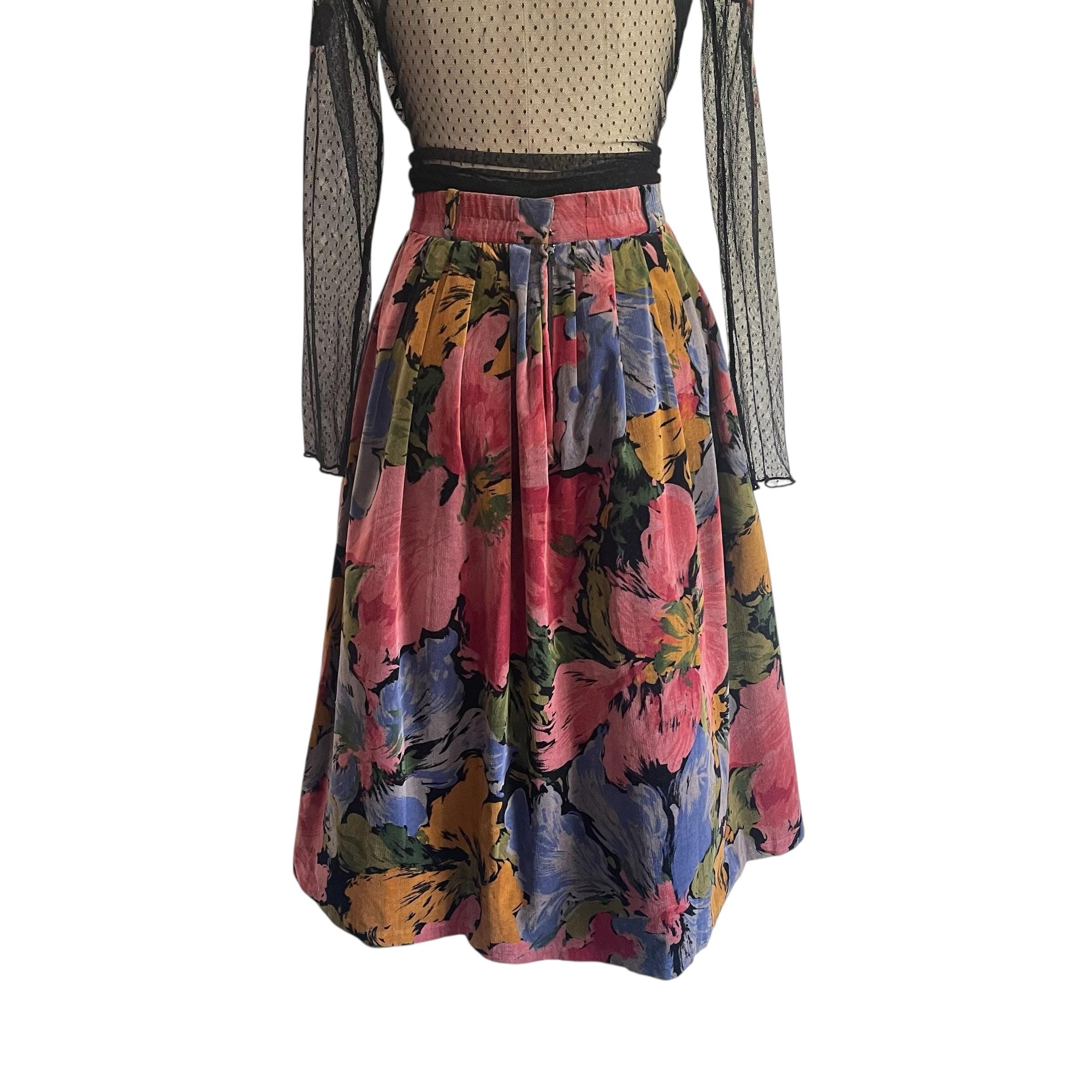 Vintage Multicolor Floral Pleated Whimsigoth Skirt: A-Line Flower Skirt, Pleated Whimsy Skirt, Fairycore, Indie, Whimsigothic Skirt