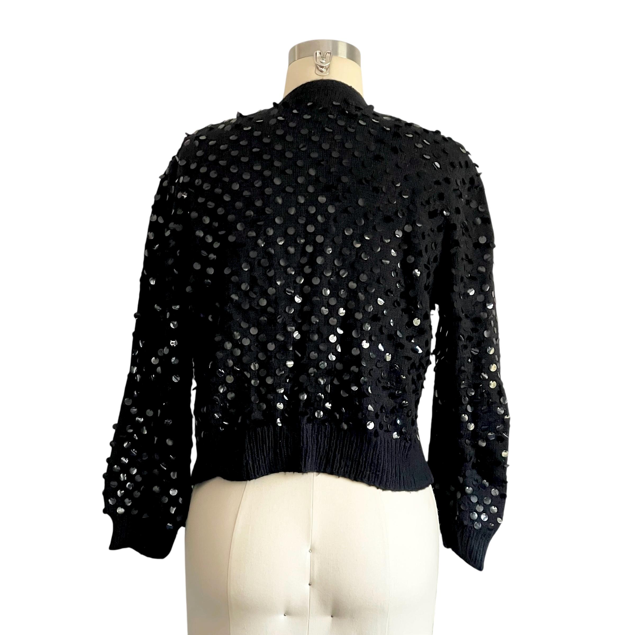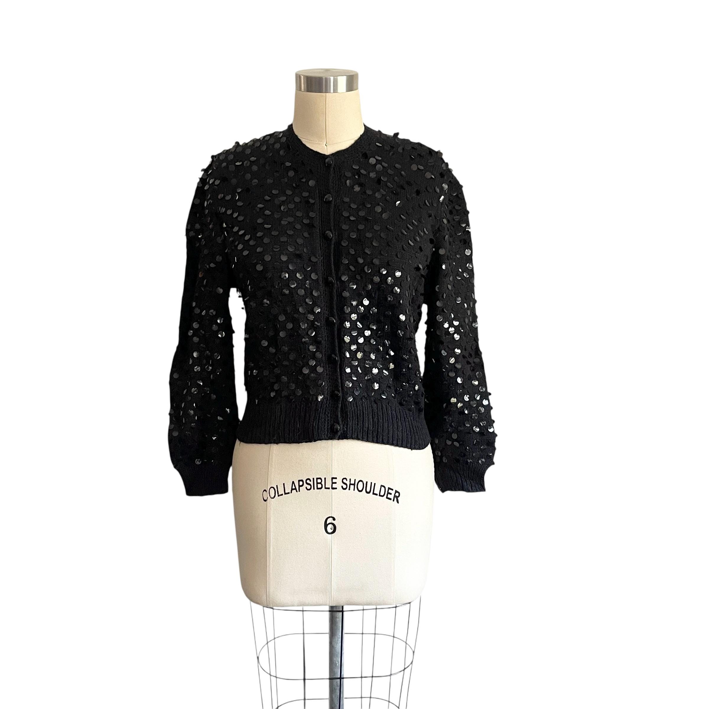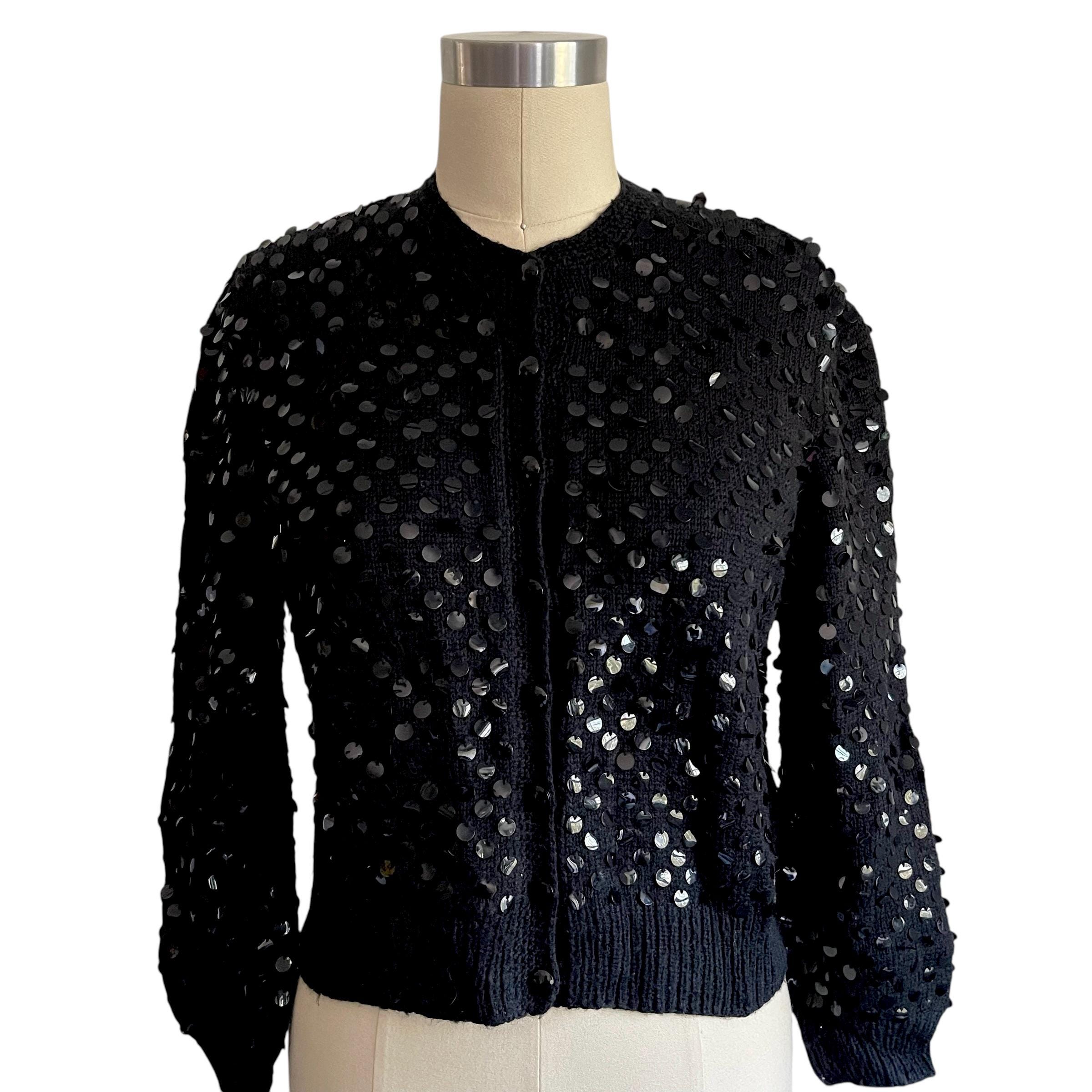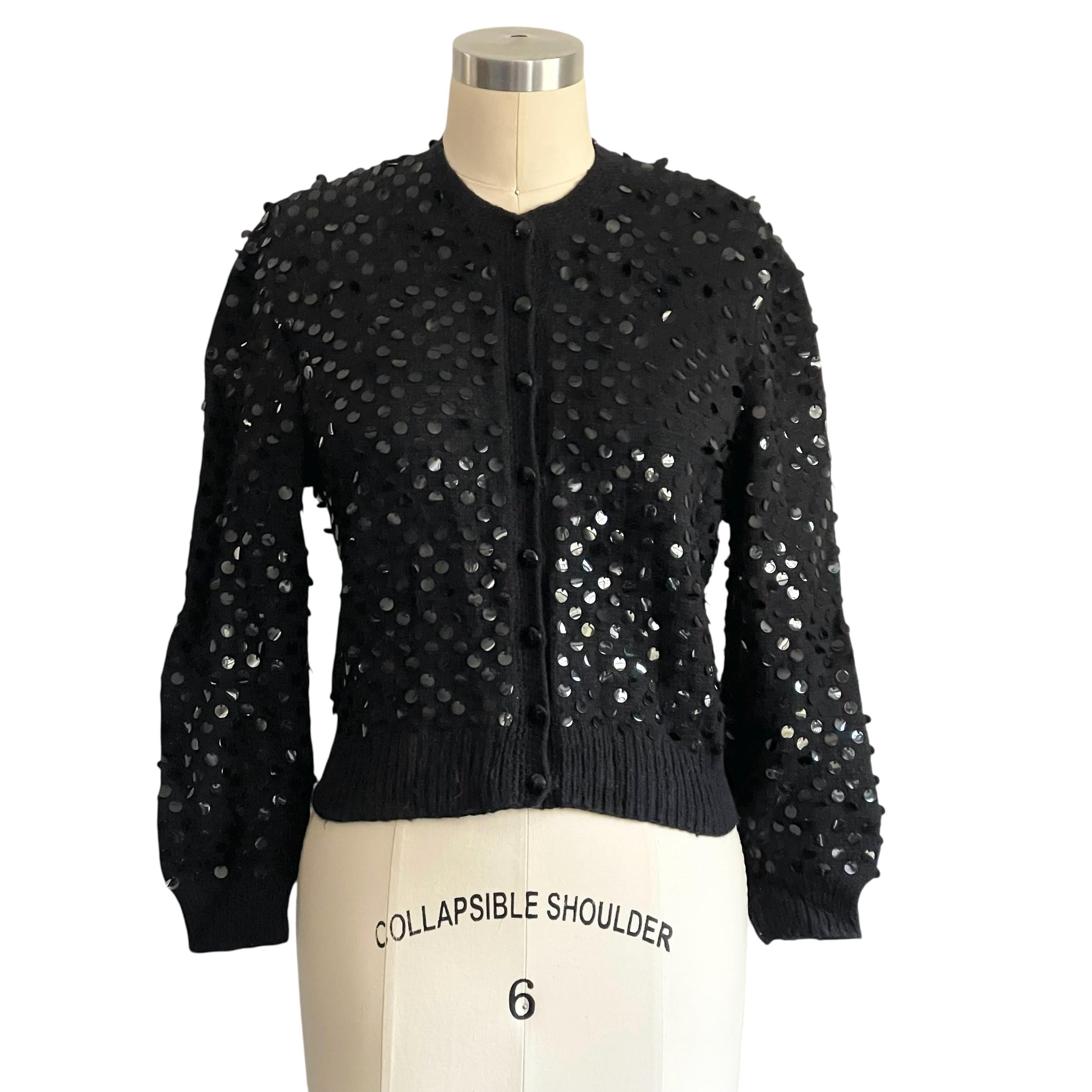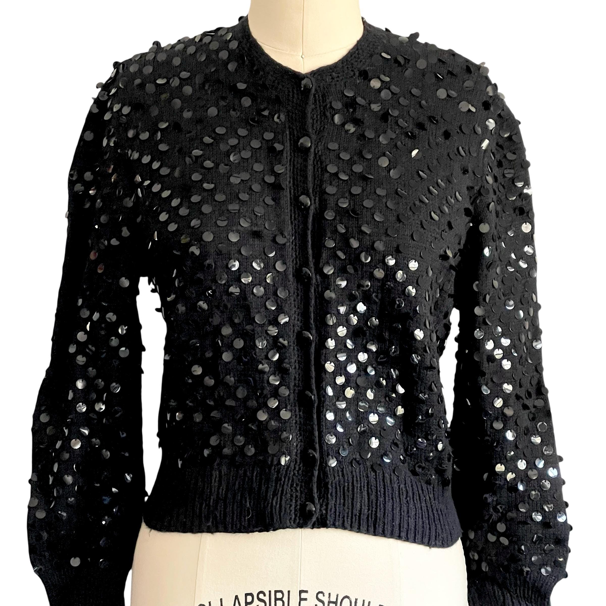 Vintage Black Sequin Party Cardigan Sweater: Circle Sequins, Goth, Gothic Sweater, Disco Sweater, Party Sweater, 80s 90s Y2K Sweater