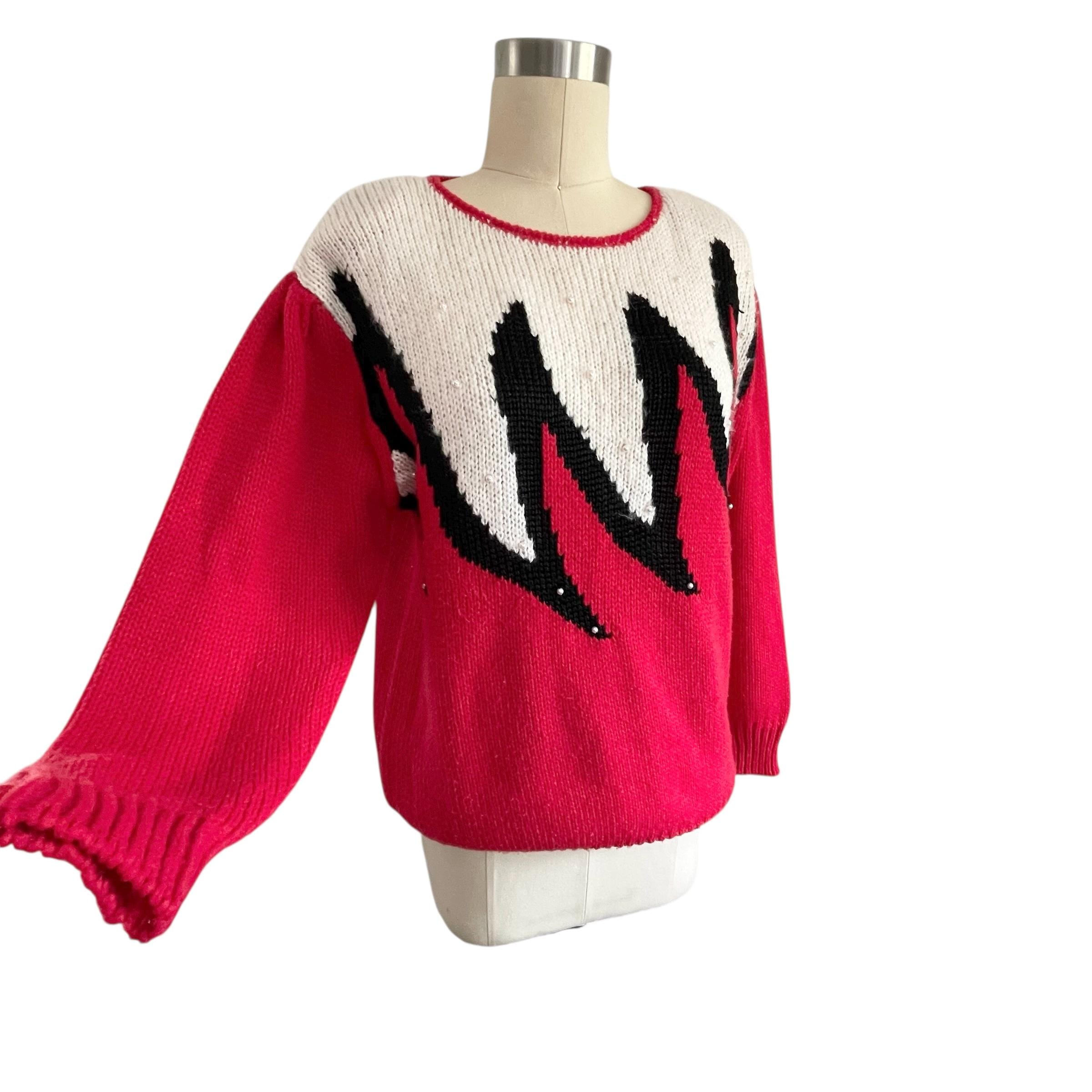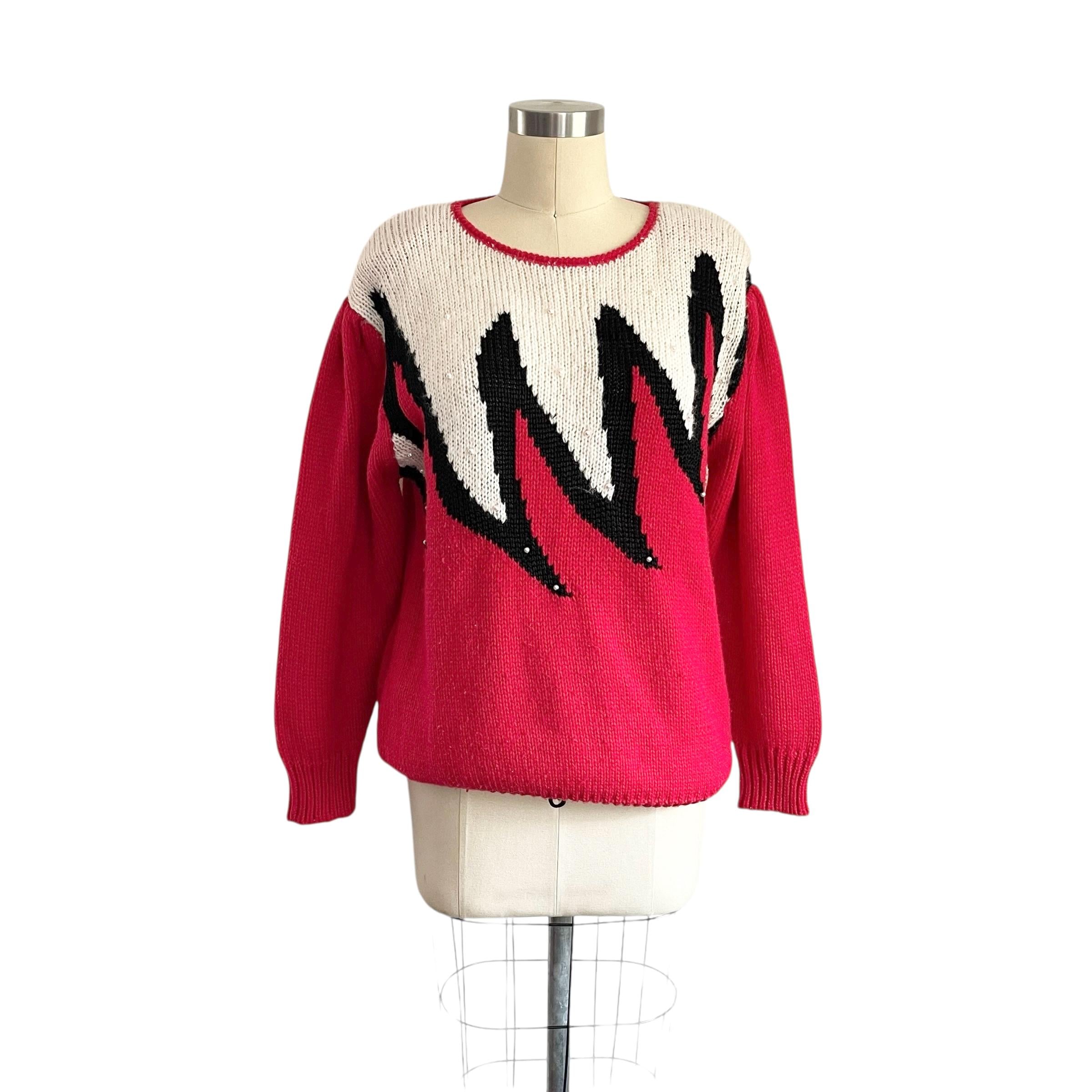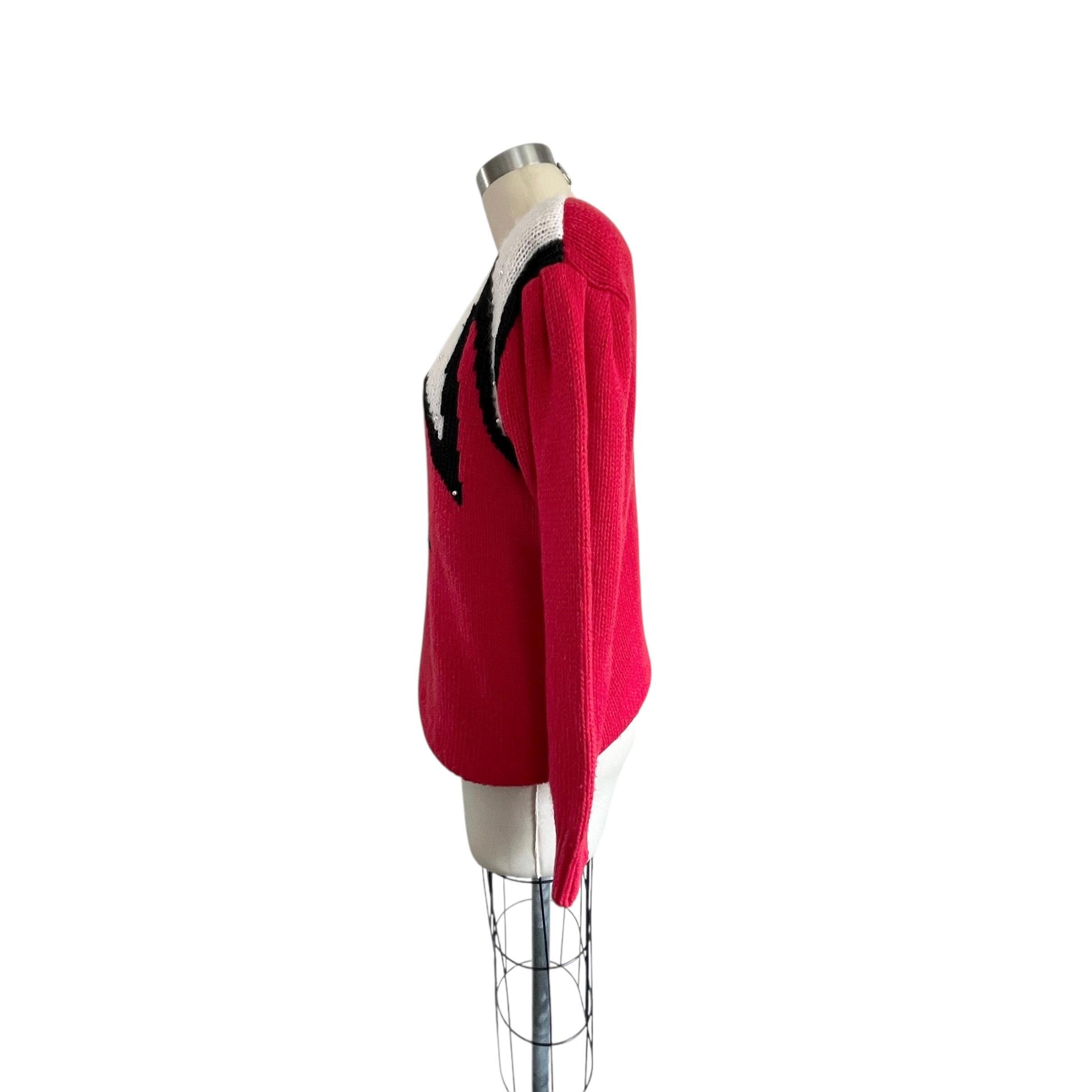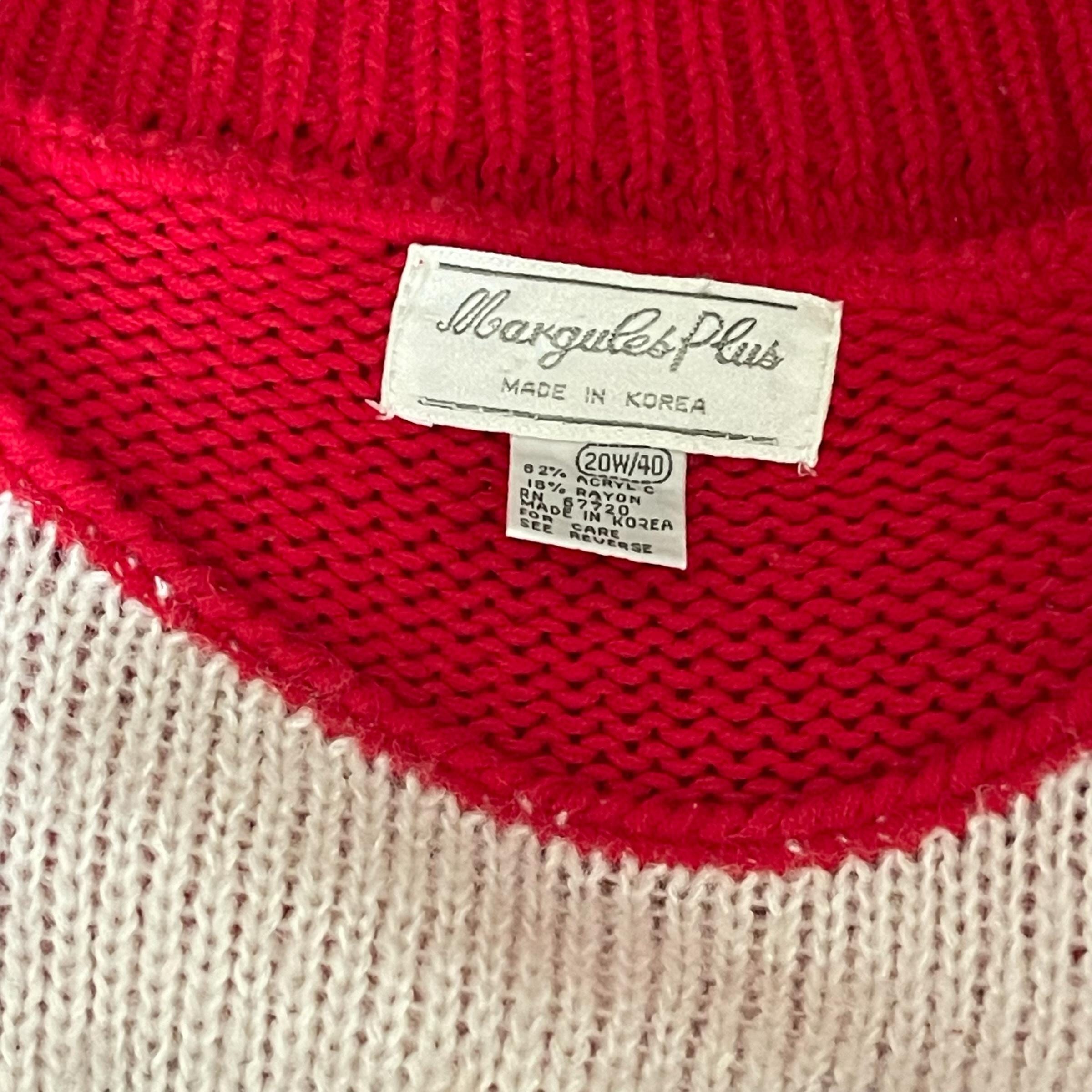 Vintage 80s Rockabilly Red Knit Sweater: Red White Black Sweater XXL