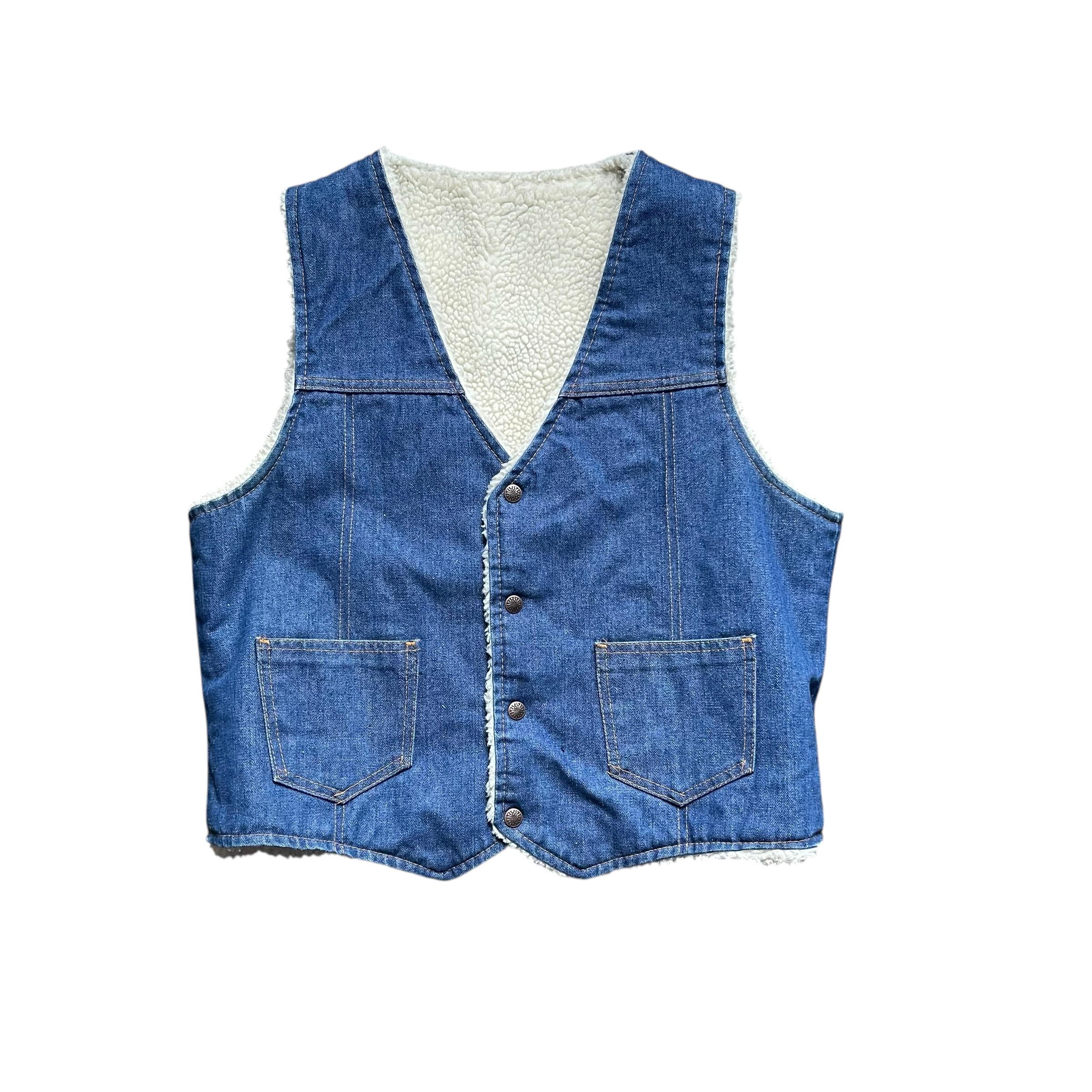 Vintage Casual Sherpa Denim Vest: Jean Vest, Fluffy Inside, Autumn Vest, Fall Vest, Farmcore, Western, Cowgirl Vest, Cowboy Vest