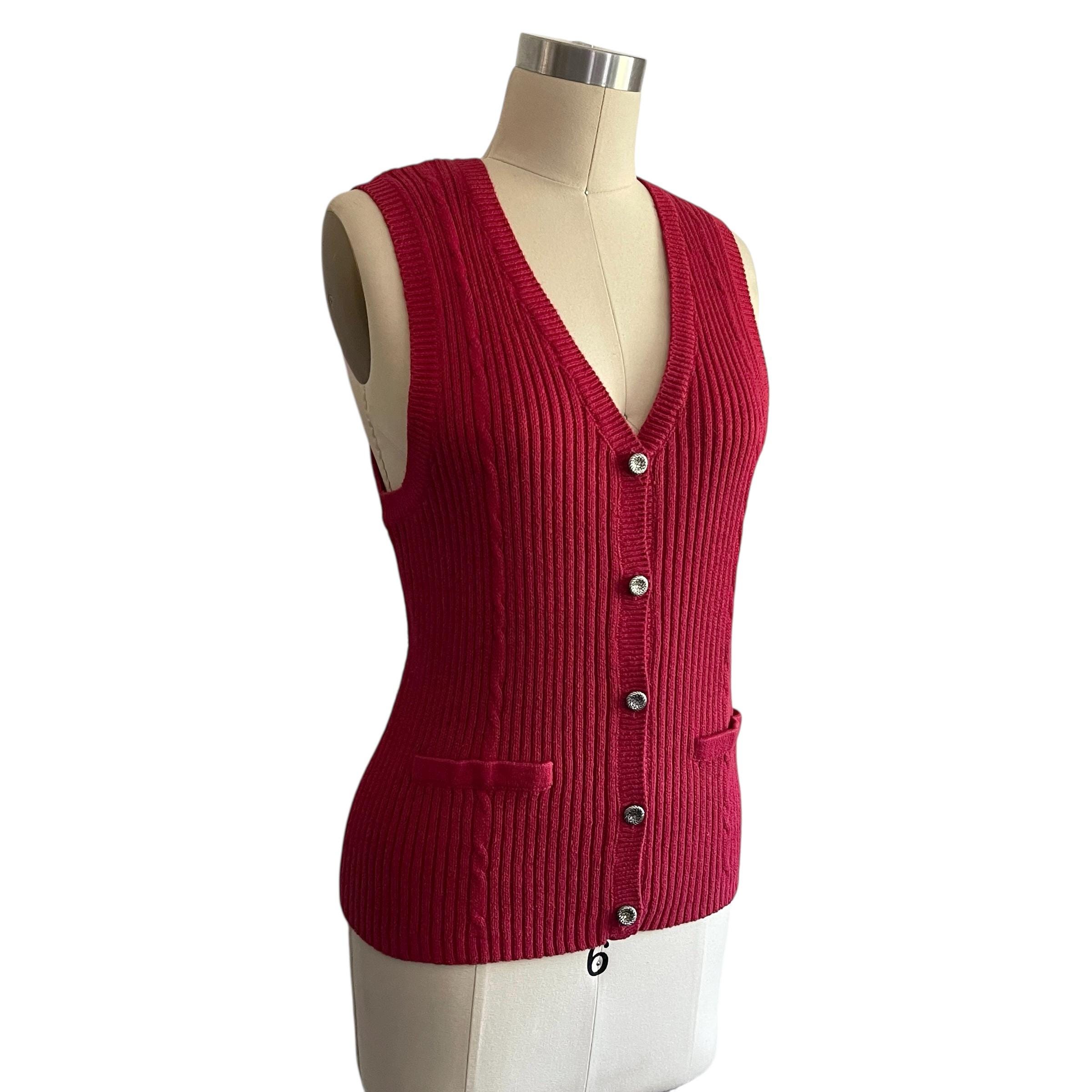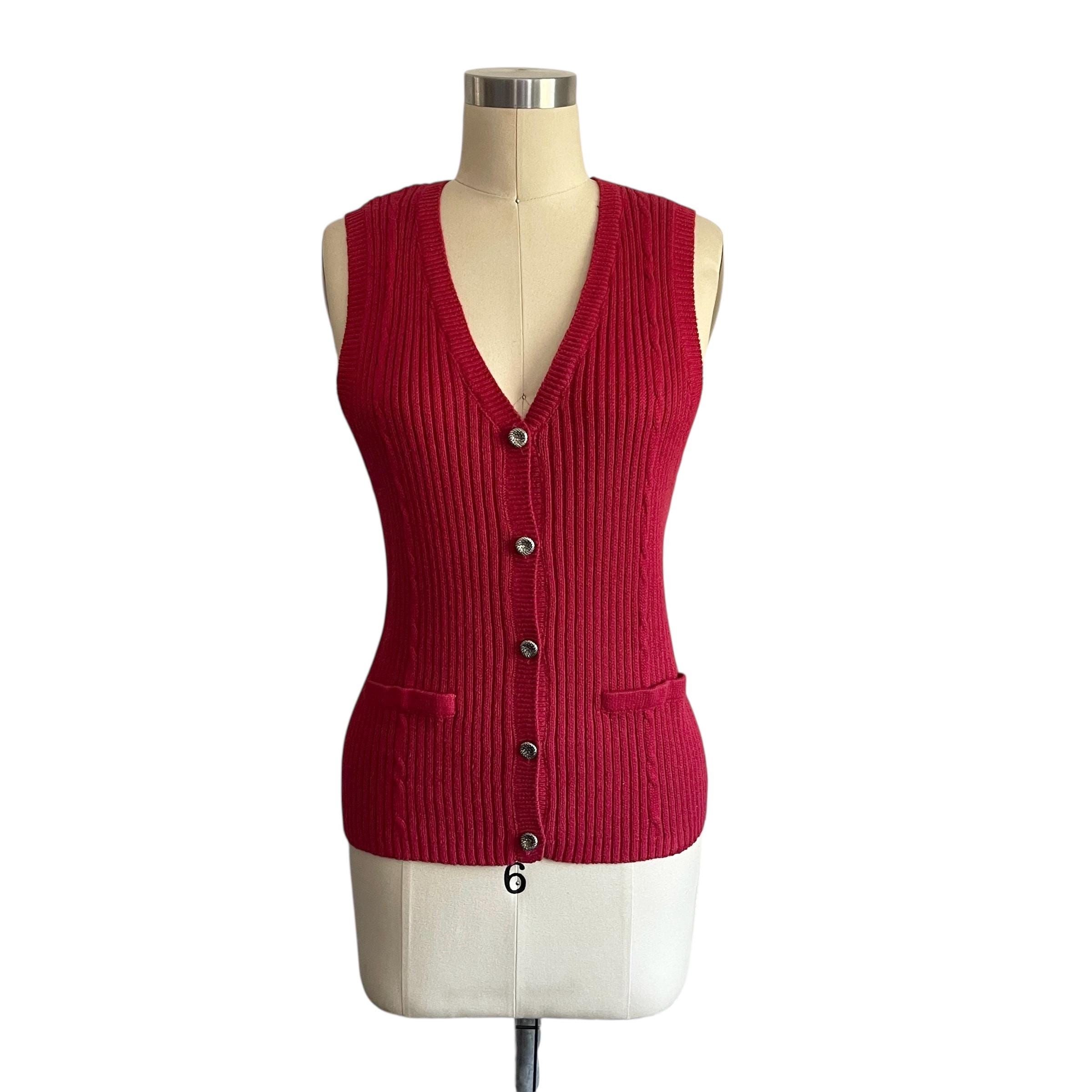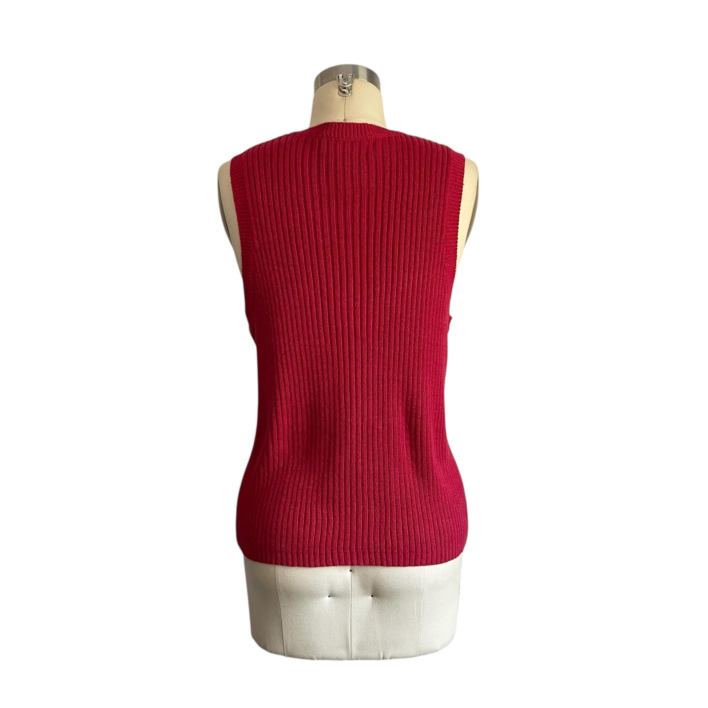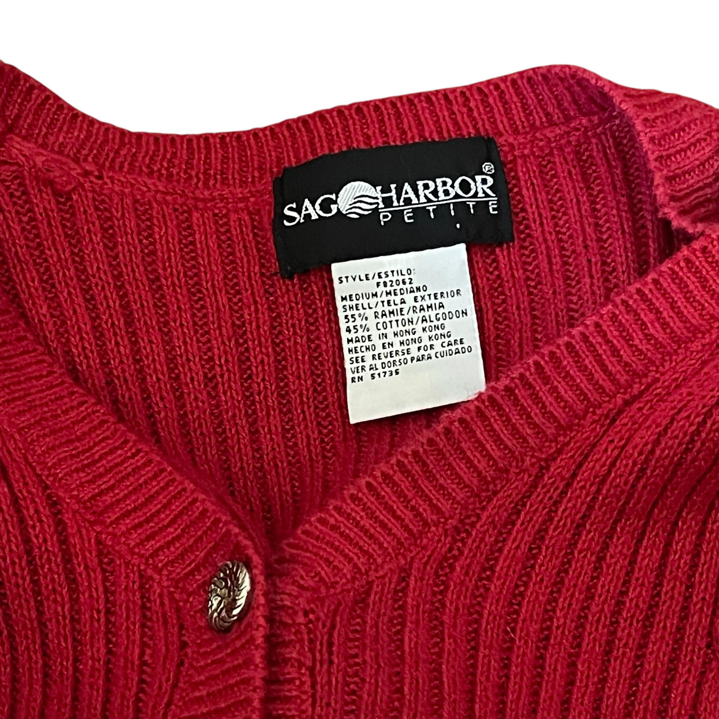 Vintage Sag Harbor Red Ribbed Sweater Vest: Petite, Cardigan Sweater Vest, Ribbed Texture, Holiday Vest, Autumn Vest, Fall Vest, 90s Y2K