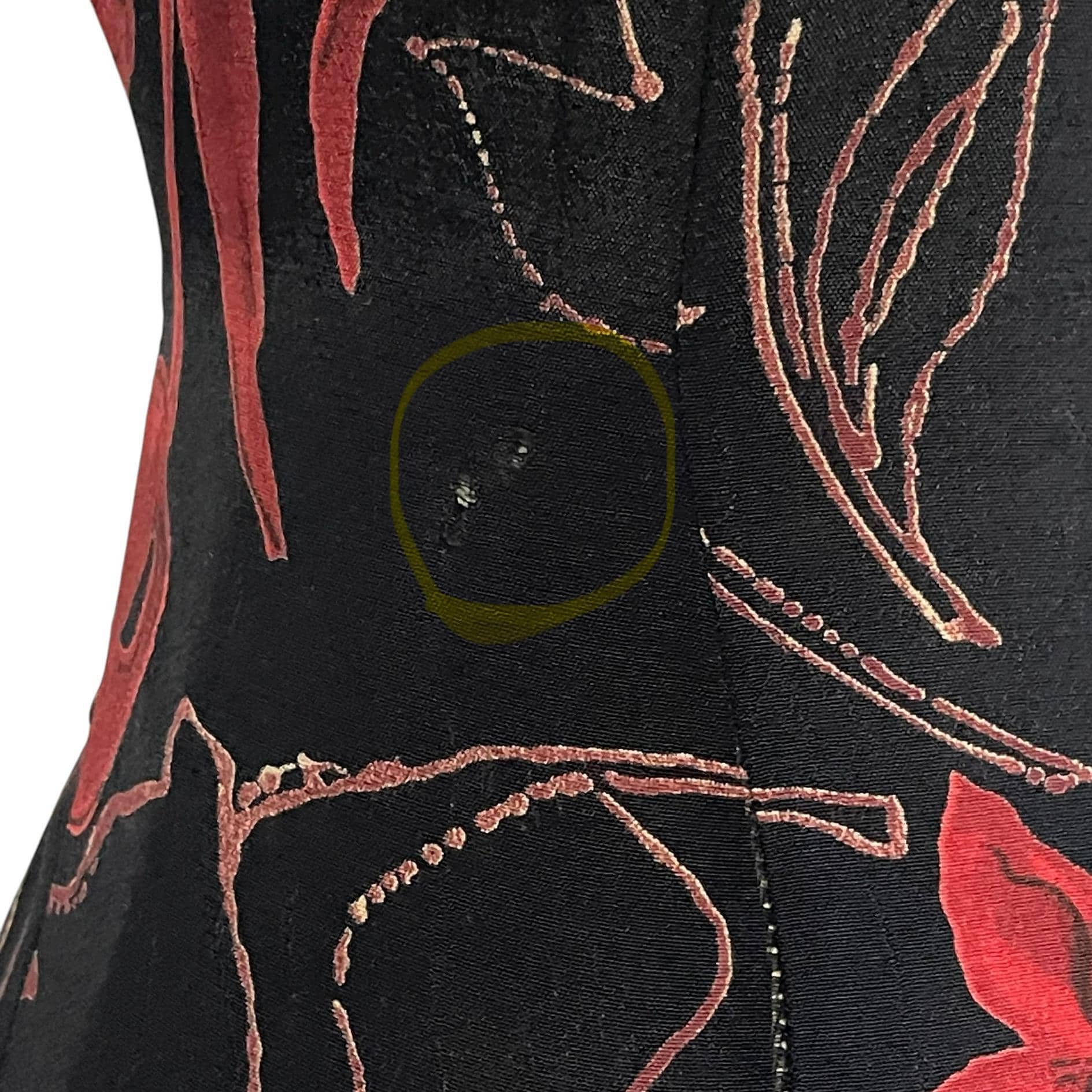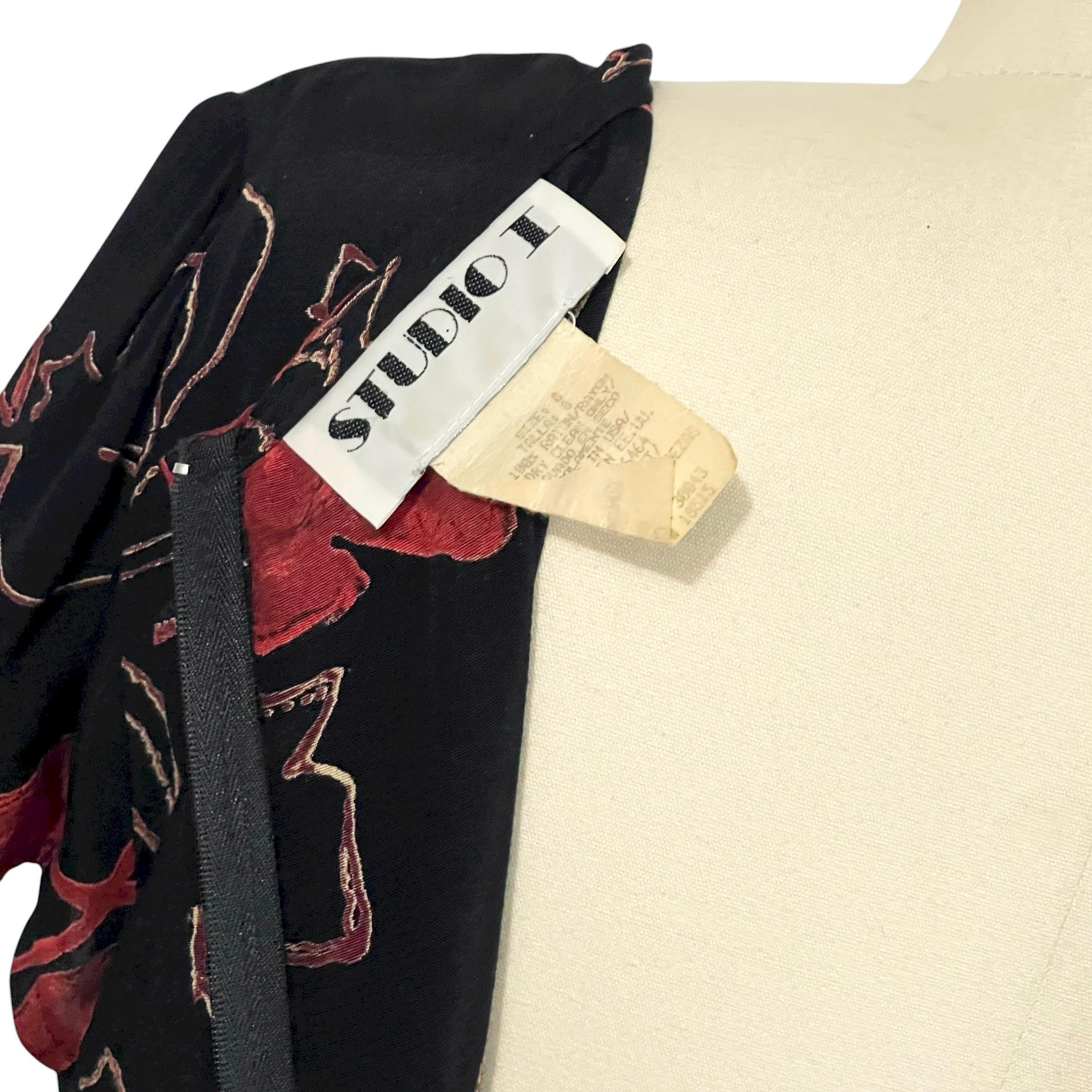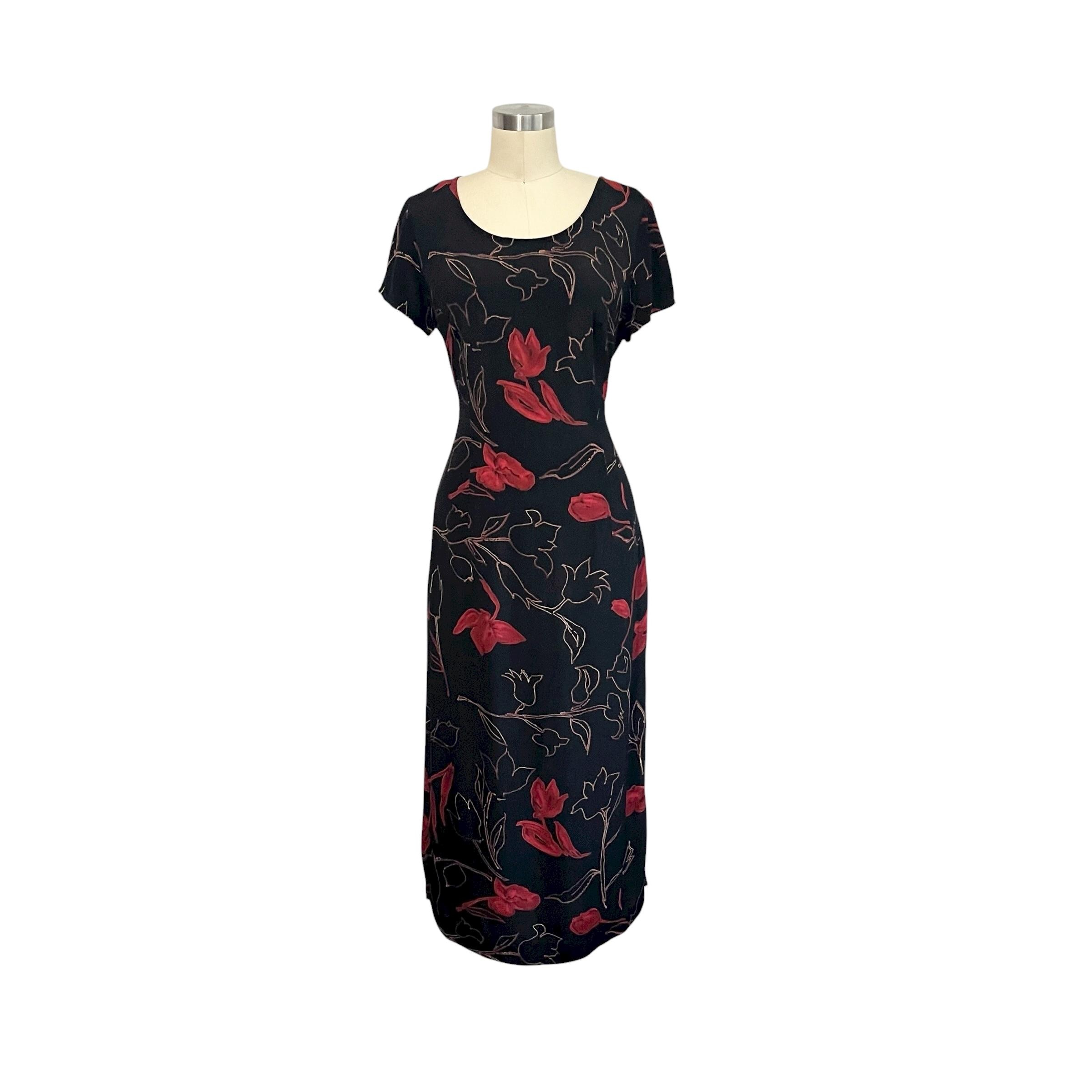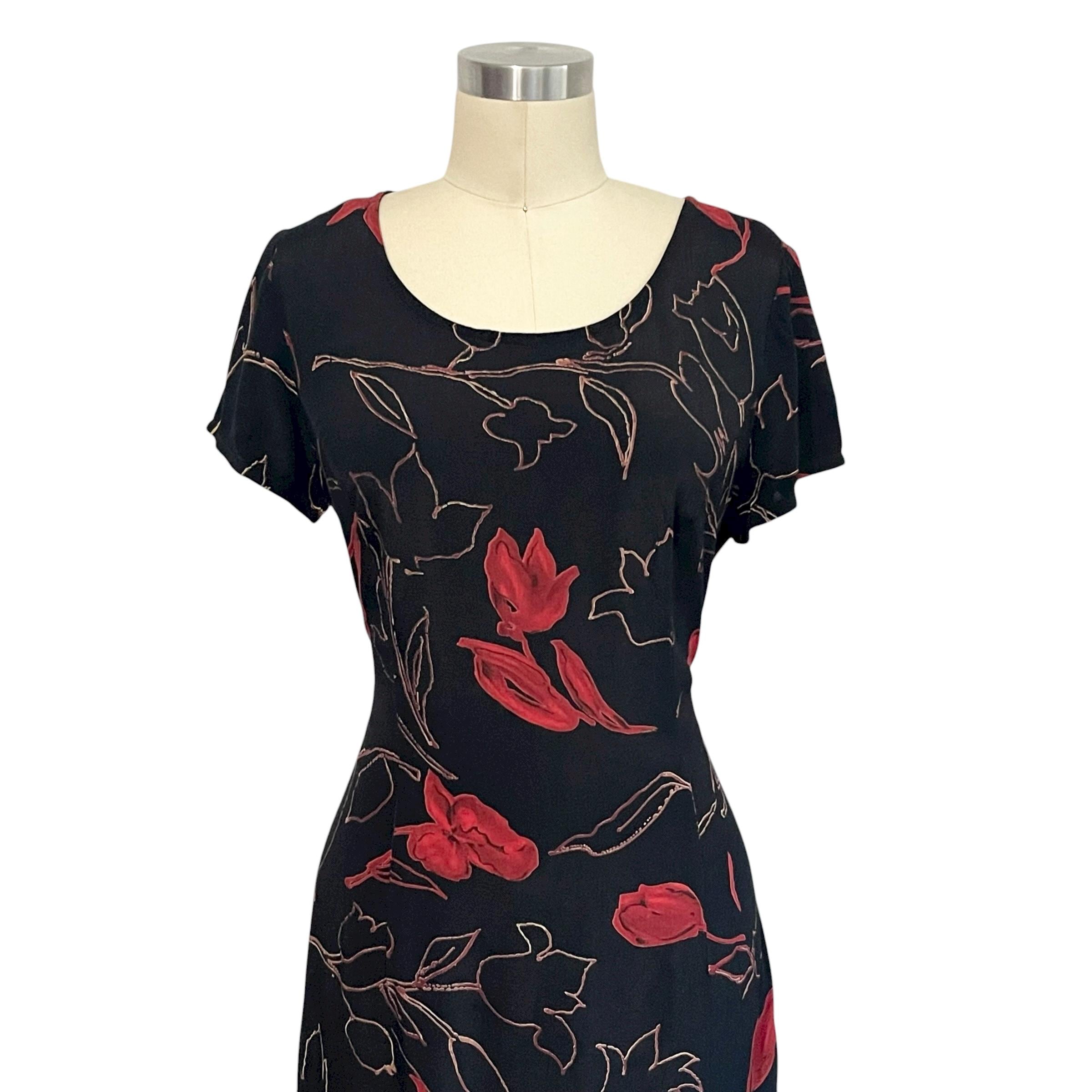 Vintage Studio I Black and Red Floral Maxi Dress: Short-Sleeved Dress, A-Line, Cocktail Dress, Party Dress, Formal Party Dress, 70s 80s 90s