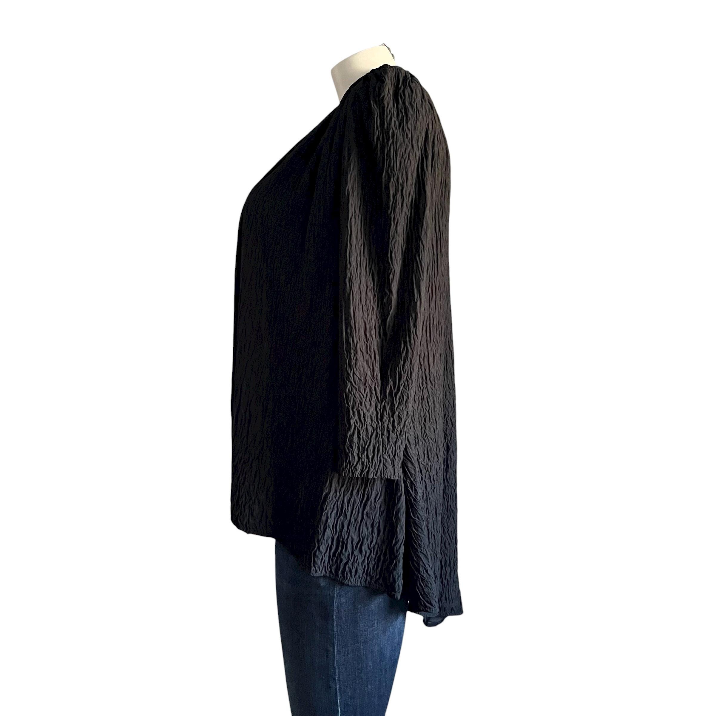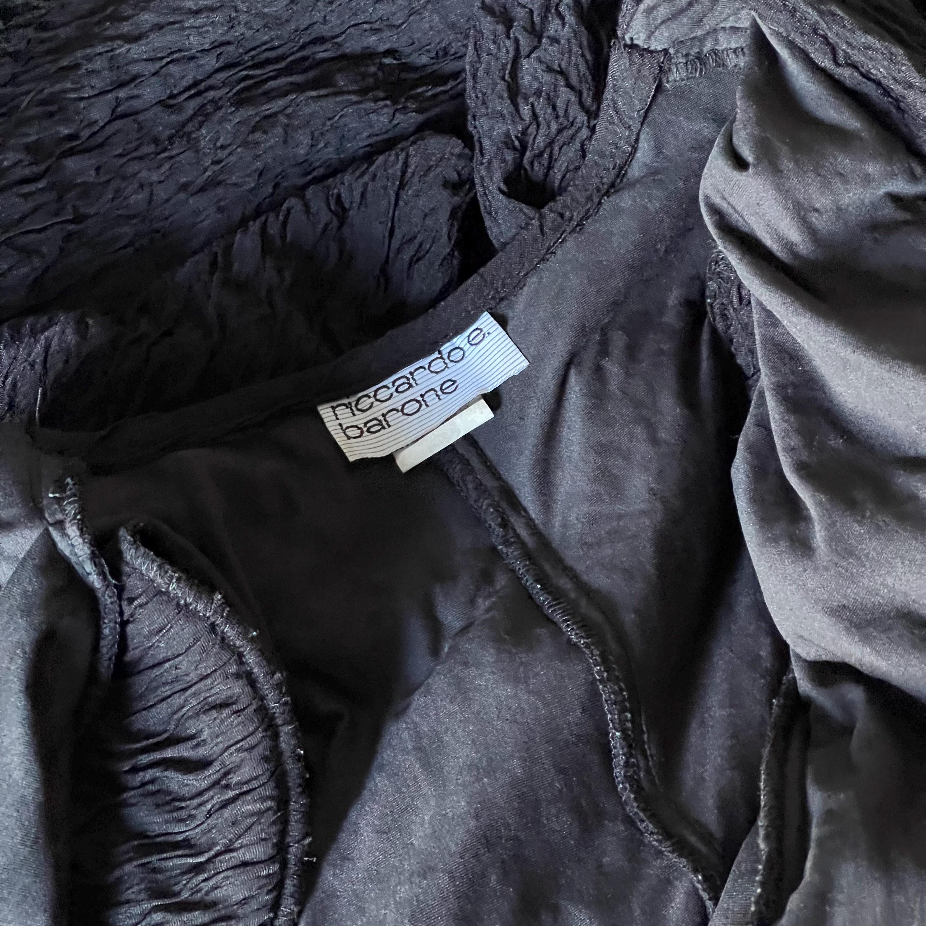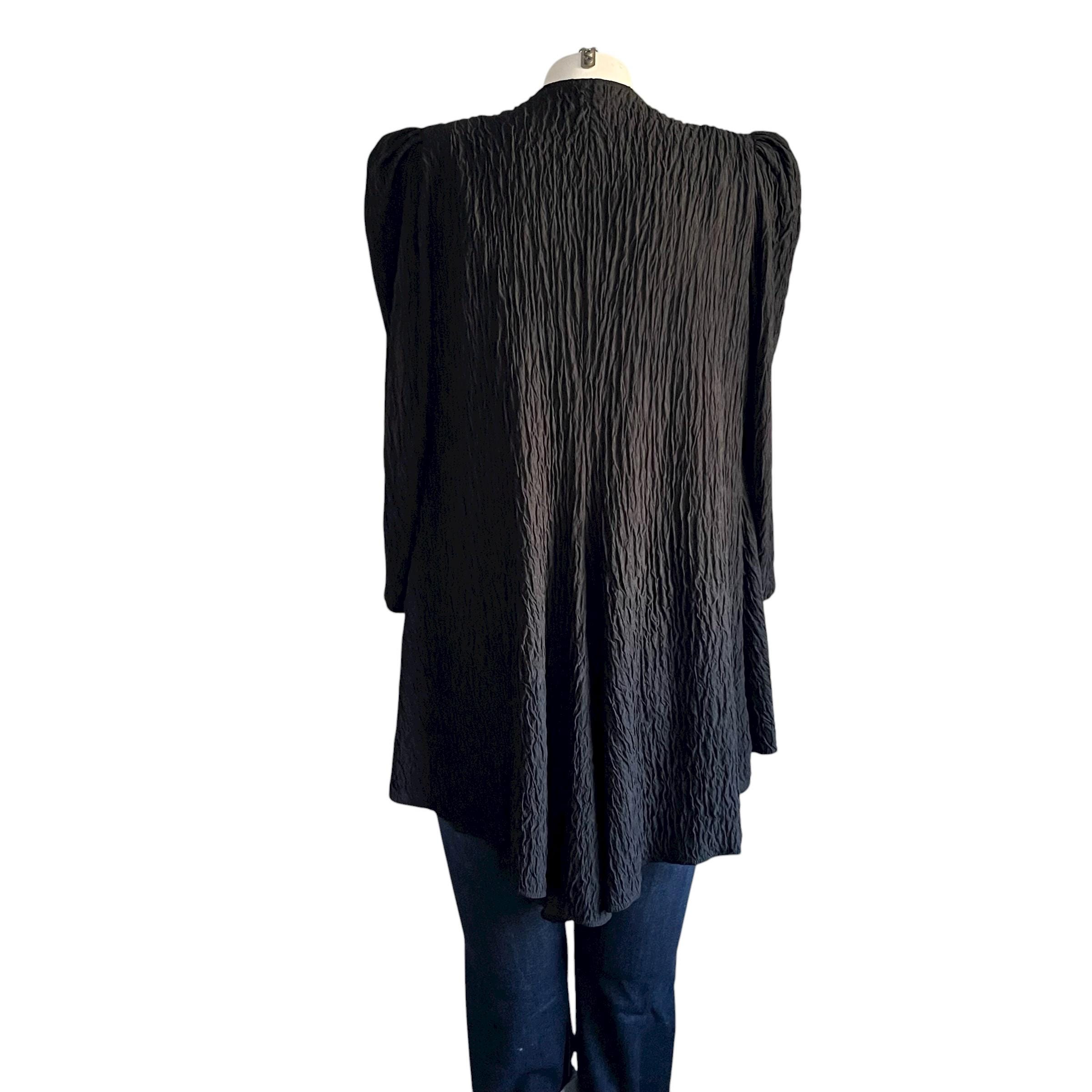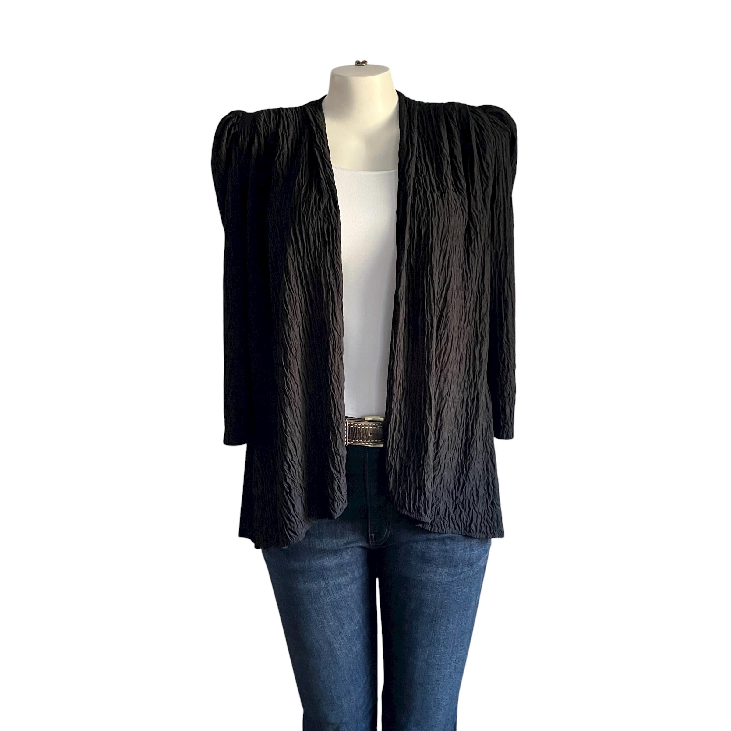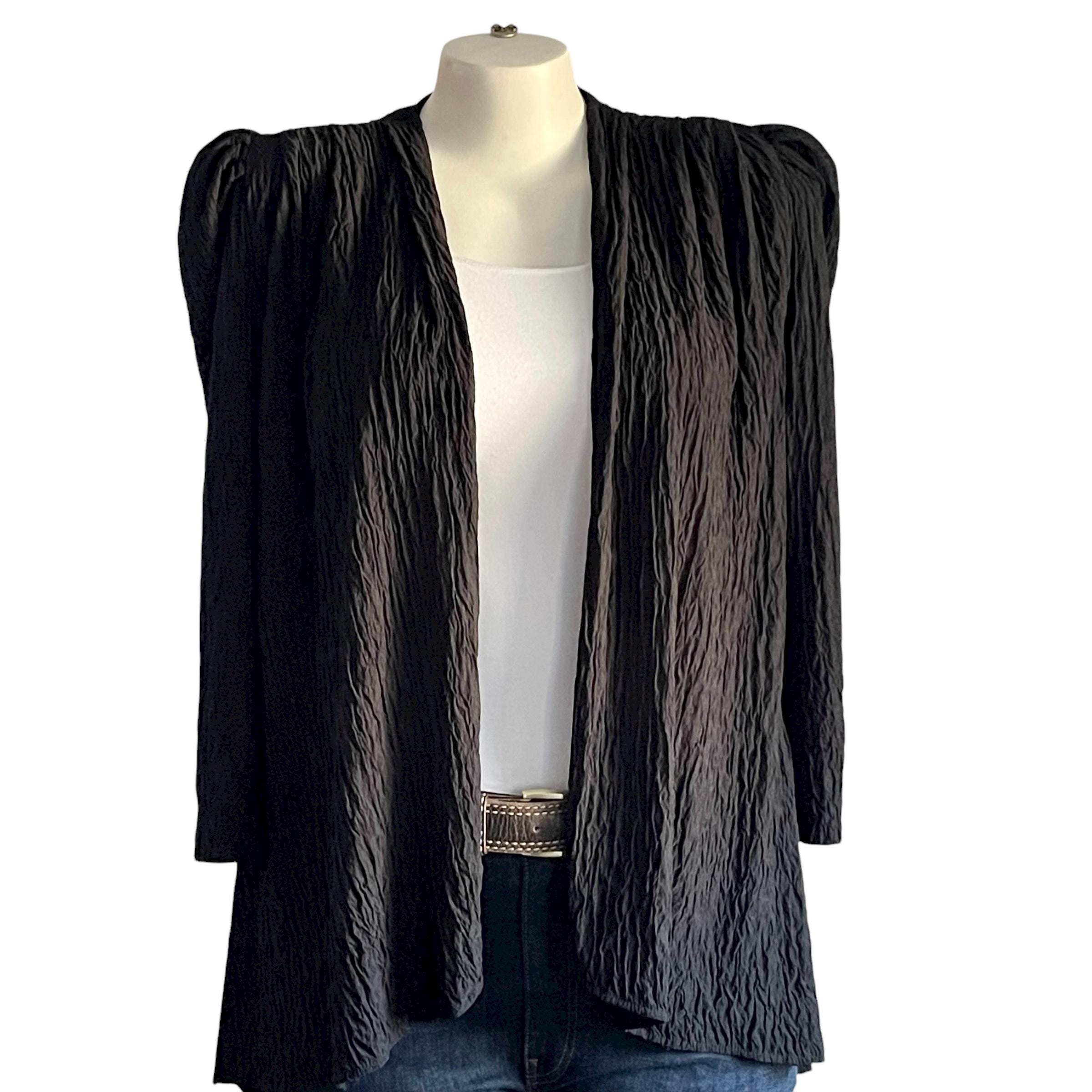 Vintage Ricardo E. Barone Black Crinkle Jacket Top: Padded Shoulders, Wrinkle/Crinkle Texture, Party Jacket, Gothic, Witchcore Jacket