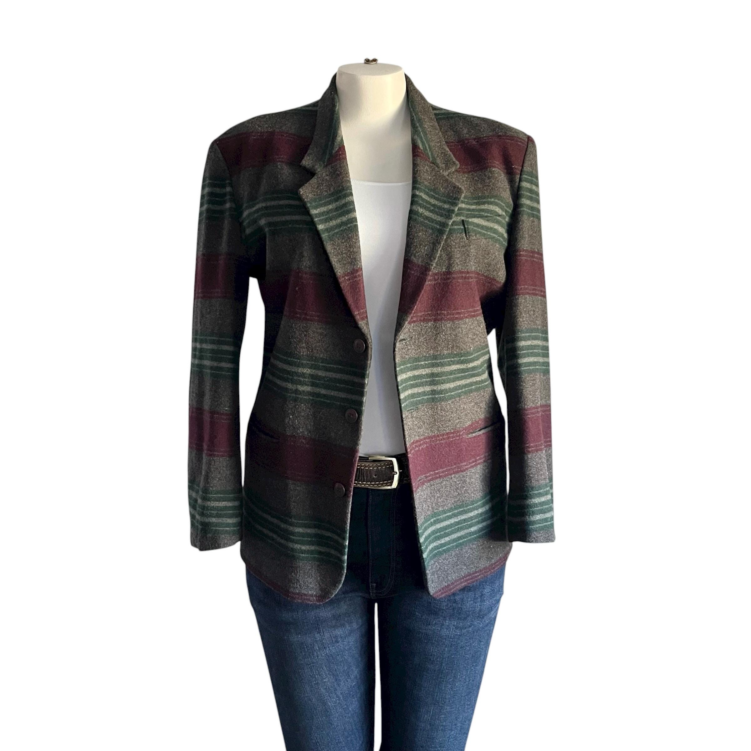 Vintage Ian Sport Striped Wool Button-Up Blazer: Retro Golf Blazer, Multicolor, Dark Academia Blazer, Teacher Blazer, Business Casual