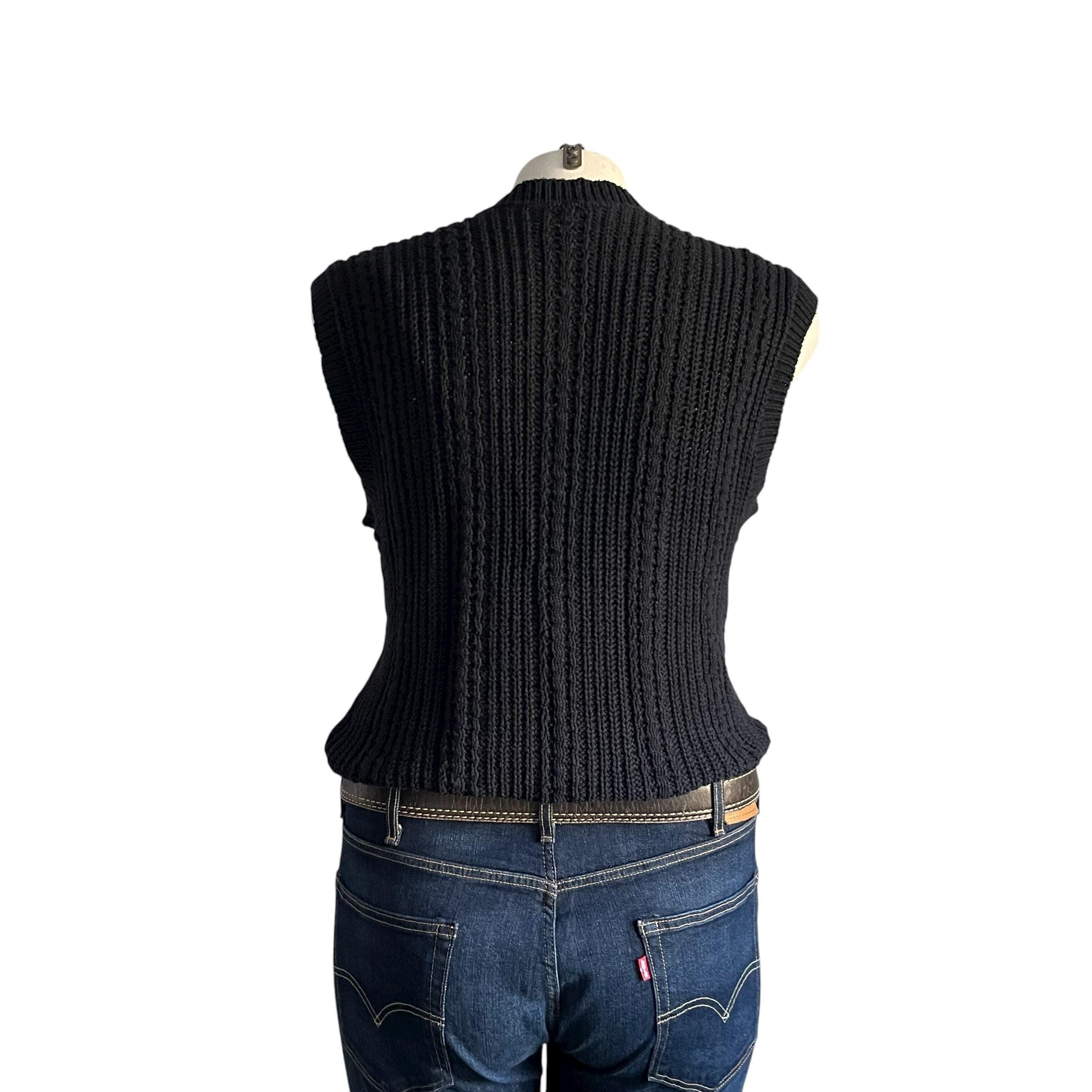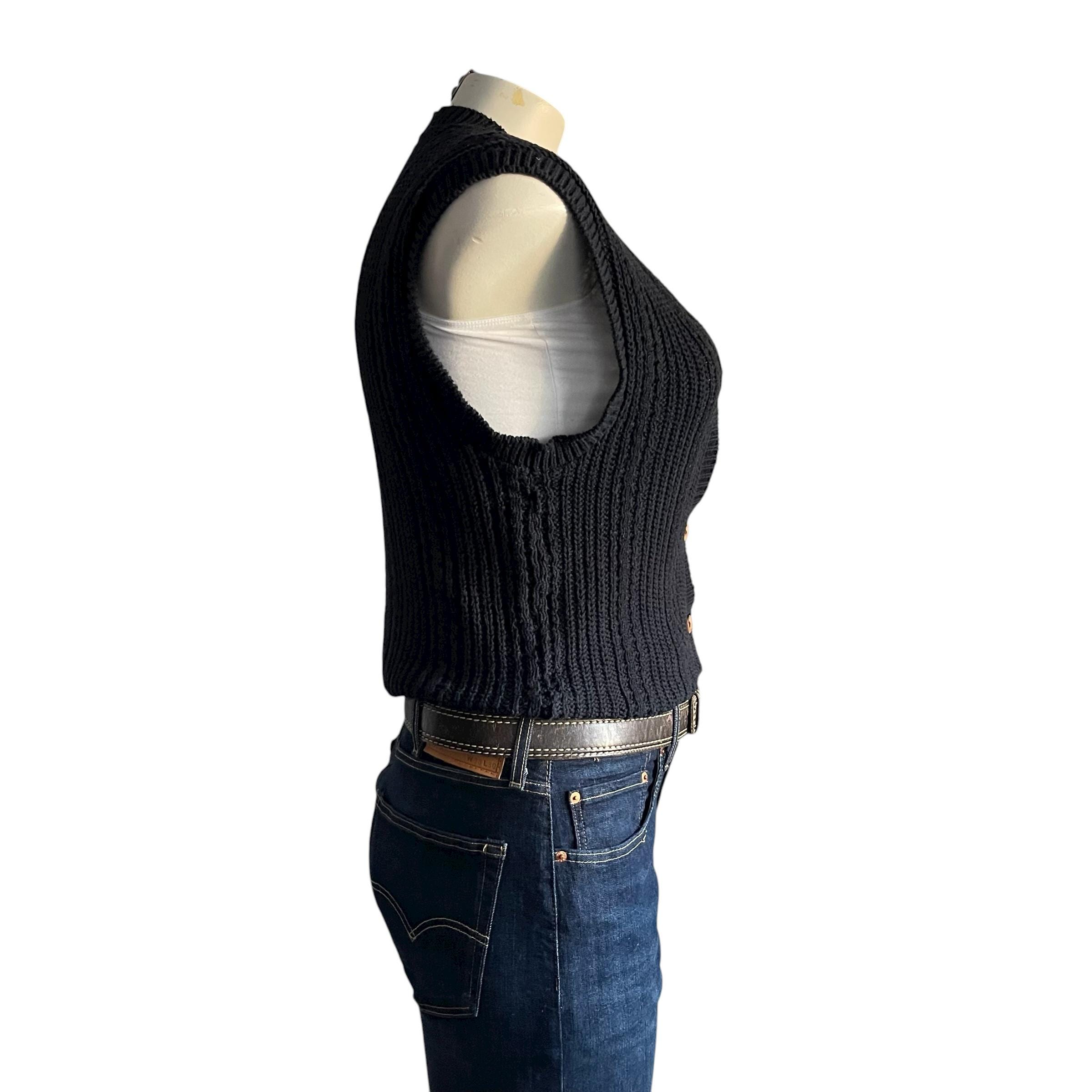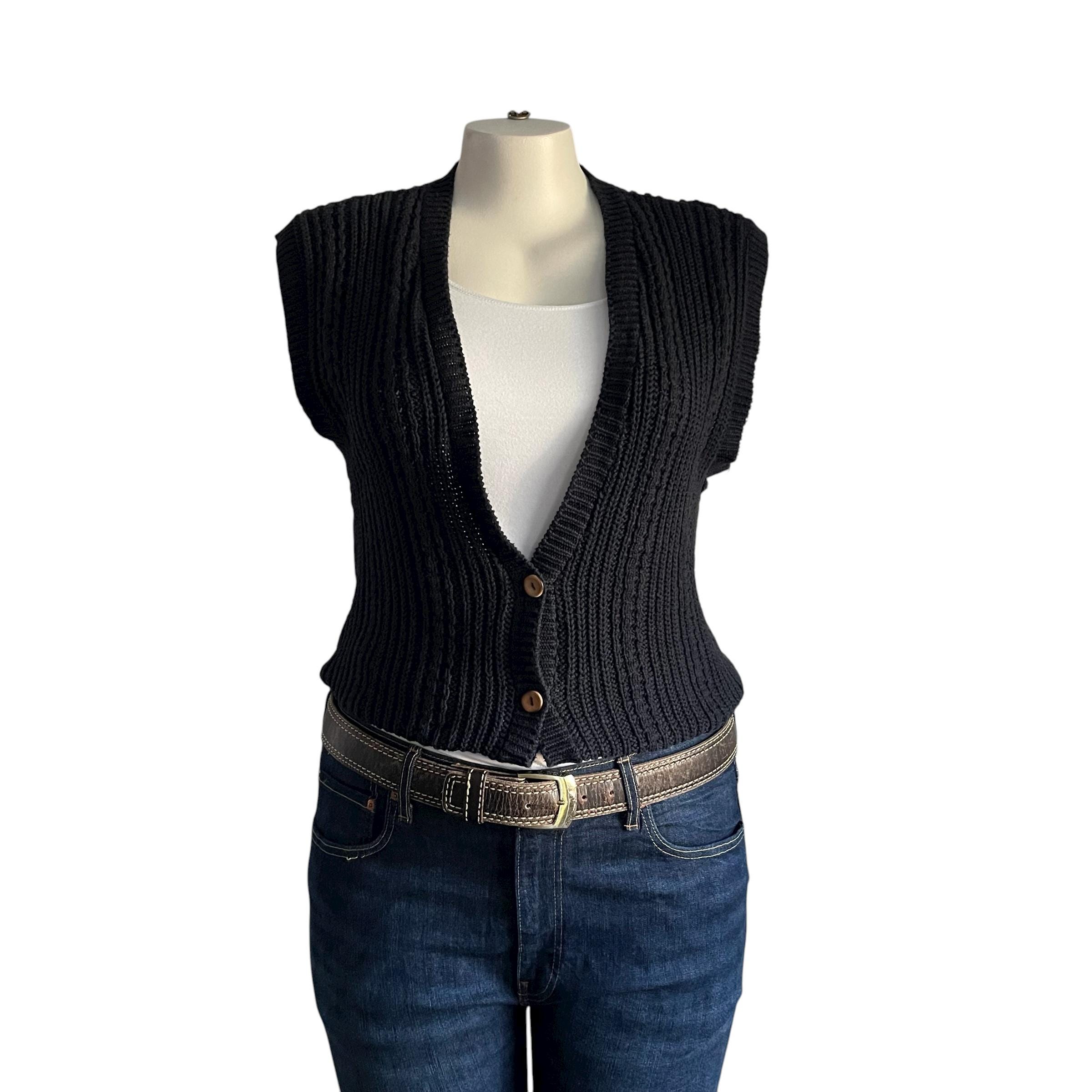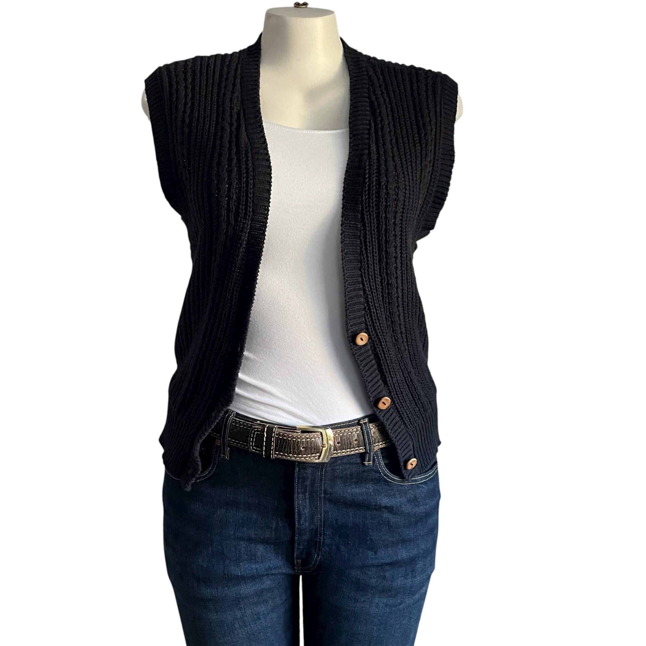 Vintage Black Sleeveless Sweater Cardigan: V-Neck Cardigan, Casual Cardigan Top, Two Buttons, Knitted Cardigan, Whimsigoth Cardigan