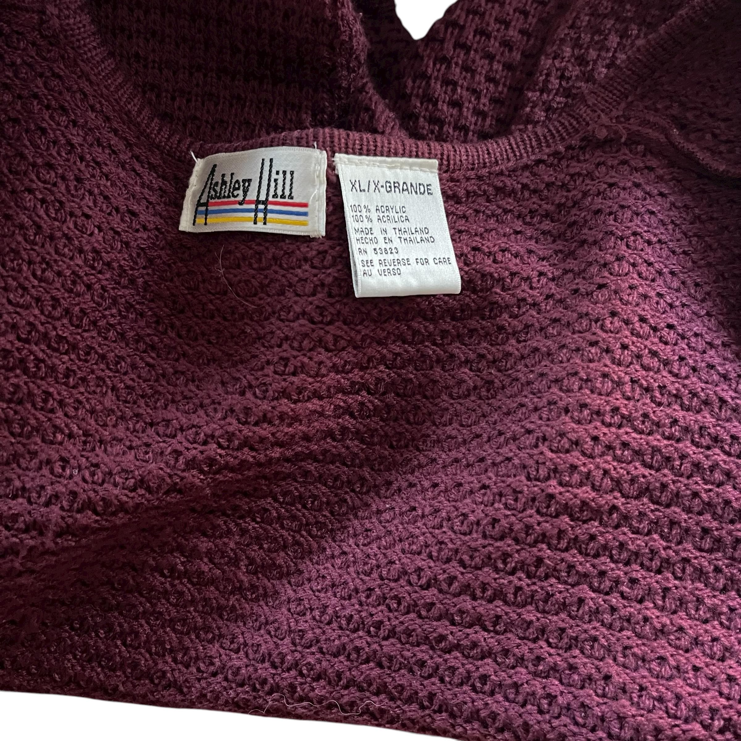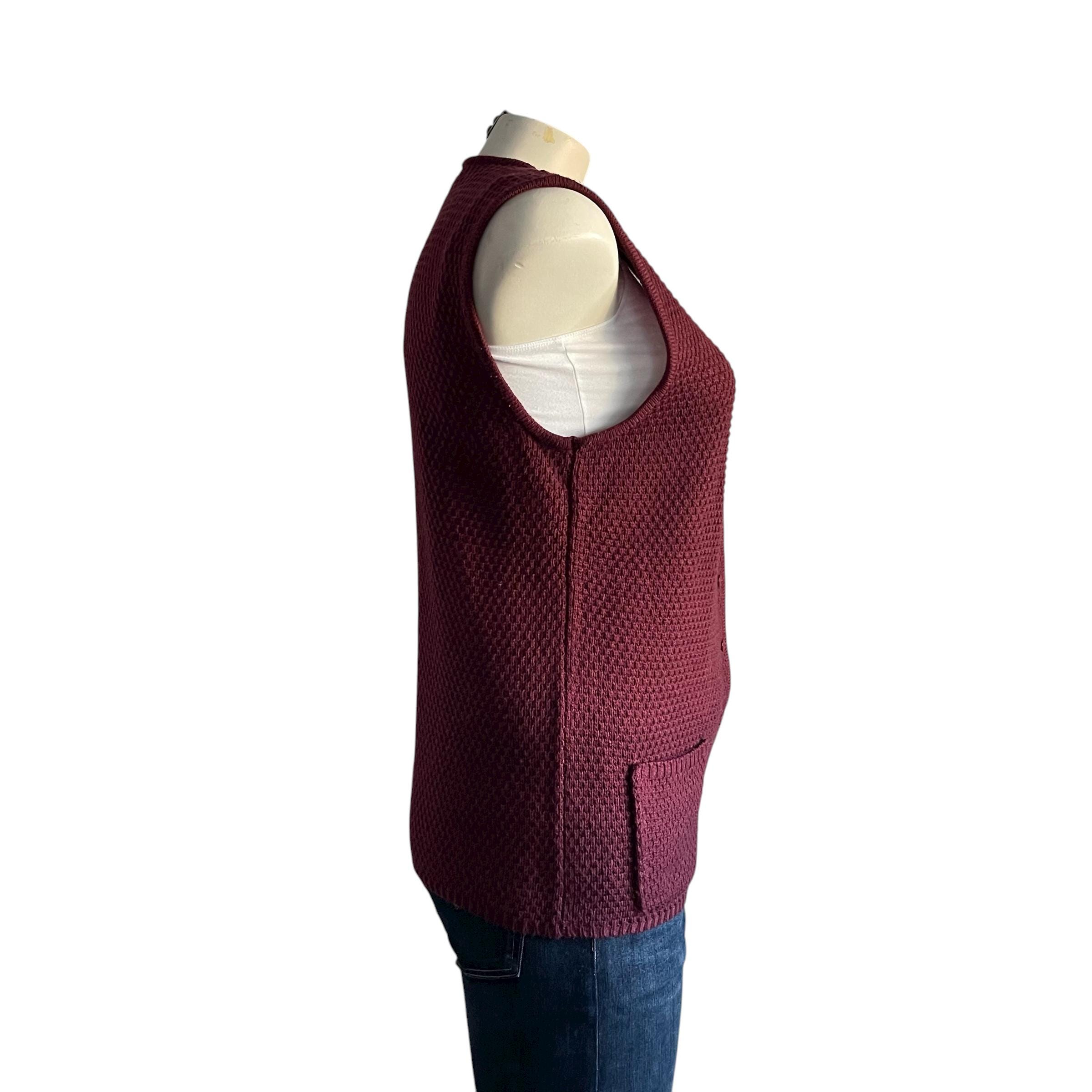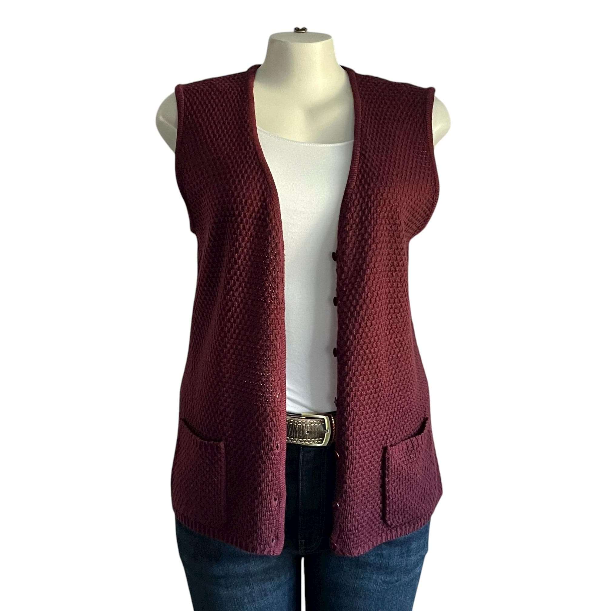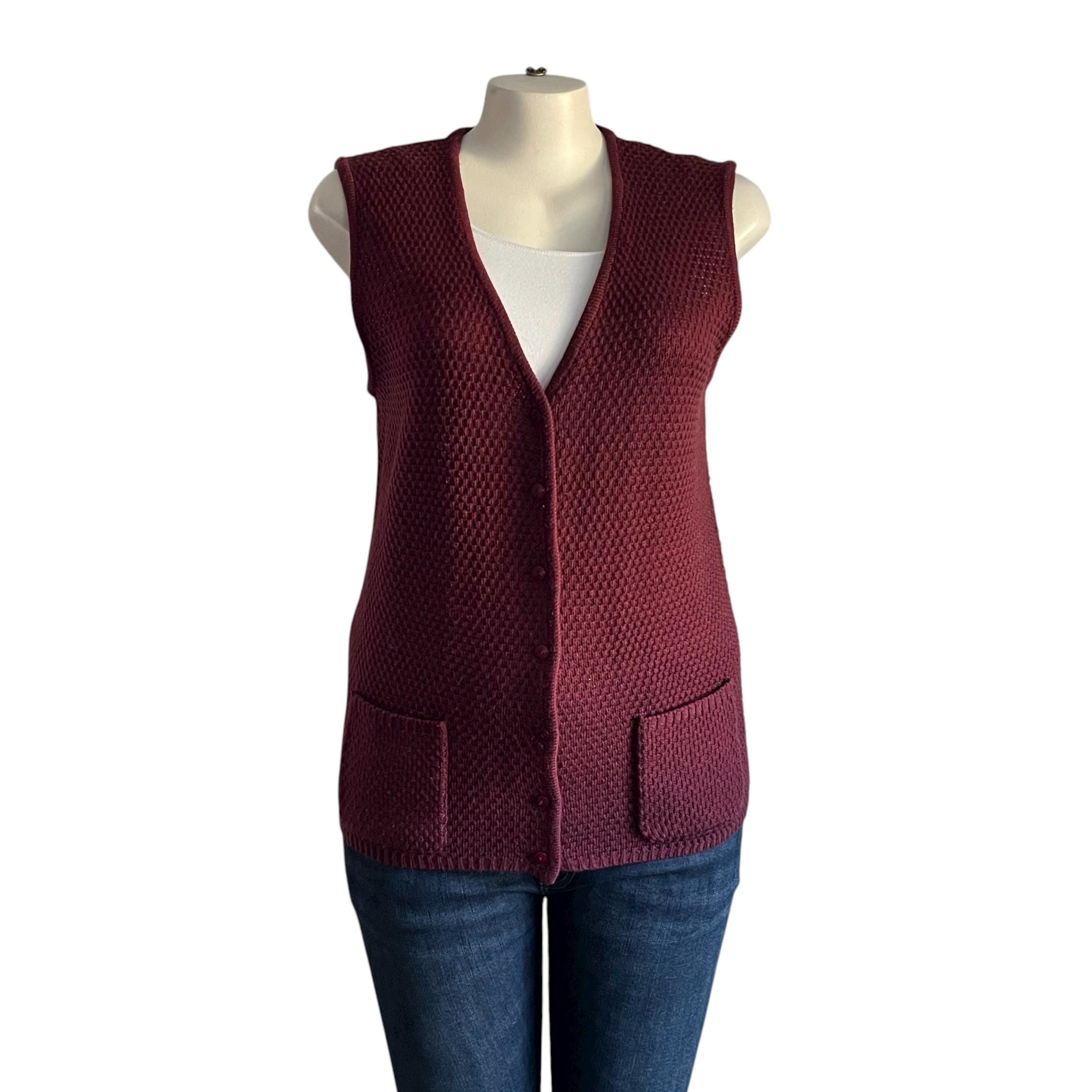 Vintage Ashley Hill Long Maroon-Burgundy Sweater Vest: Autumn Vest, Fall Vest, Pockets, Button-Up Sweater, Sleeveless Sweater, Whimsigoth
