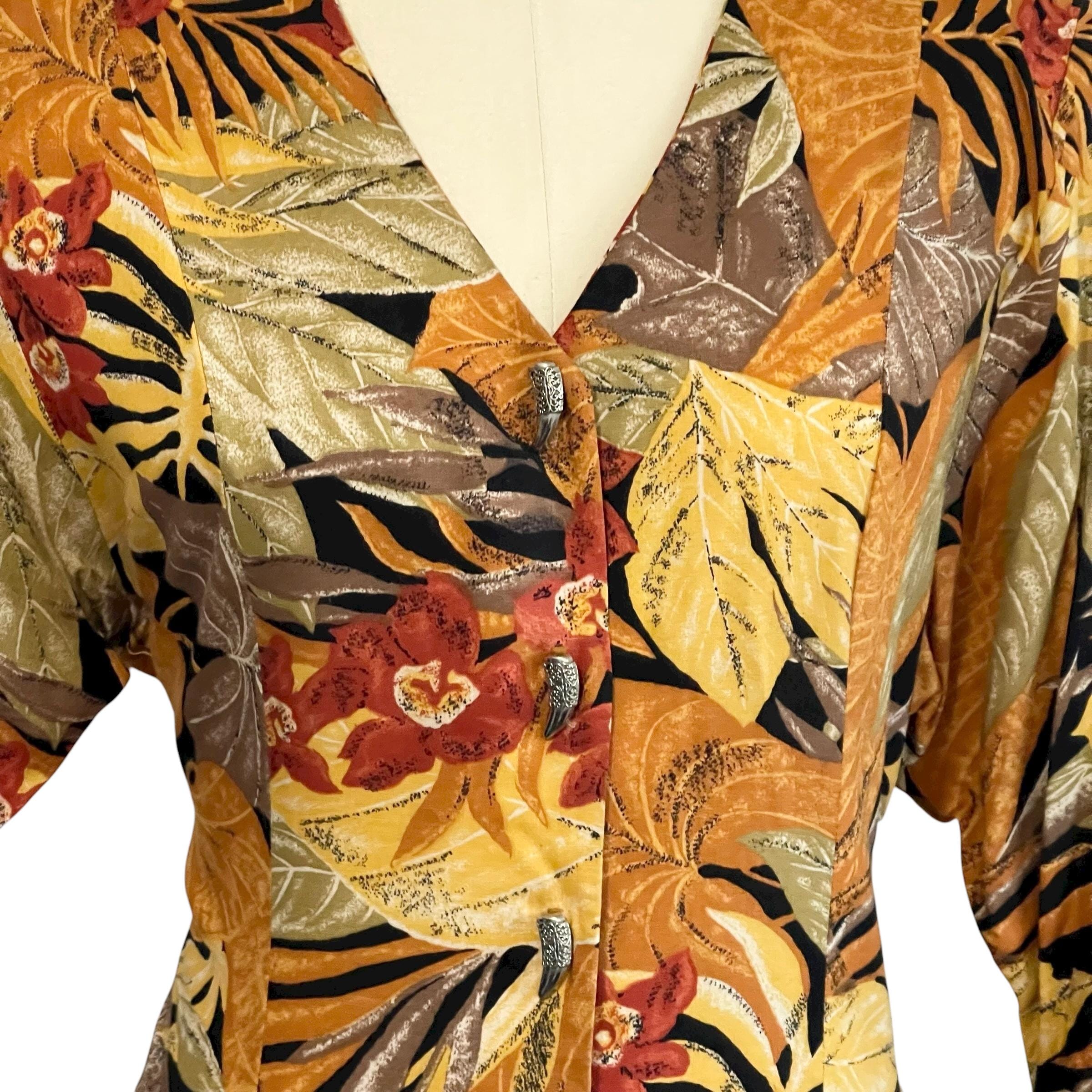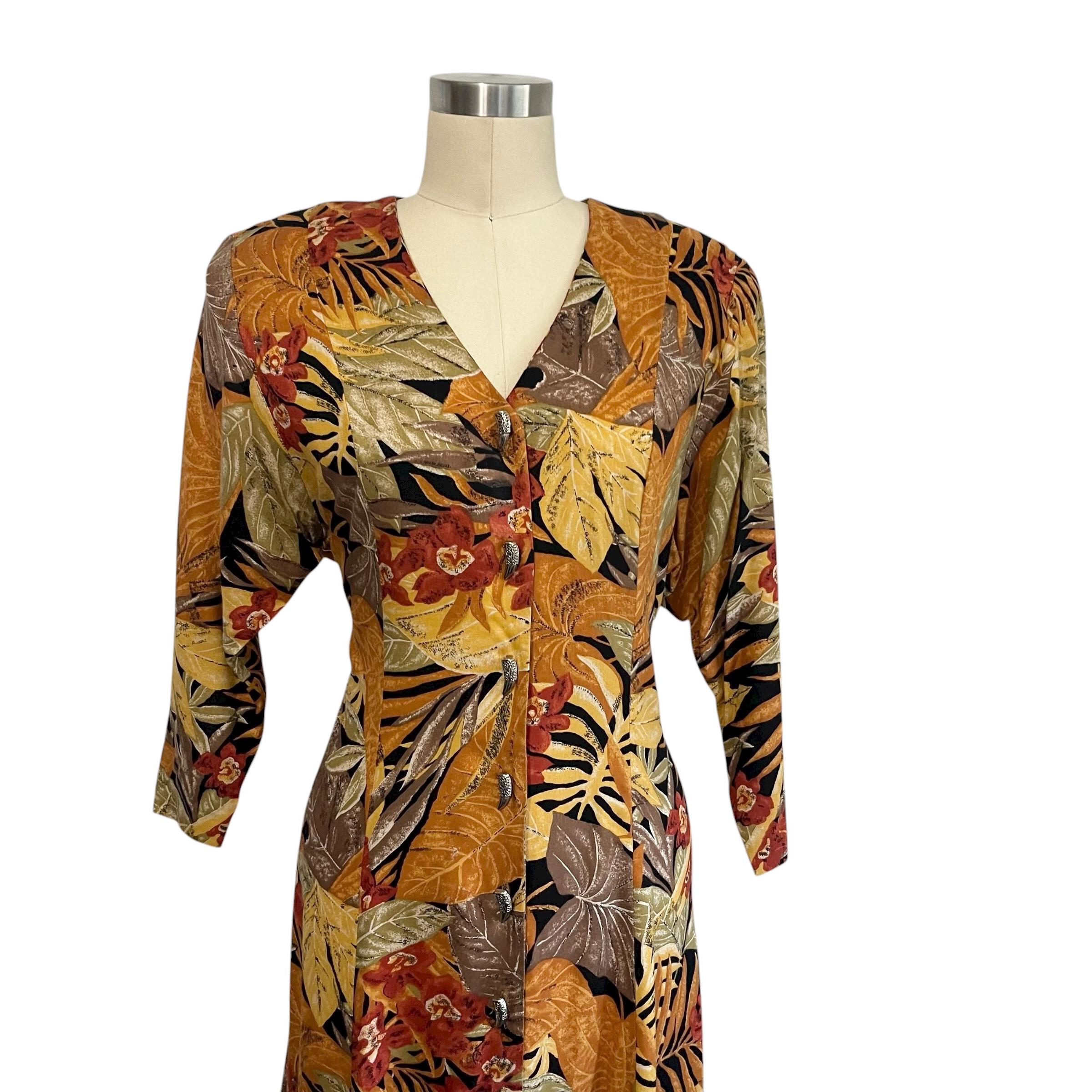 Vintage Anthony Mark Hawkins Autumn Boho Dress: Warm Colors, Sleeved Dress, Button-Up Dress, Fall Dress, Hippie Dress