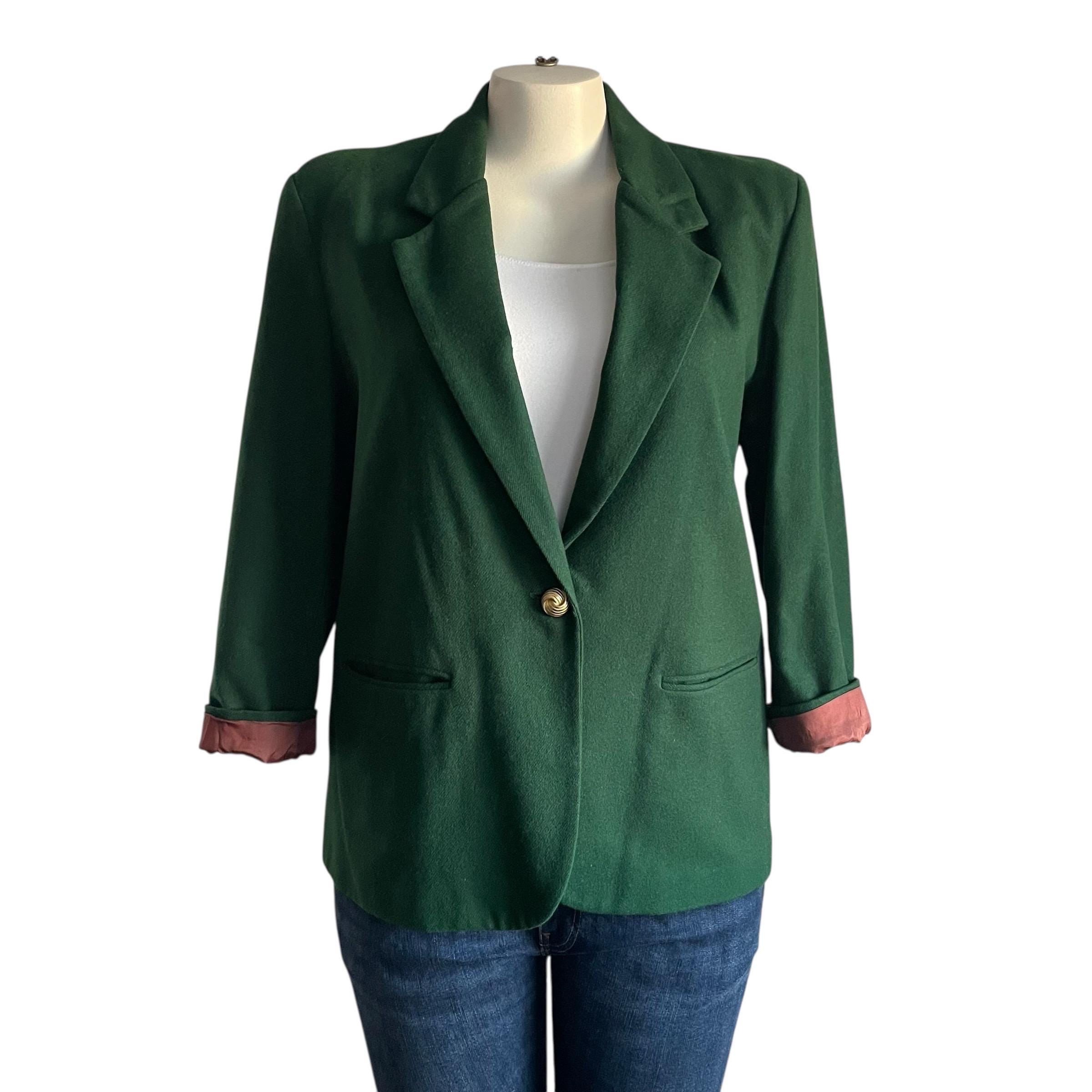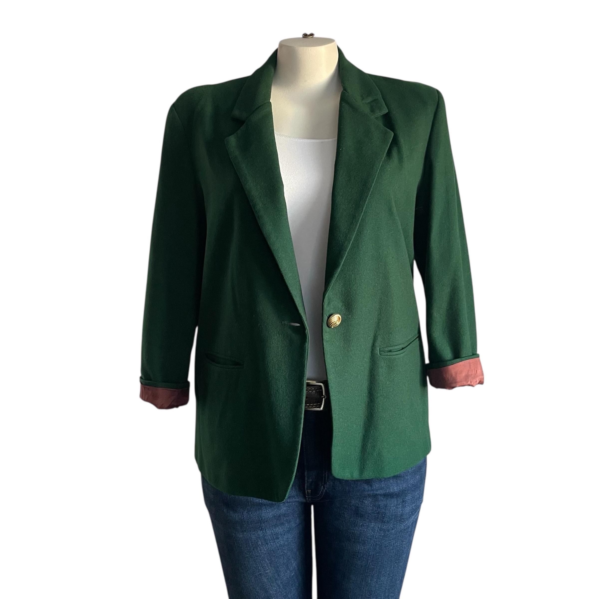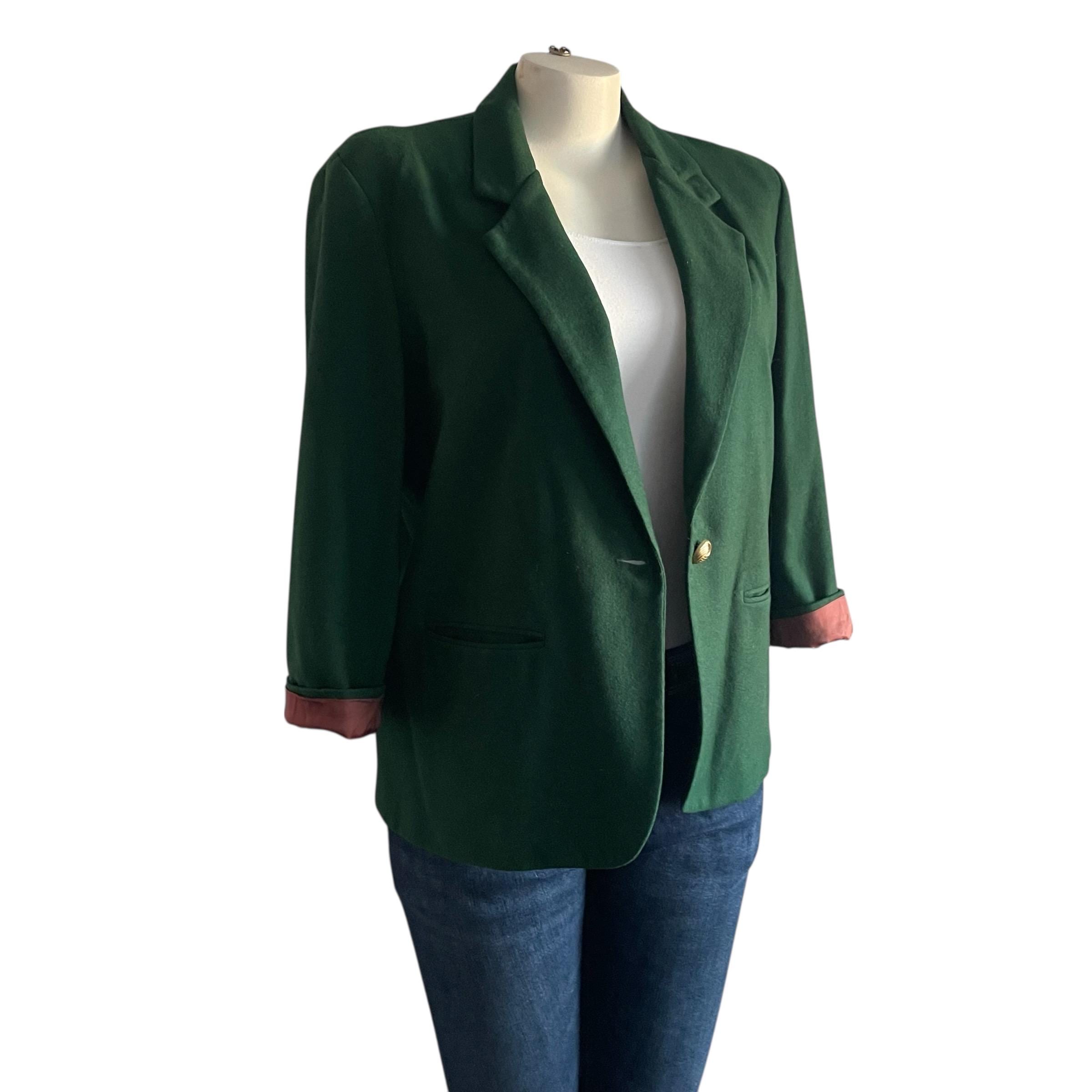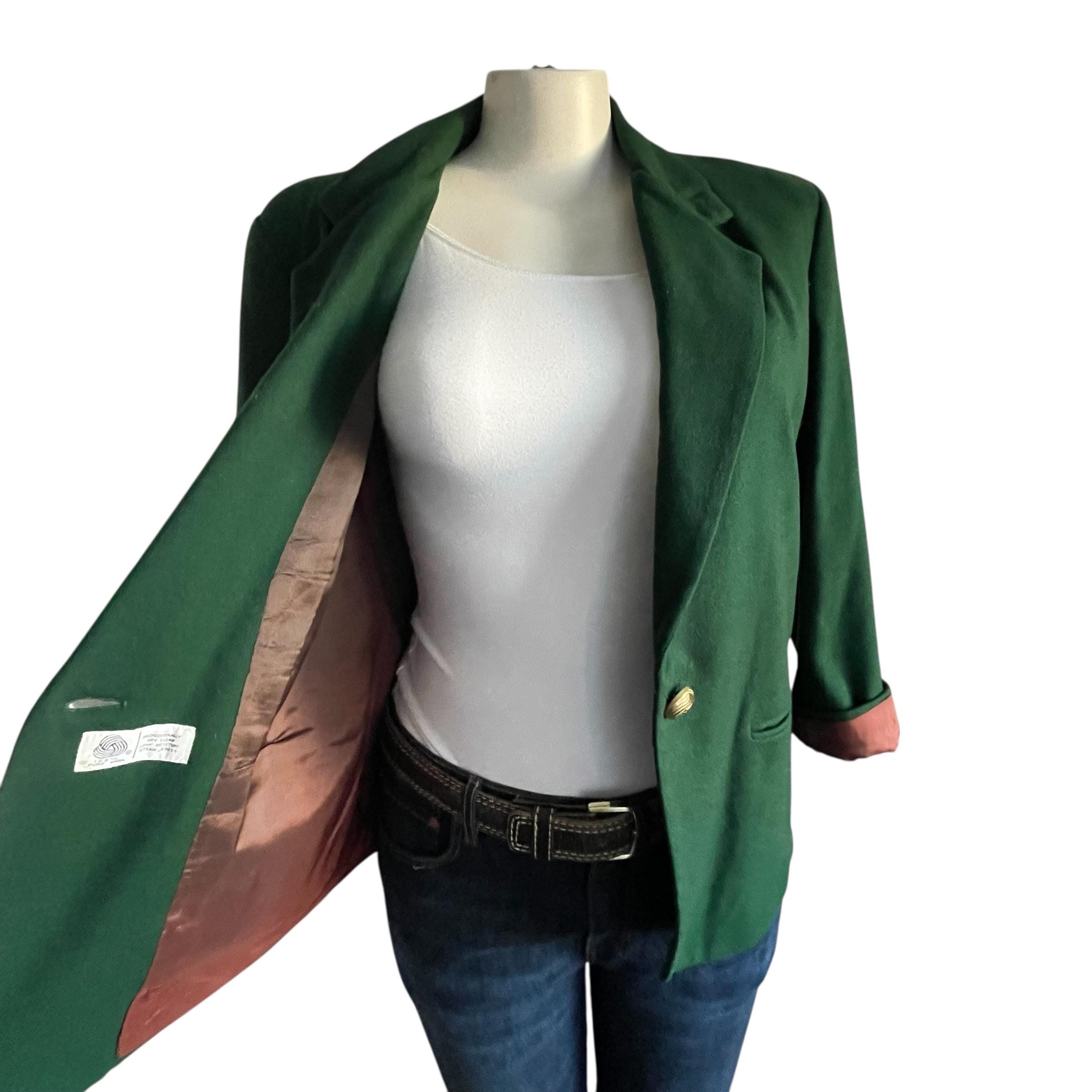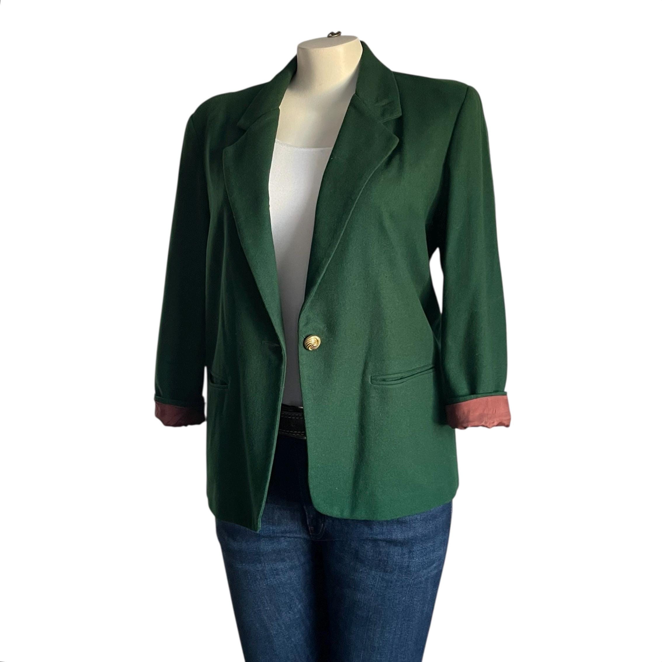 Vintage Savannah Green Wool Blazer Jacket: Plus Size Blazer, 100% Pure Wool, Autumn Blazer, Fall Blazer, One Button, Pockets, 90s Y2K Blazer