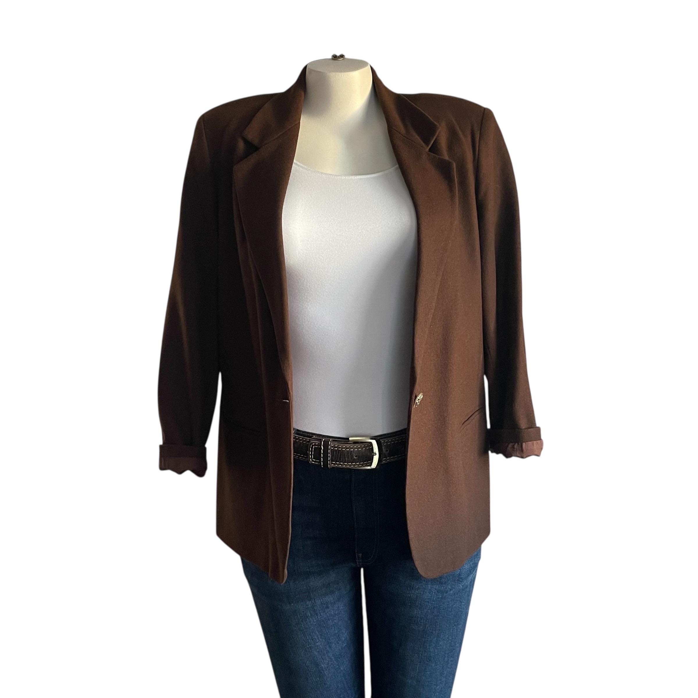 Vintage Sag Harbor Brown Wool Teacher Blazer Jacket: 100% Pure Wool, Pockets, One Button, Autumn, Fall, Coffee Shop Blazer, 80s 90s Y2K