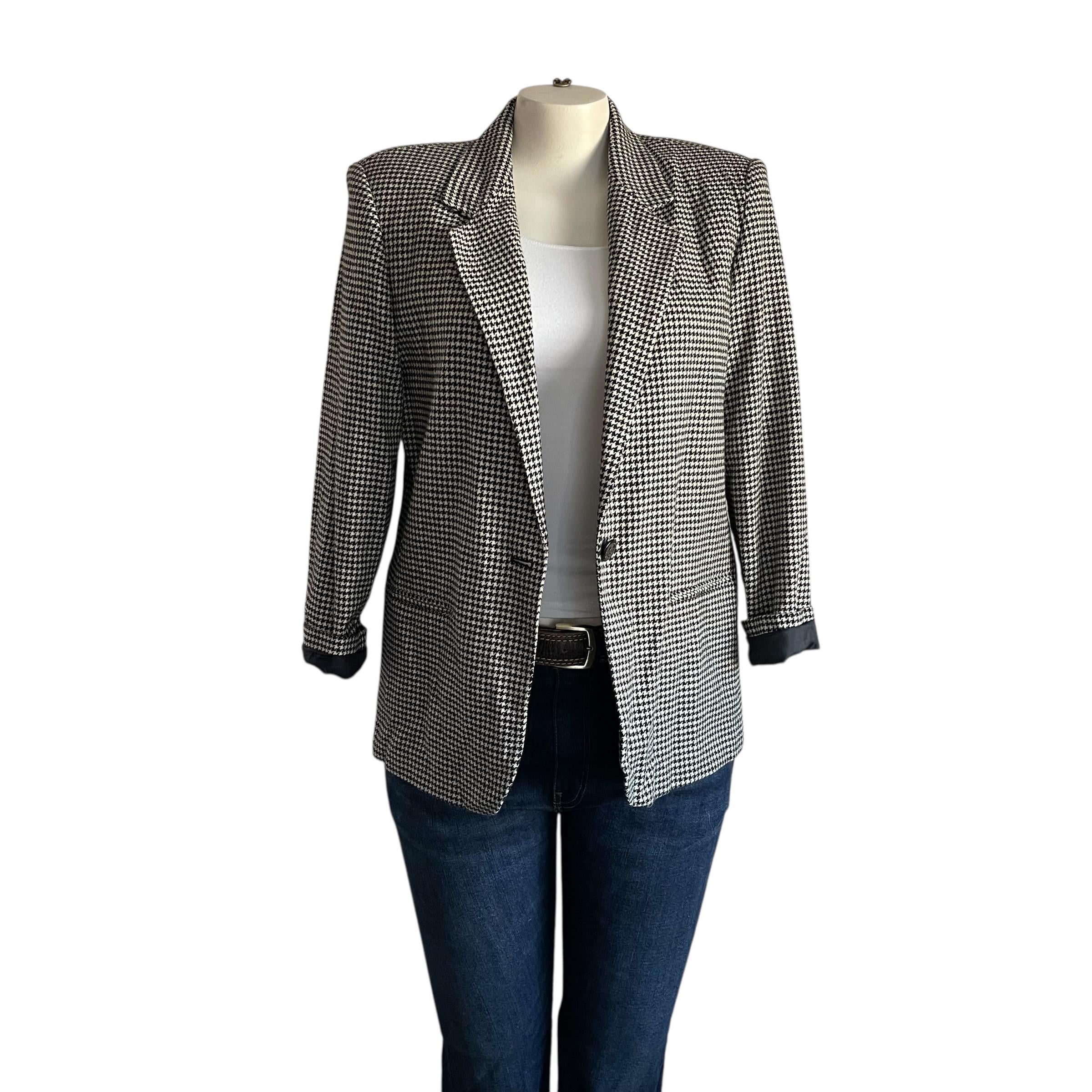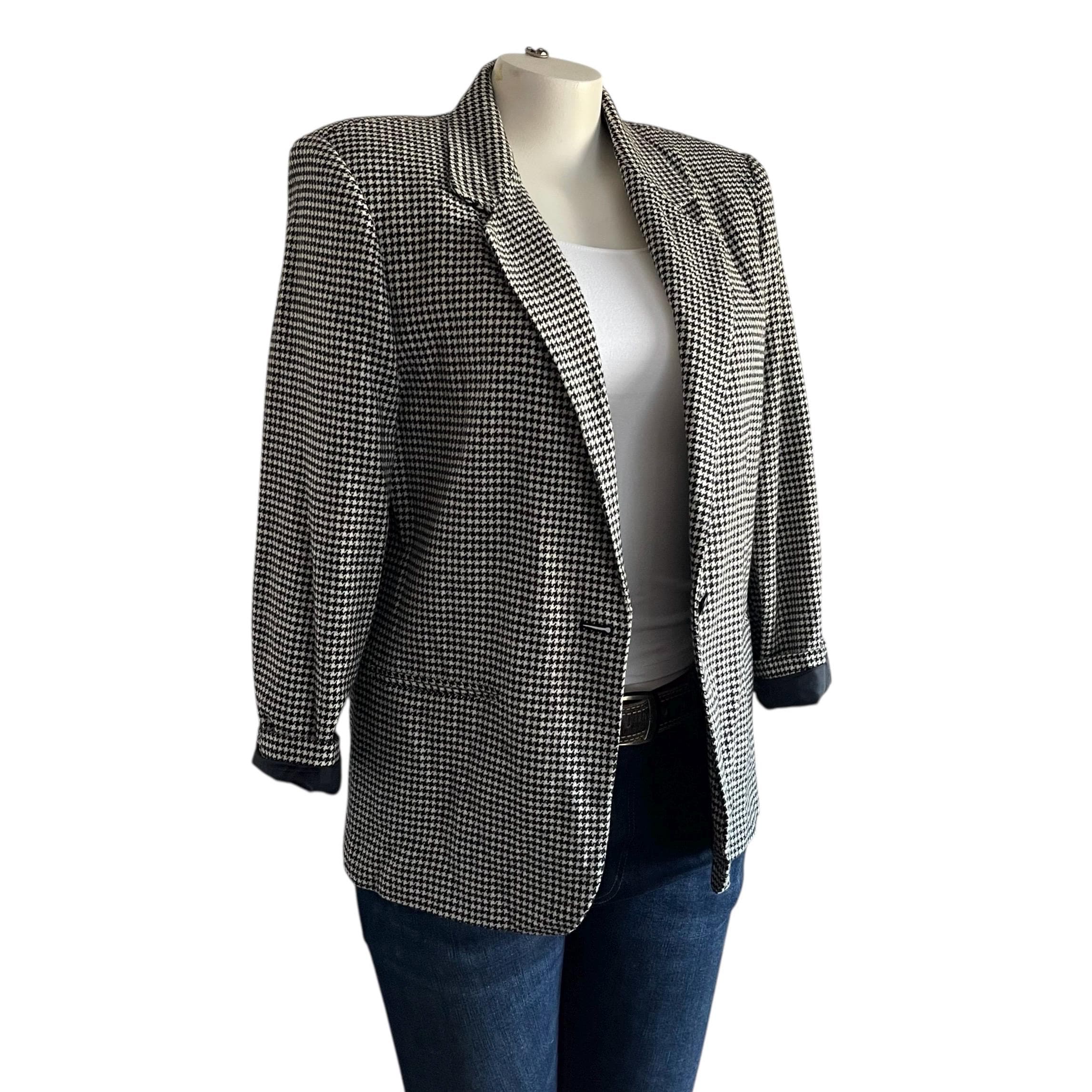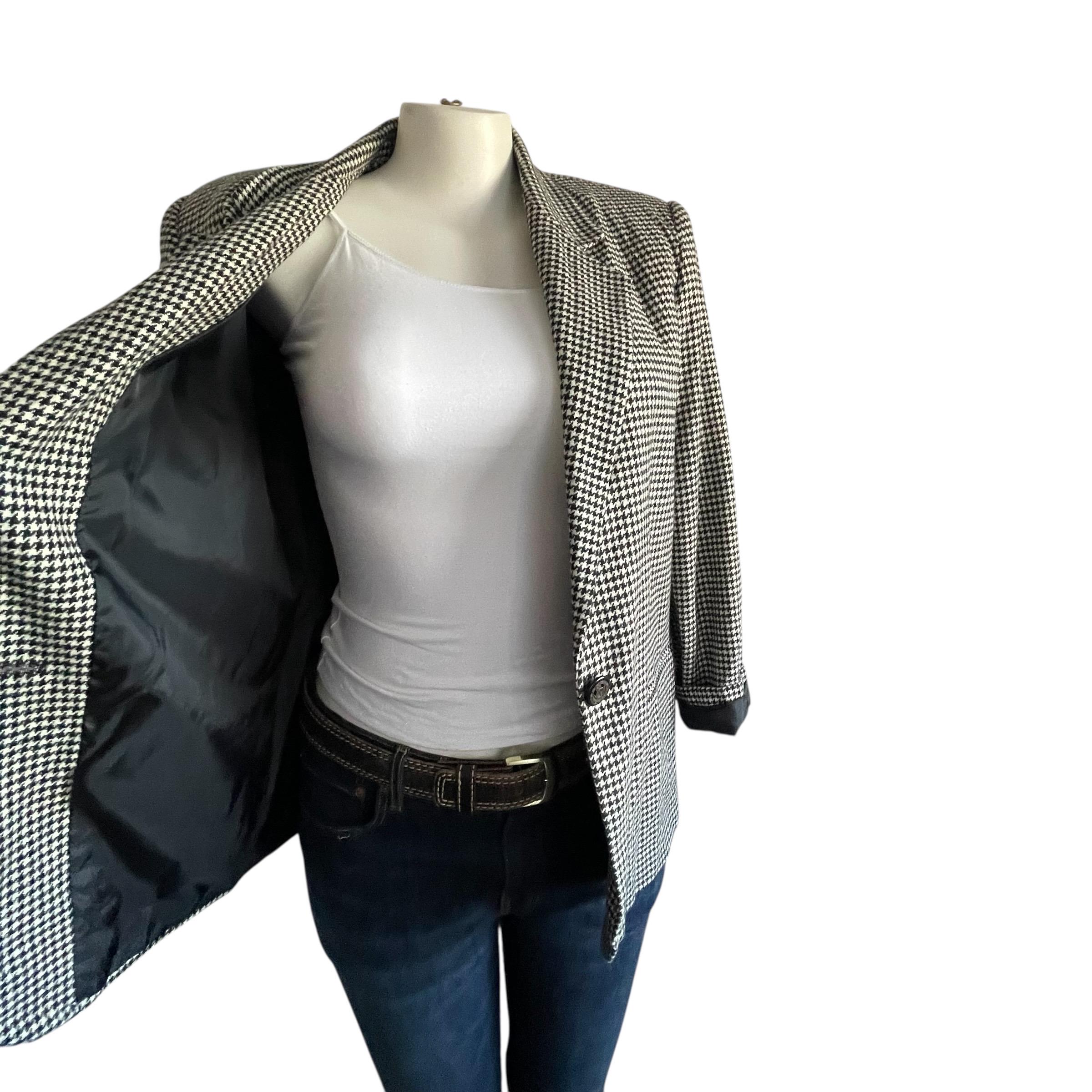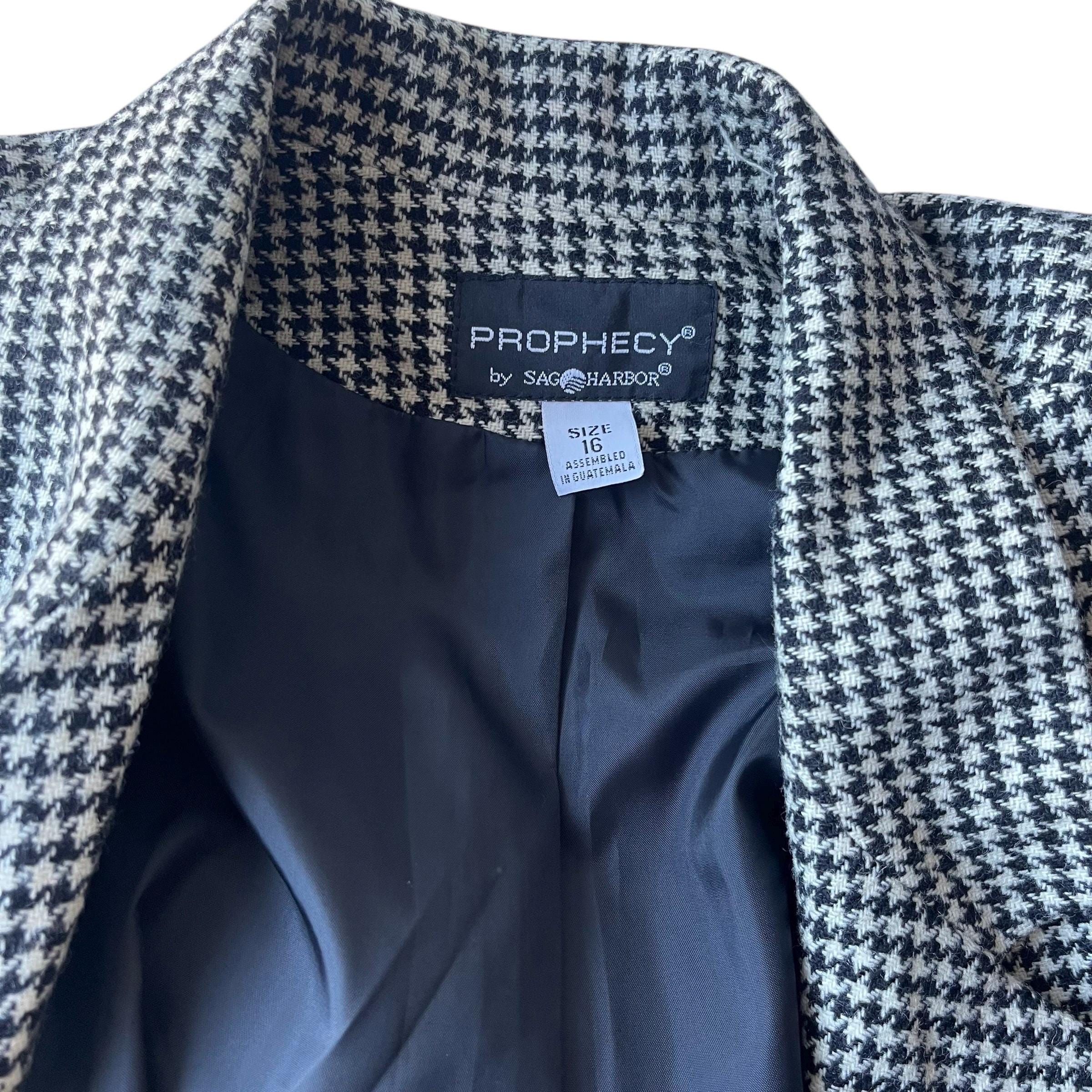 Vintage Prophecy Dark Academia Houndstooth Blazer Jacket: Black and White Teacher Blazer, Wool Blazer, Plus Size, 80s 90s Y2K Blazer