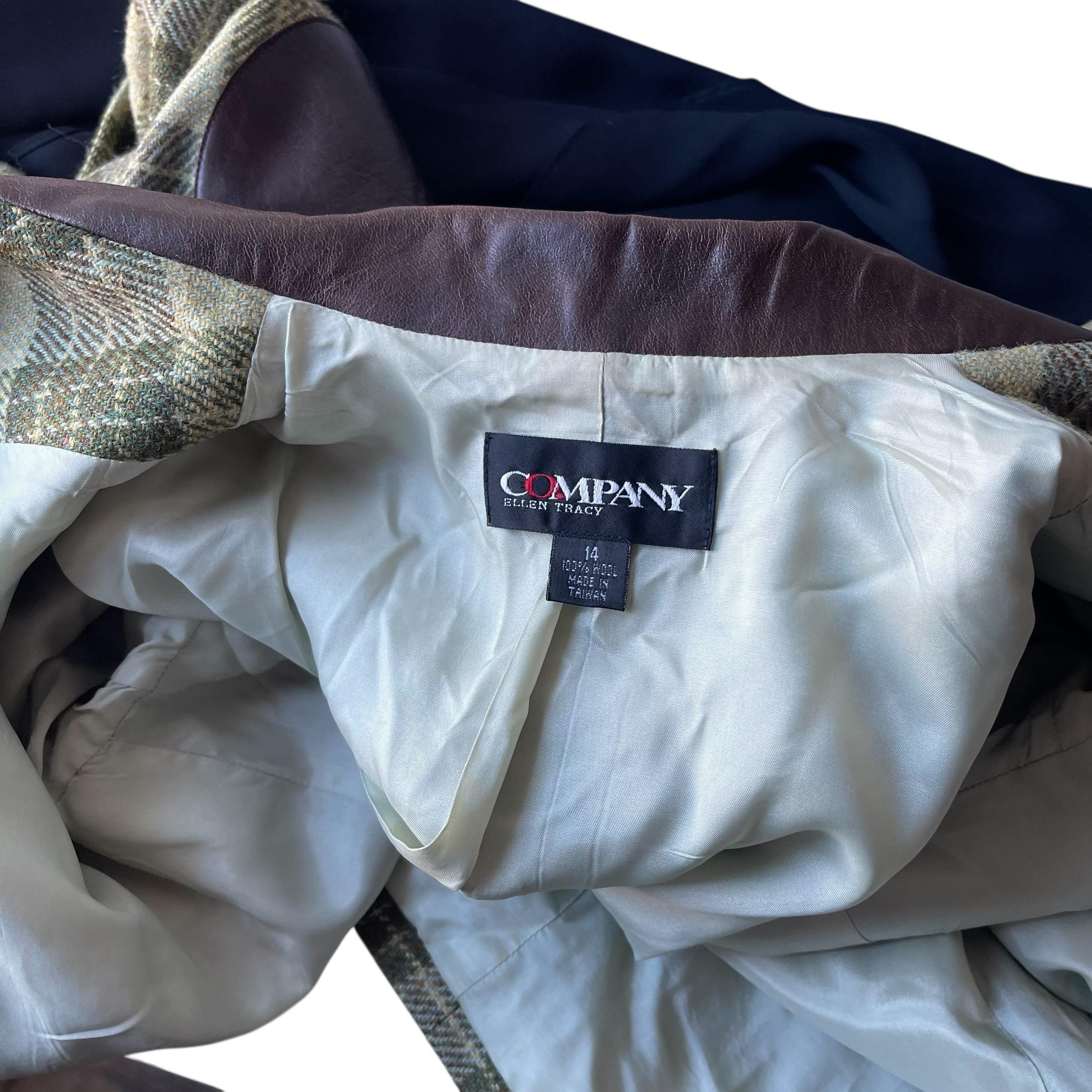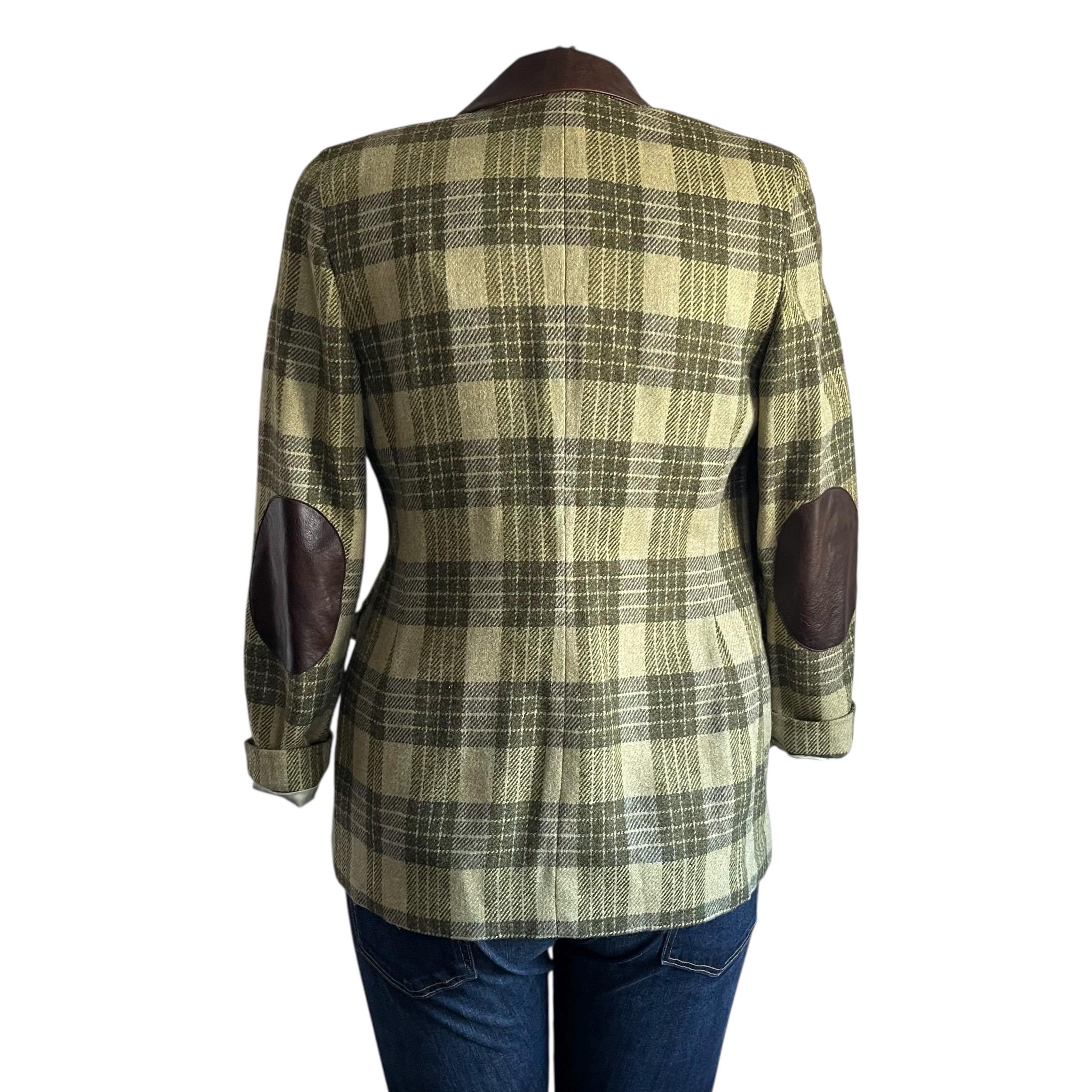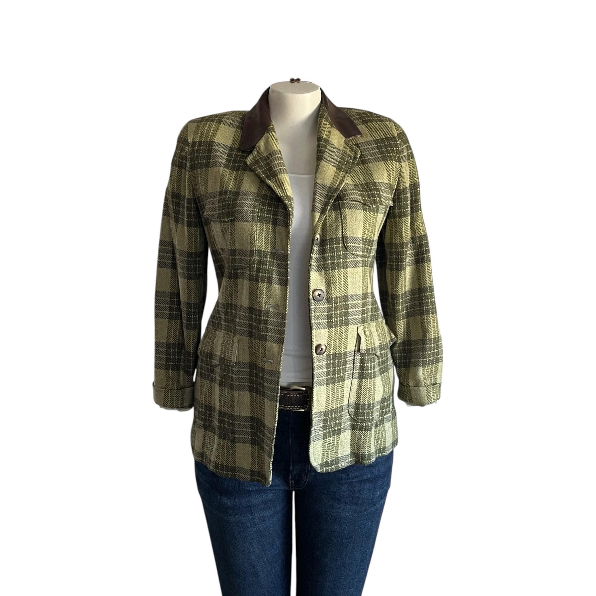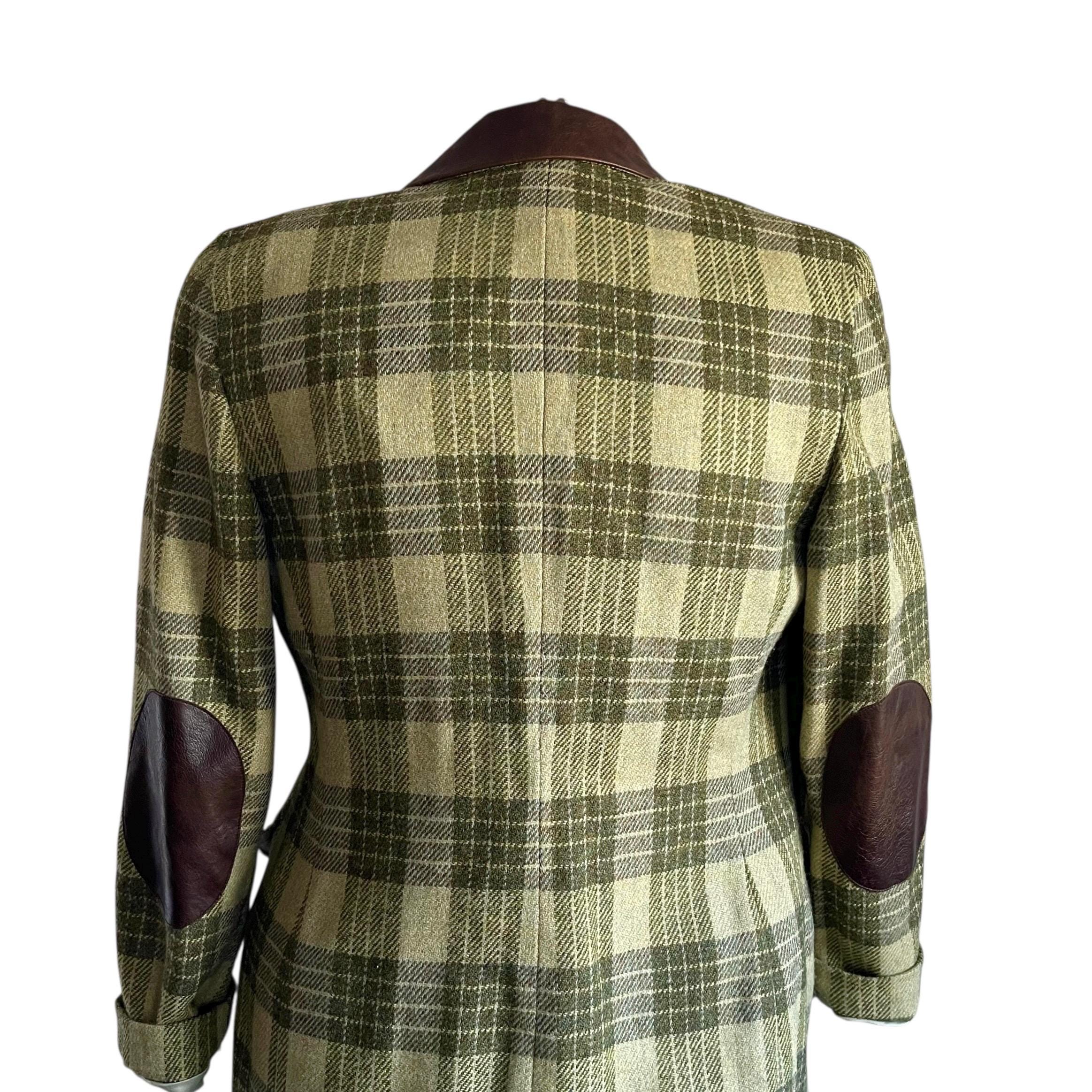 Vintage Ellen Tracy Company Green Plaid Check Jackets: Retro Plaid Wool Farmer Blazers, Cottagecore Blazers, Elbow Patches