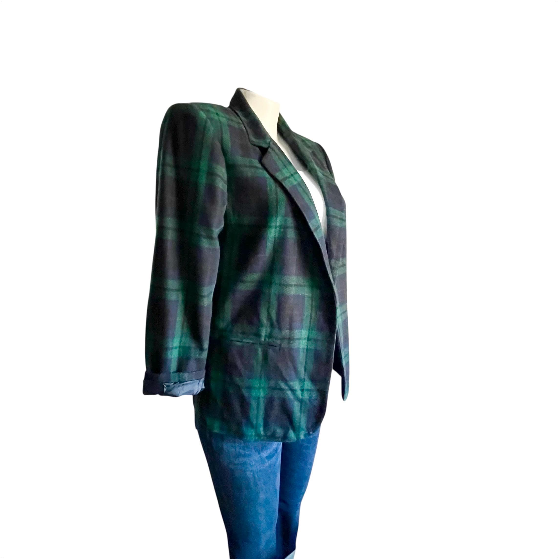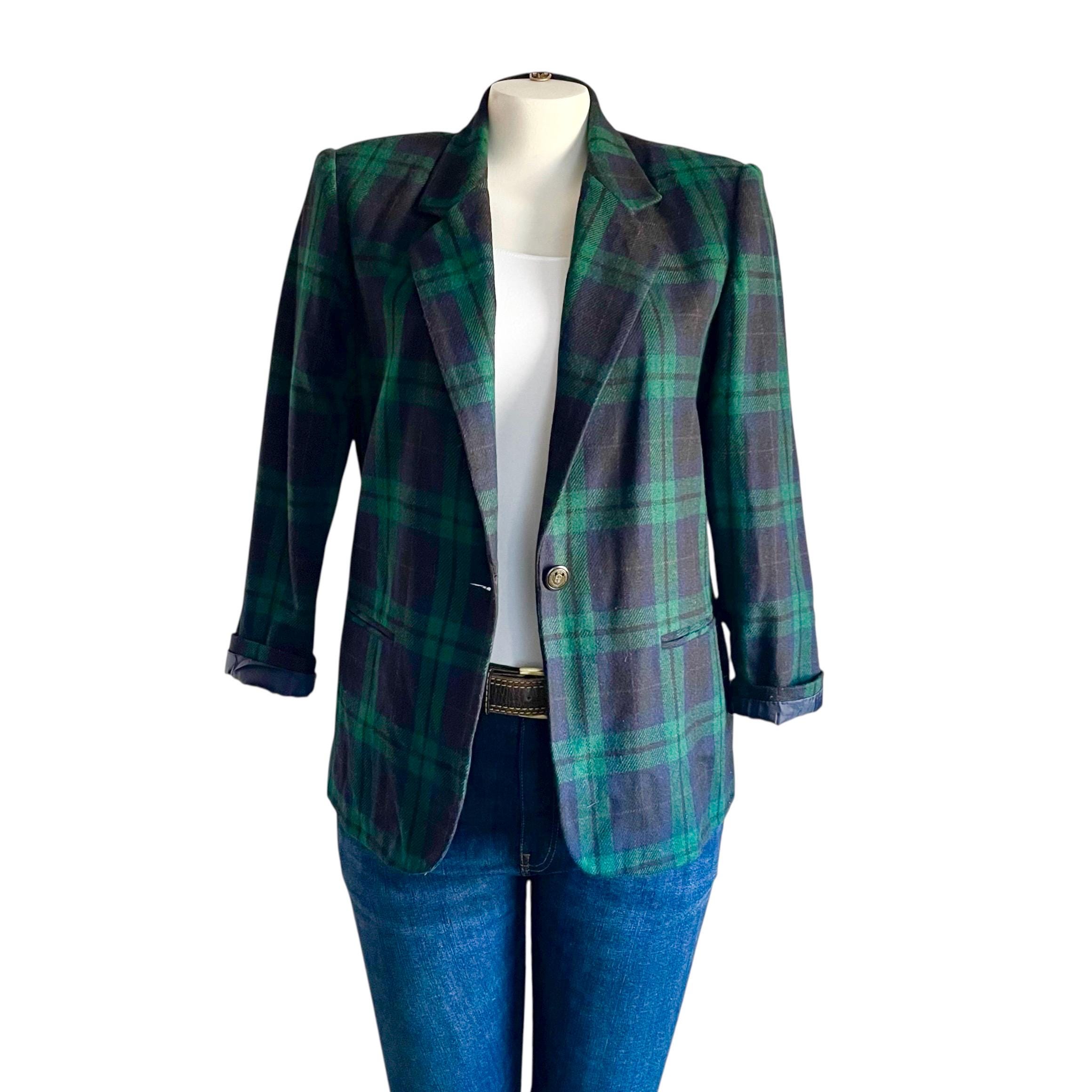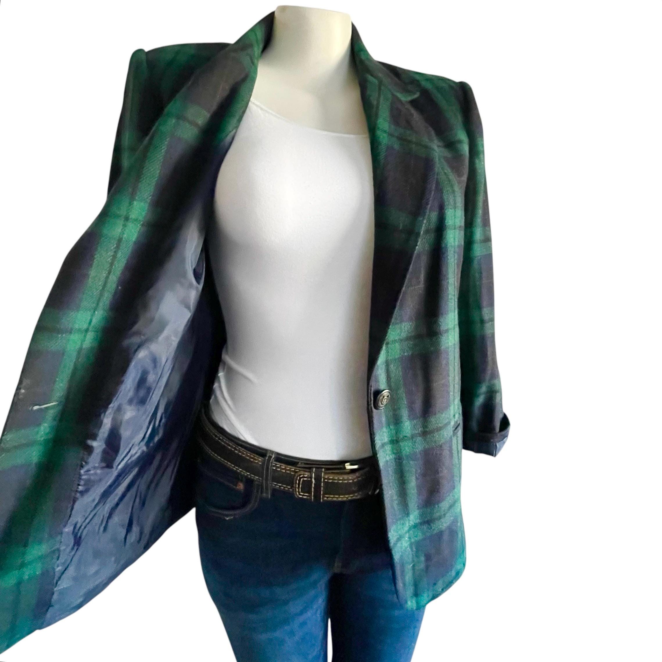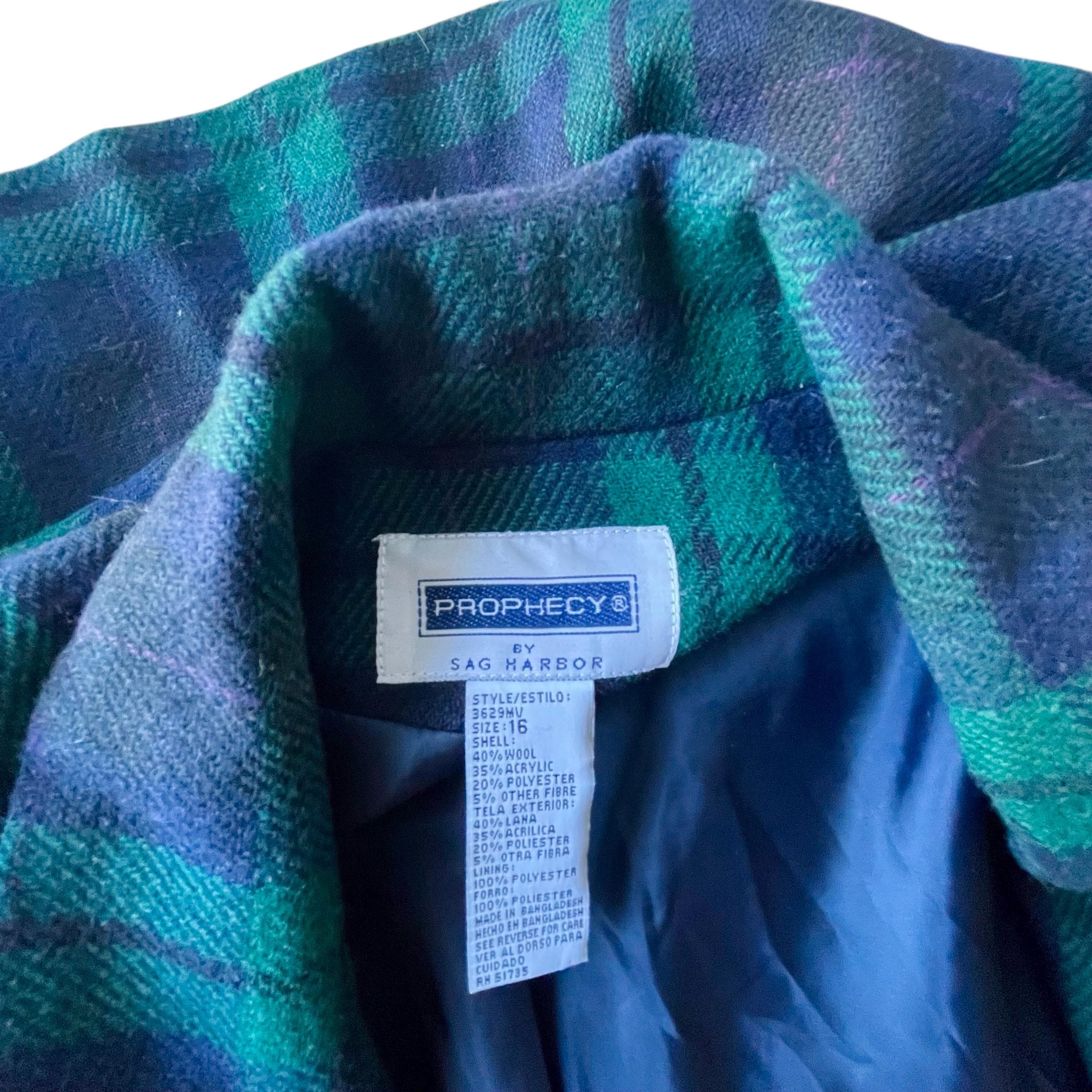 Vintage Prophecy Green Plaid Wool Blazer Jacket: Dark Grunge Blazer, Autumn Blazer, Fall Blazer, One Button, Pockets, Sag Harbor, 90s Y2K