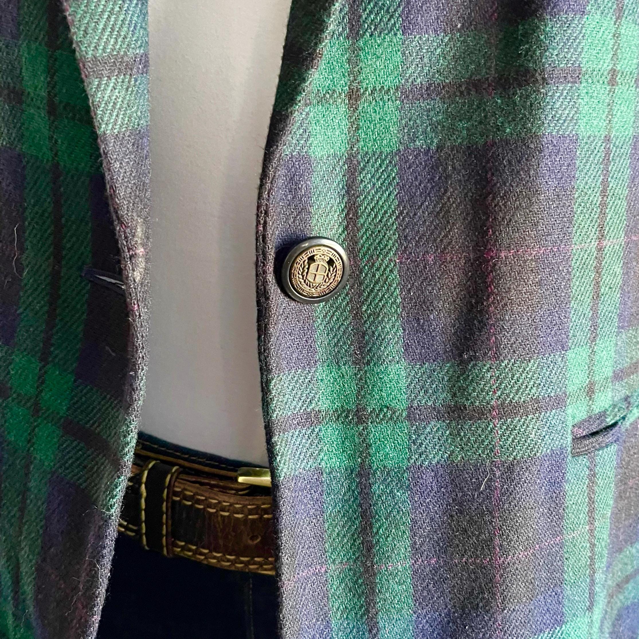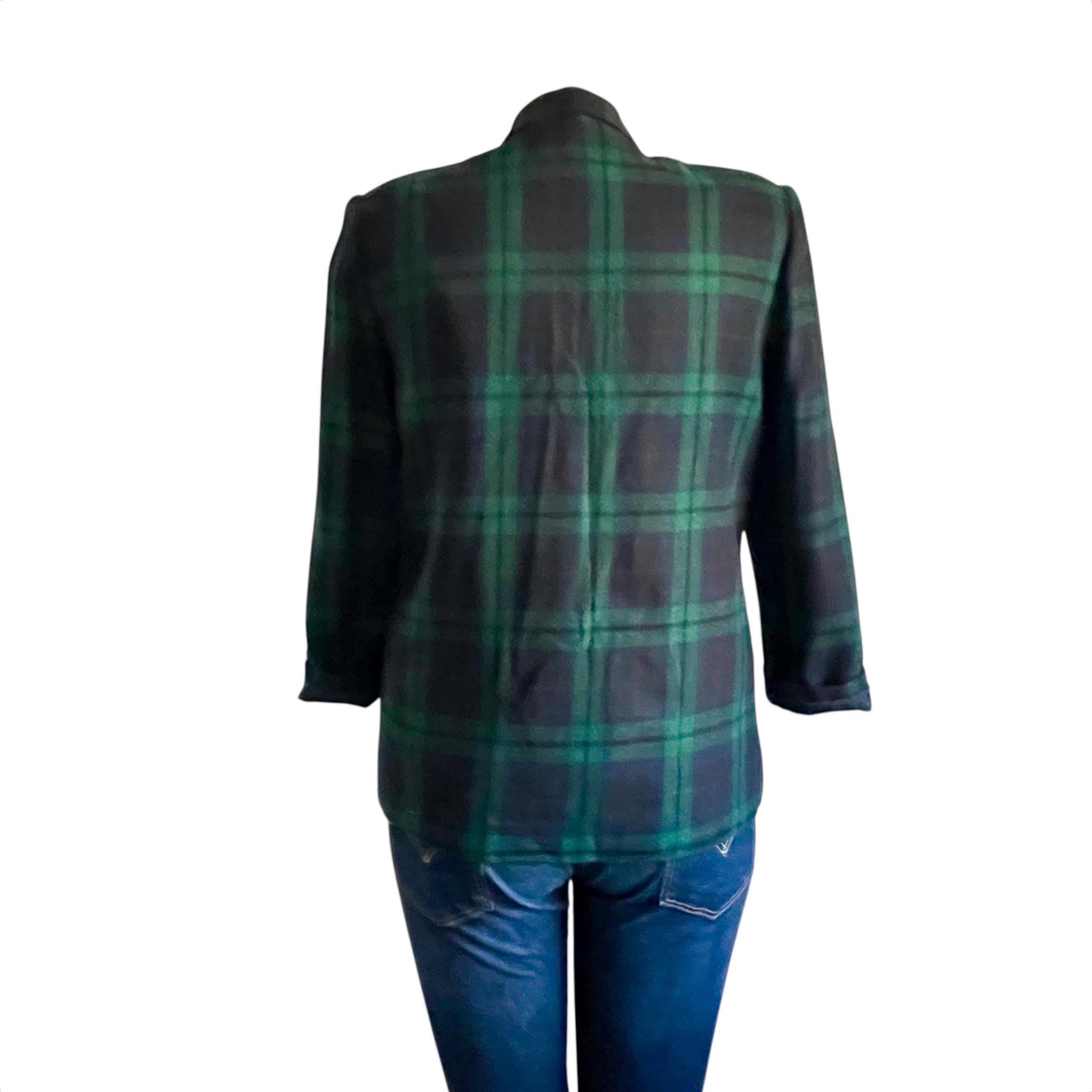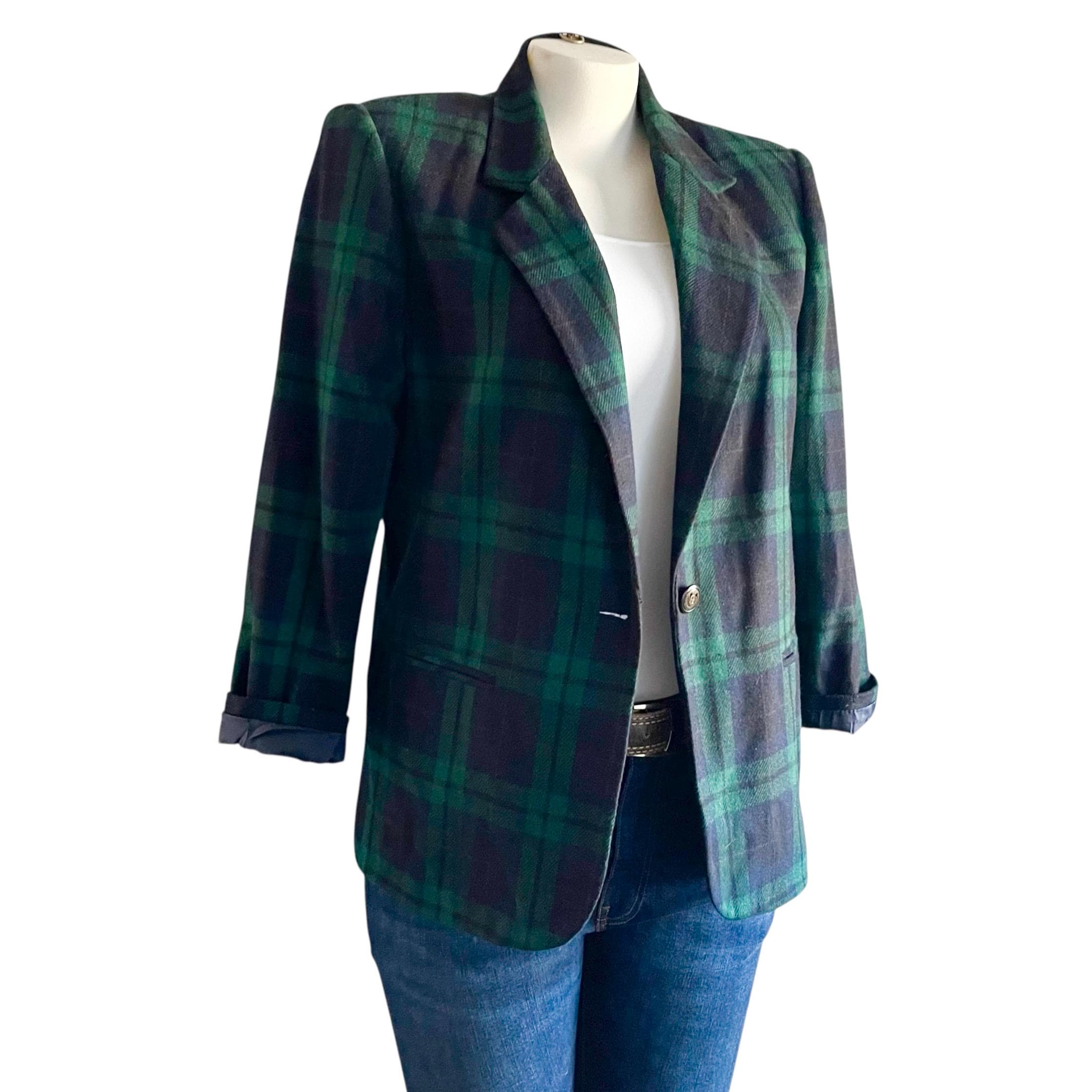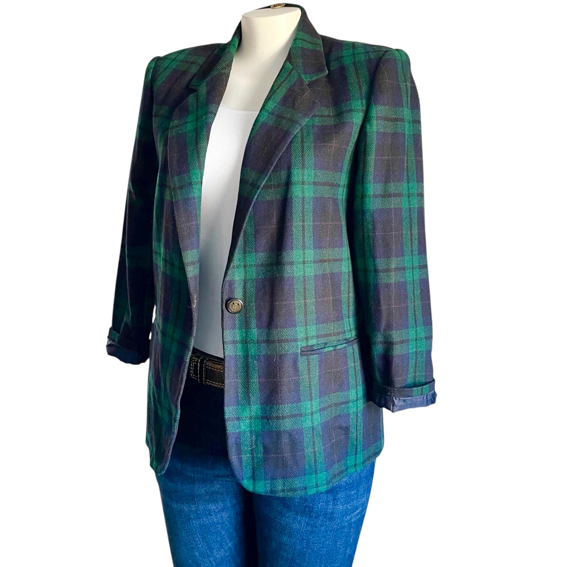 Vintage Prophecy Green Plaid Wool Blazer Jacket: Dark Grunge Blazer, Autumn Blazer, Fall Blazer, One Button, Pockets, Sag Harbor, 90s Y2K