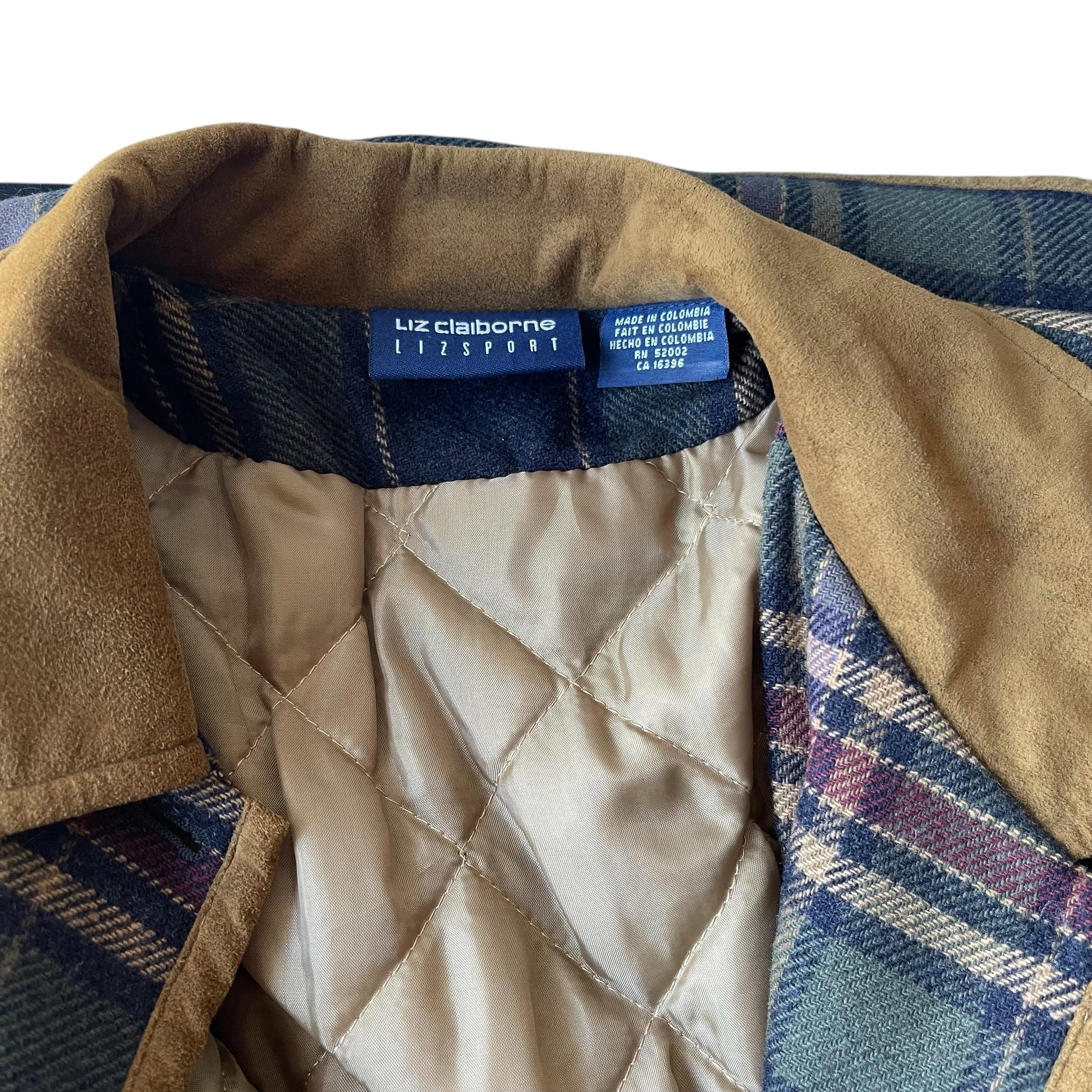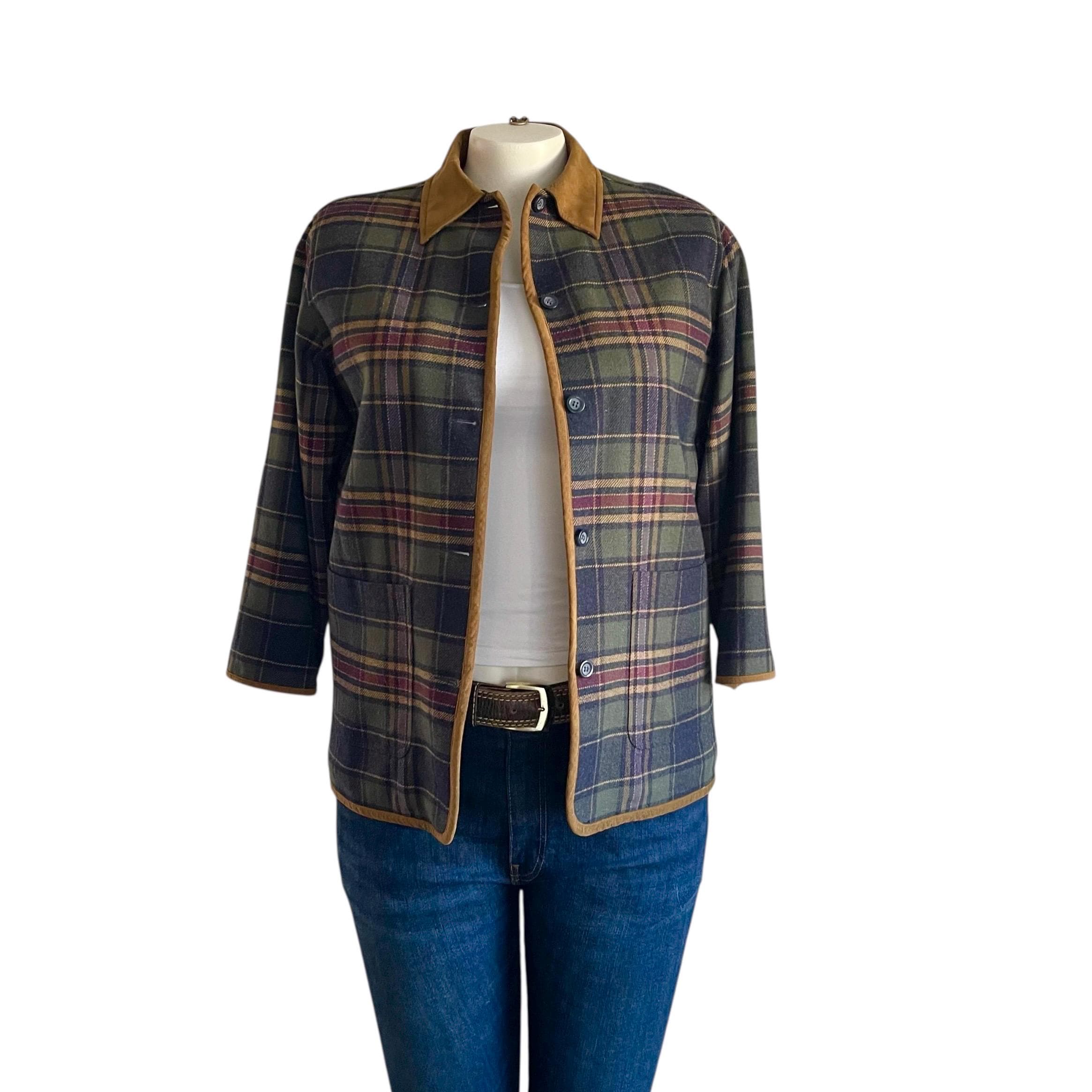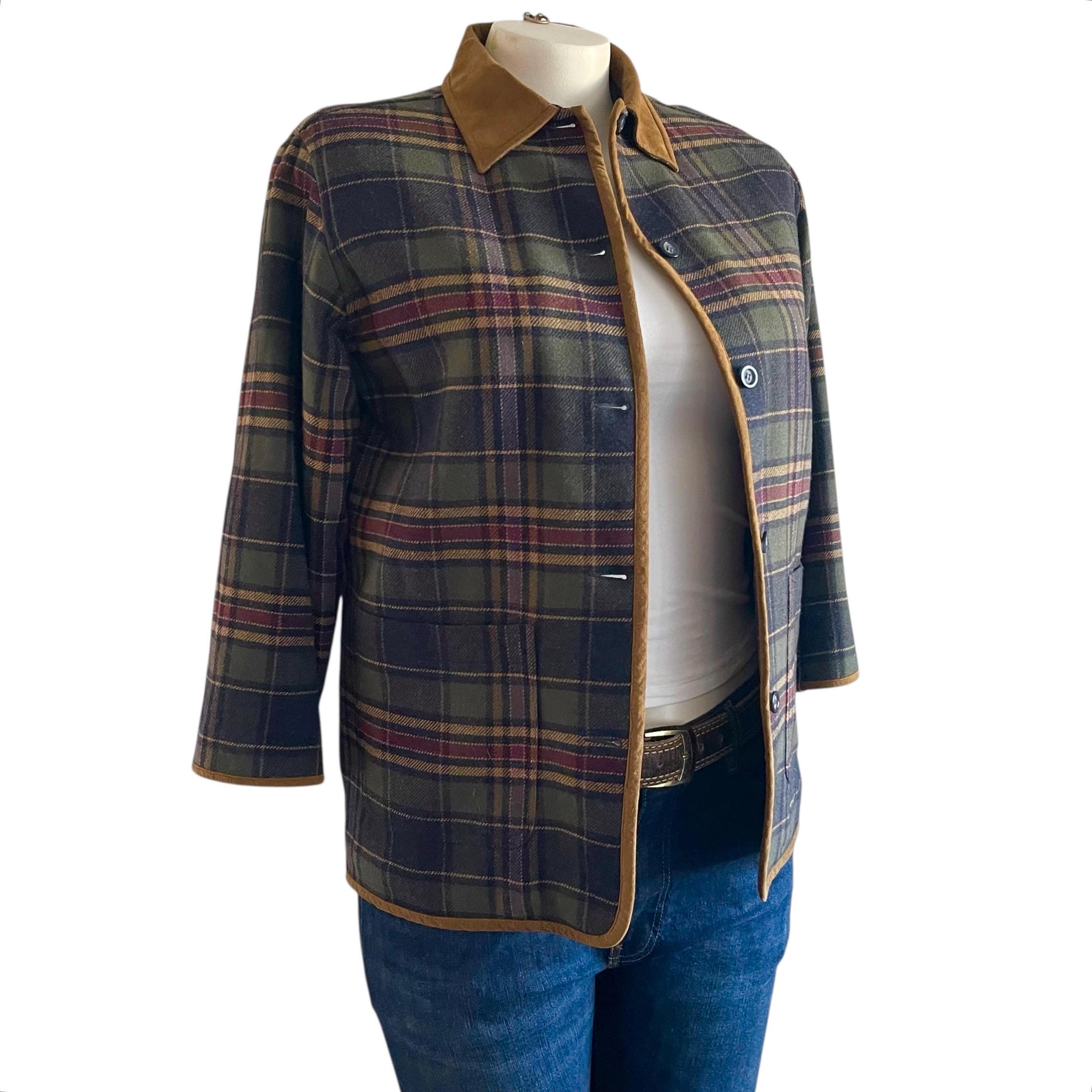 Vintage Liz Claiborne Dark Plaid Wool Lumberjack Jacket: Wool Outdoor Jacket, Farmer Jacket, Non-Wool Collar, Button-Up, Fall, Autumn