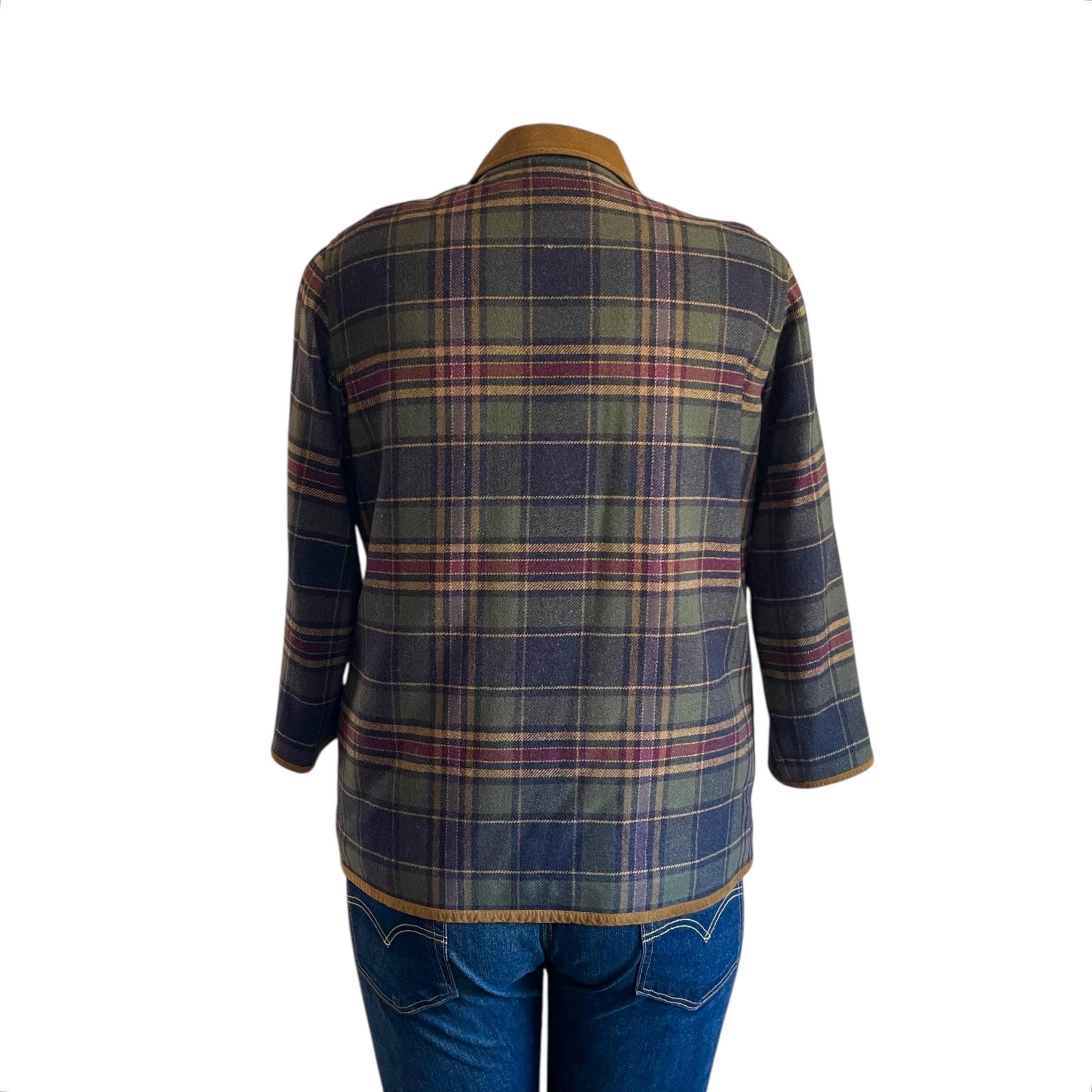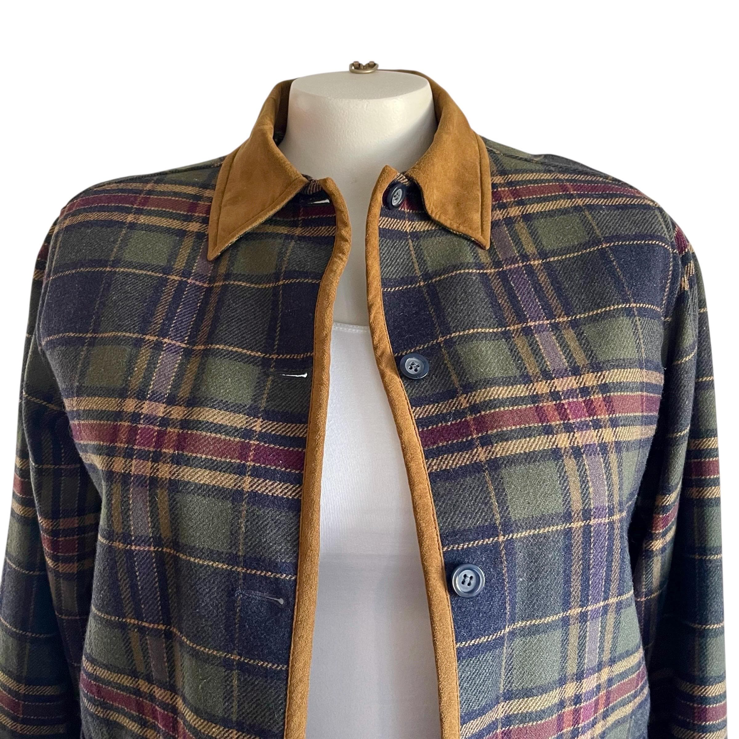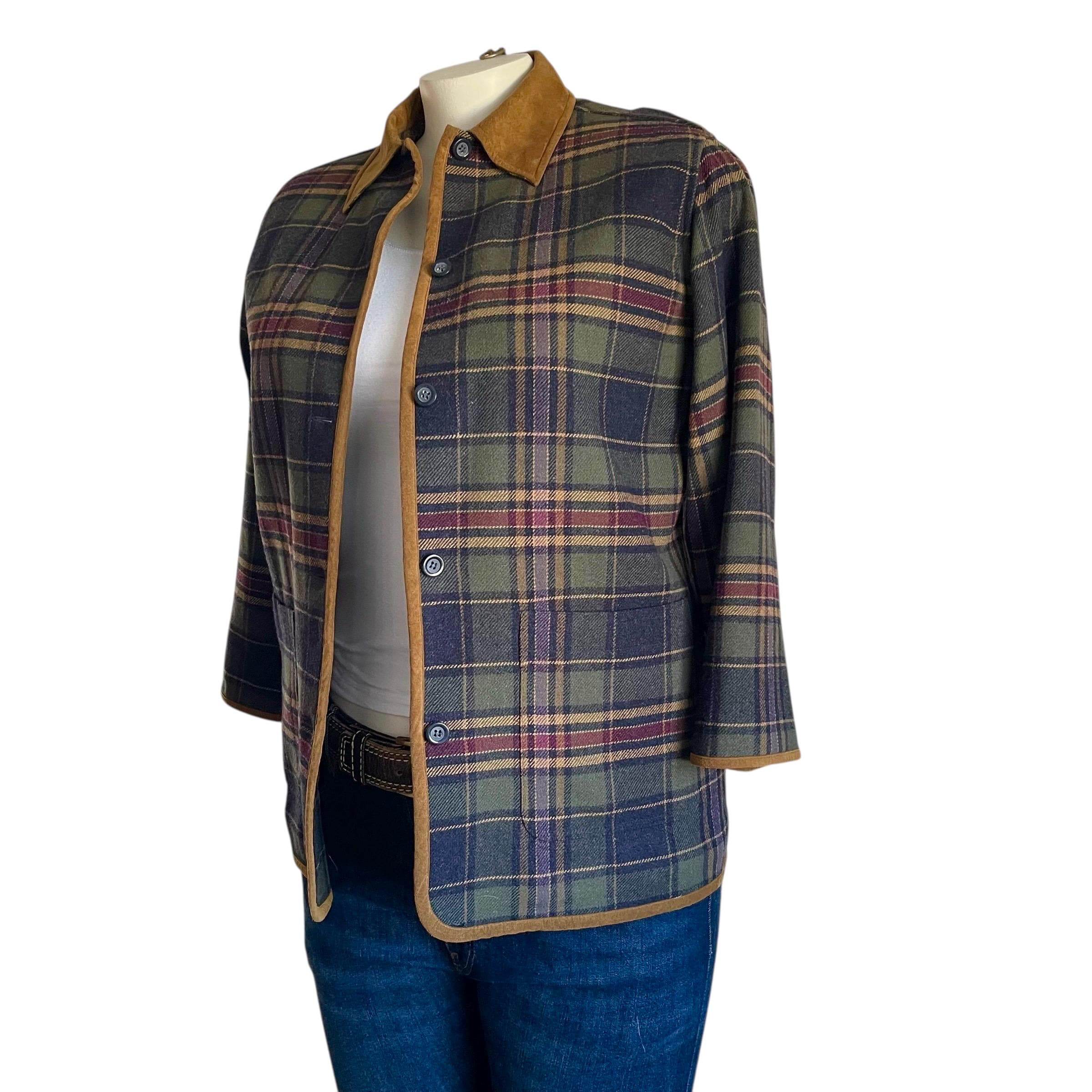 Vintage Liz Claiborne Dark Plaid Wool Lumberjack Jacket: Wool Outdoor Jacket, Farmer Jacket, Non-Wool Collar, Button-Up, Fall, Autumn