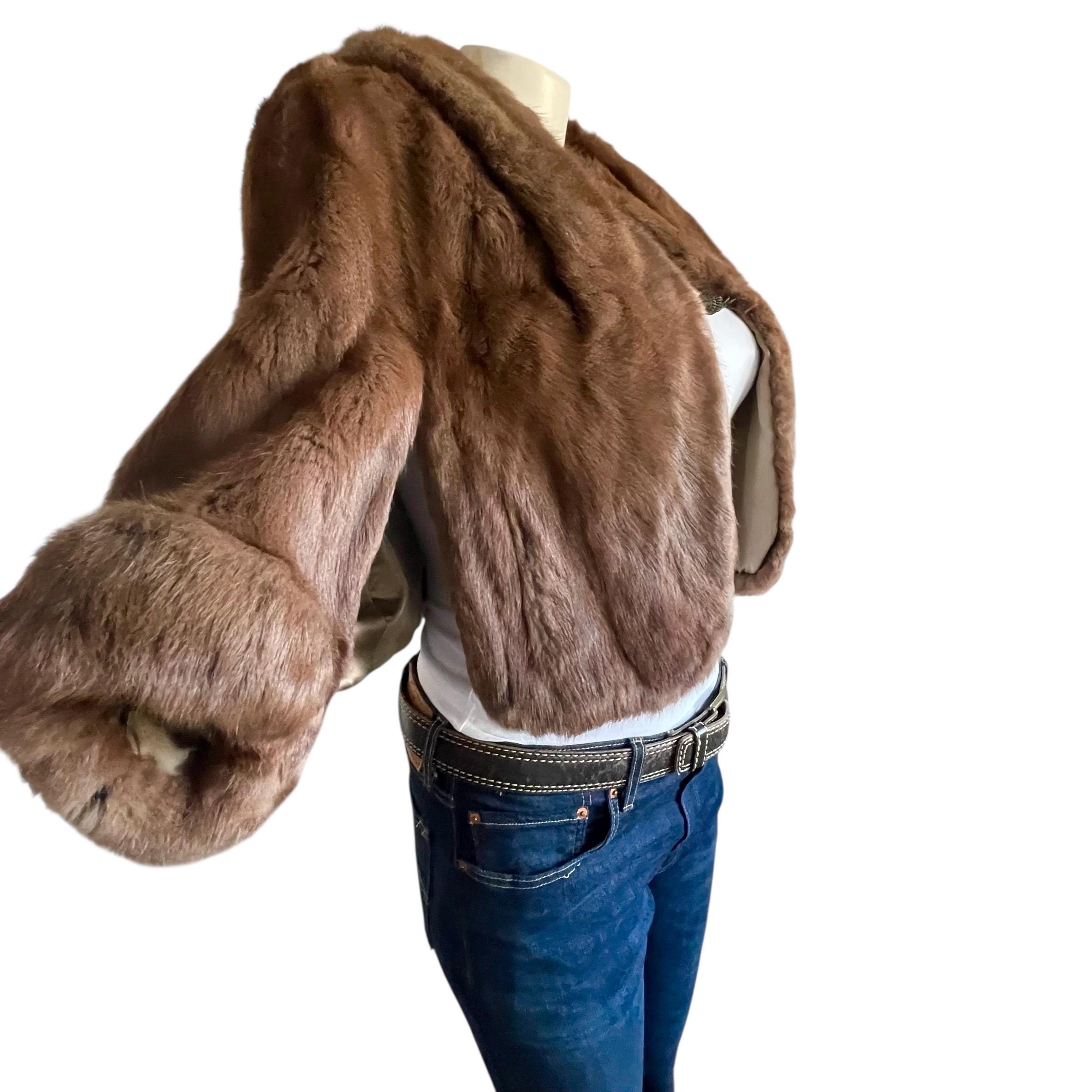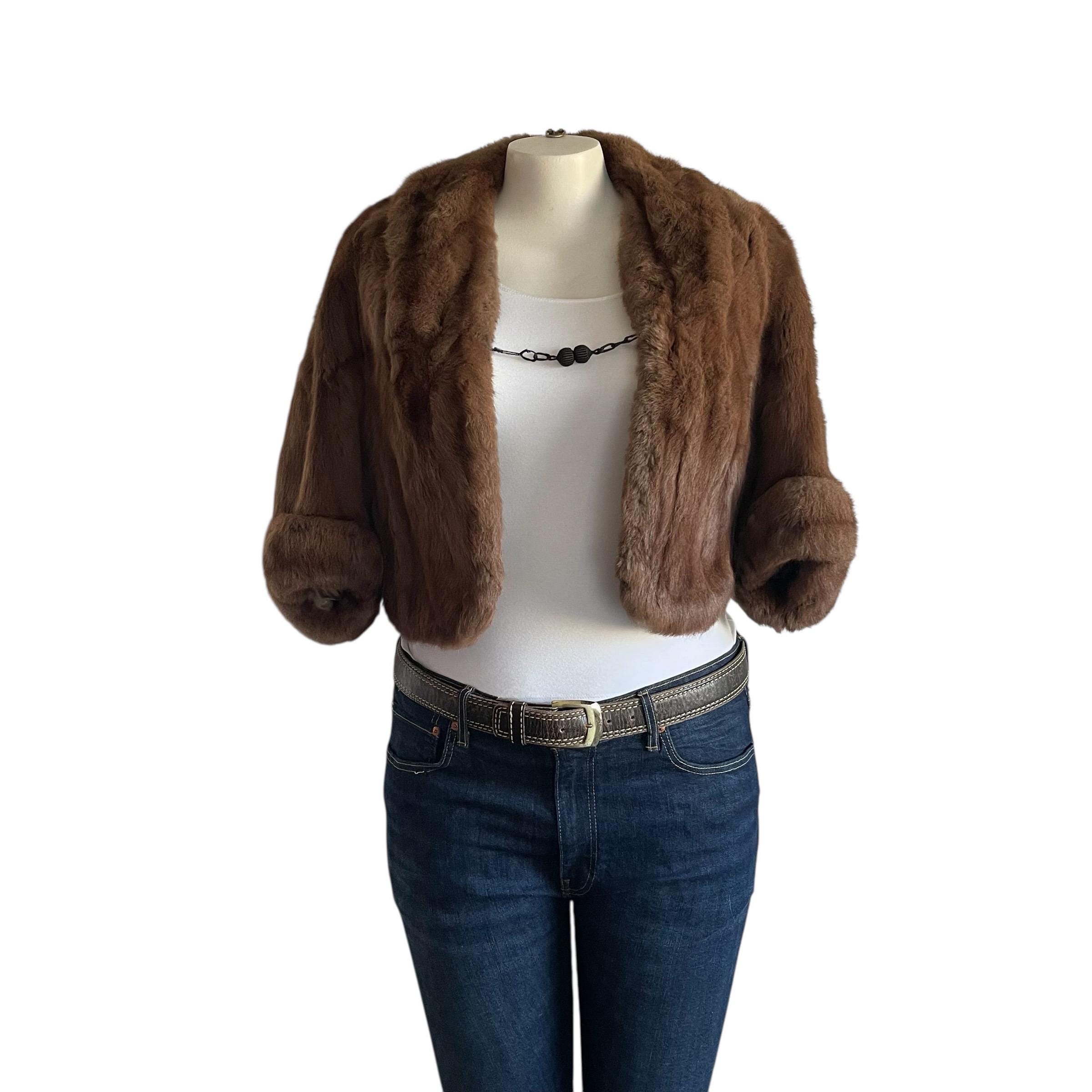 Vintage Annis Furs Dark Brown Fur Jacket: Animal Fur Jacket, Autumn Jacket, Fall Jacket, Split Sleeves, Cropped Fur Jacket, Front Closure