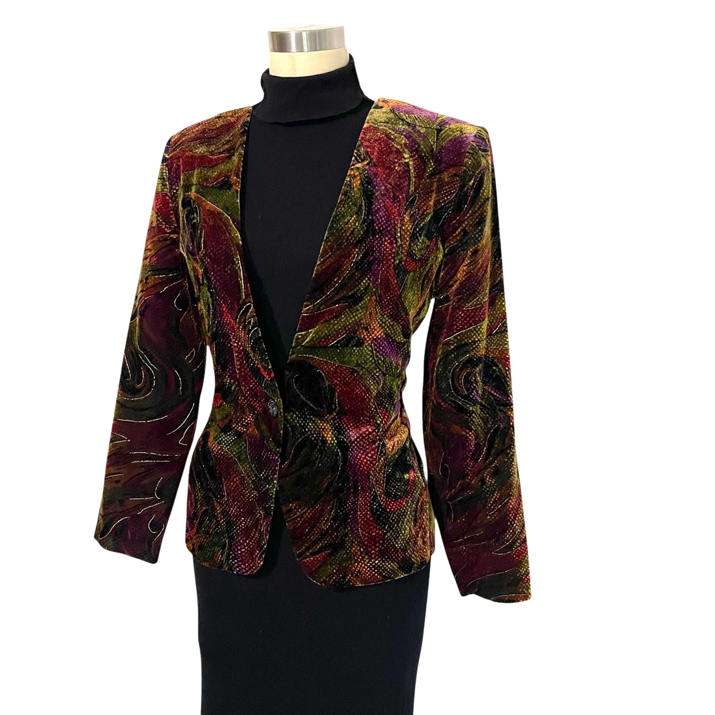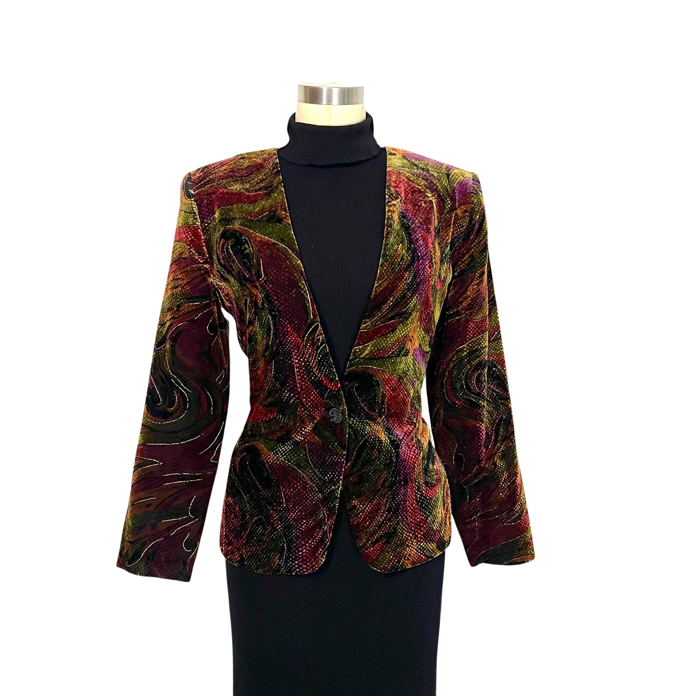 Vintage Norton McNaughton Petite Velvet Boho Blazer: Velvet Shimmer Jacket, 80s 90s Blazer.