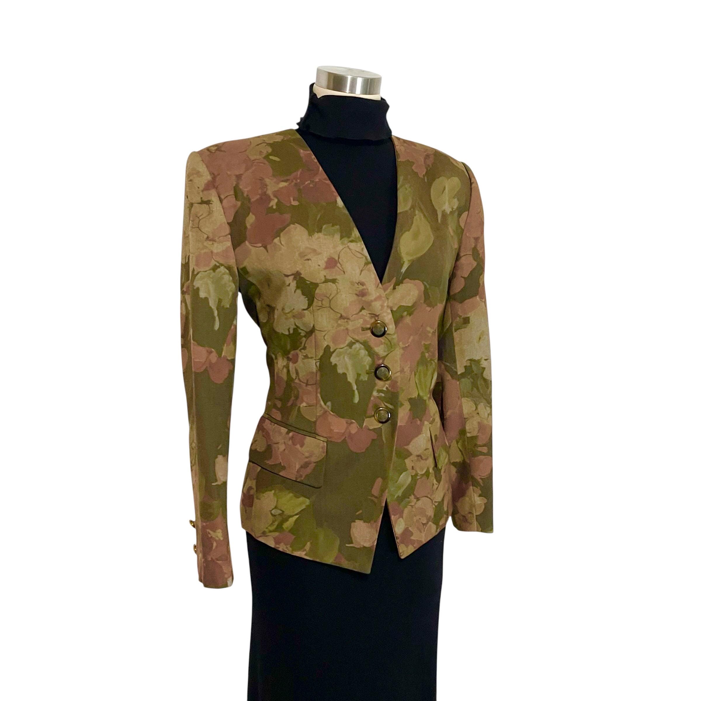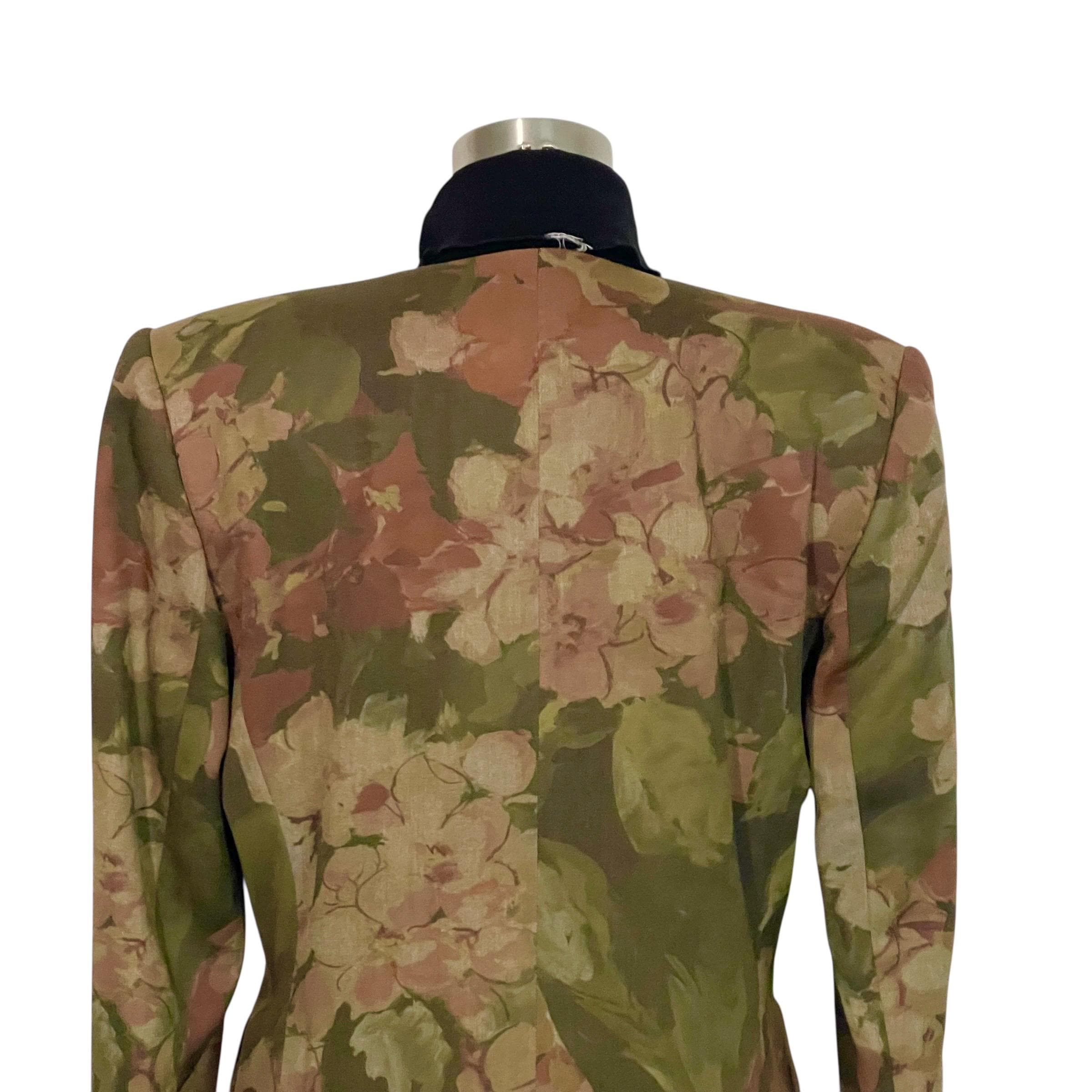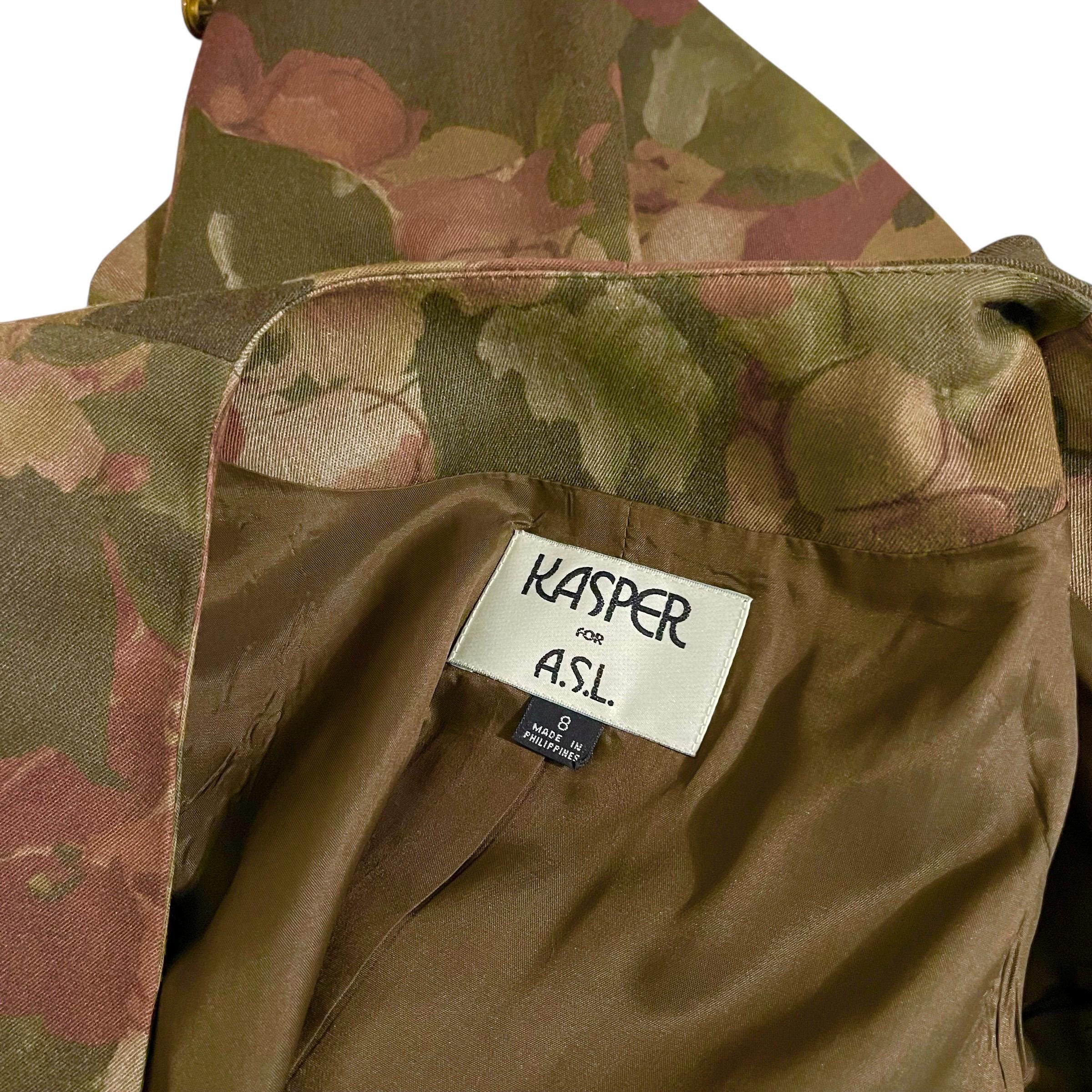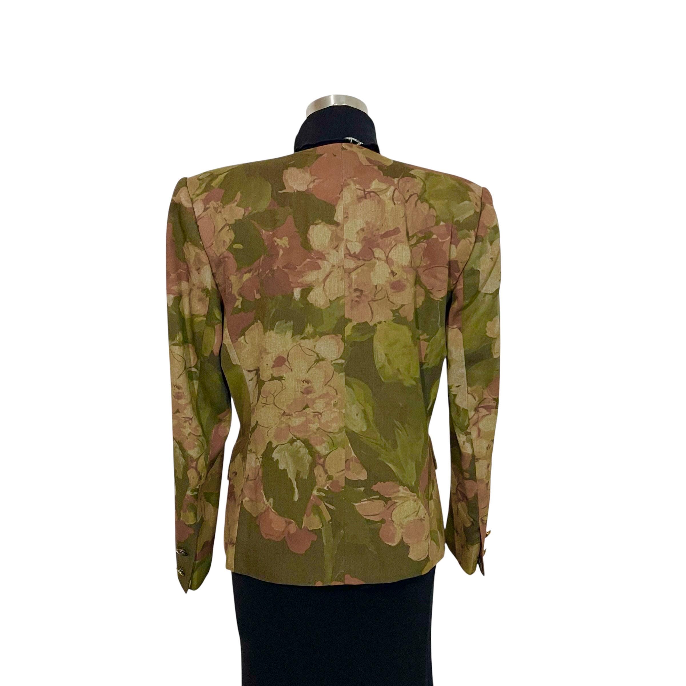 Vintage Kasper Green Floral Whimsy Blazer Jacket: A.S.L. Flower Blazer, Pockets, 3 Buttons, Buttoned Cuffs, Whimsigoth Blazer, 80s 90s Y2K