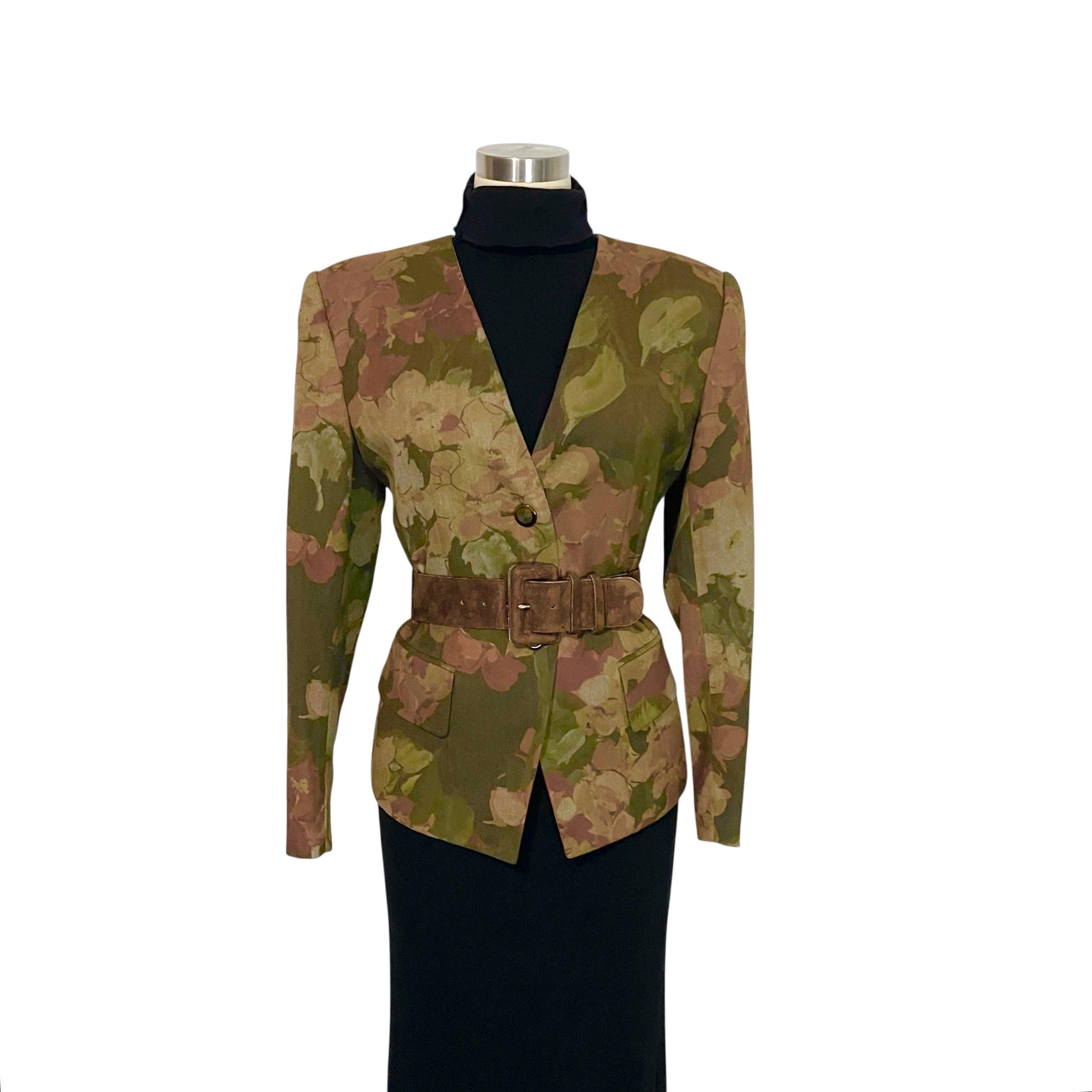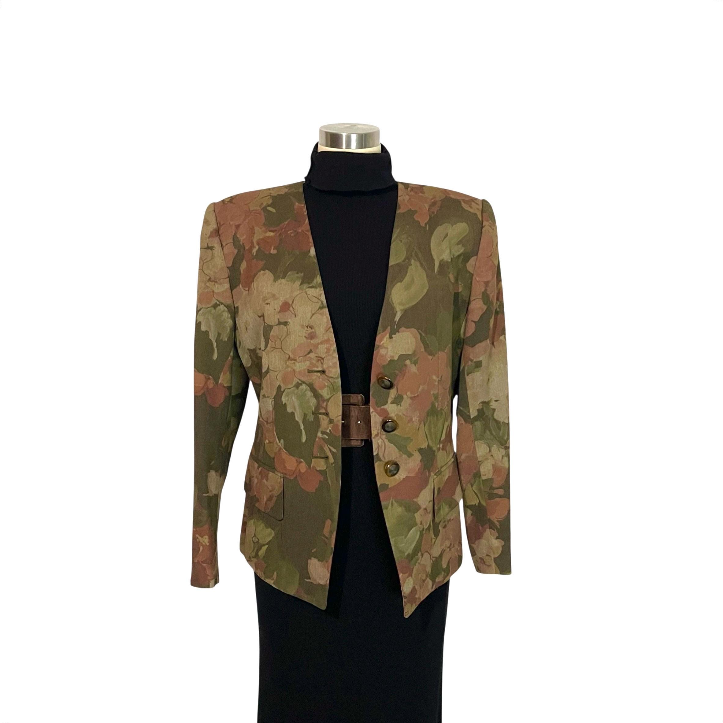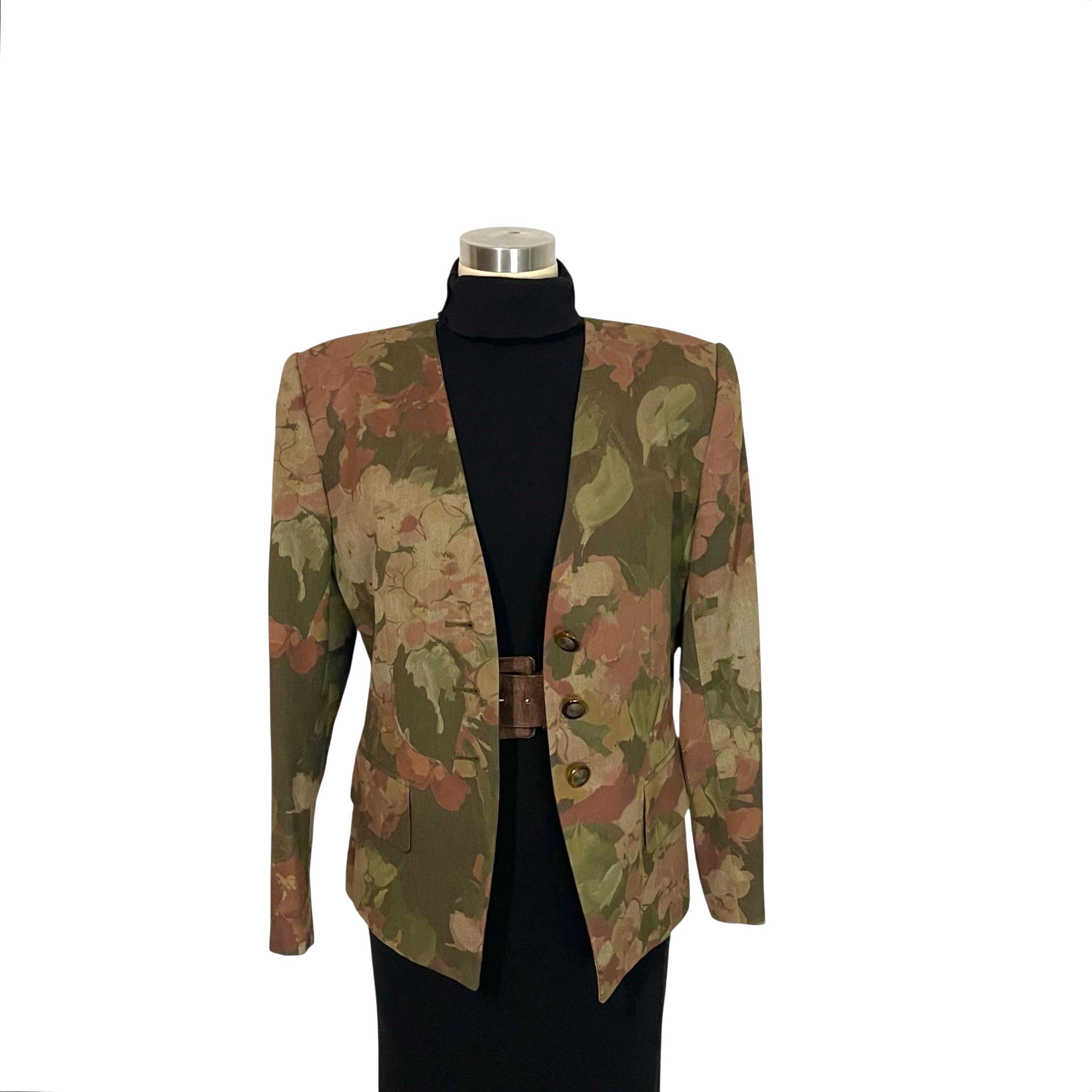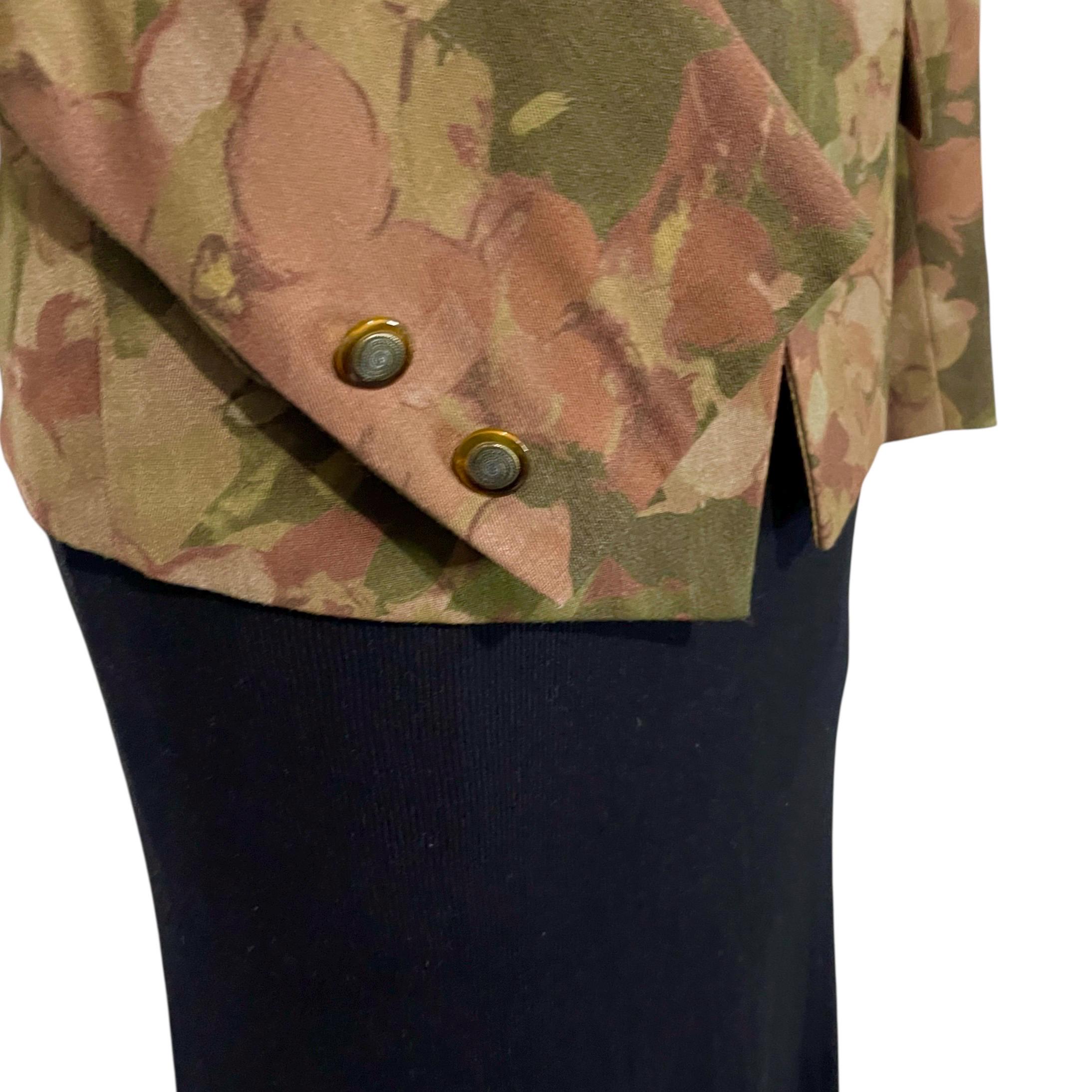 Vintage Kasper Green Floral Whimsy Blazer Jacket: A.S.L. Flower Blazer, Pockets, 3 Buttons, Buttoned Cuffs, Whimsigoth Blazer, 80s 90s Y2K