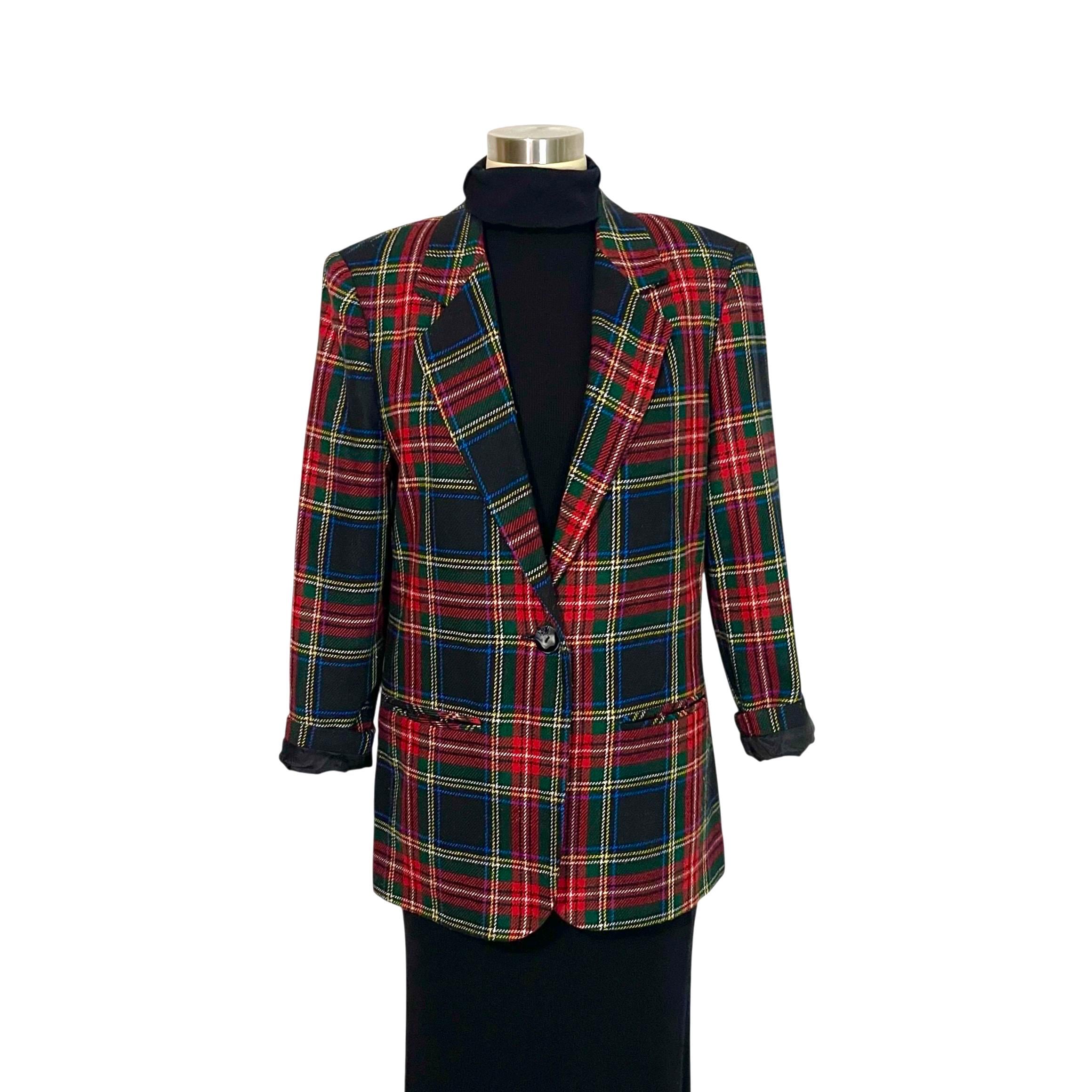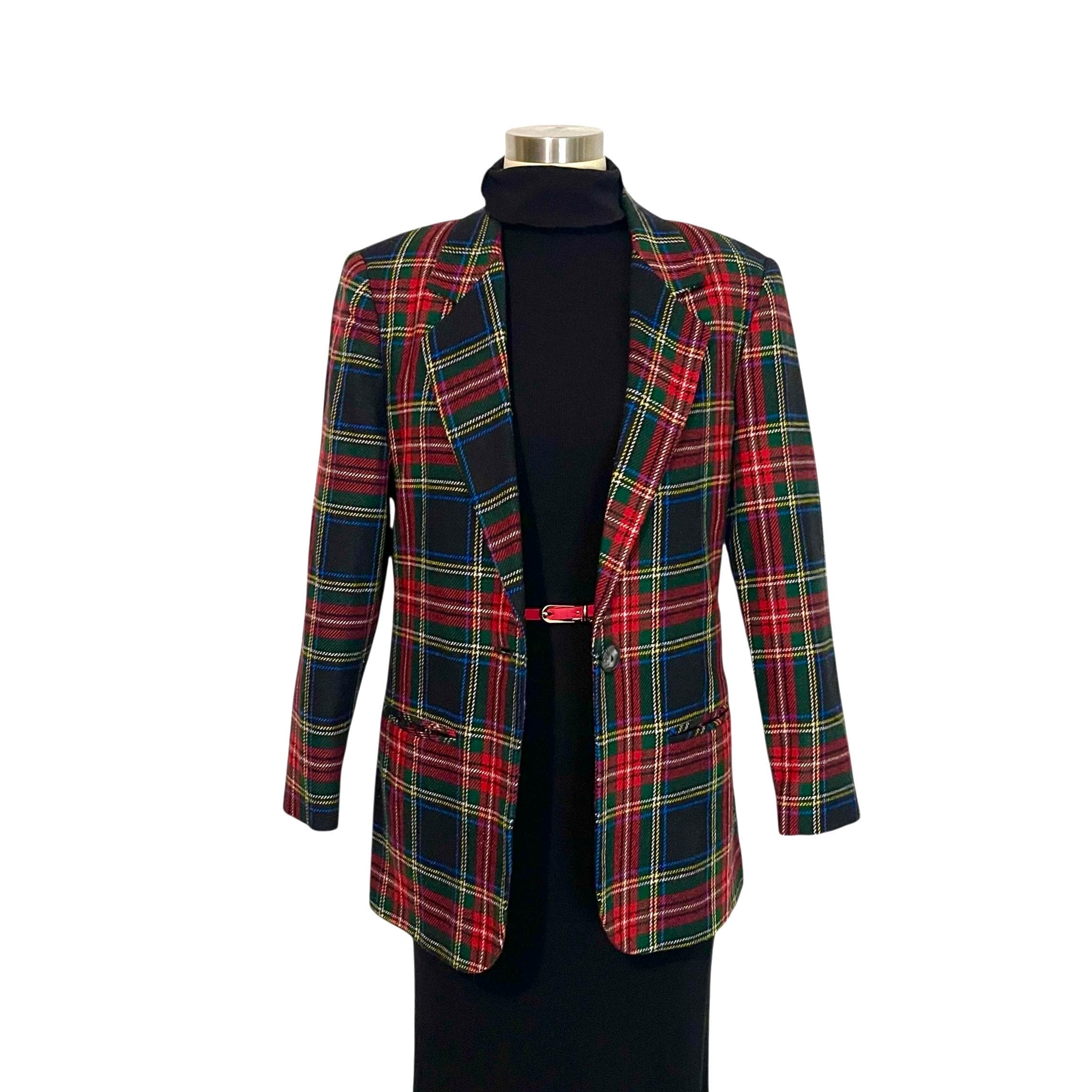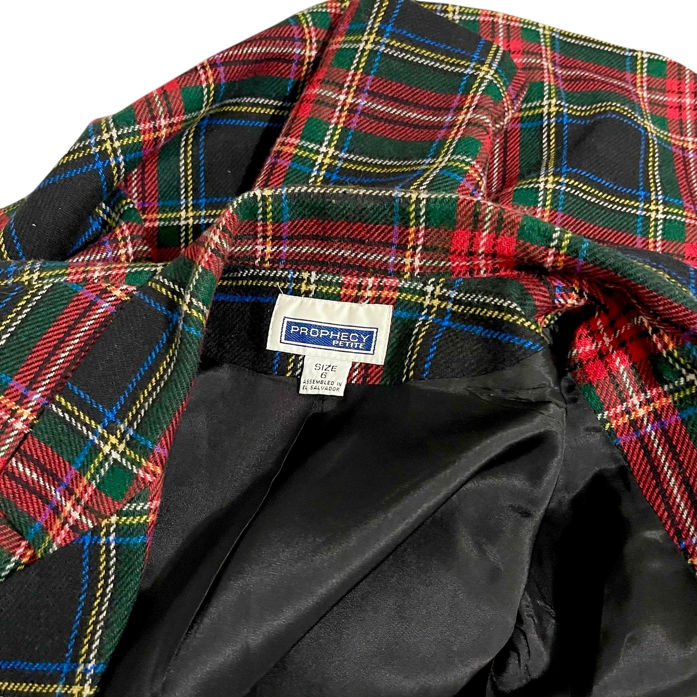 Vintage Prophecy Petite Plaid Tartan Wool Blazer Jacket: Multicolor Wool Teacher Blazer, Academia, Grunge Blazer, One Button, Pockets