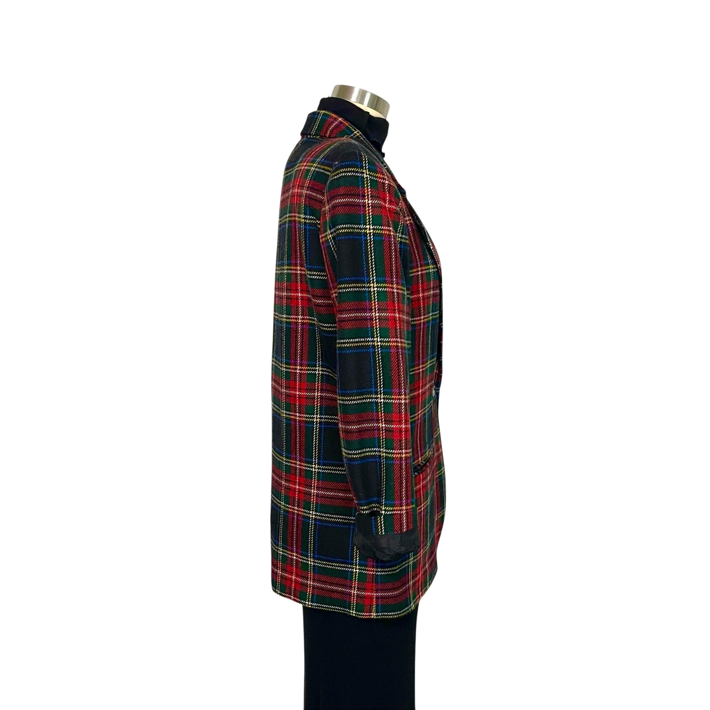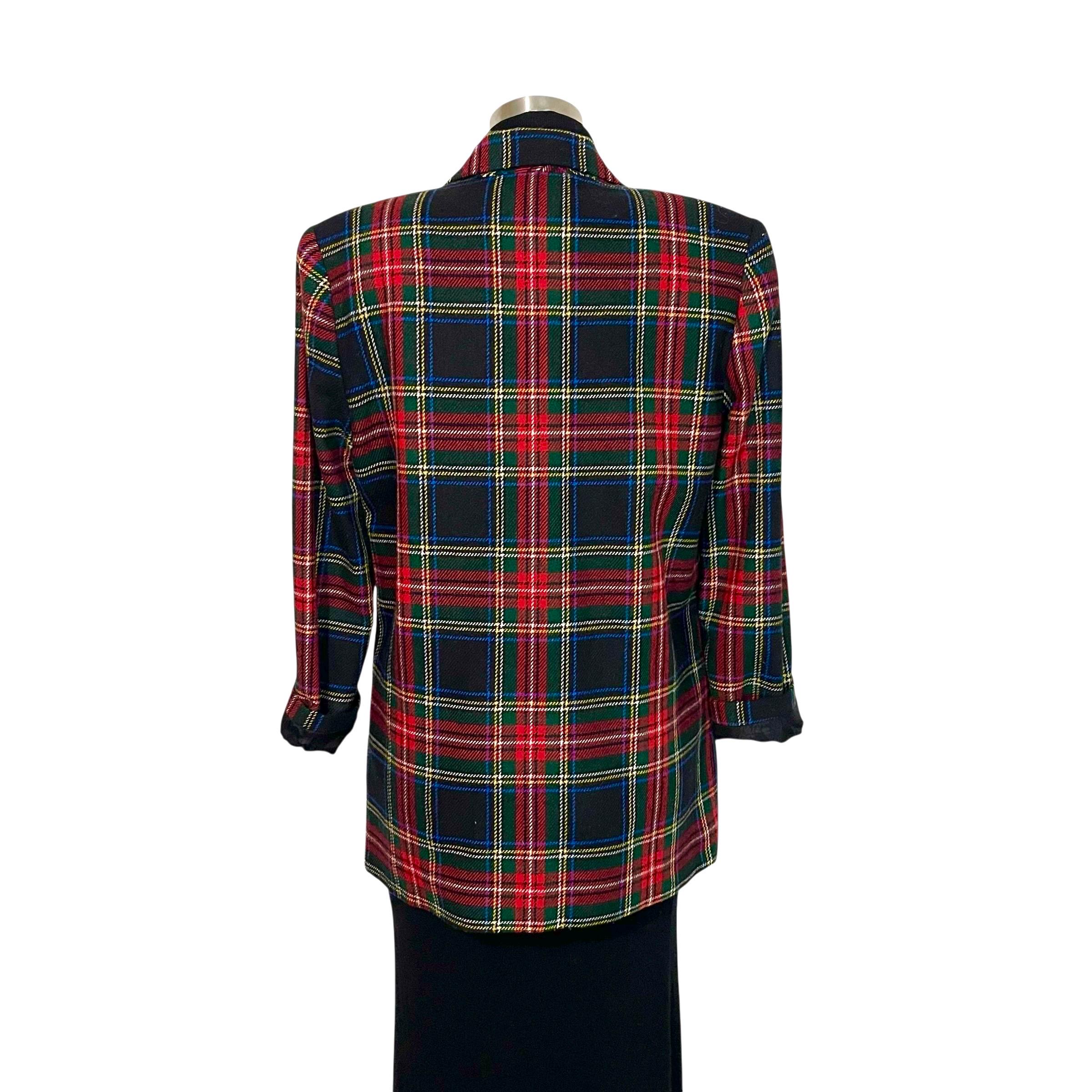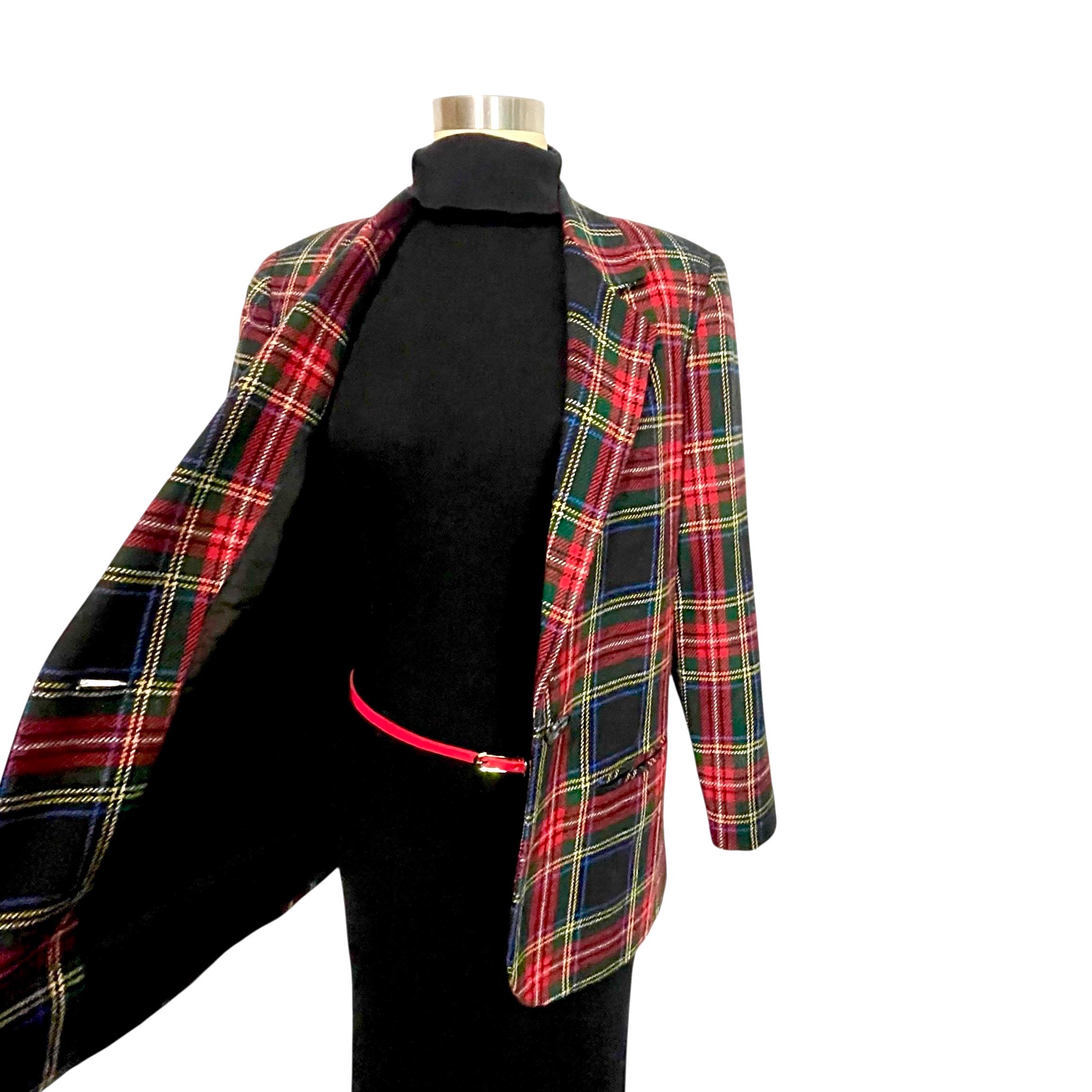Vintage Prophecy Petite Plaid Tartan Wool Blazer Jacket: Multicolor Wool Teacher Blazer, Academia, Grunge Blazer, One Button, Pockets