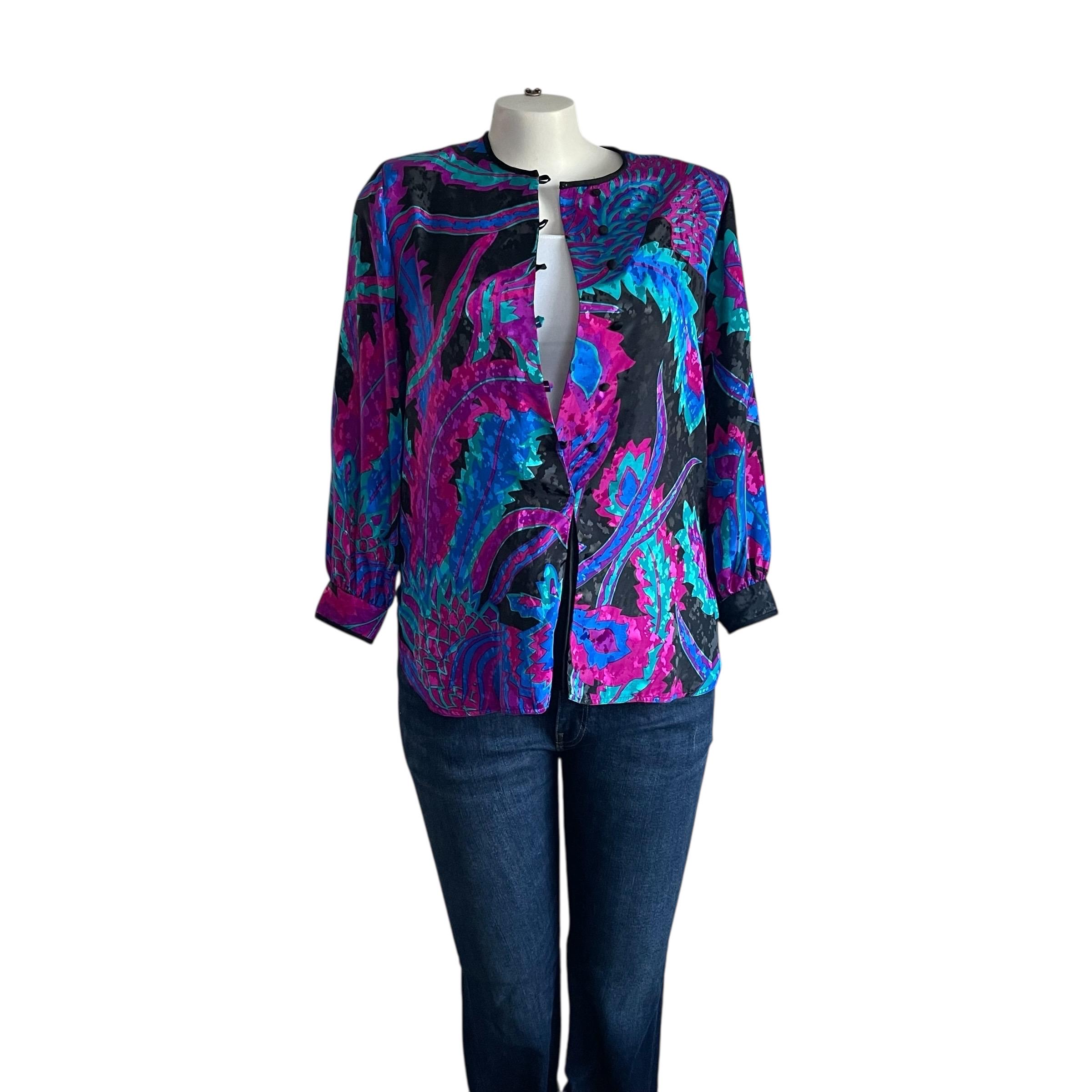 Vintage Brownstone Studio Multicolor Boho Floral Jacket: Funky Floral Button-Up Jacket, Hippie, Night Out Jacket, Plus Size, 80s 90s