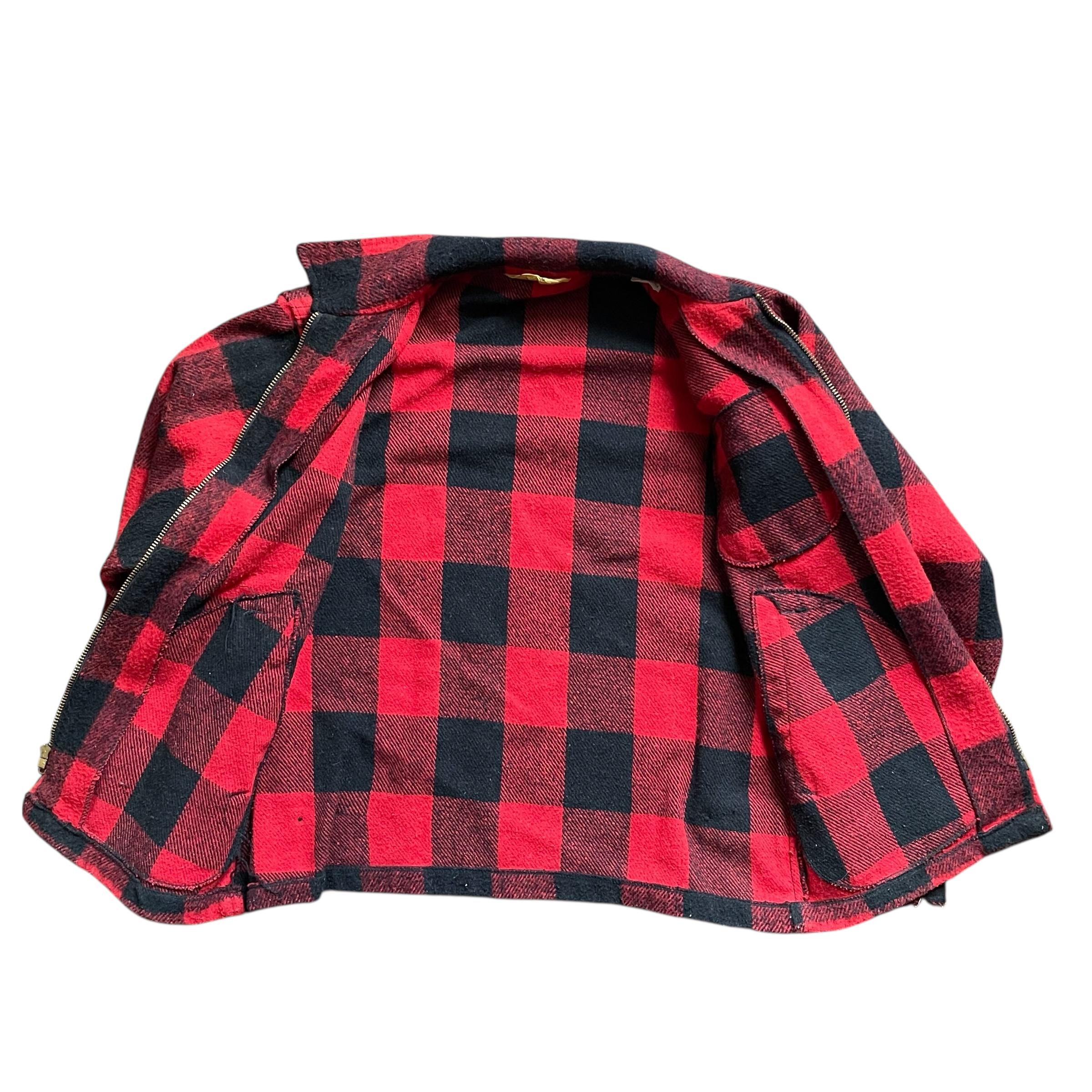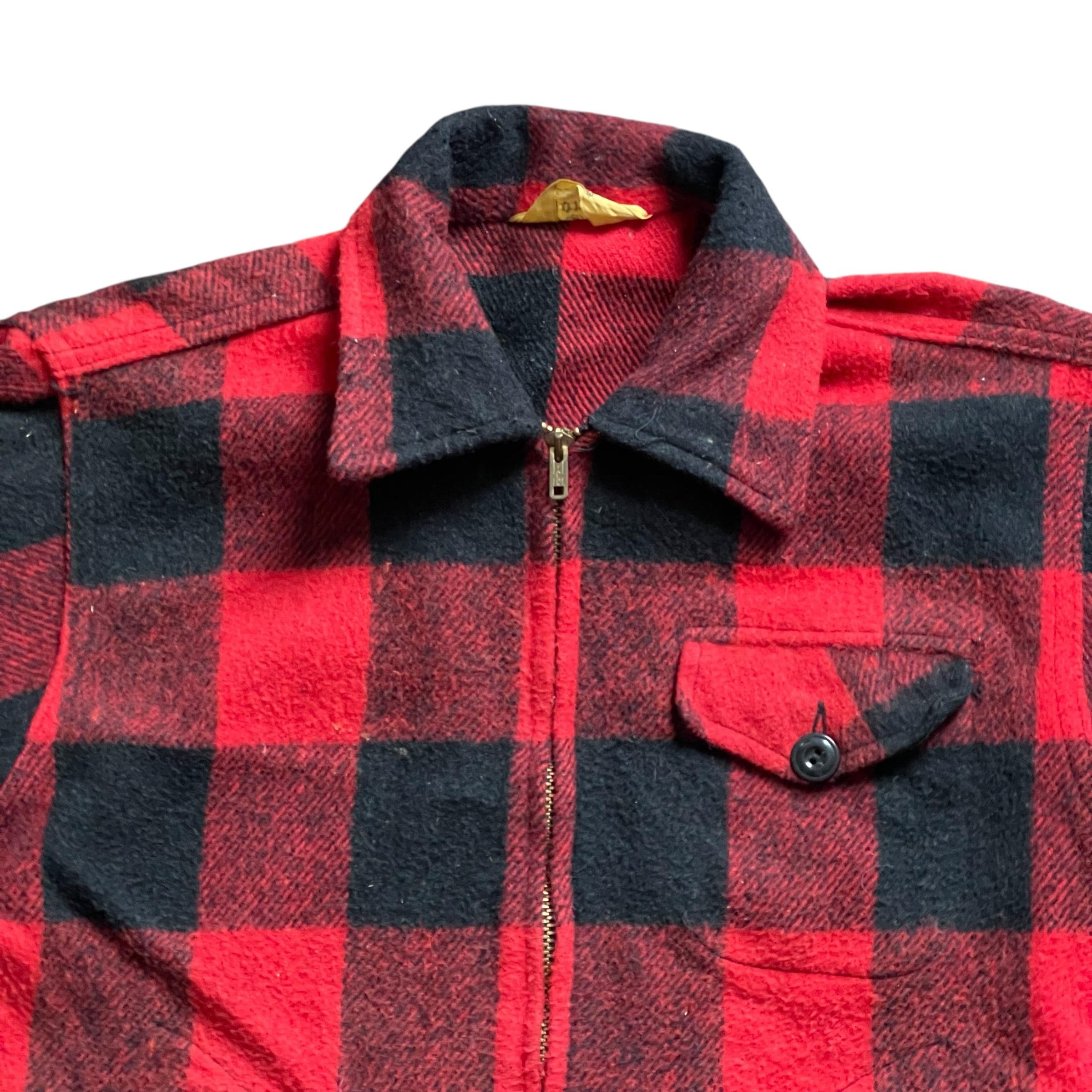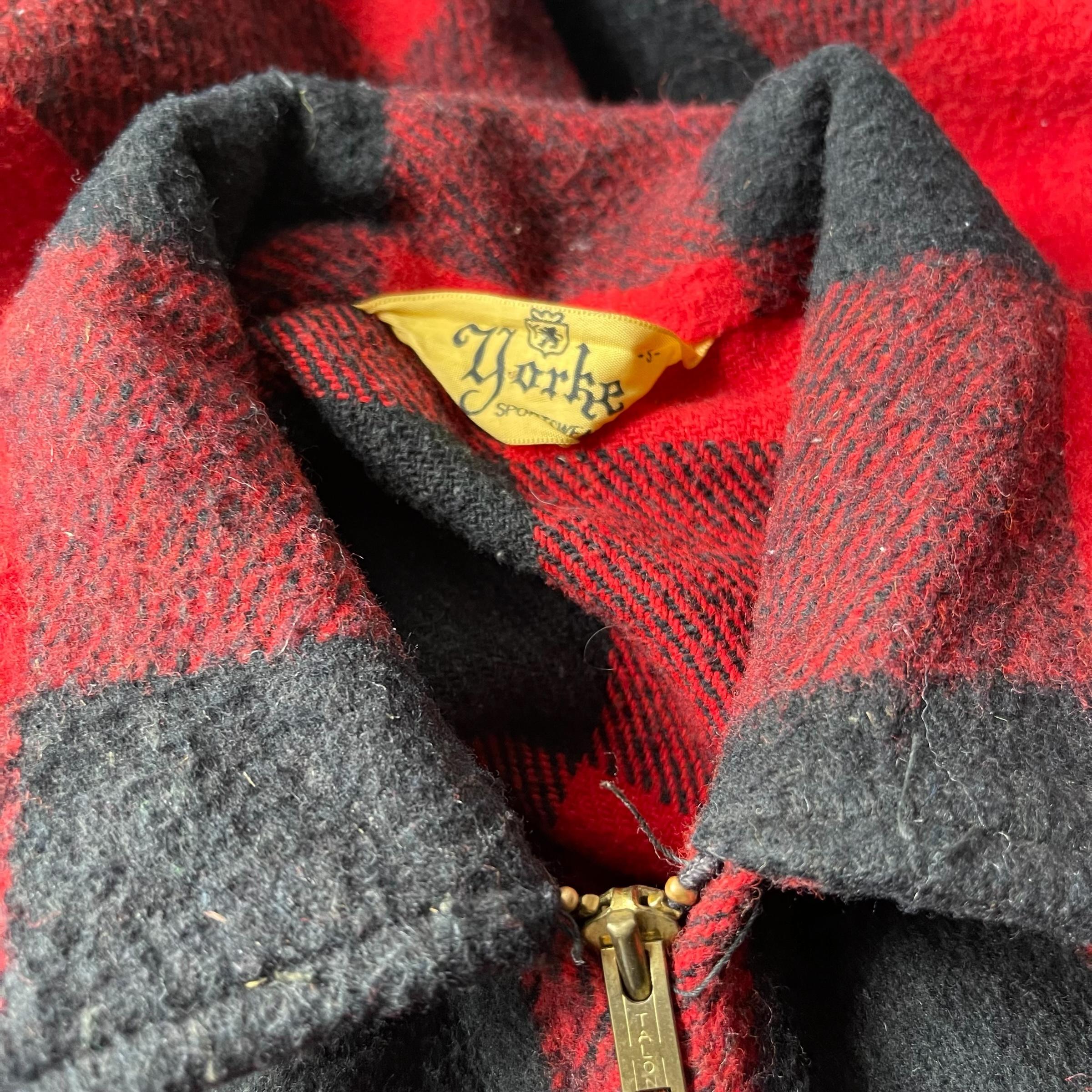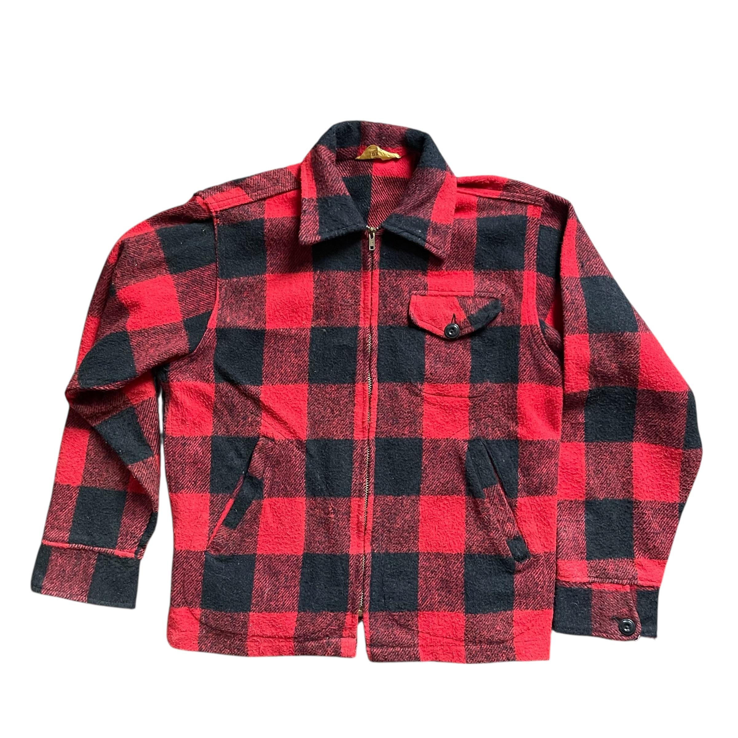 Vintage Yorke Red Plaid Men's Jacket: Wool Plaid Farmer Jacket, Zipper Jacket, Pockets, Buttoned Cuffs, Hunter Jacket, Autumn/Fall Jacket
