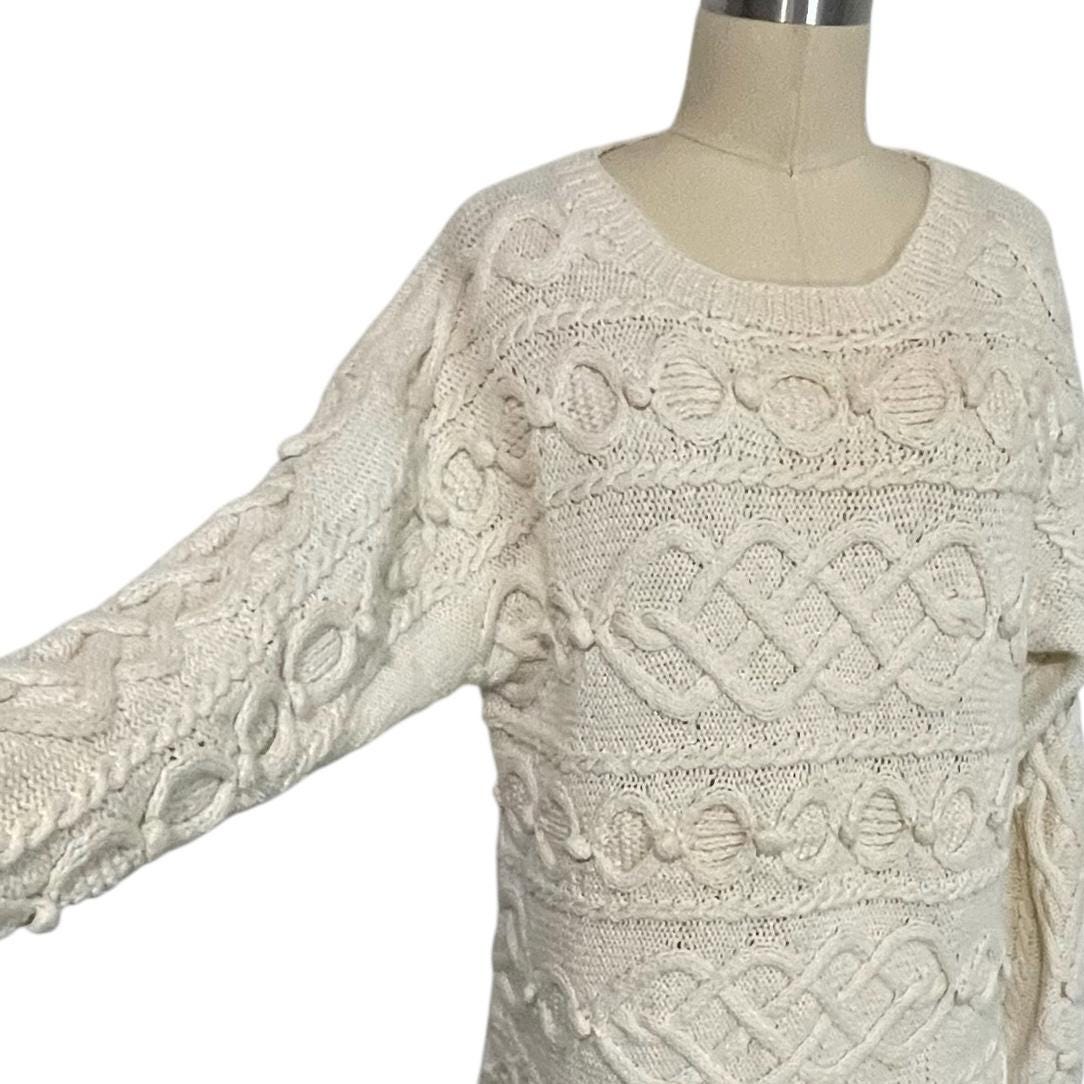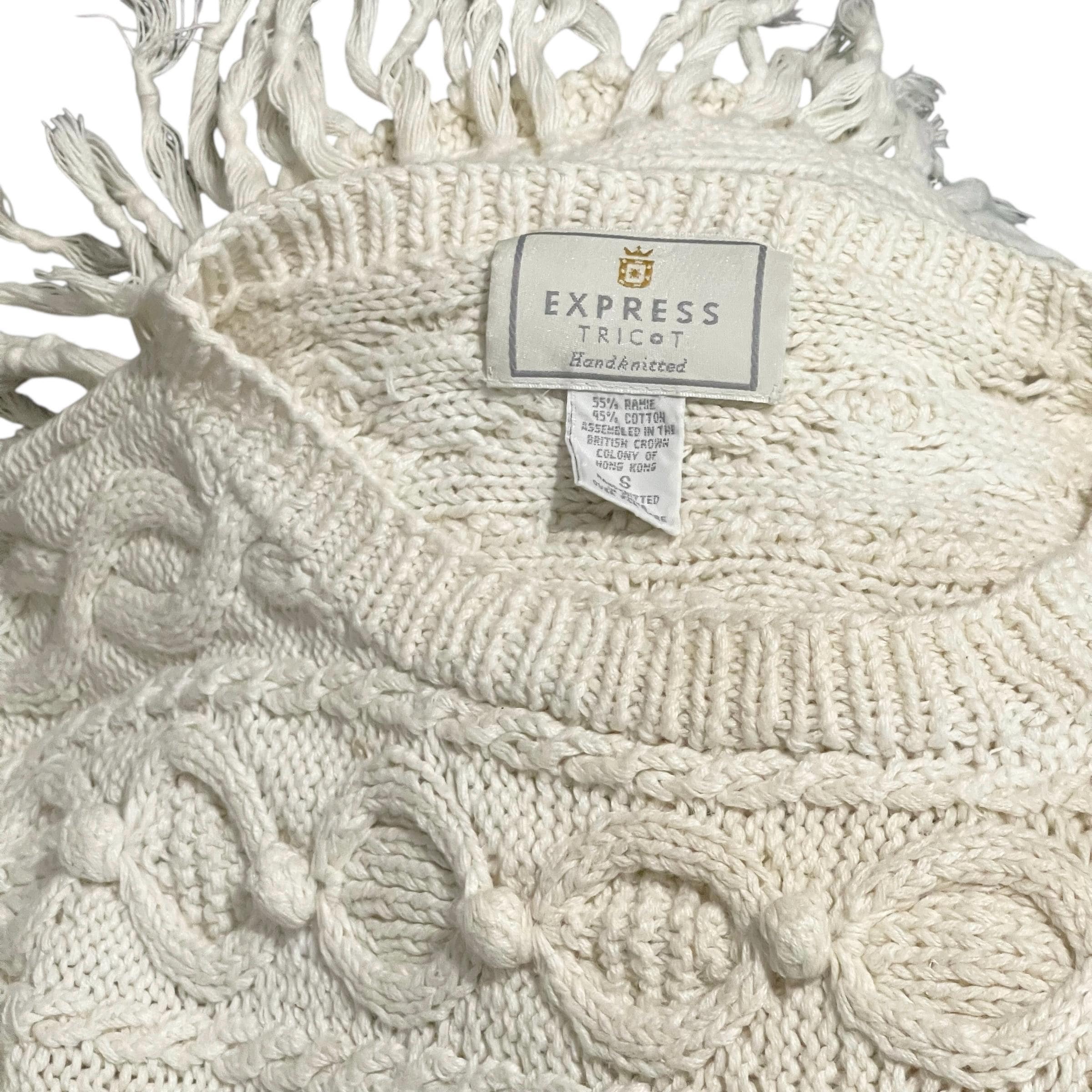 Vintage Express Tricot Ivory White Hand-knitted Pullover Sweater.