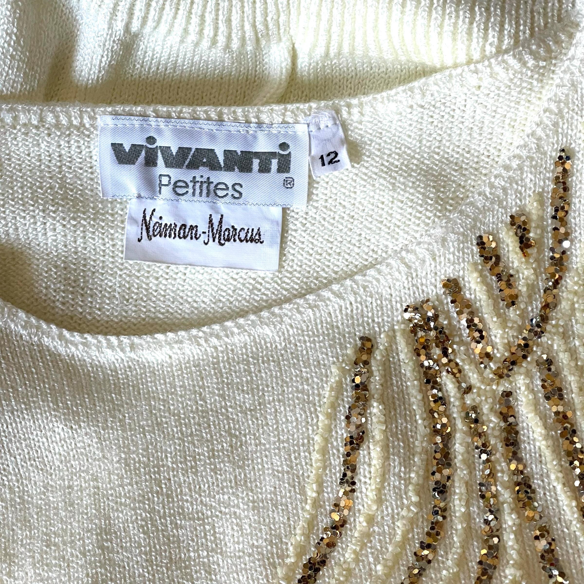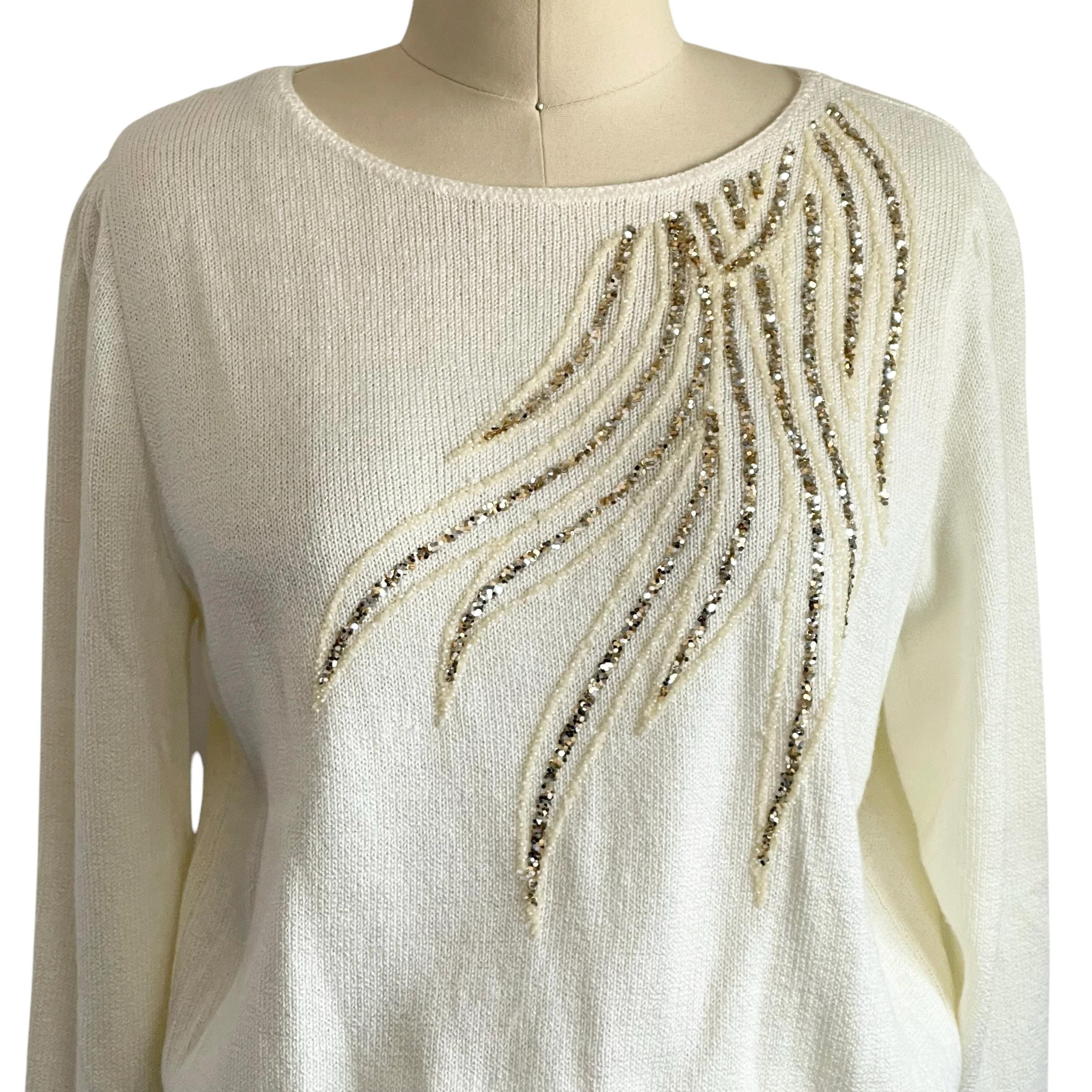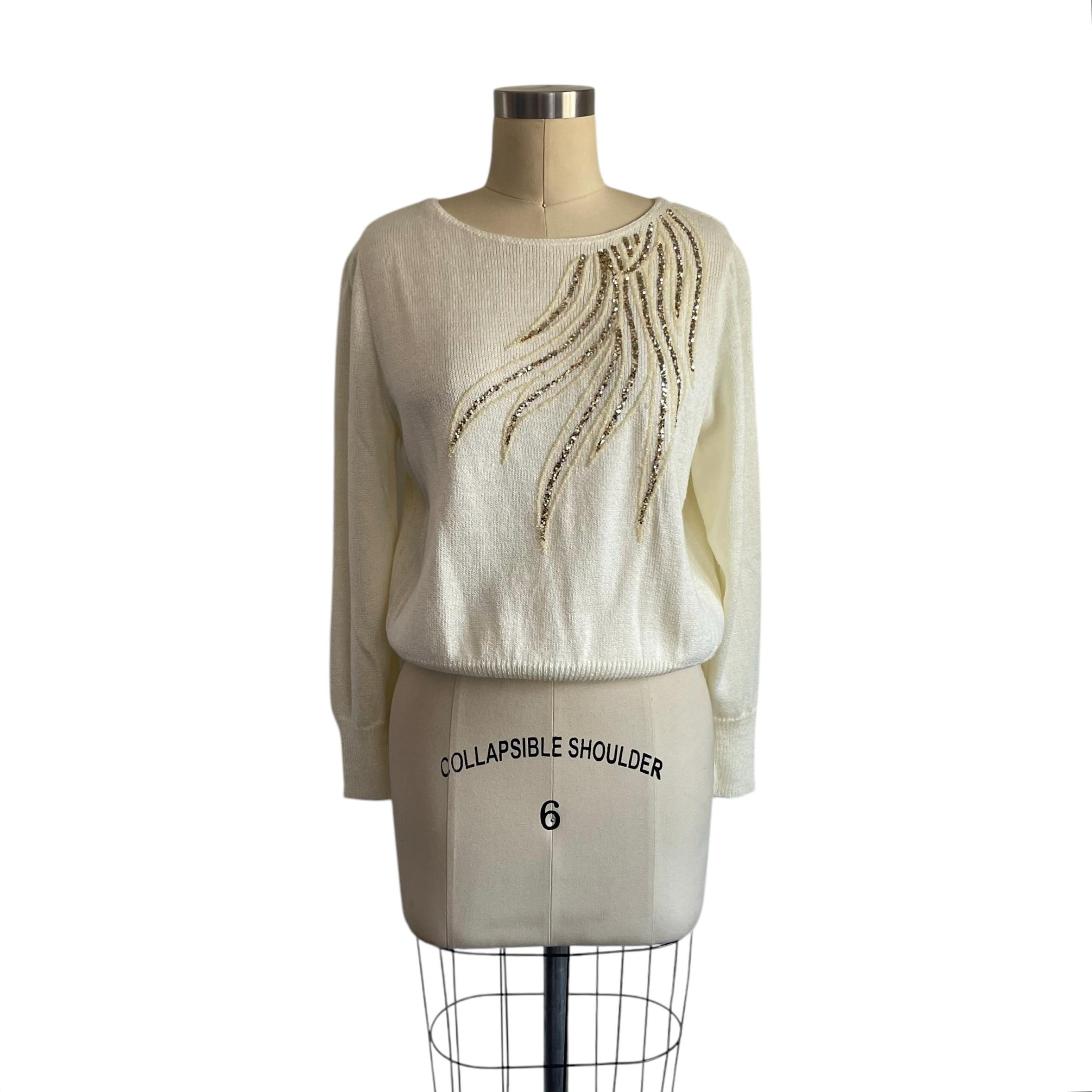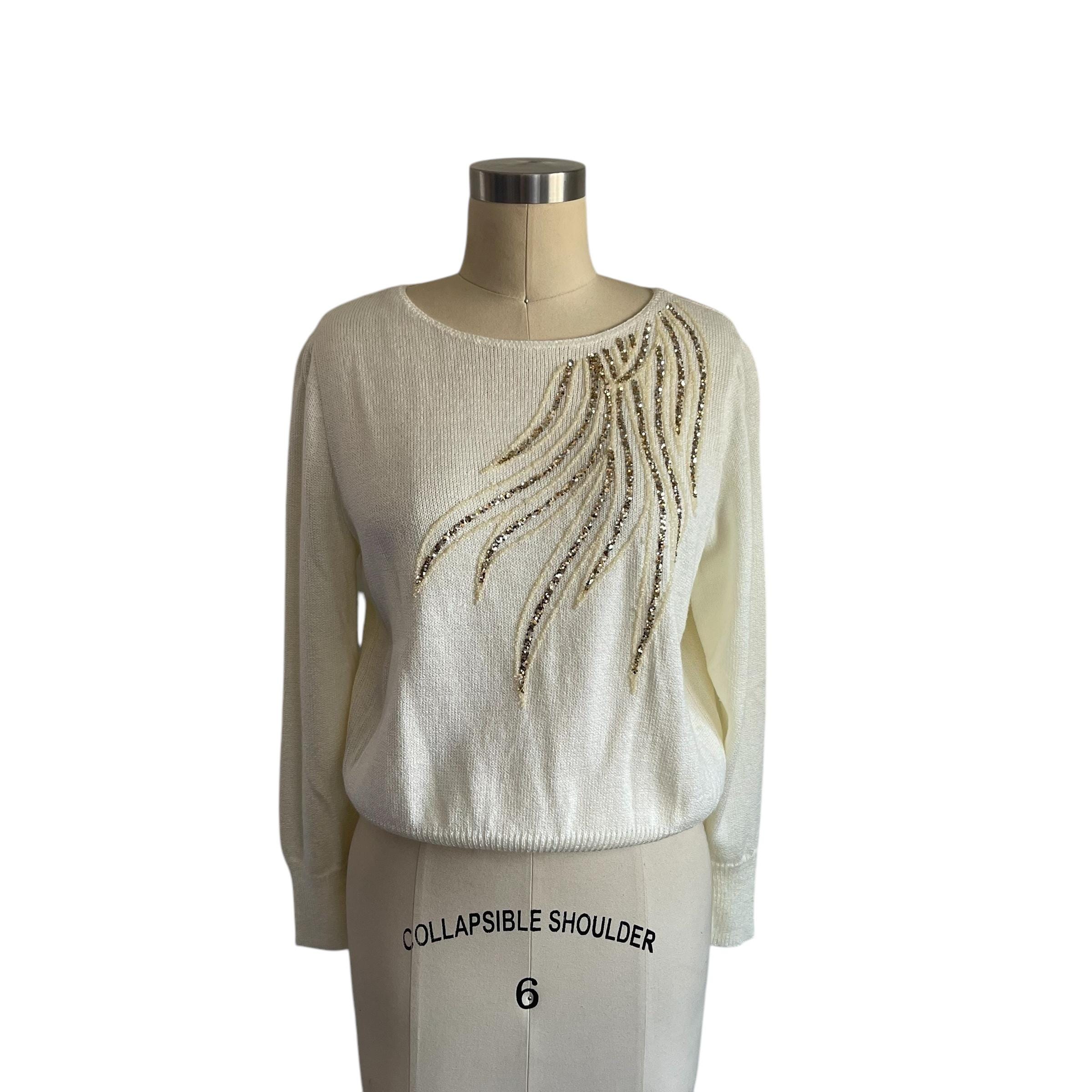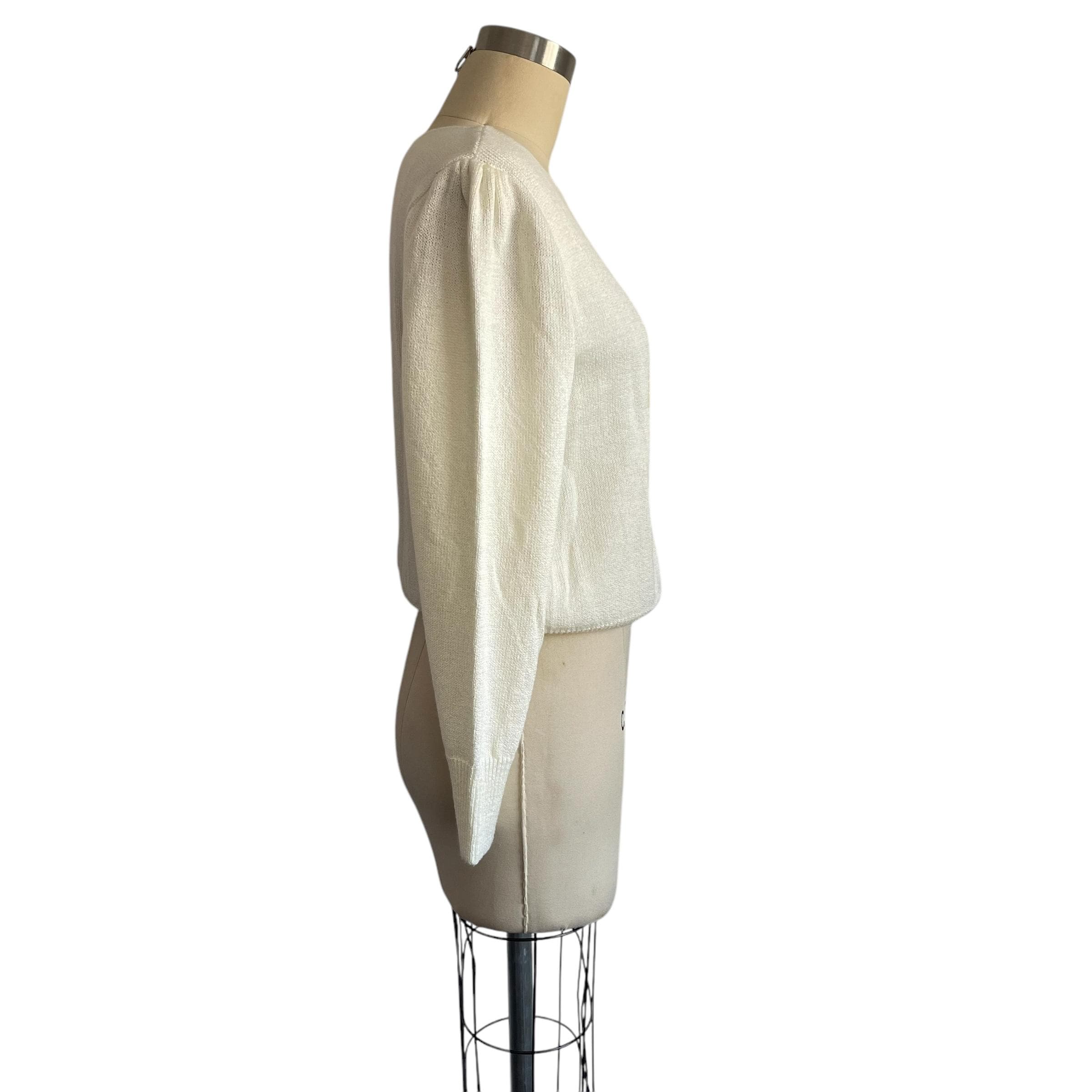 Vintage Ivory Sweater. Vintage 70s 80s Sweater. Gold Glitter. Puff Sleeve. Ivory. 70s 80s sweater. Knit Sweater Top. Vintage Sweater. M. L.