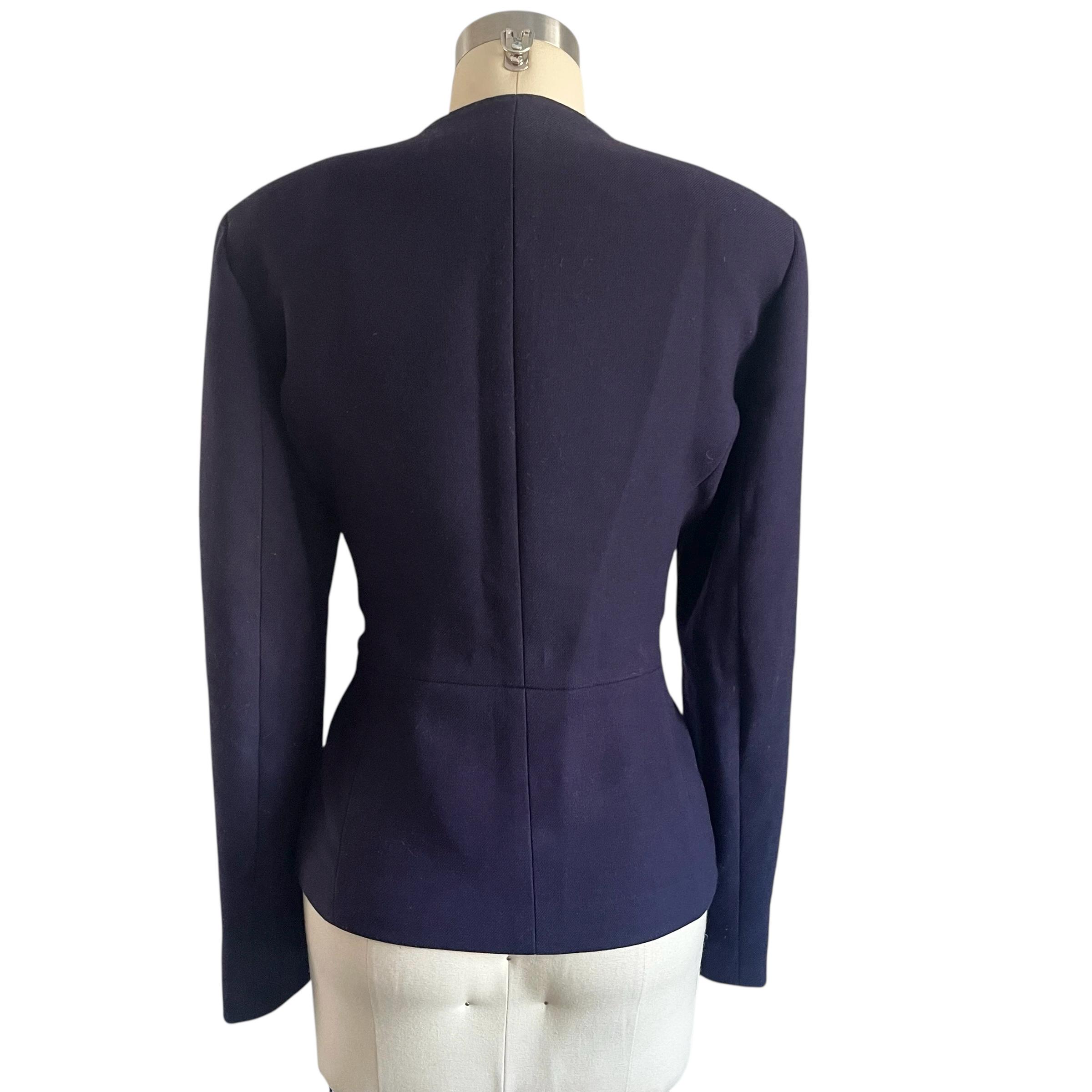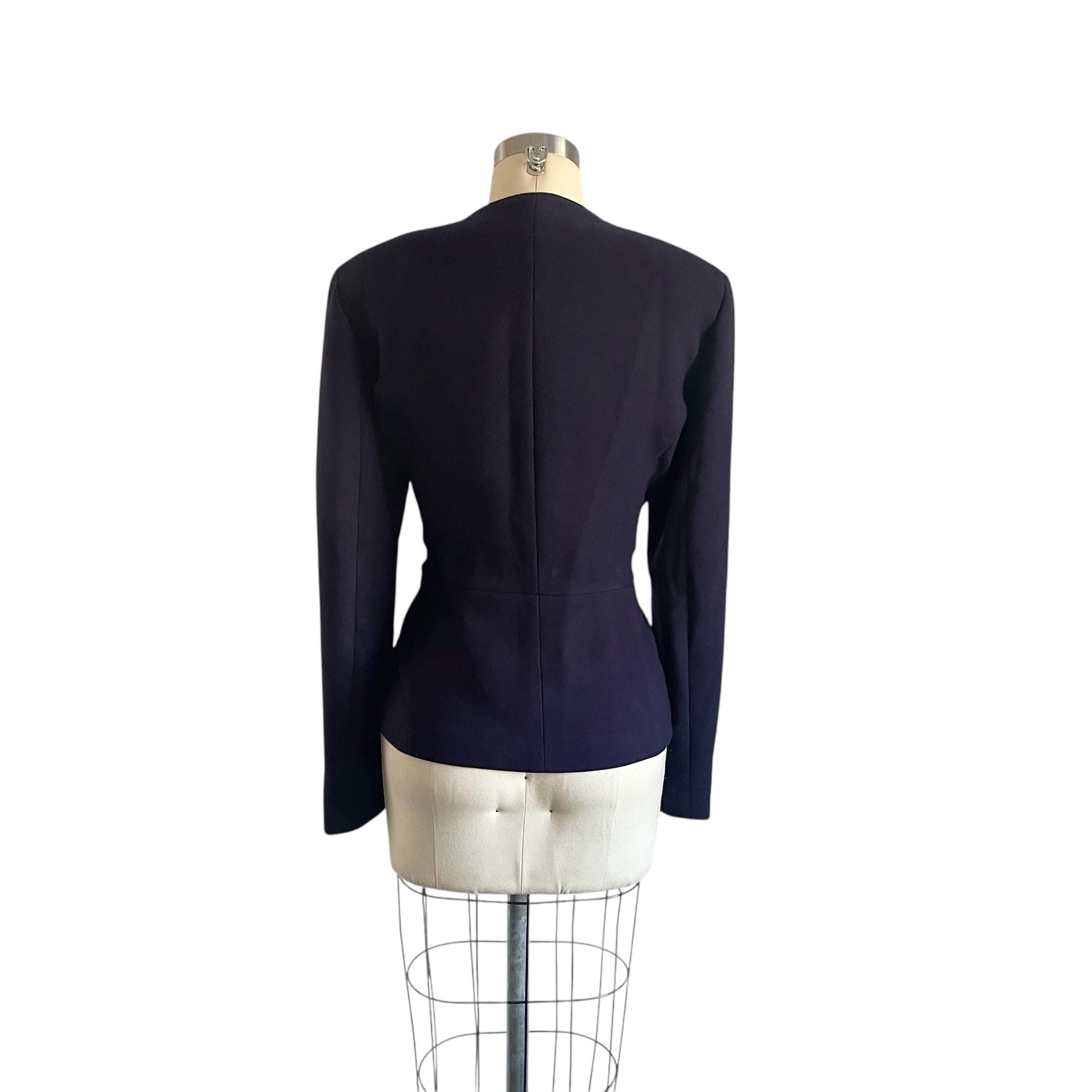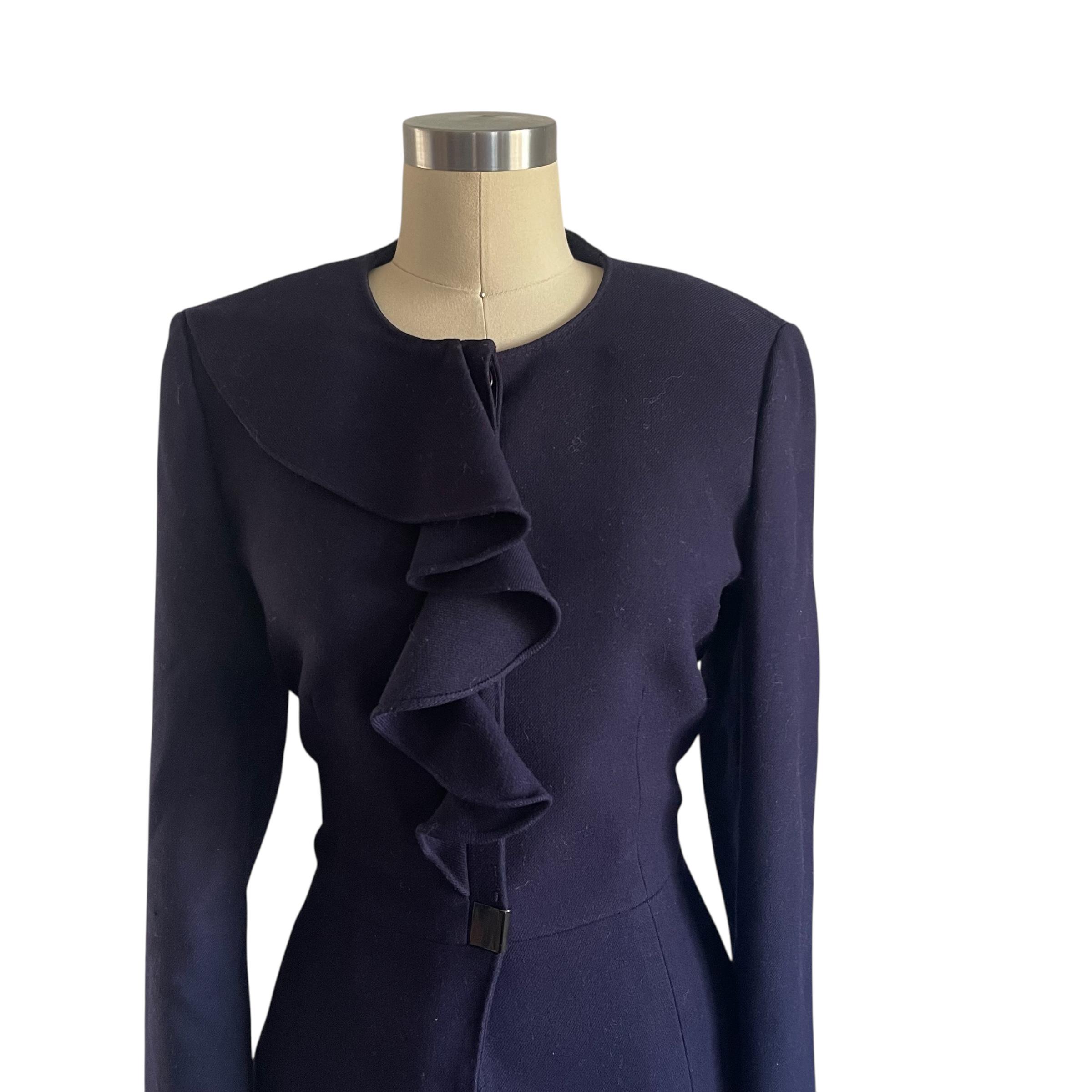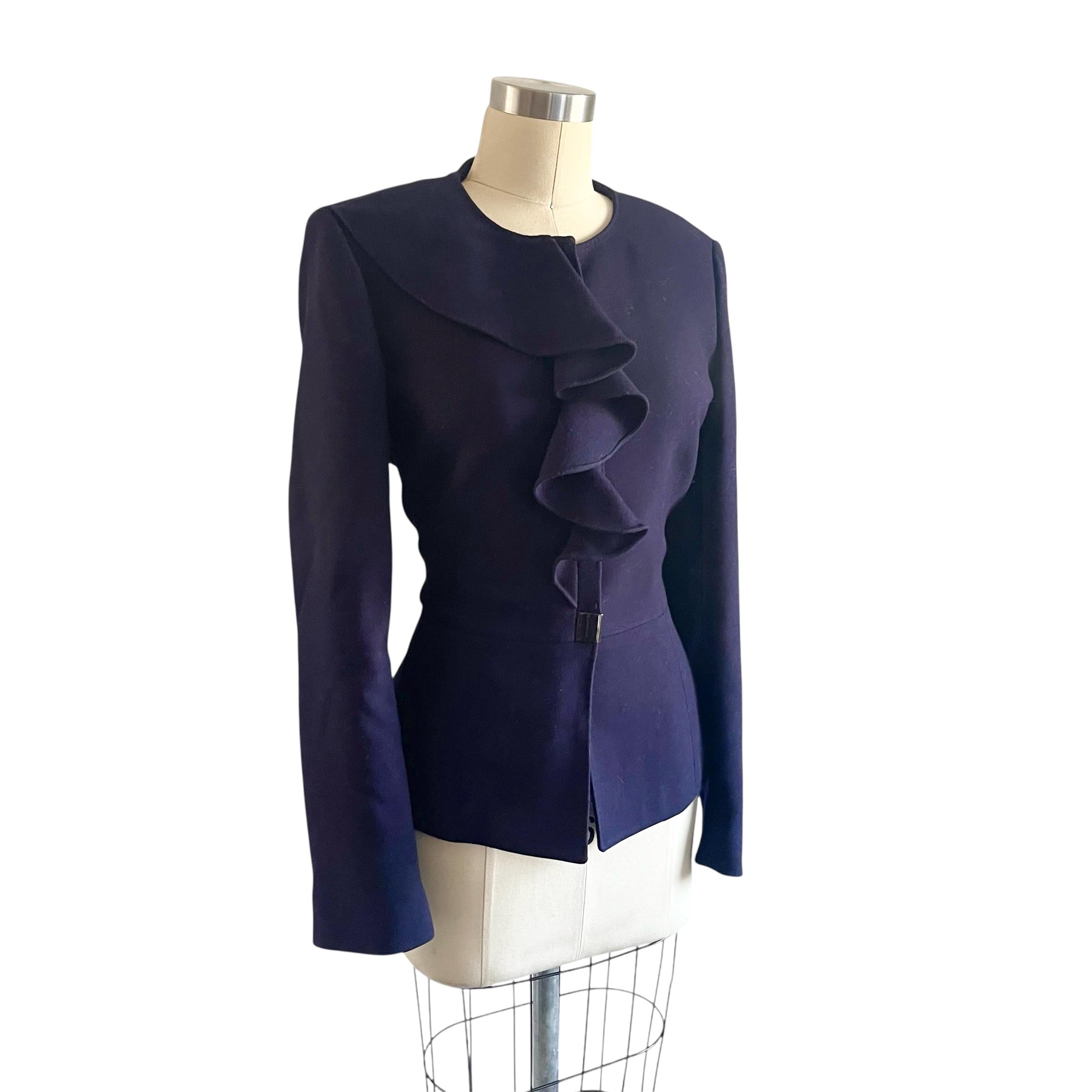 Vintage Anne Klein Dark Indigo Formal Ruffle Blazer: Padded Shoulders, Victorian Blazer, Dark Academia Blazer, 70s 80s 90s Blazer